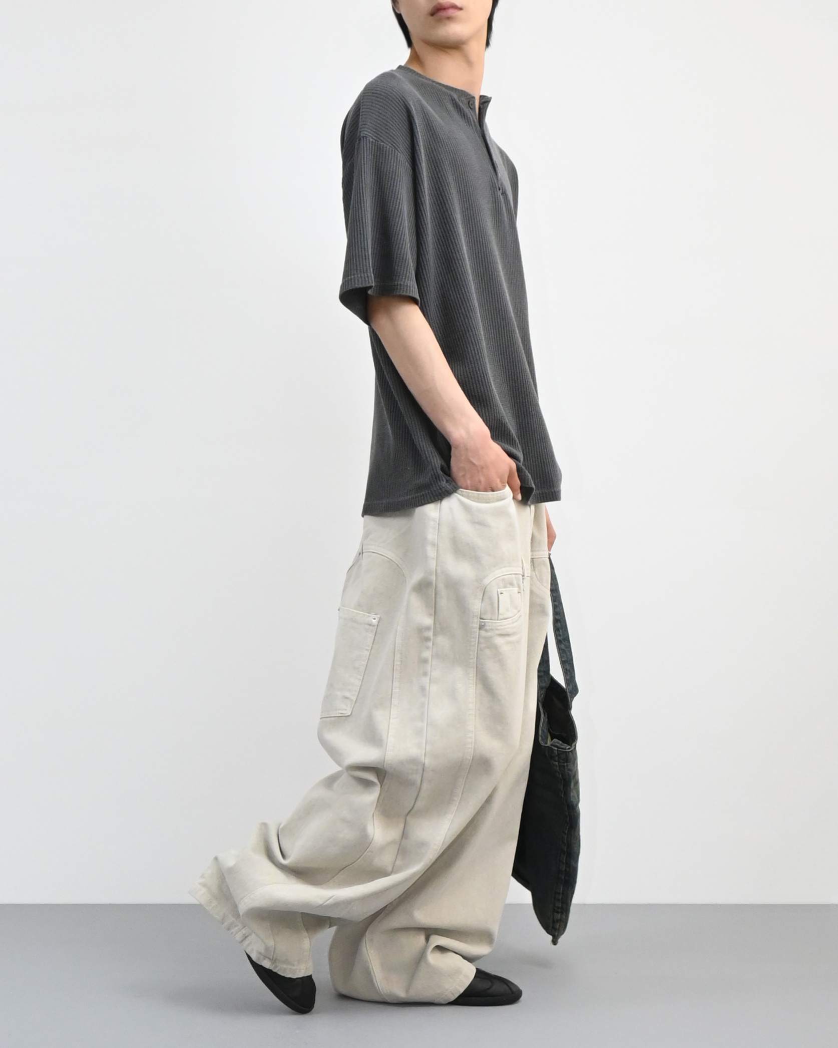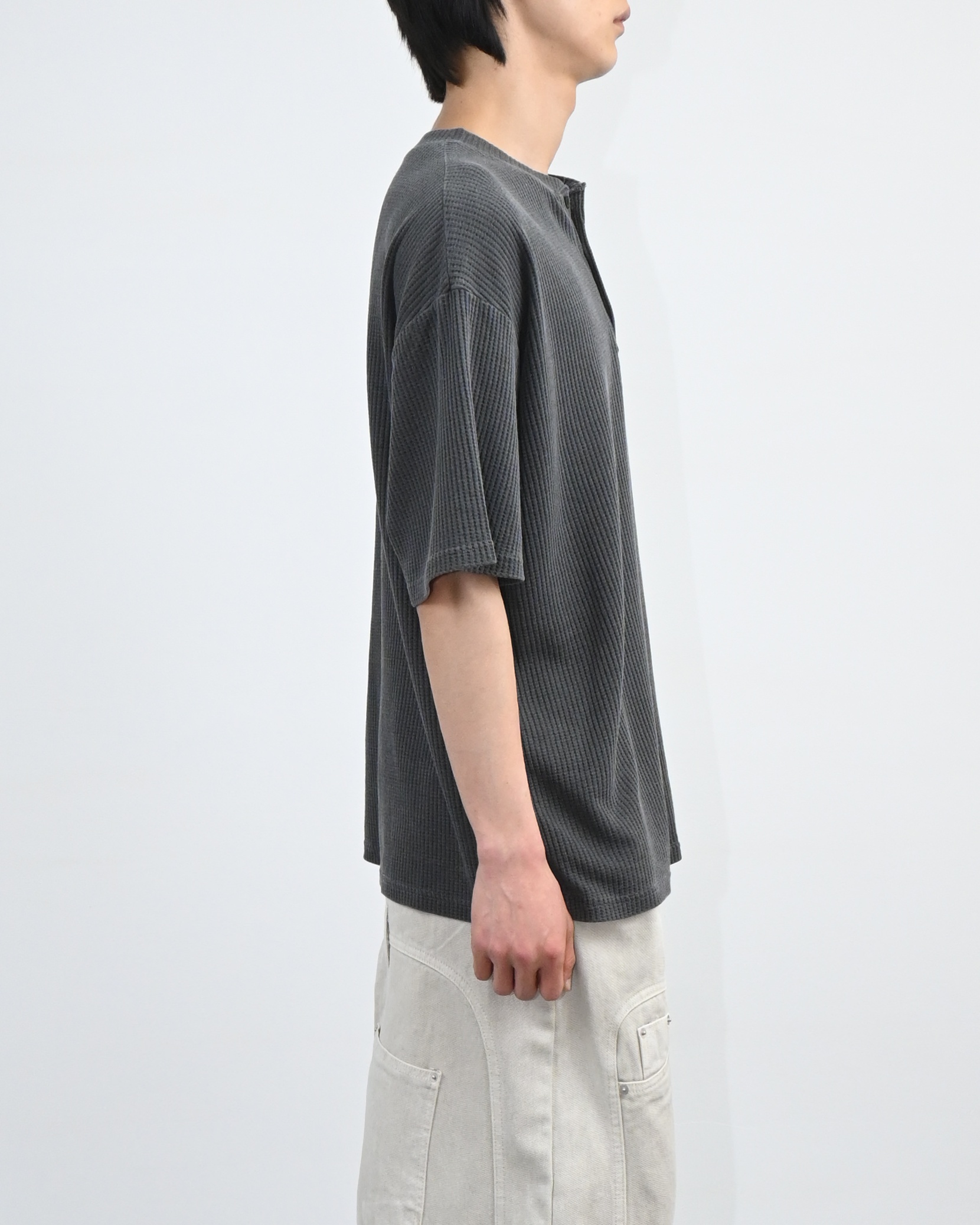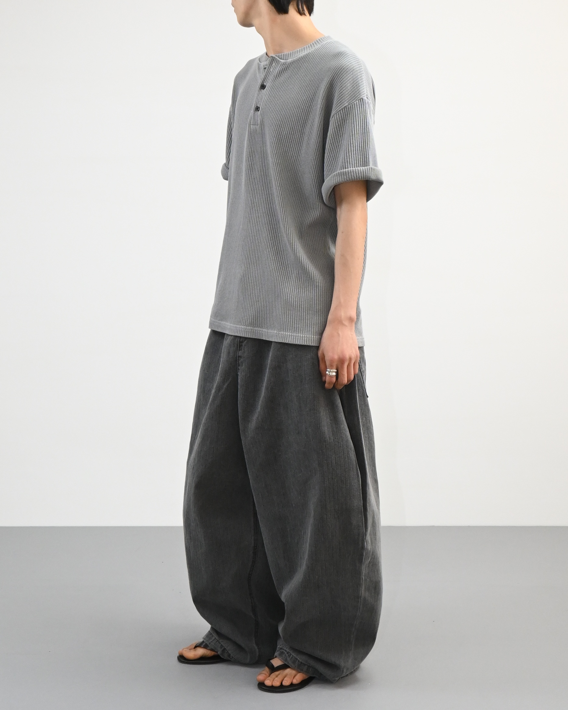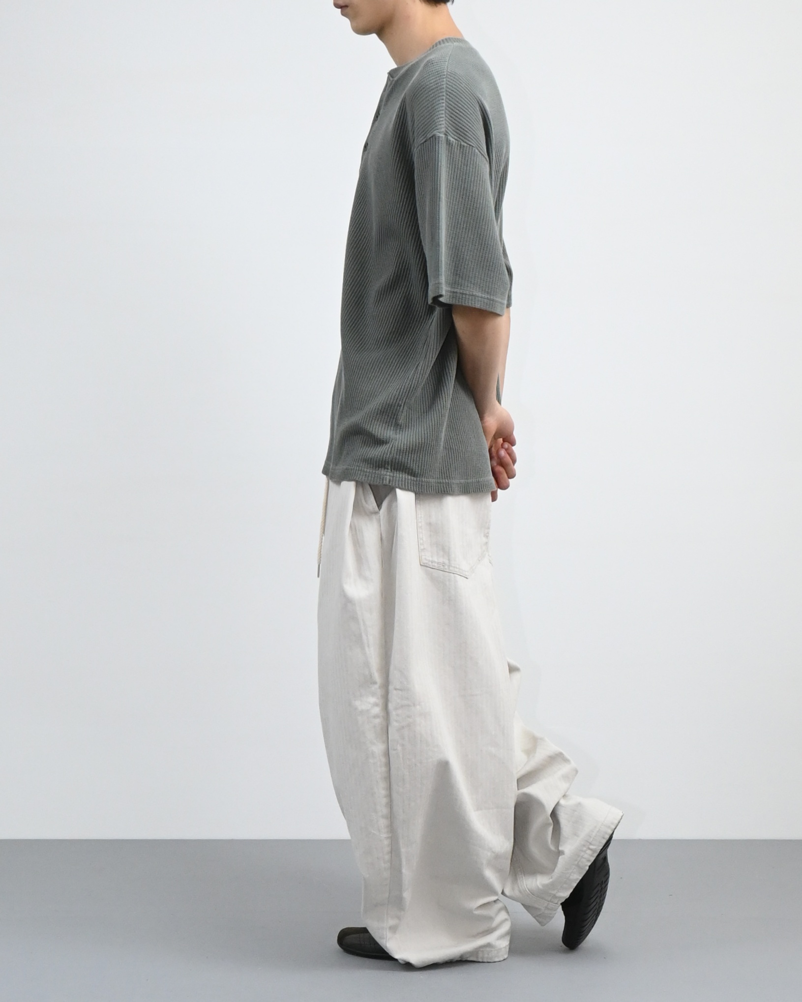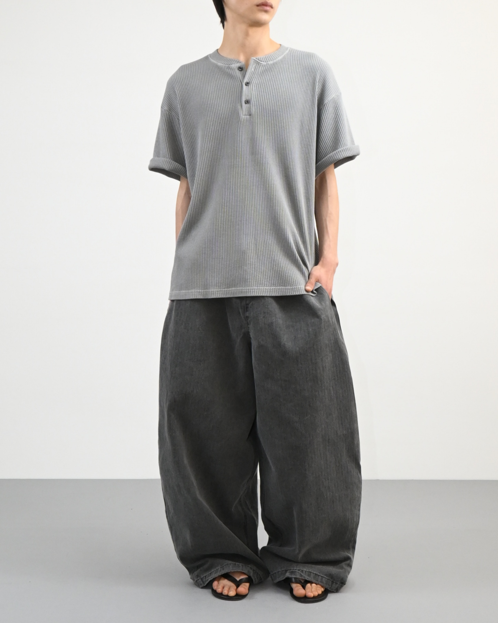 헨리넥 버튼 디테일로 캐주얼한 포인트를 더했고,