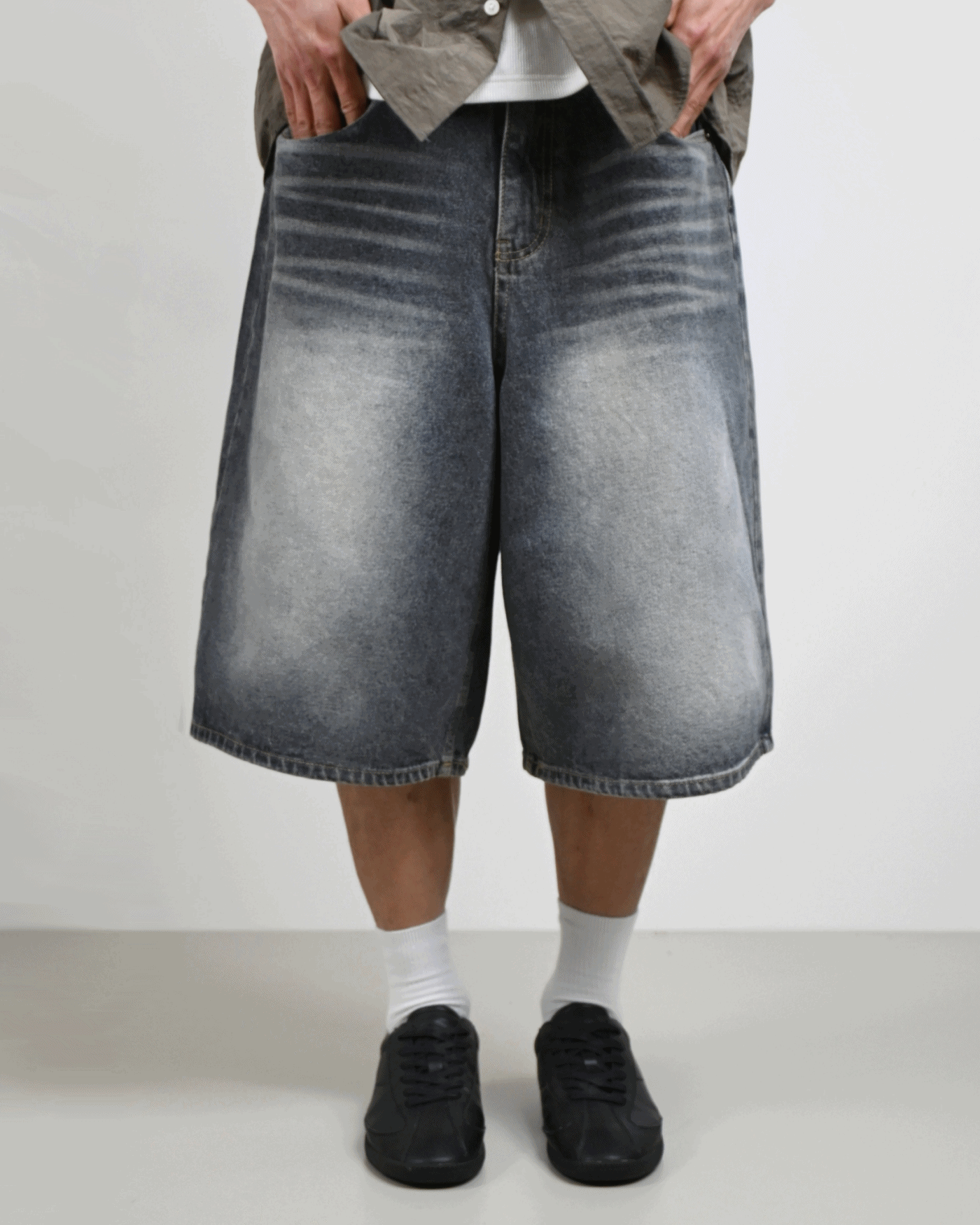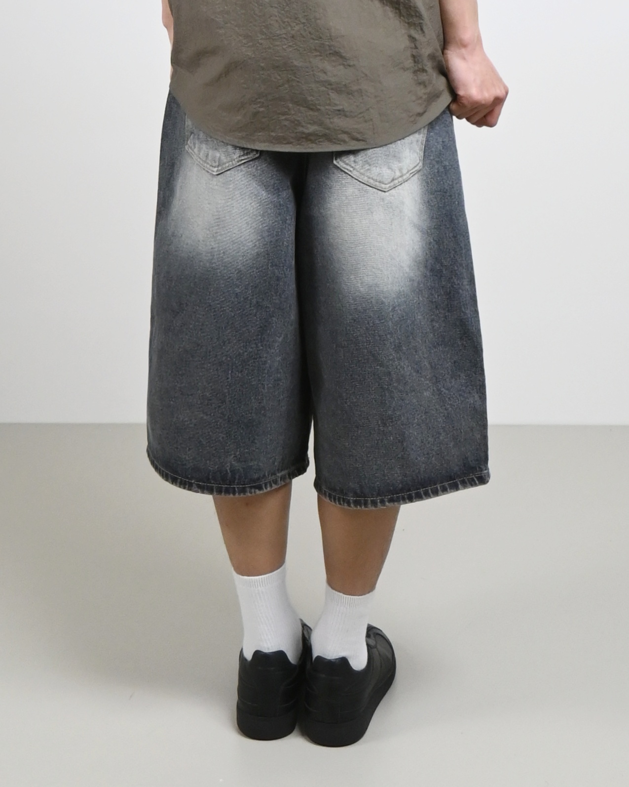 딥 그레이 색상과 밝은 워싱이 조화로우며,