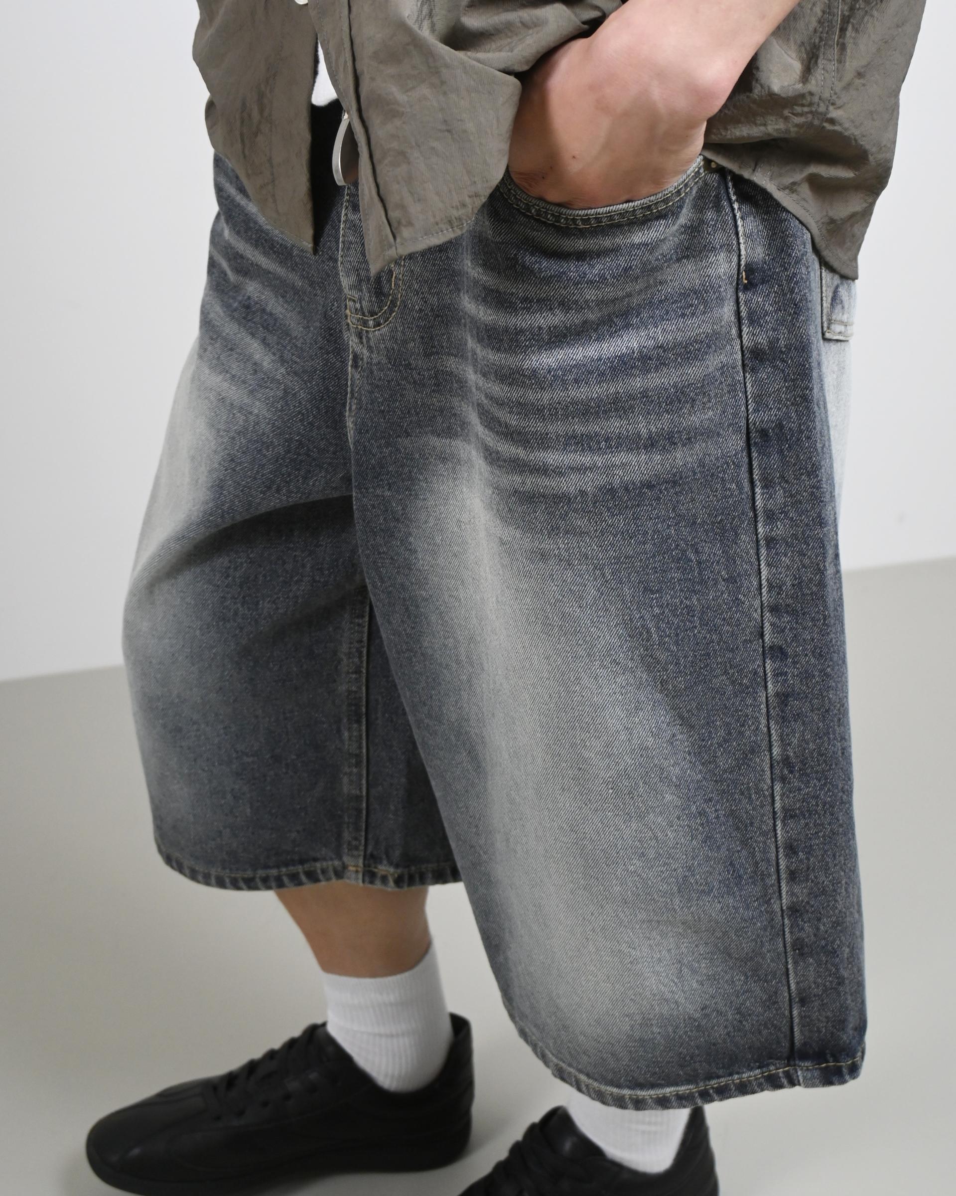매력적인 색상의 버뮤다 데님 팬츠입니다.