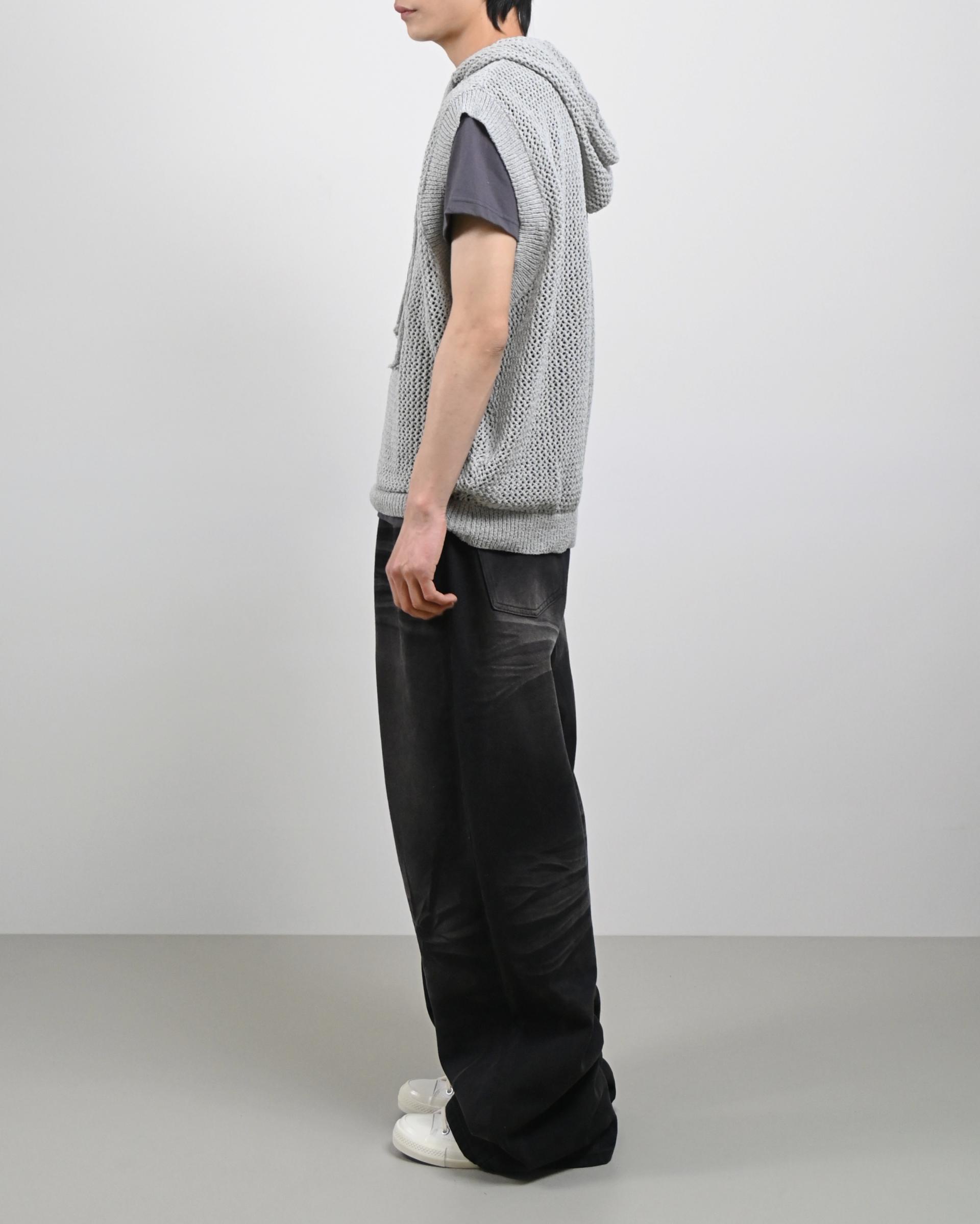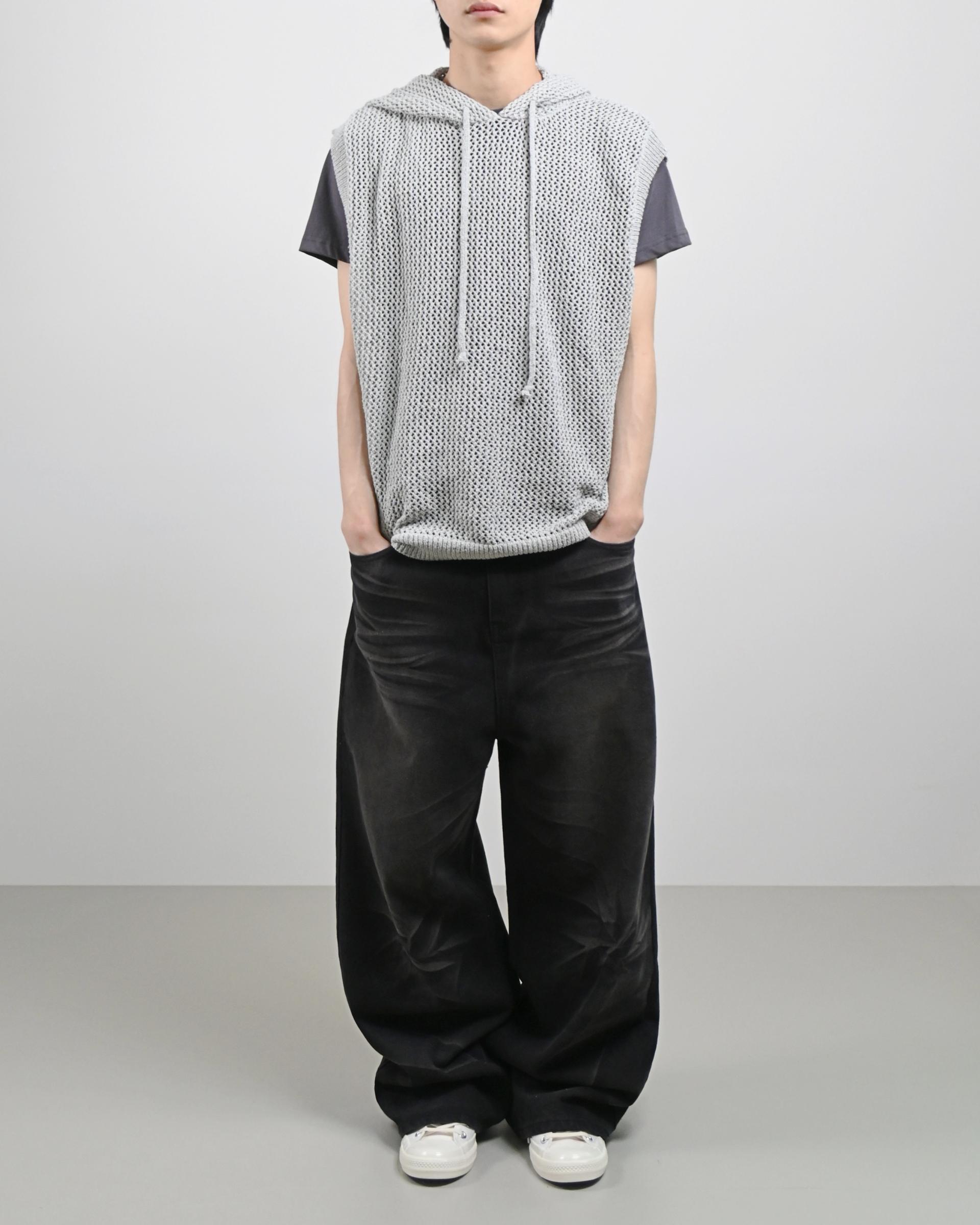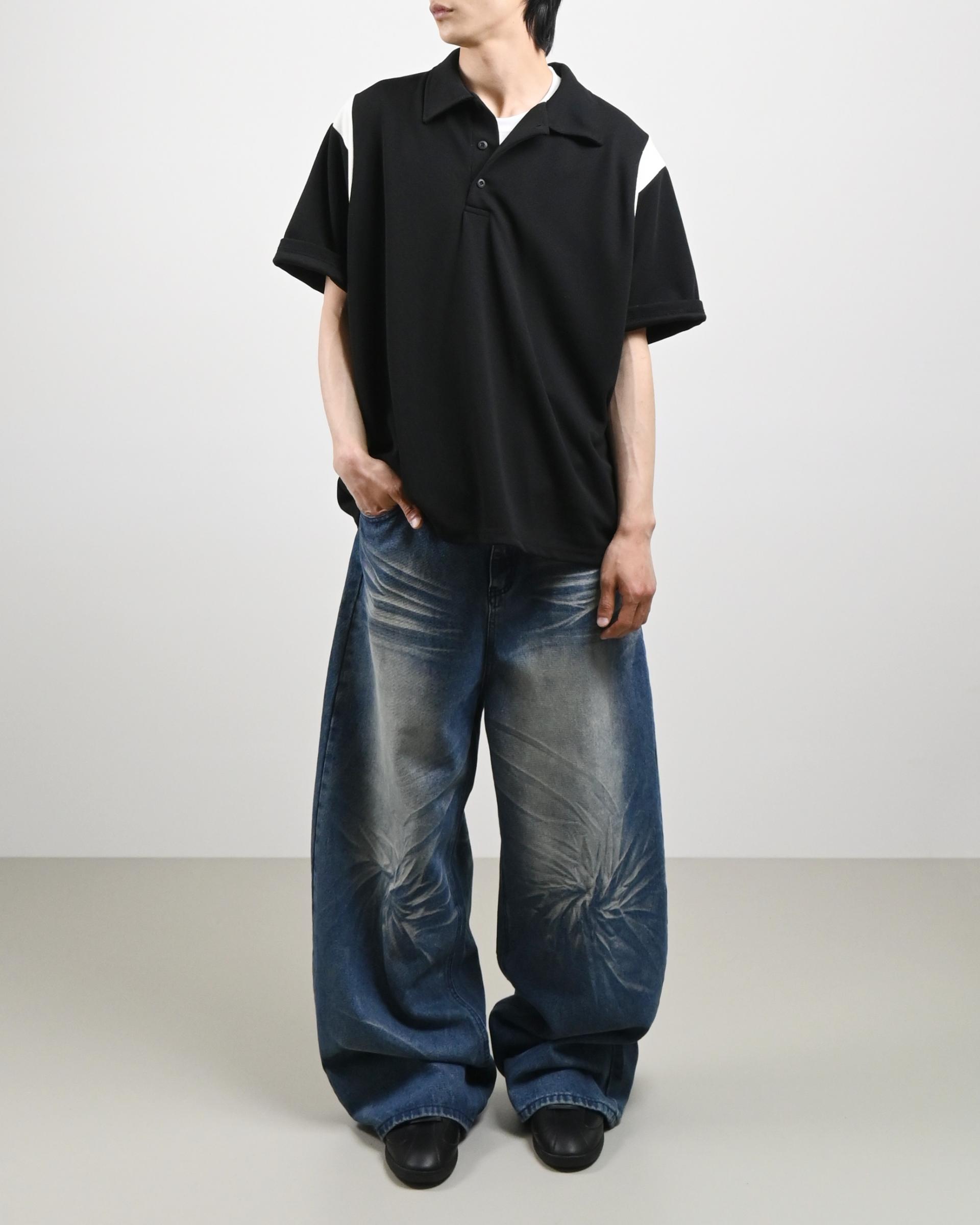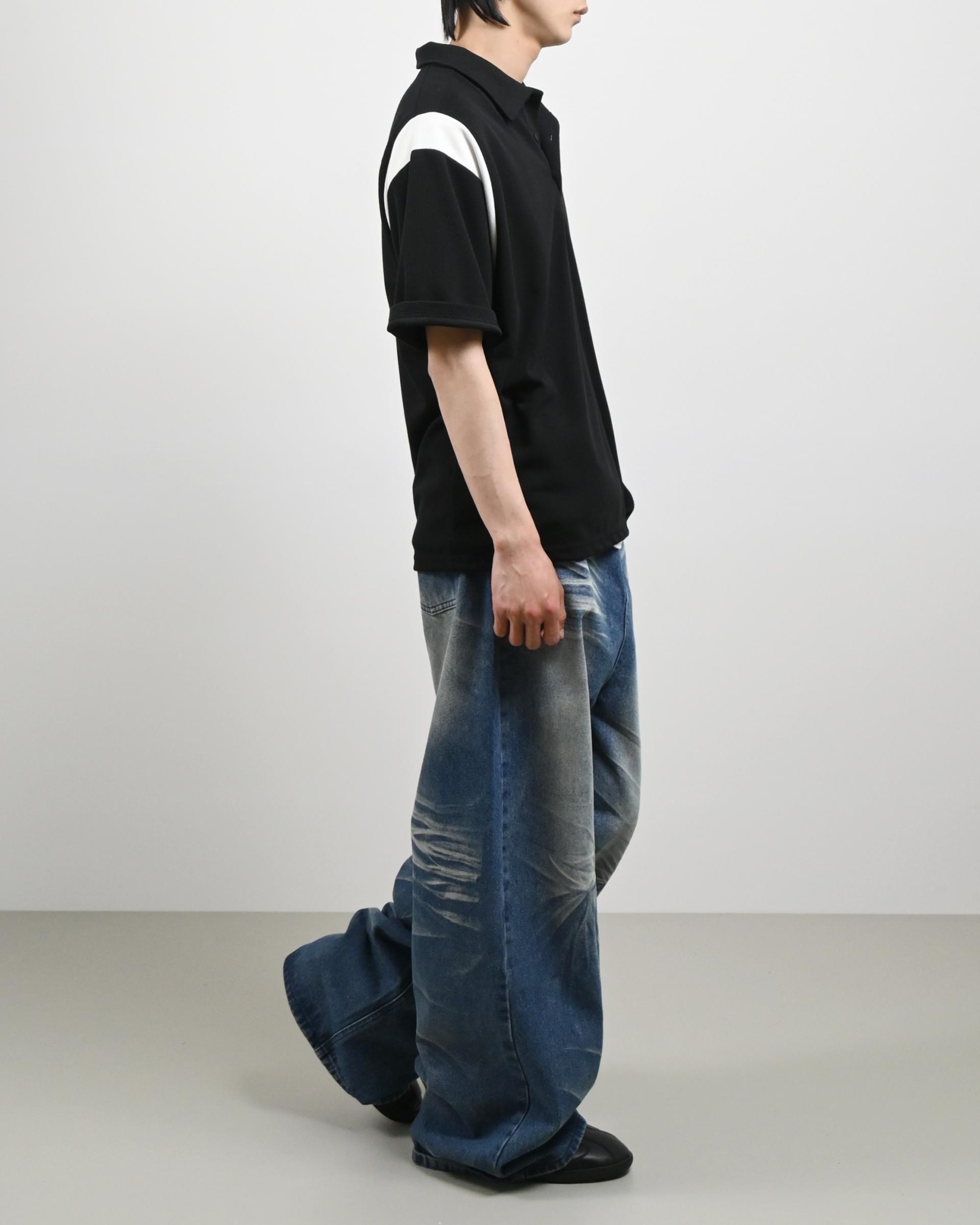 밝은 워싱색과 무릎 워싱 기법이 돋보이며,