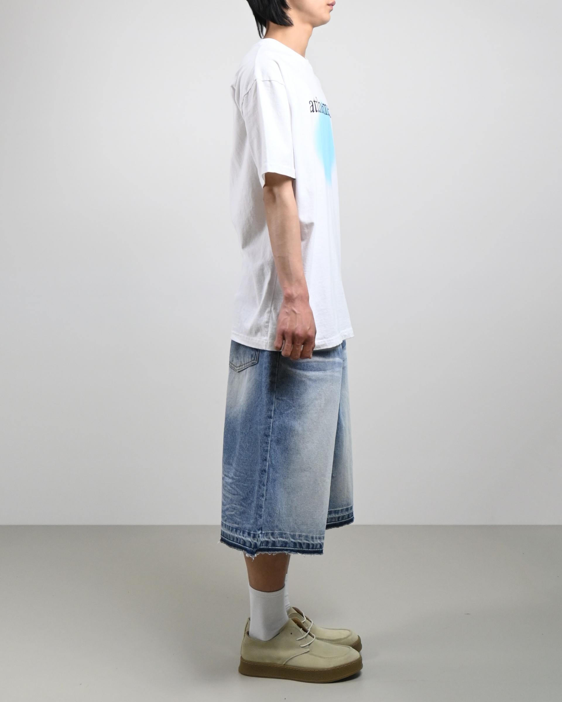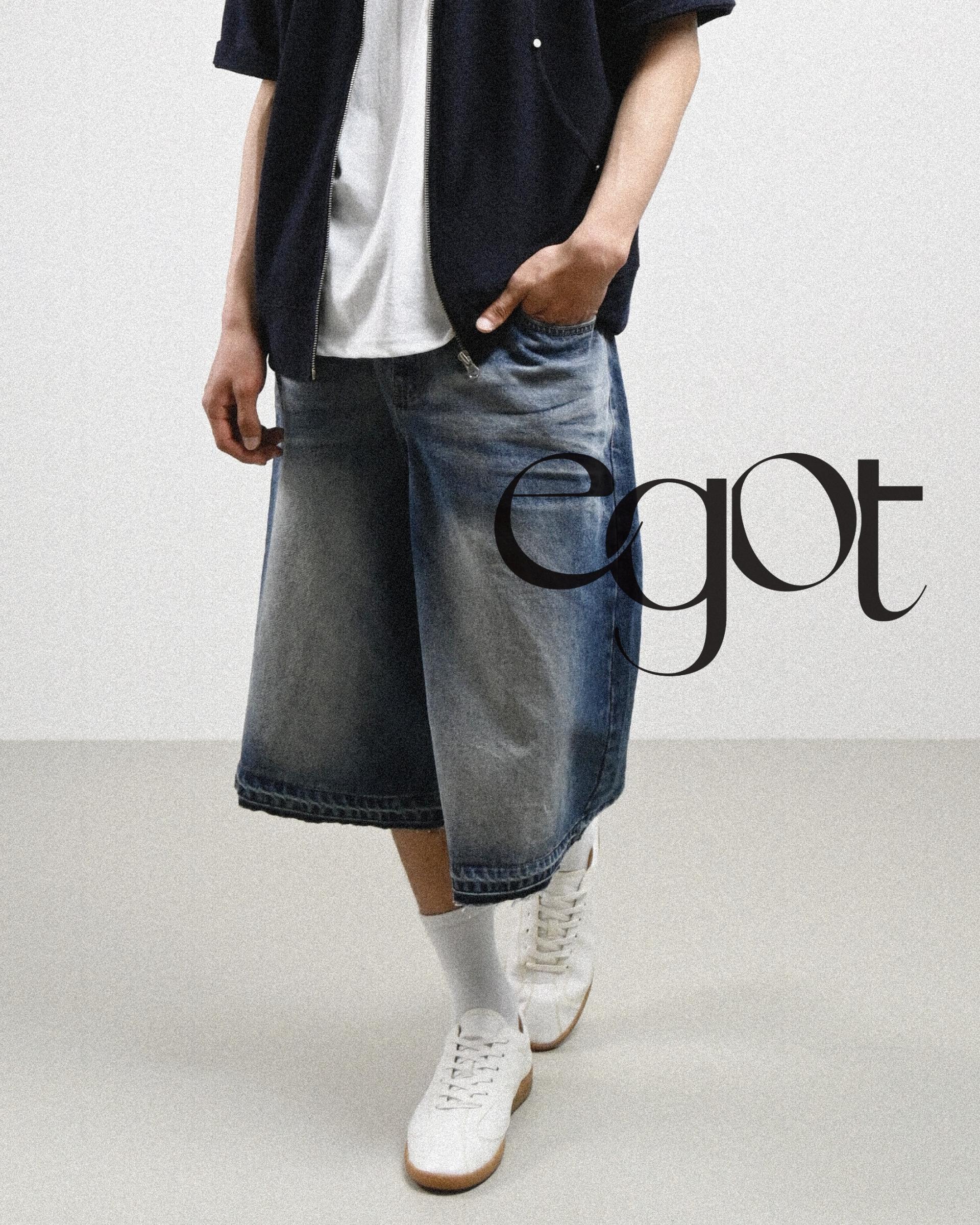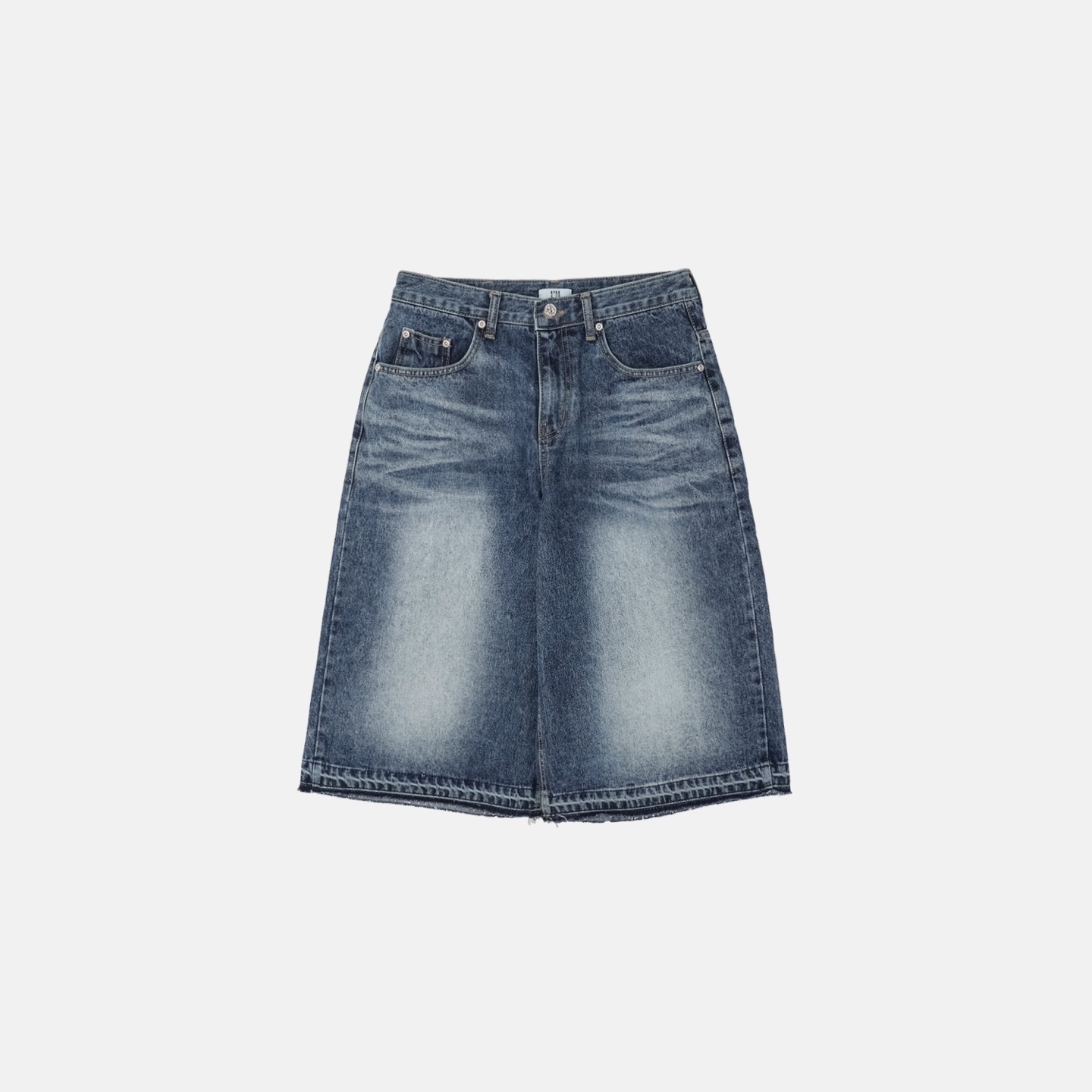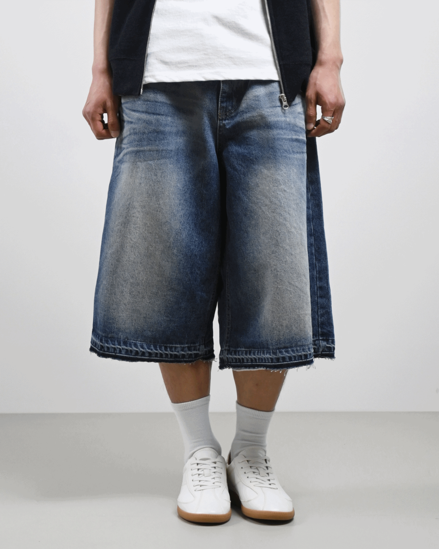 유니크한 디자인의 버뮤다 데님 팬츠입니다