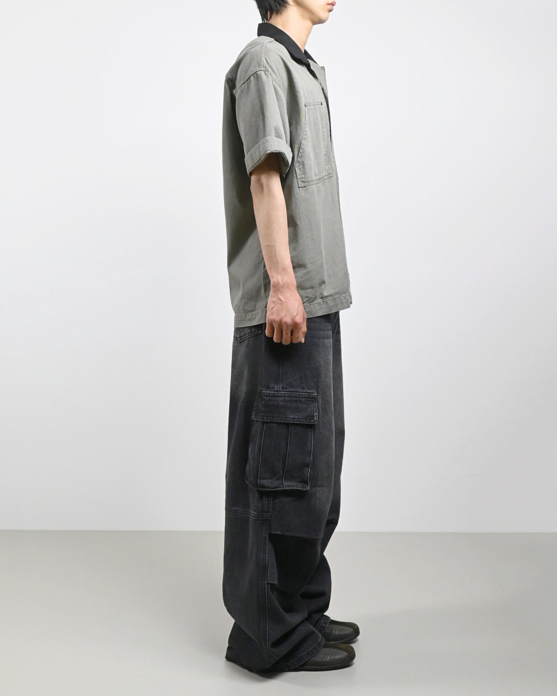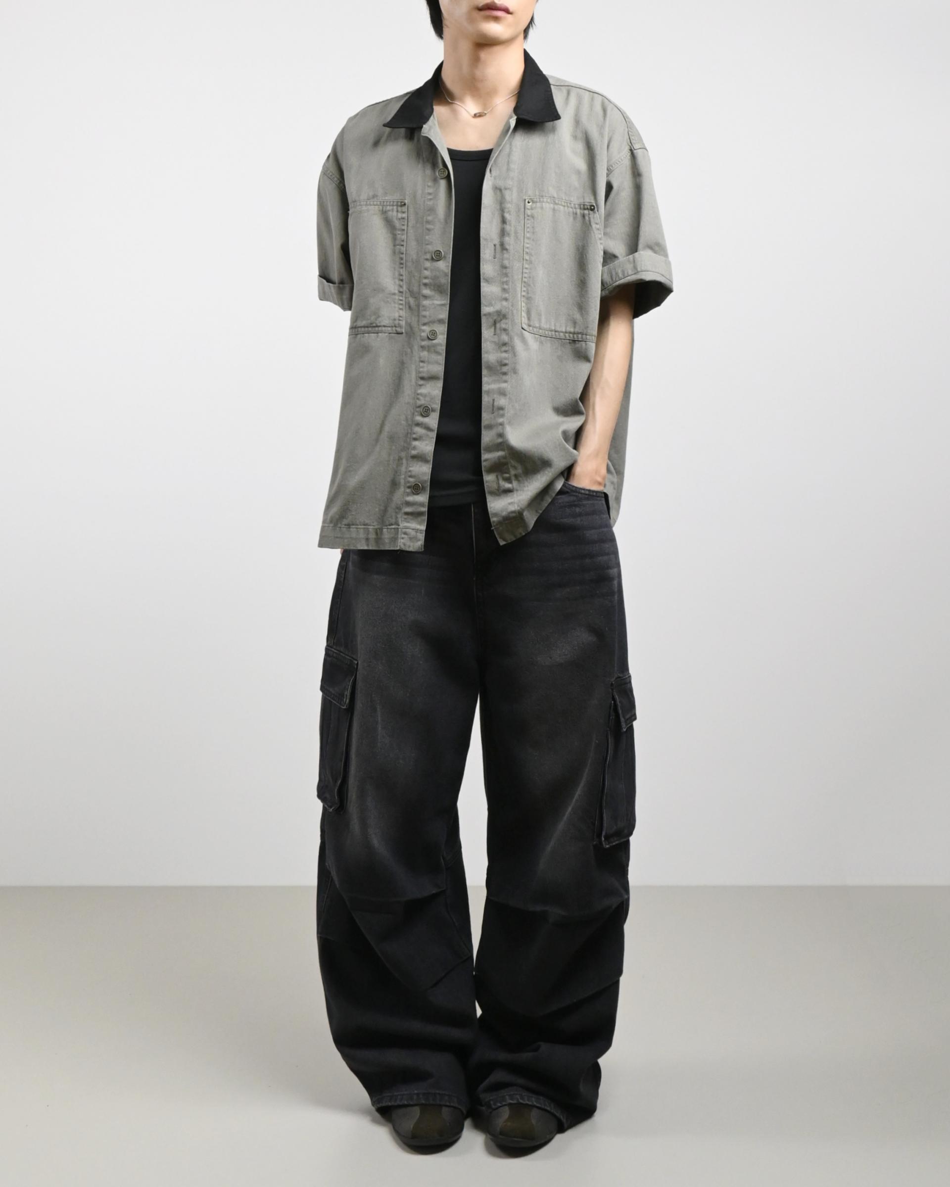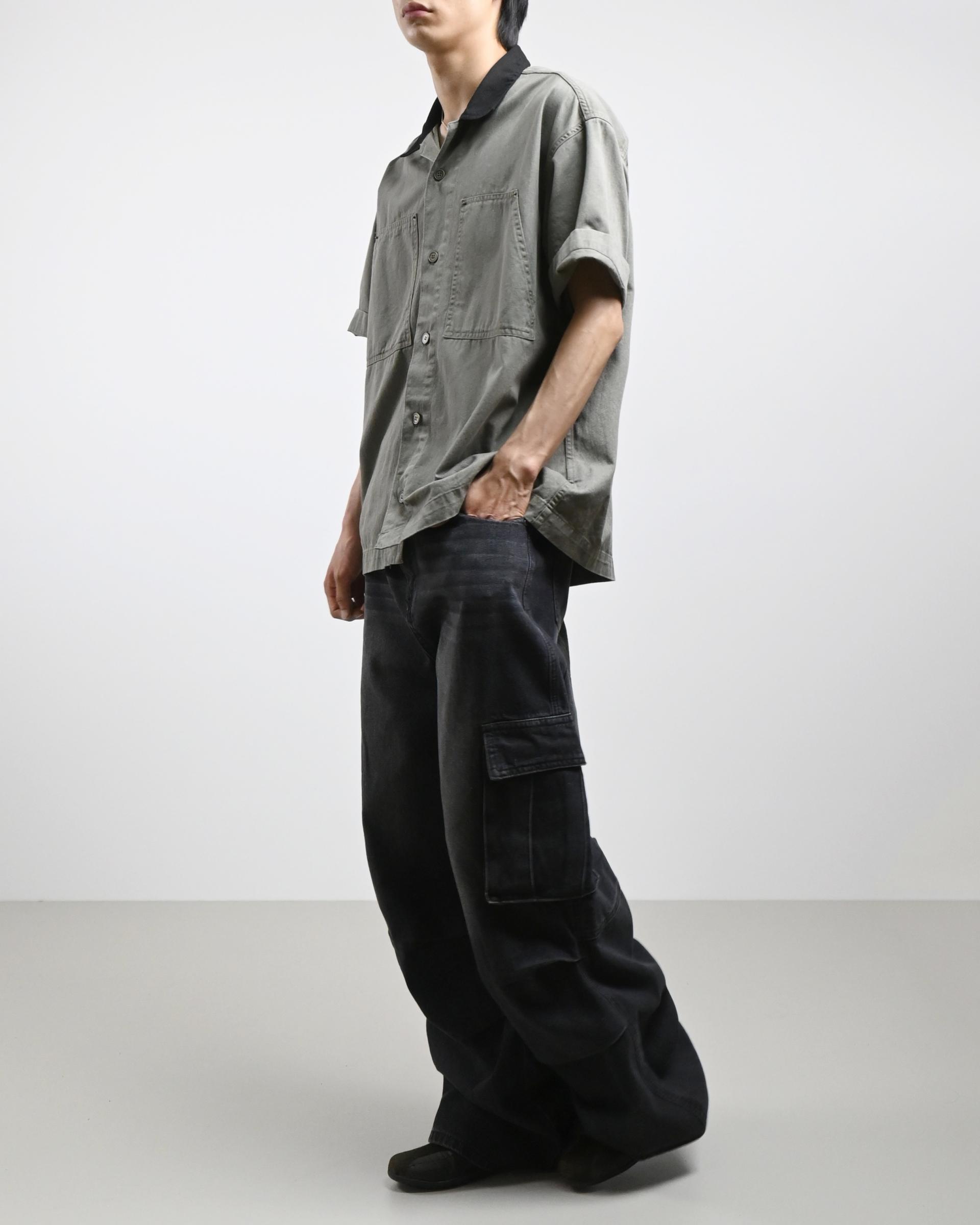 캣브러쉬 워싱과 큰 카고 포켓 디테일이 있으며,