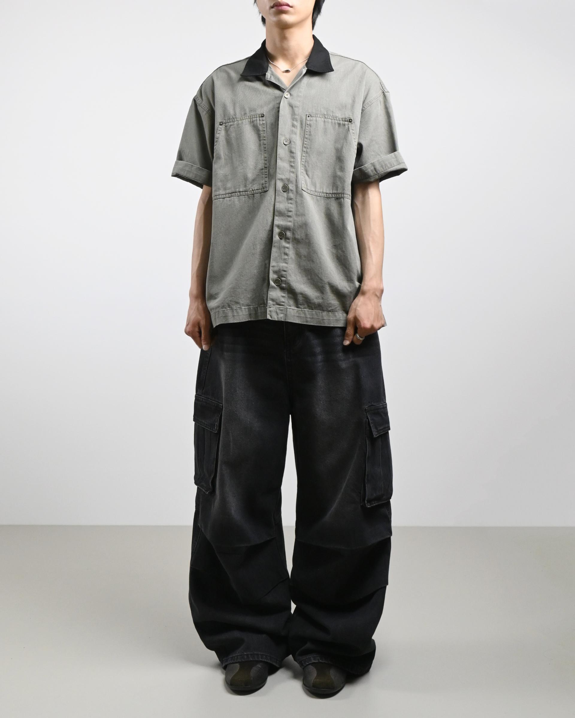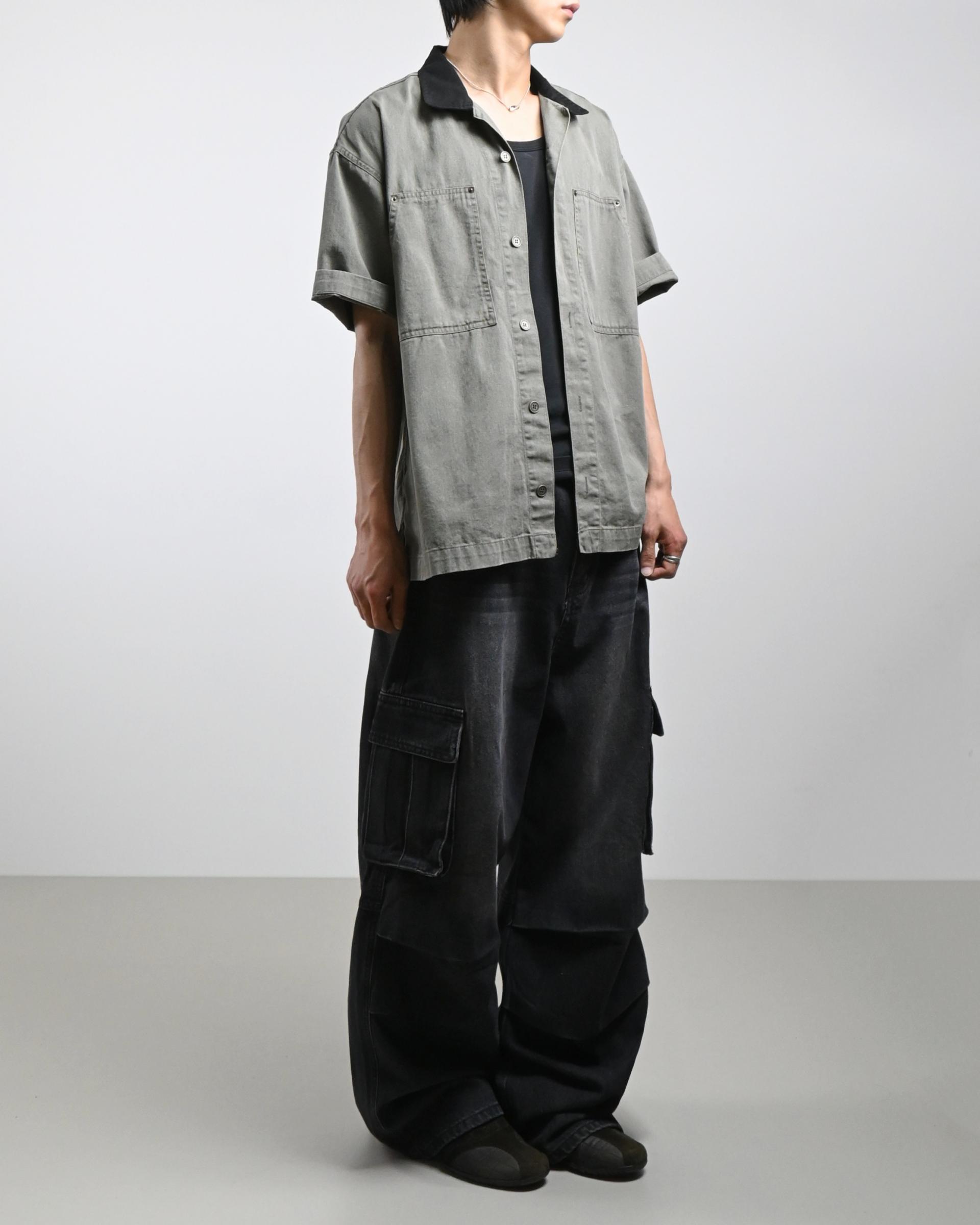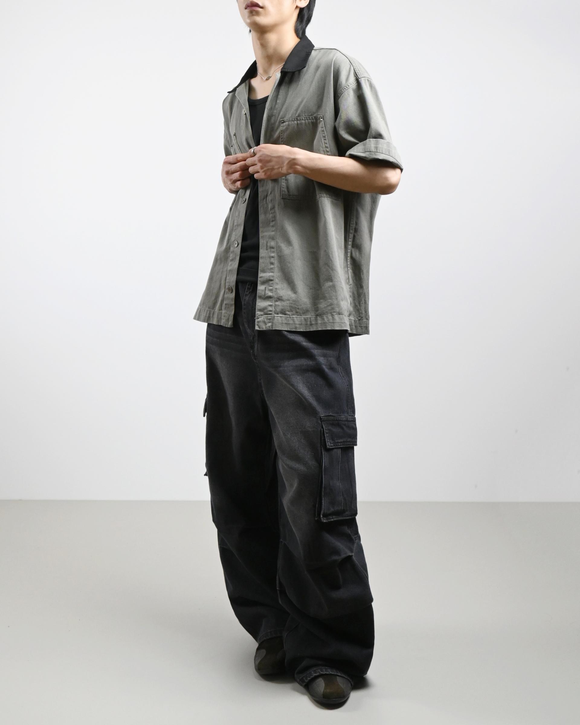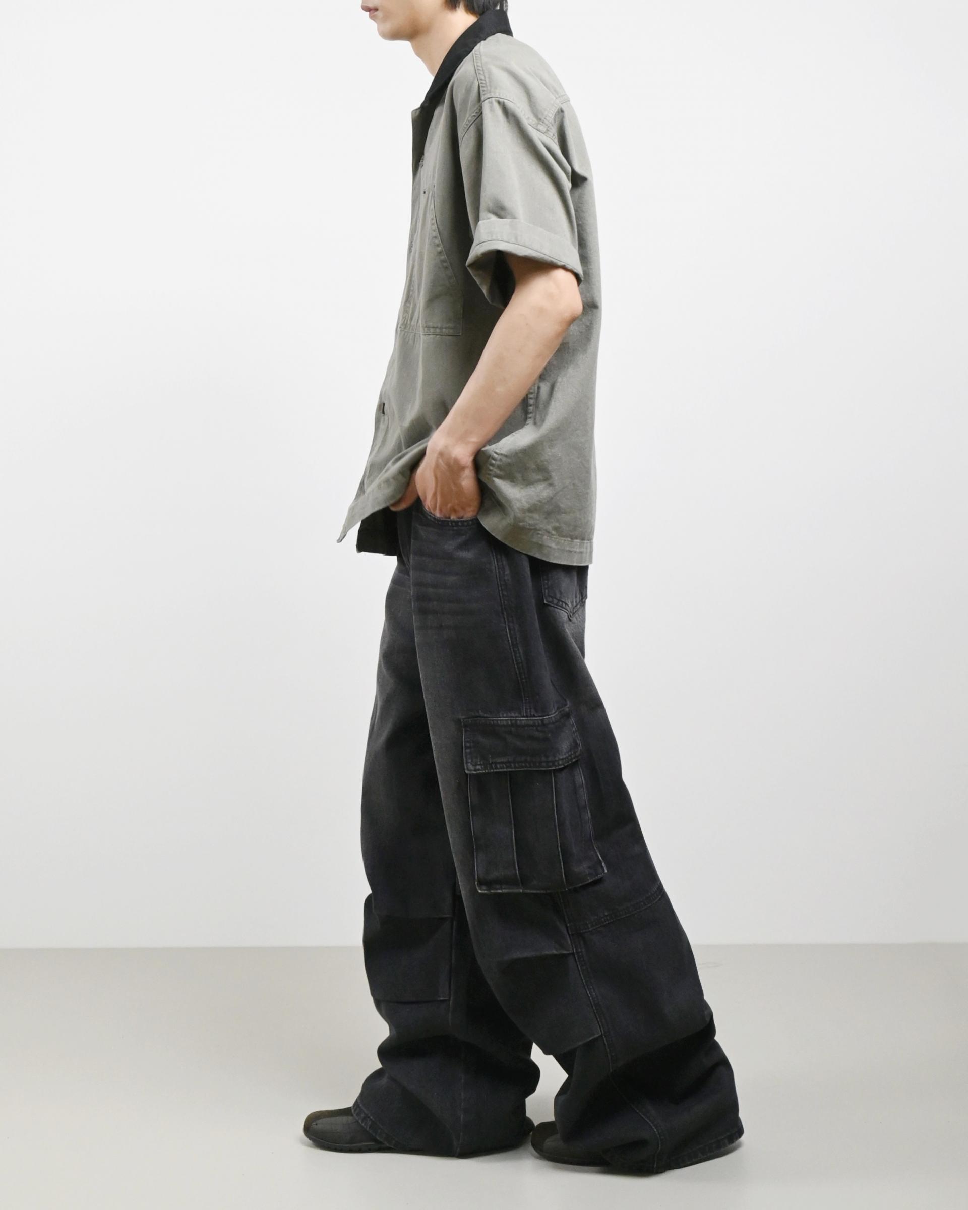 캣브러쉬 워싱과 큰 카고 포켓 디테일이 있으며,