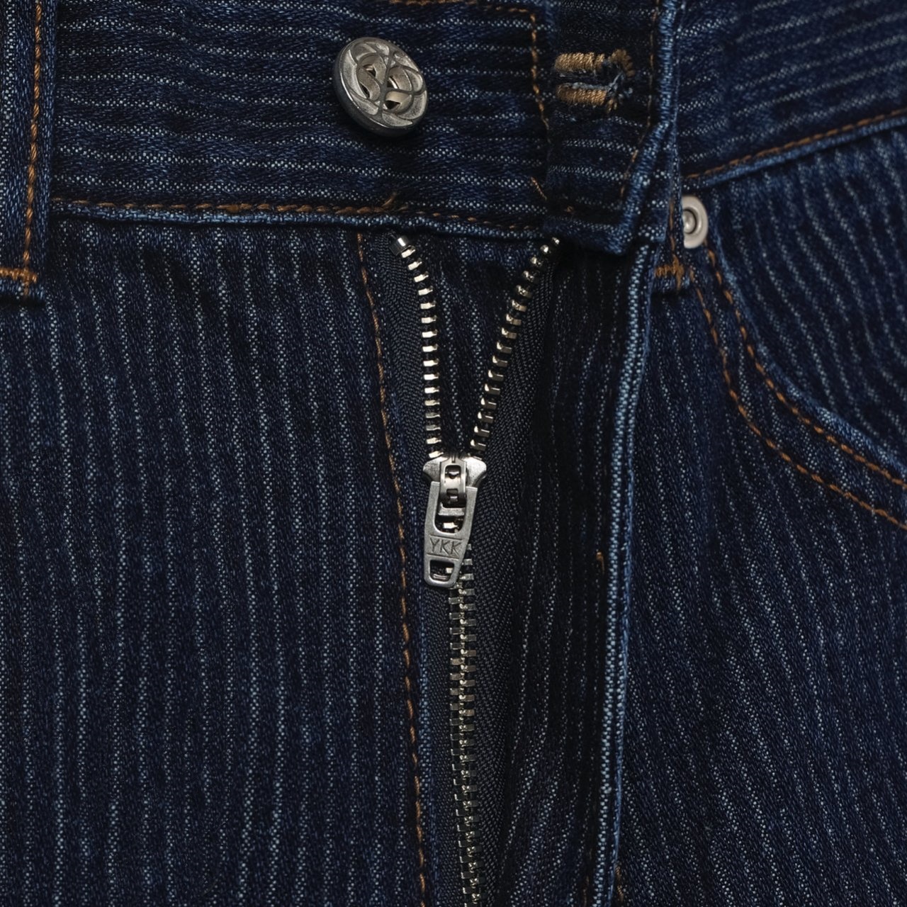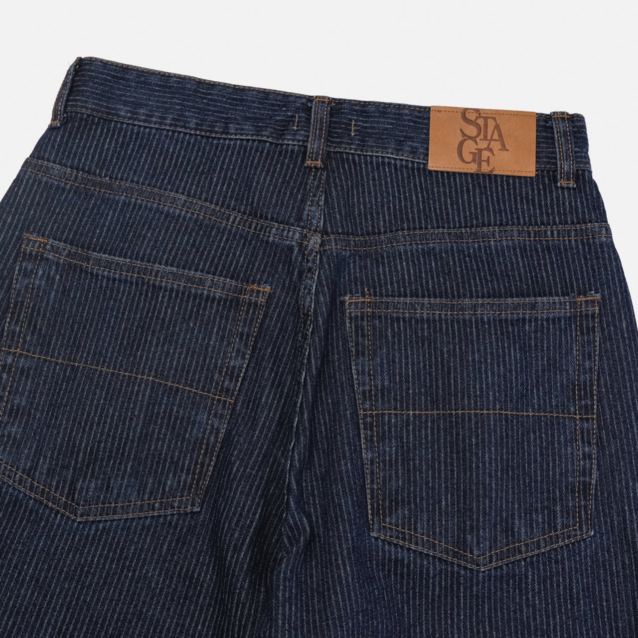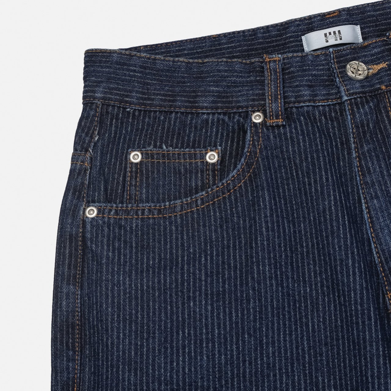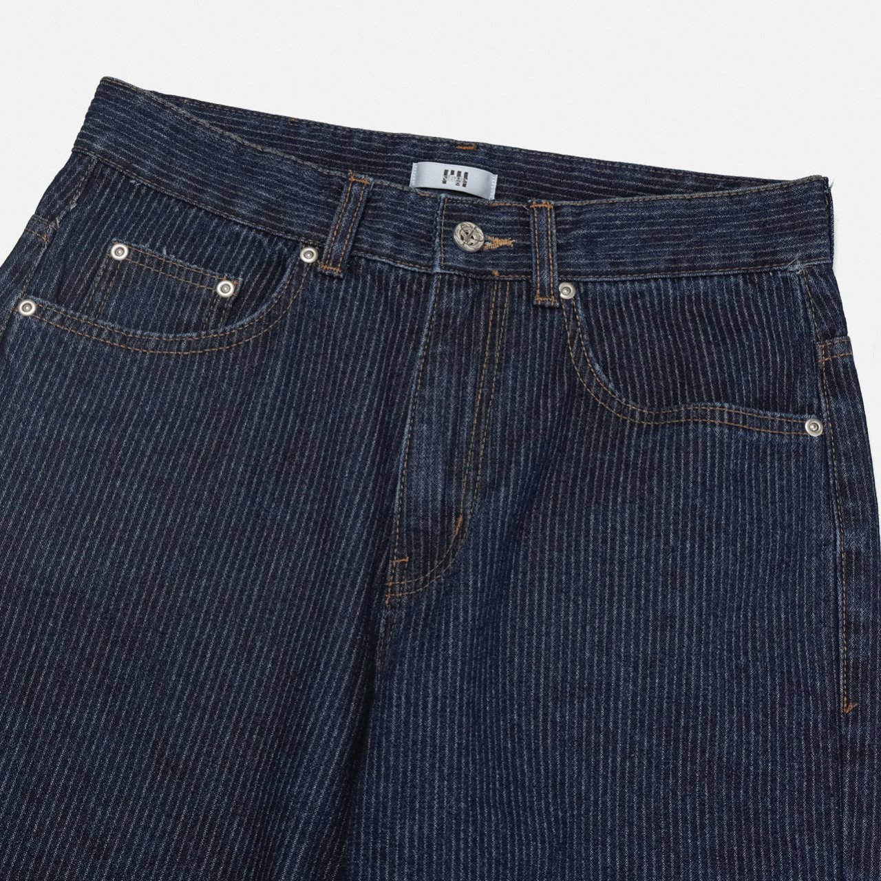 데님 색상과 조화로운 진브라운 배색 스티치에