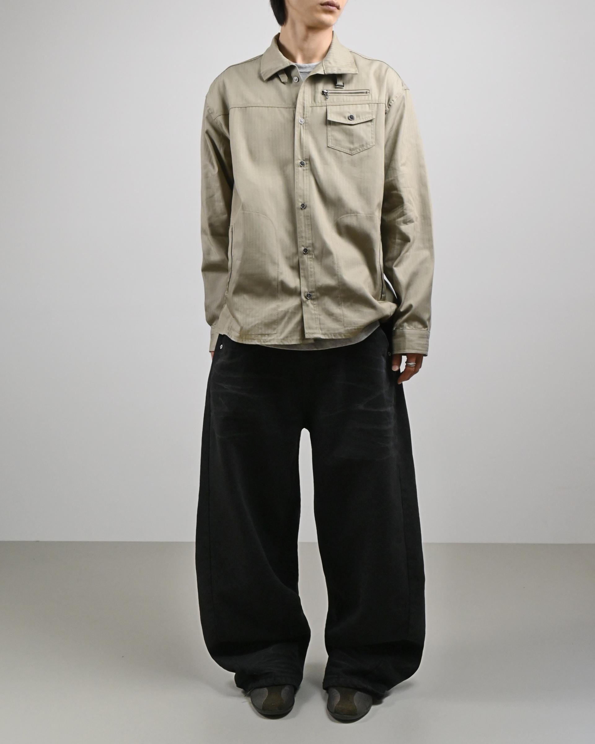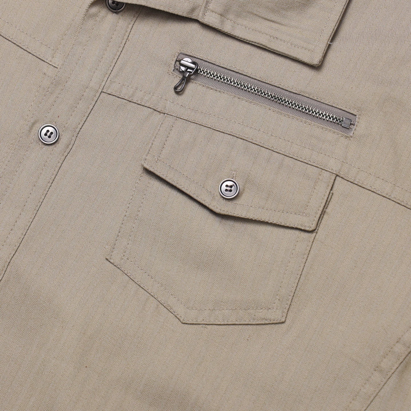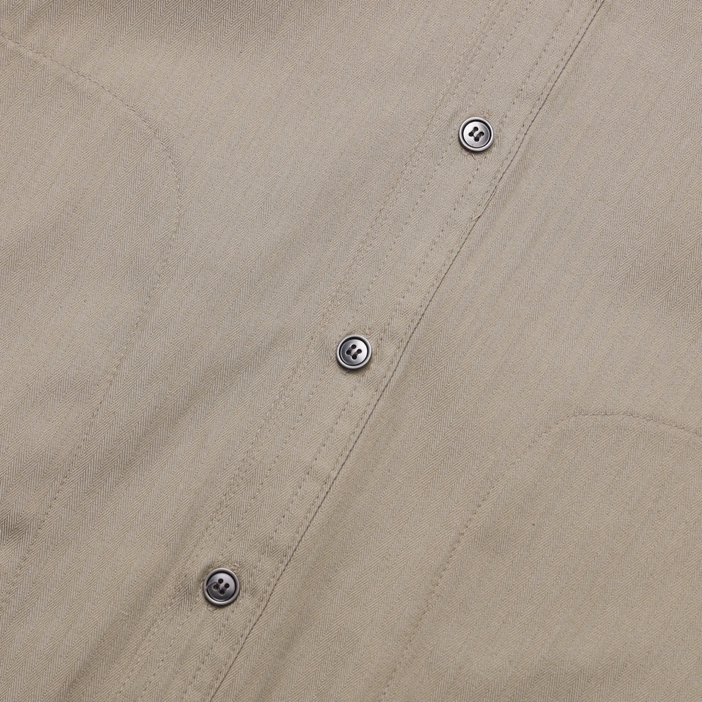 고급 hbt원단에 맞는 단추를 사용해 분위기를 맞춰