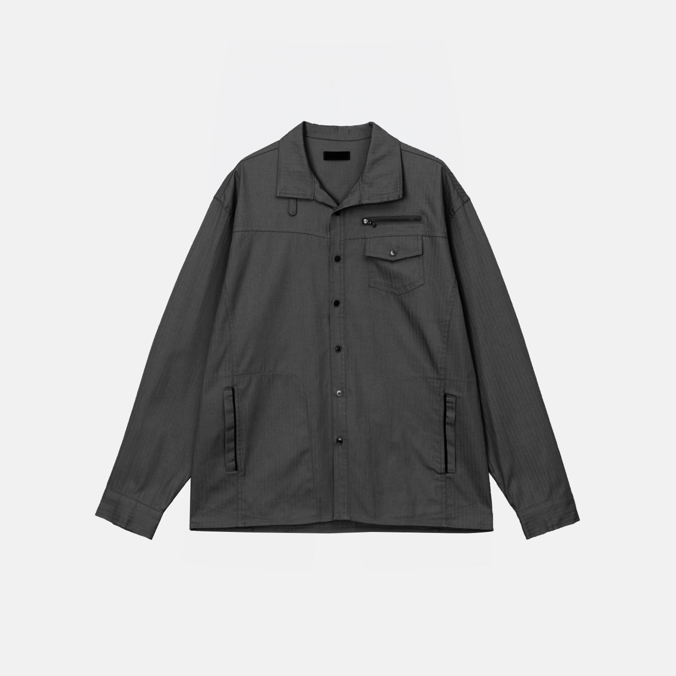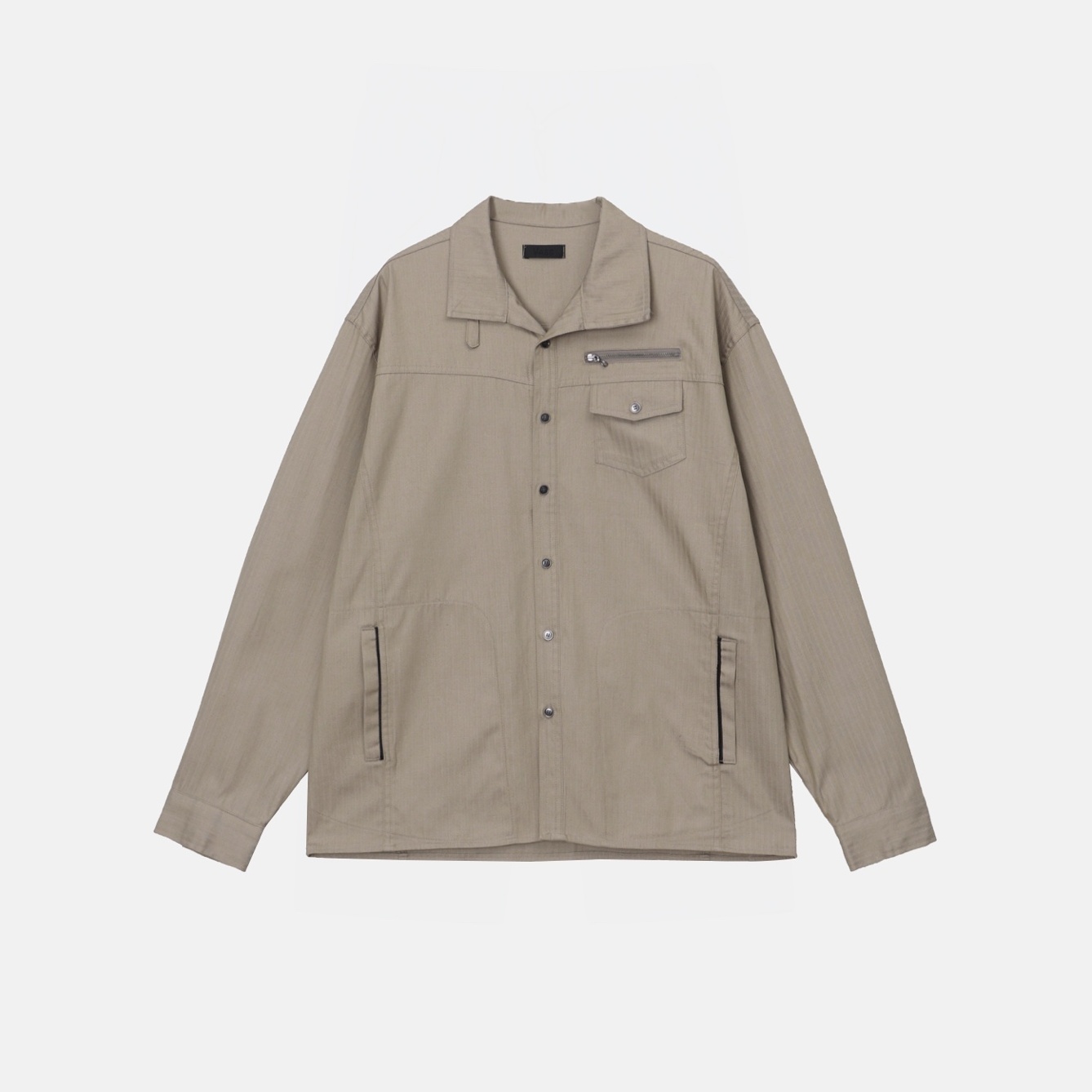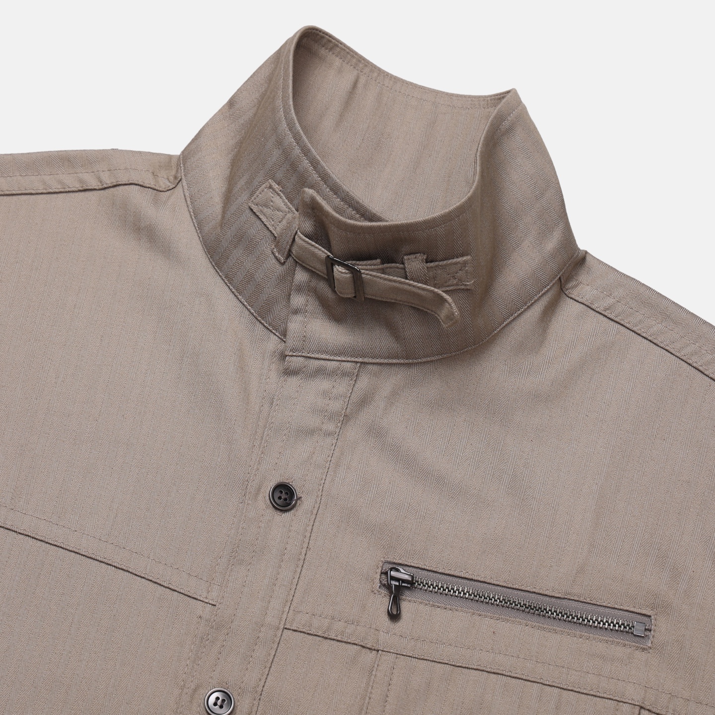 카라에 비조와 전면 포켓 디테일이 유니크한 포인트를 주고