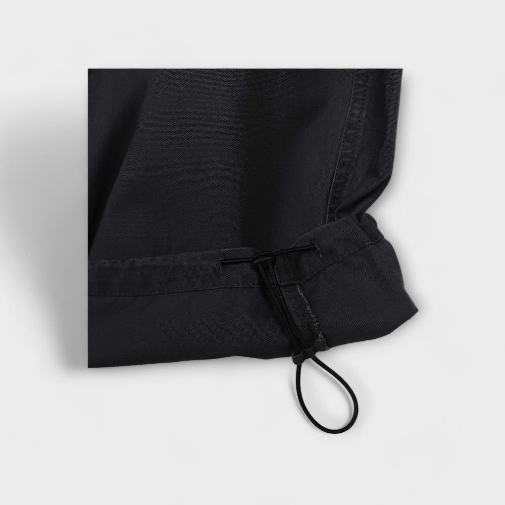 허리 밴딩과 밑단 조절 끈으로