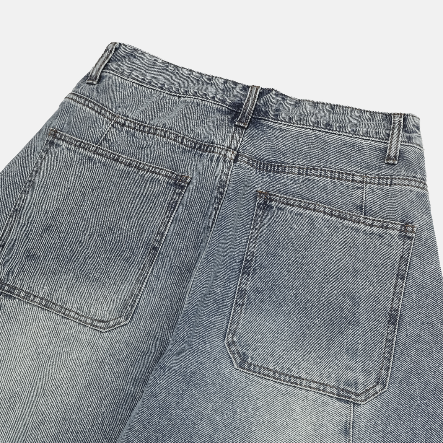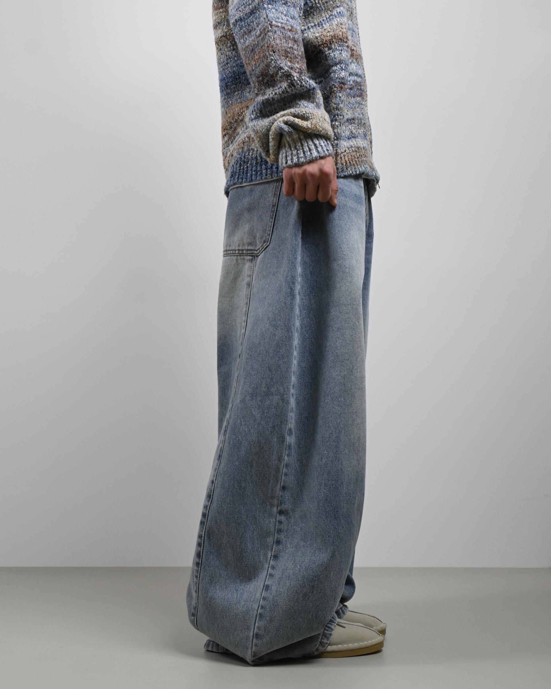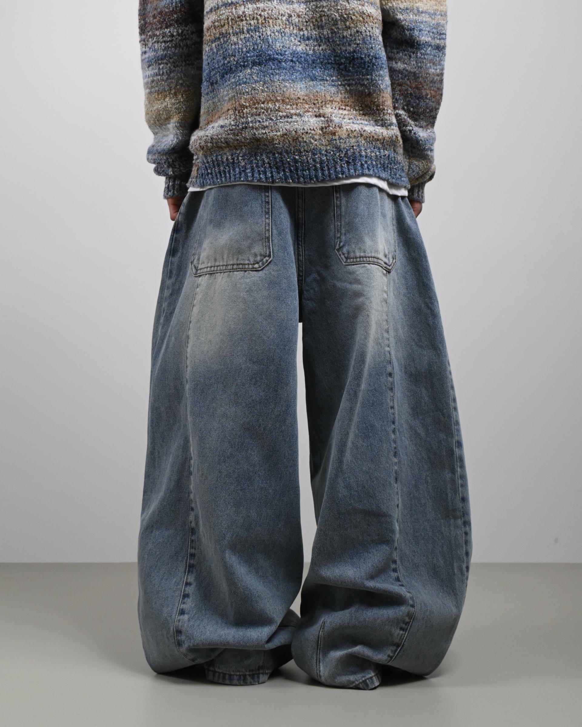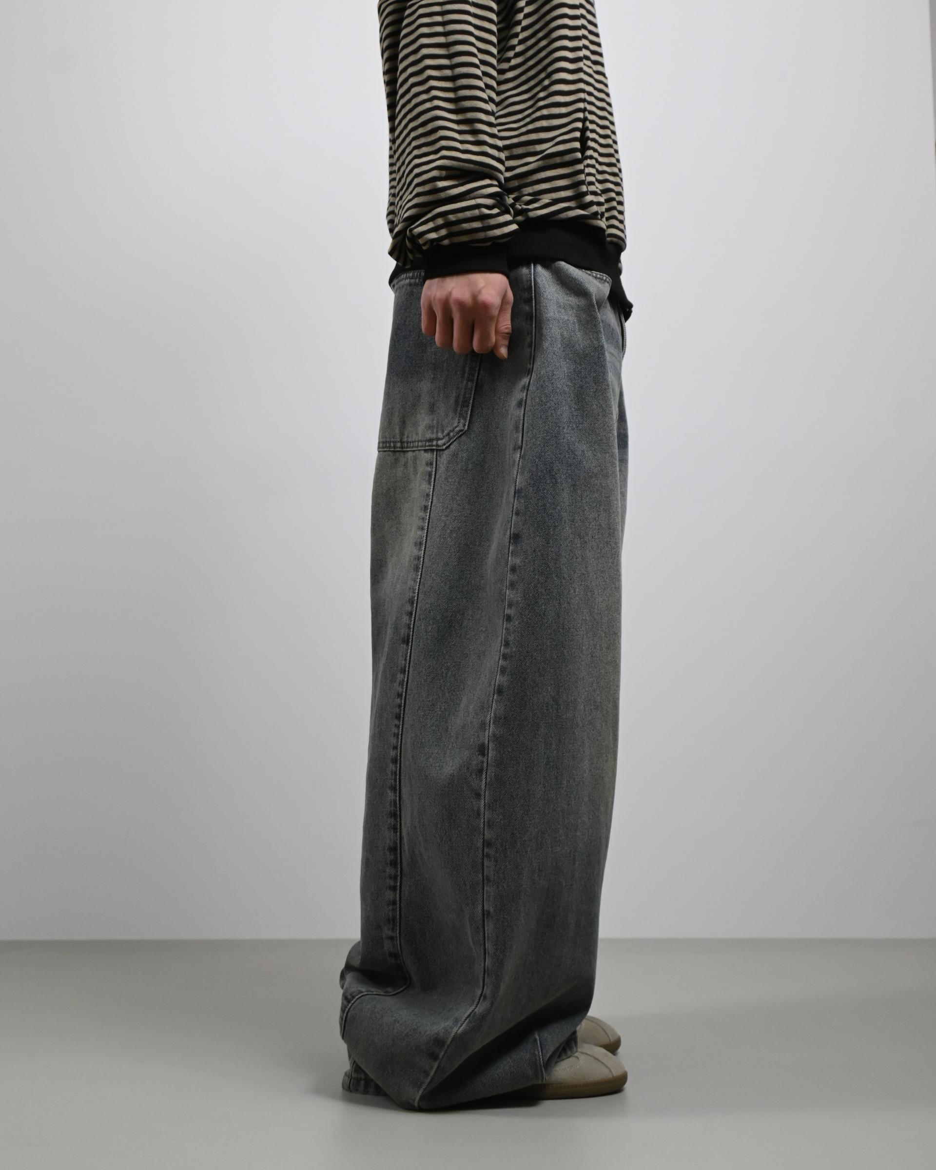 후면 절개라인이 돋보이는 데님 팬츠입니다.