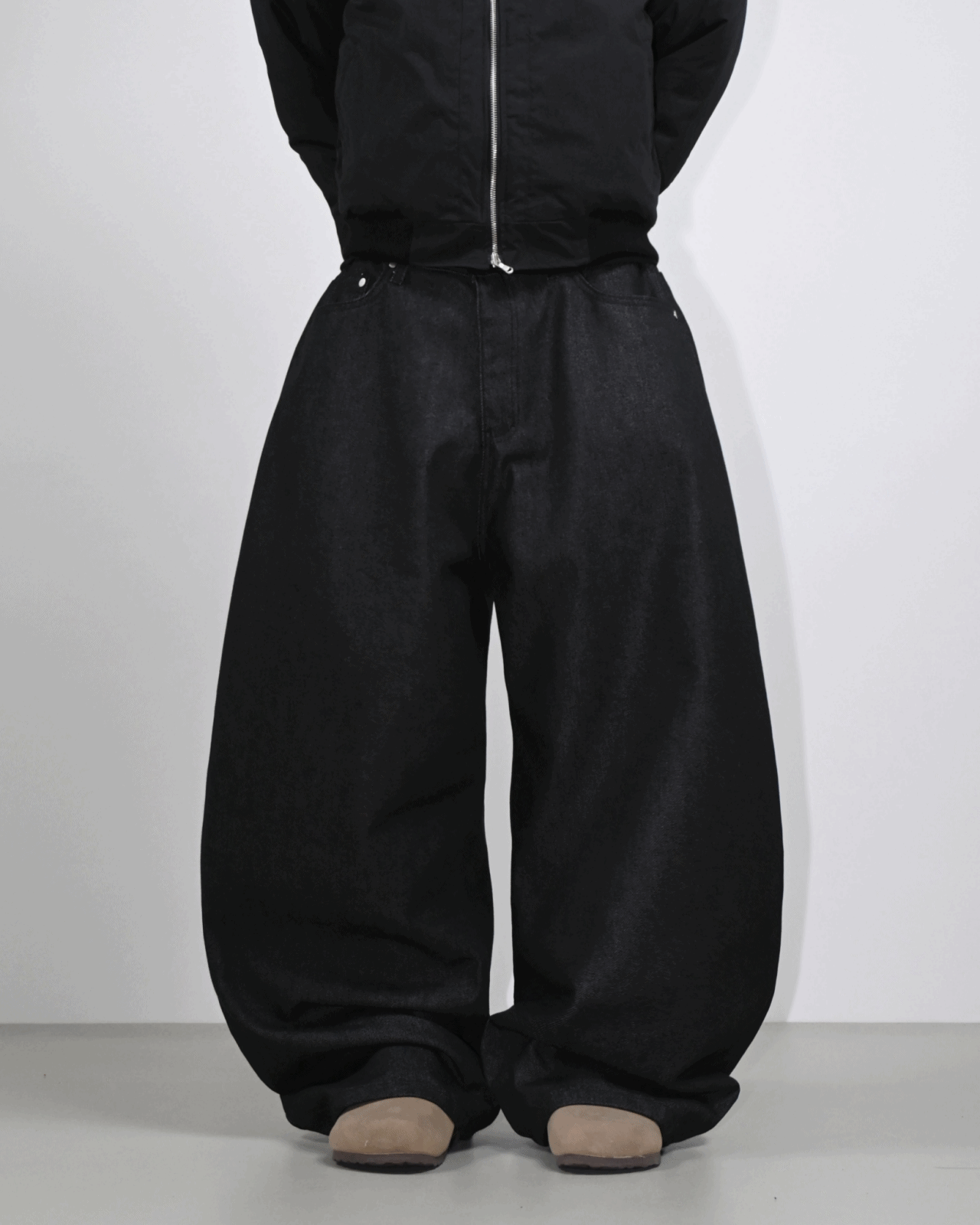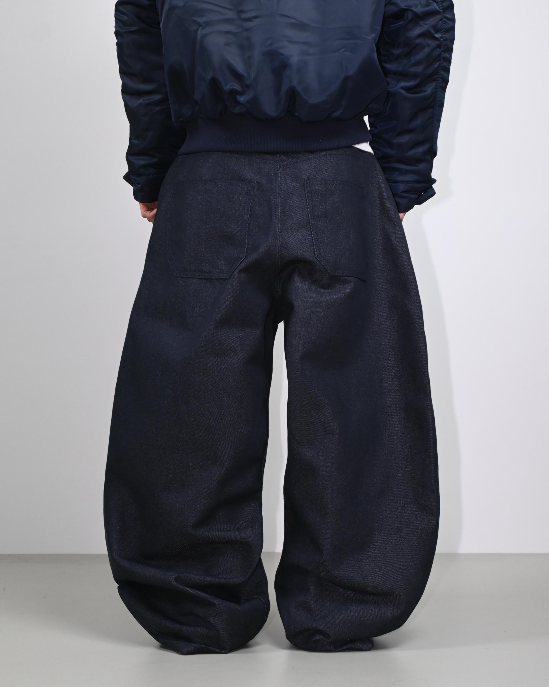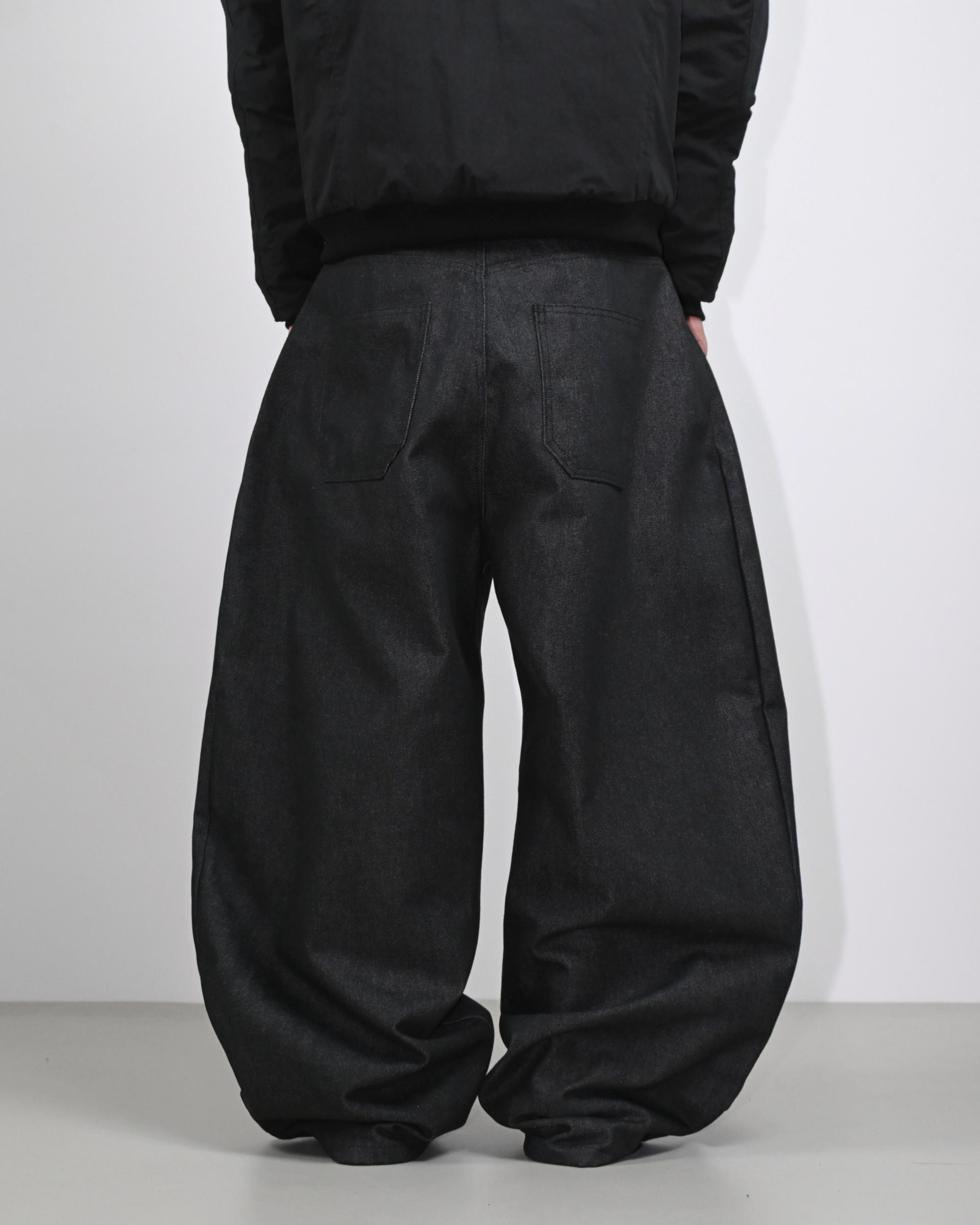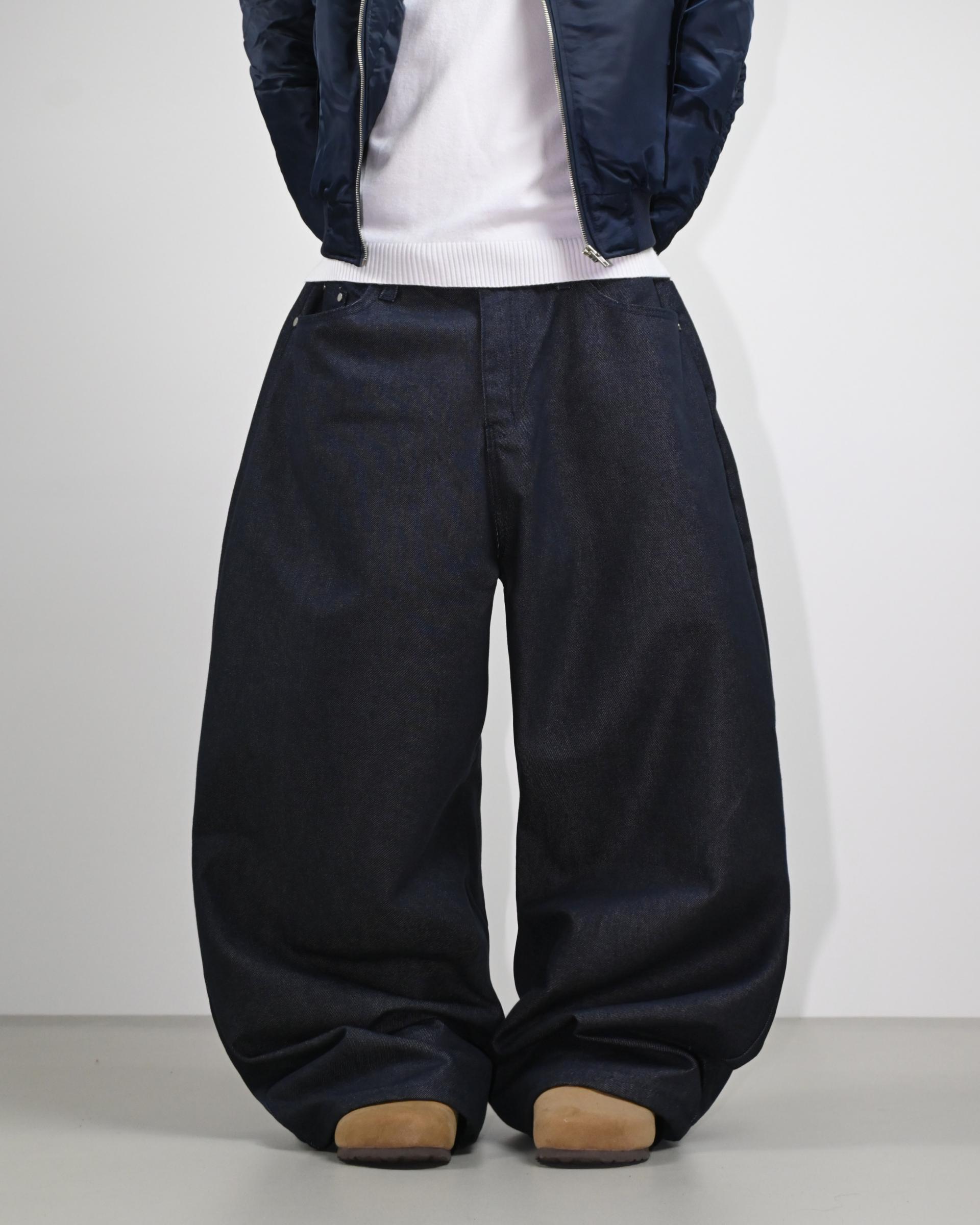 넉넉한 바지 통과 커브 라인으로