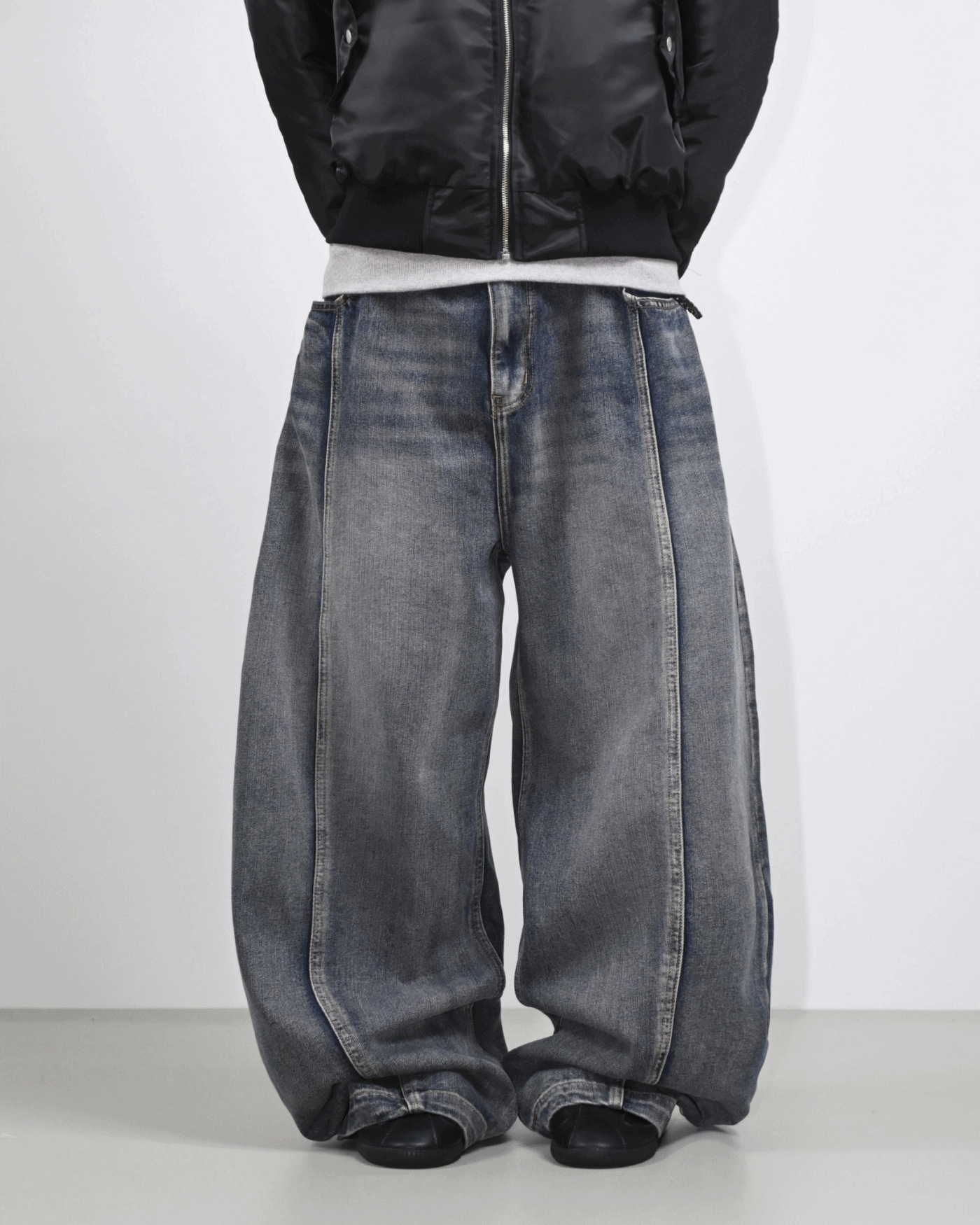 커브 라인으로 휘어진 와이드핏