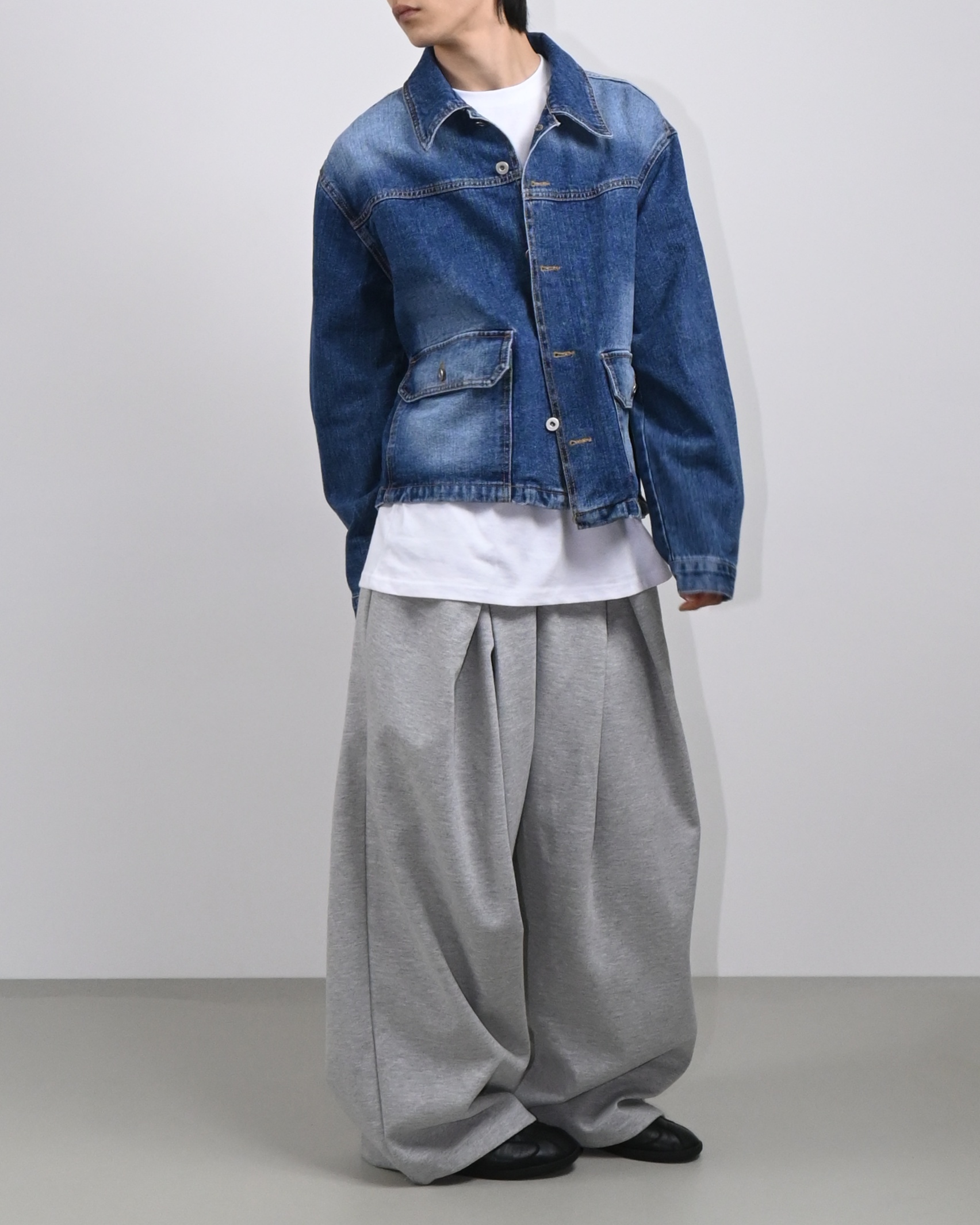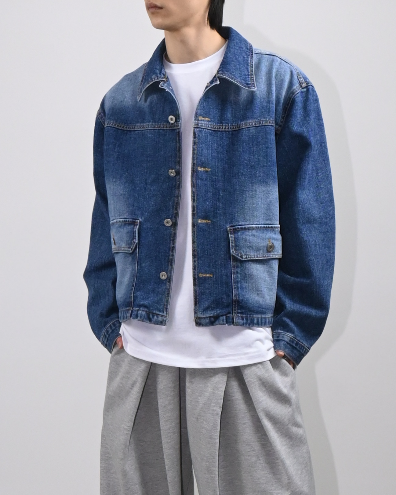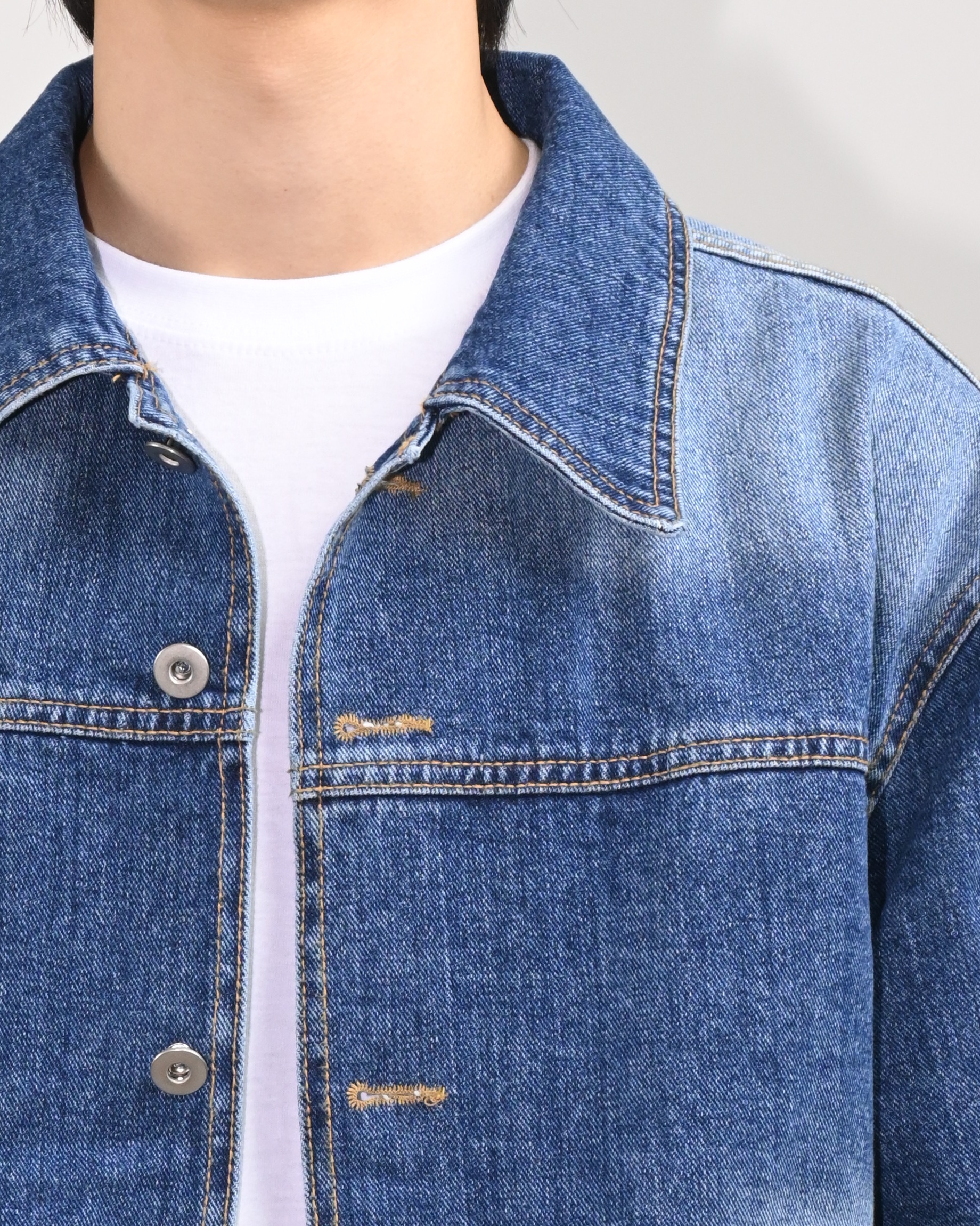 전후면에 넓고 밝은 워싱으로 유니크한 매력을 더했습니다.