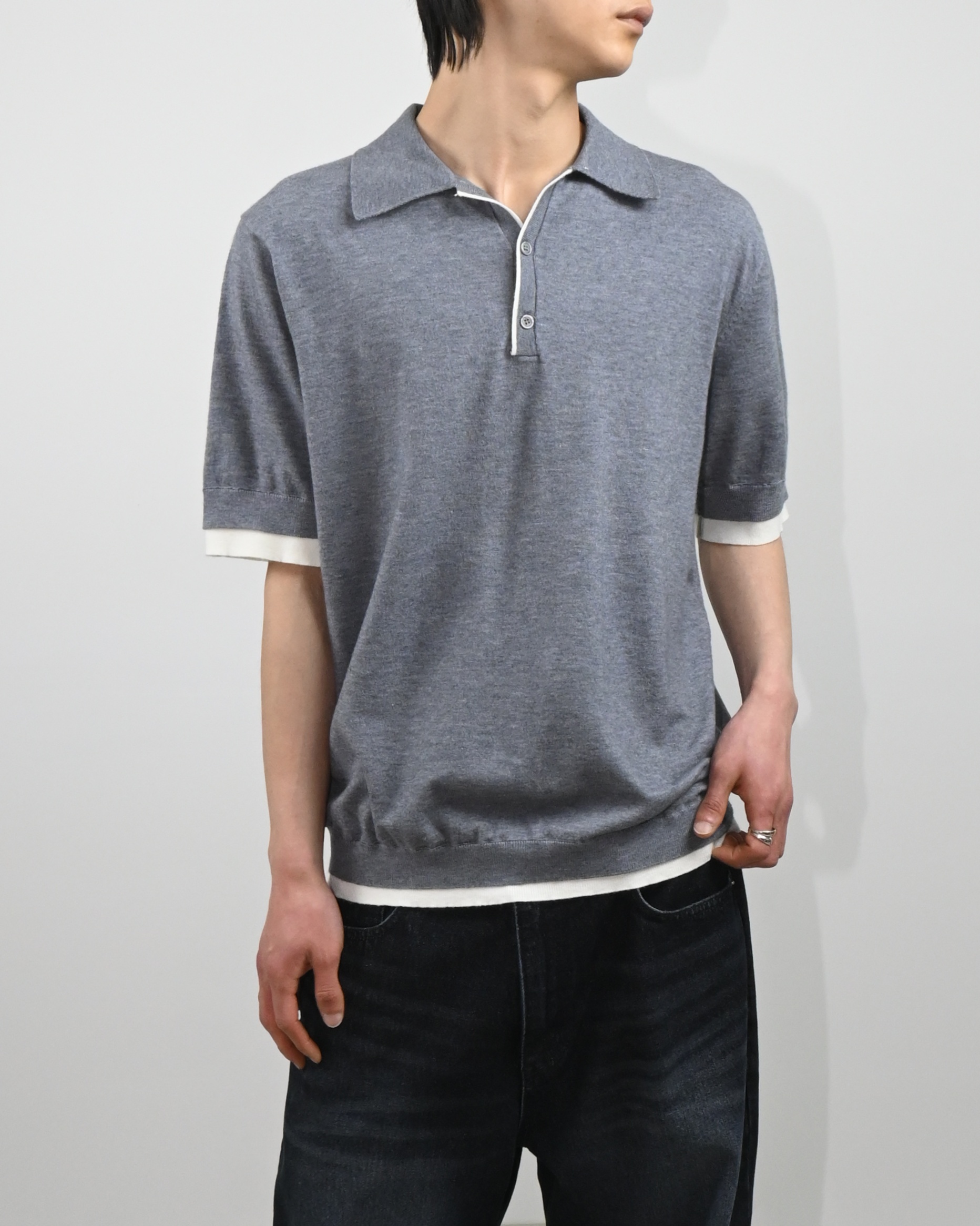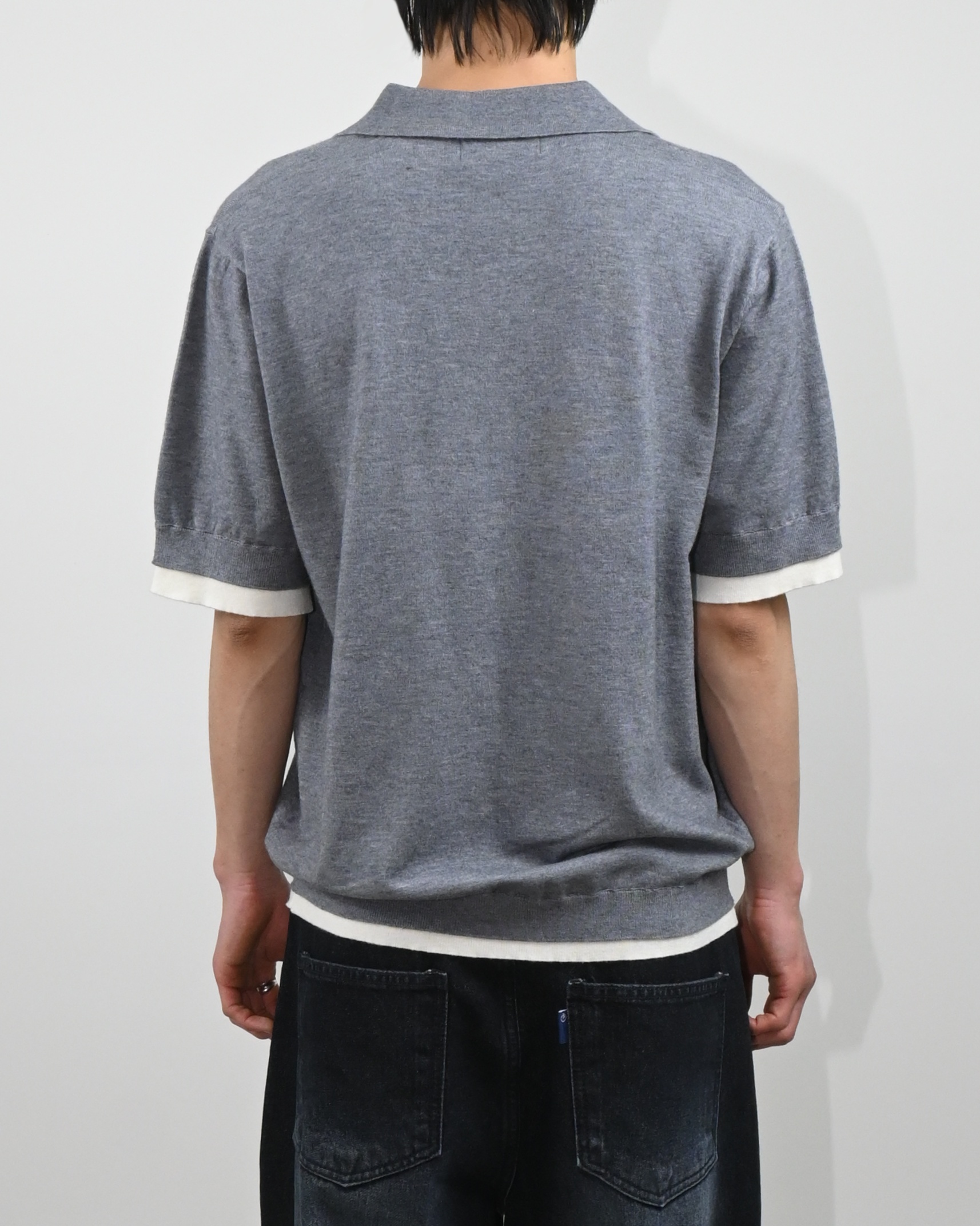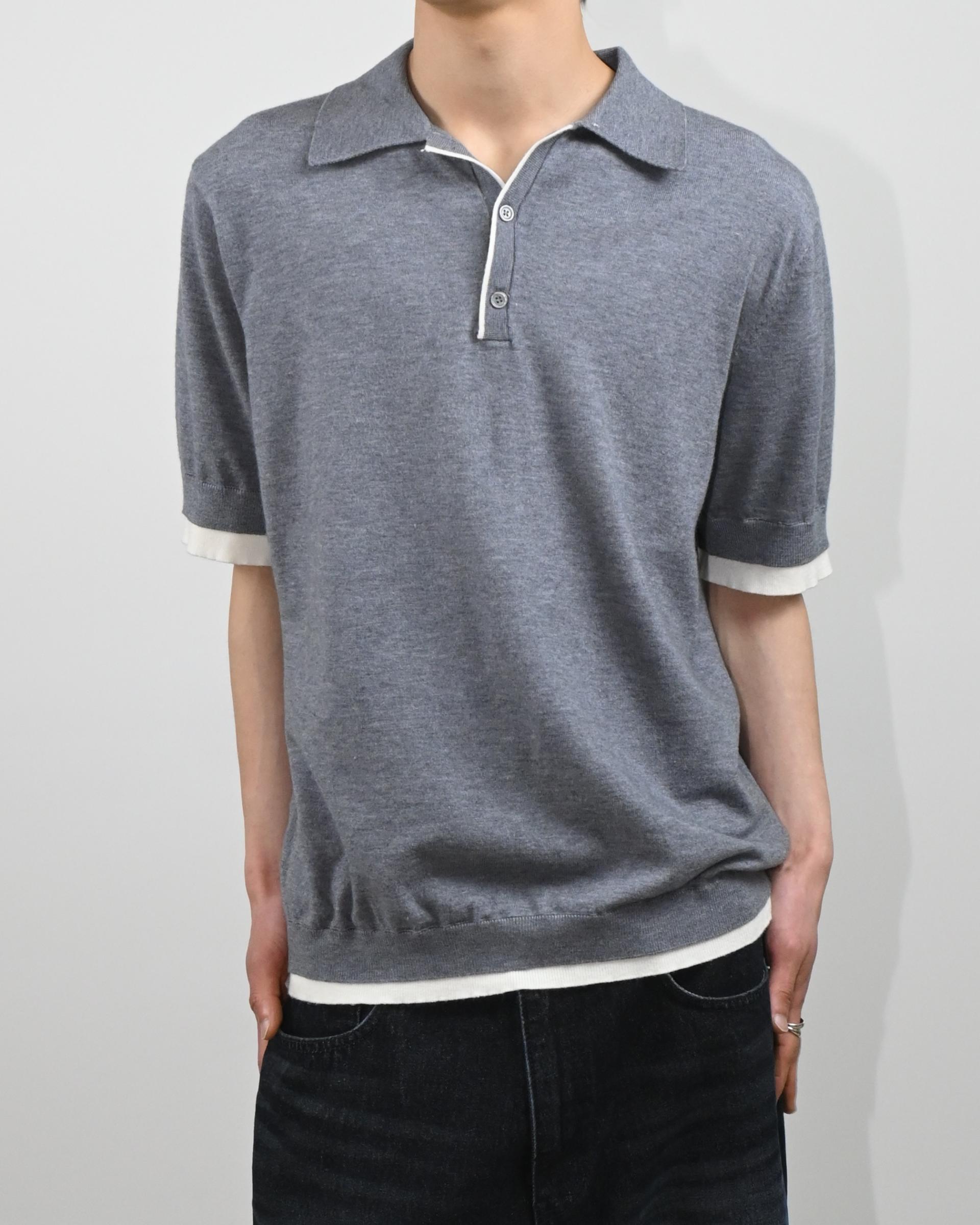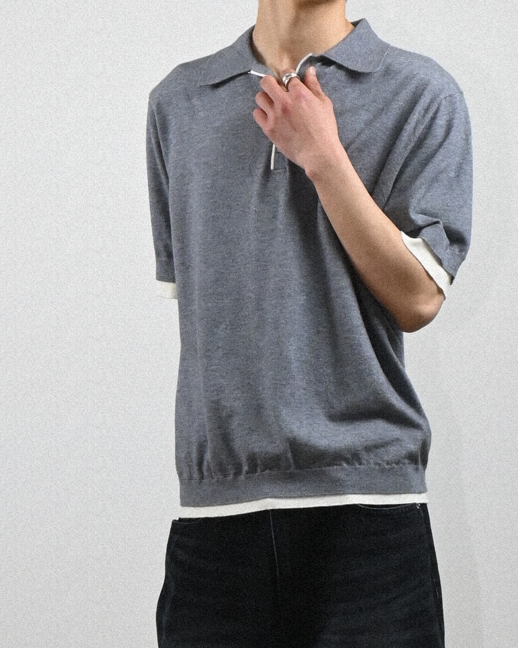 레이어드한 듯한 디자인이 돋보이는 반팔 니트