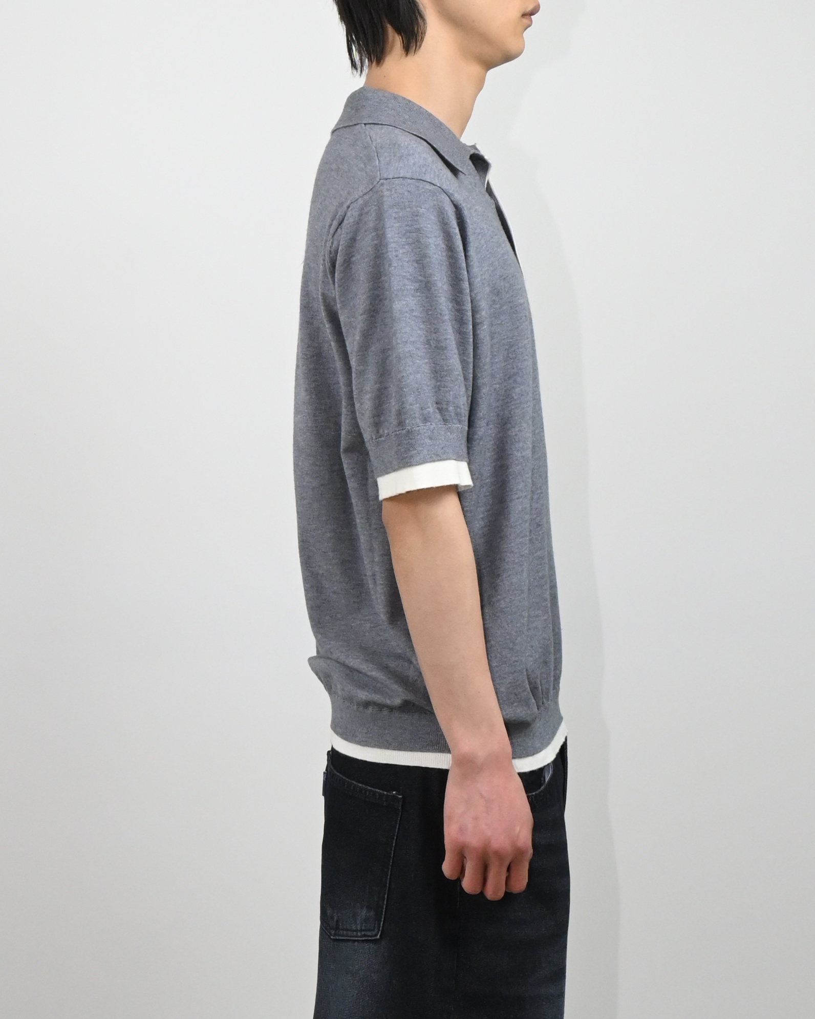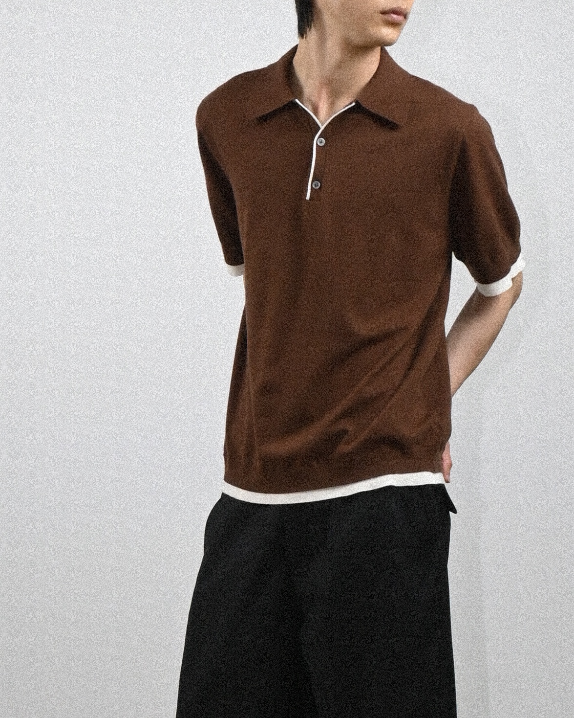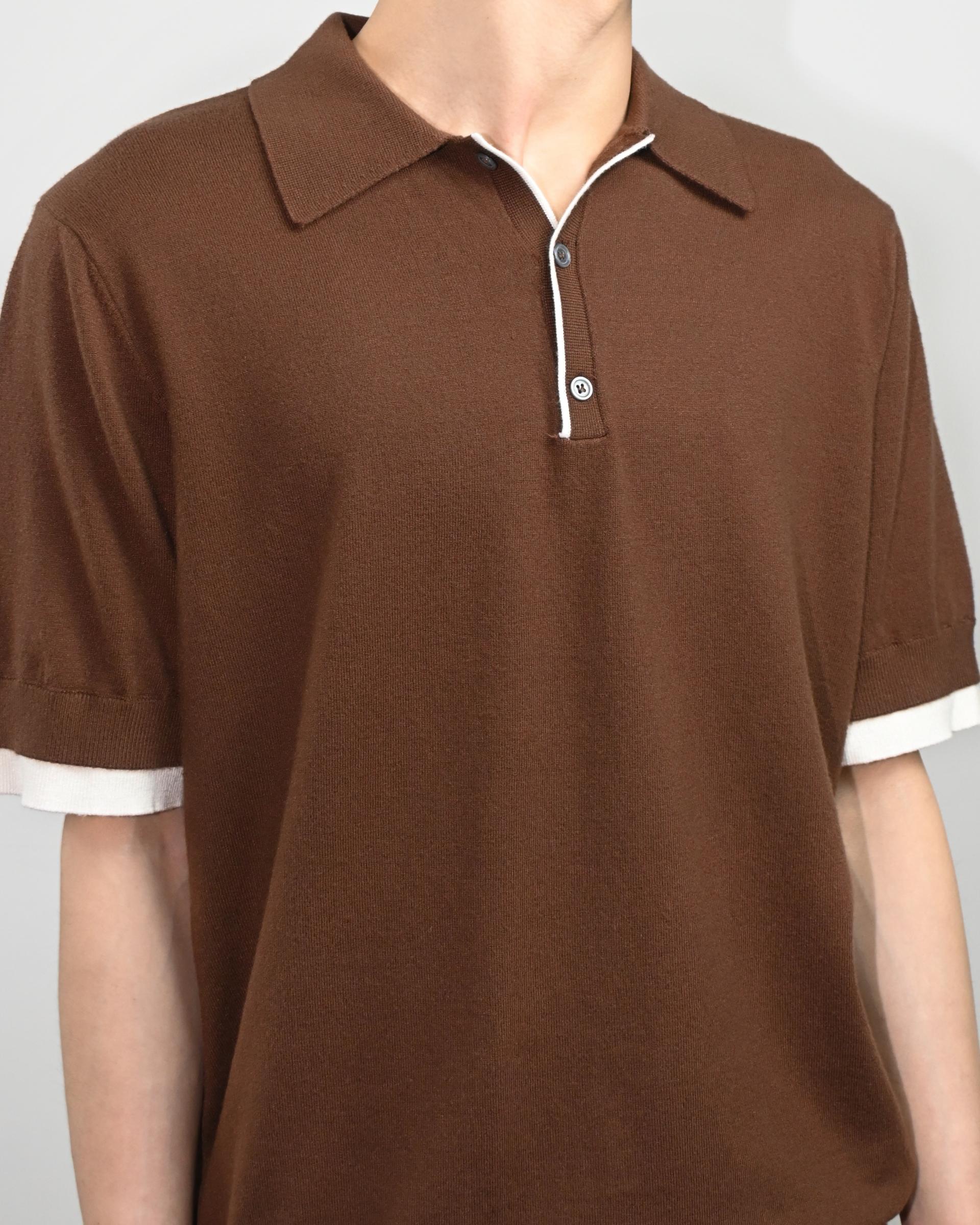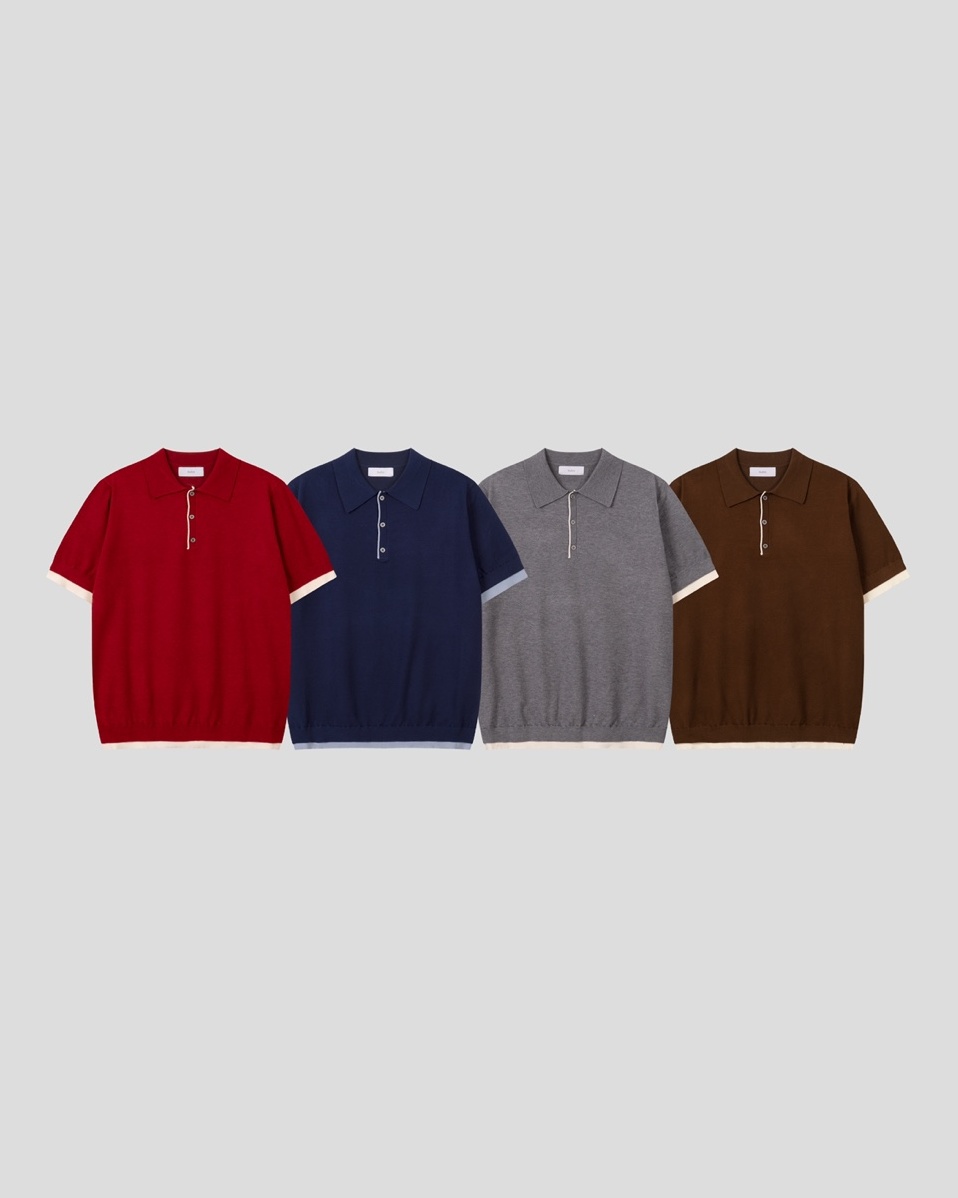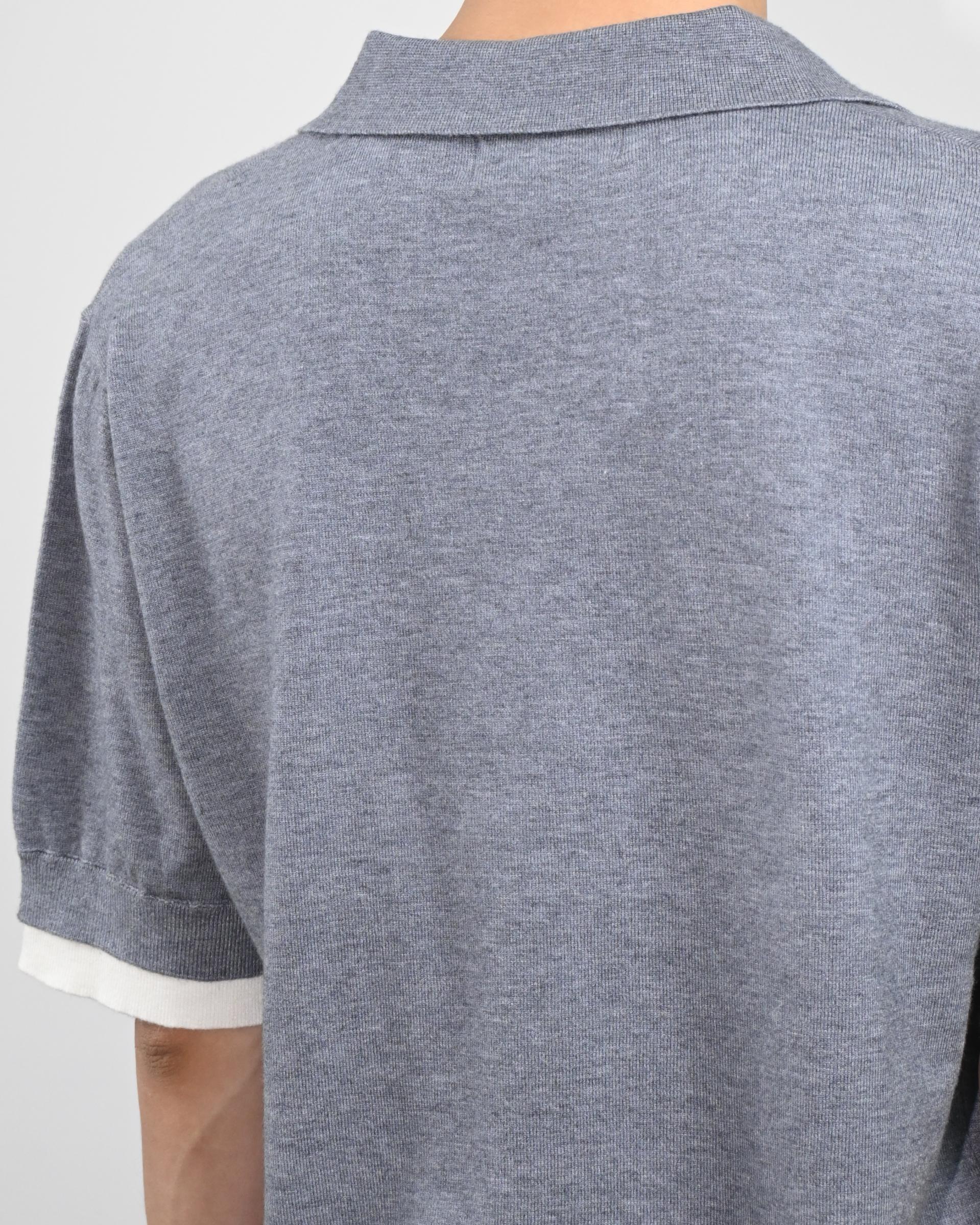 레이어드한 듯한 디자인이 돋보이는 반팔 니트