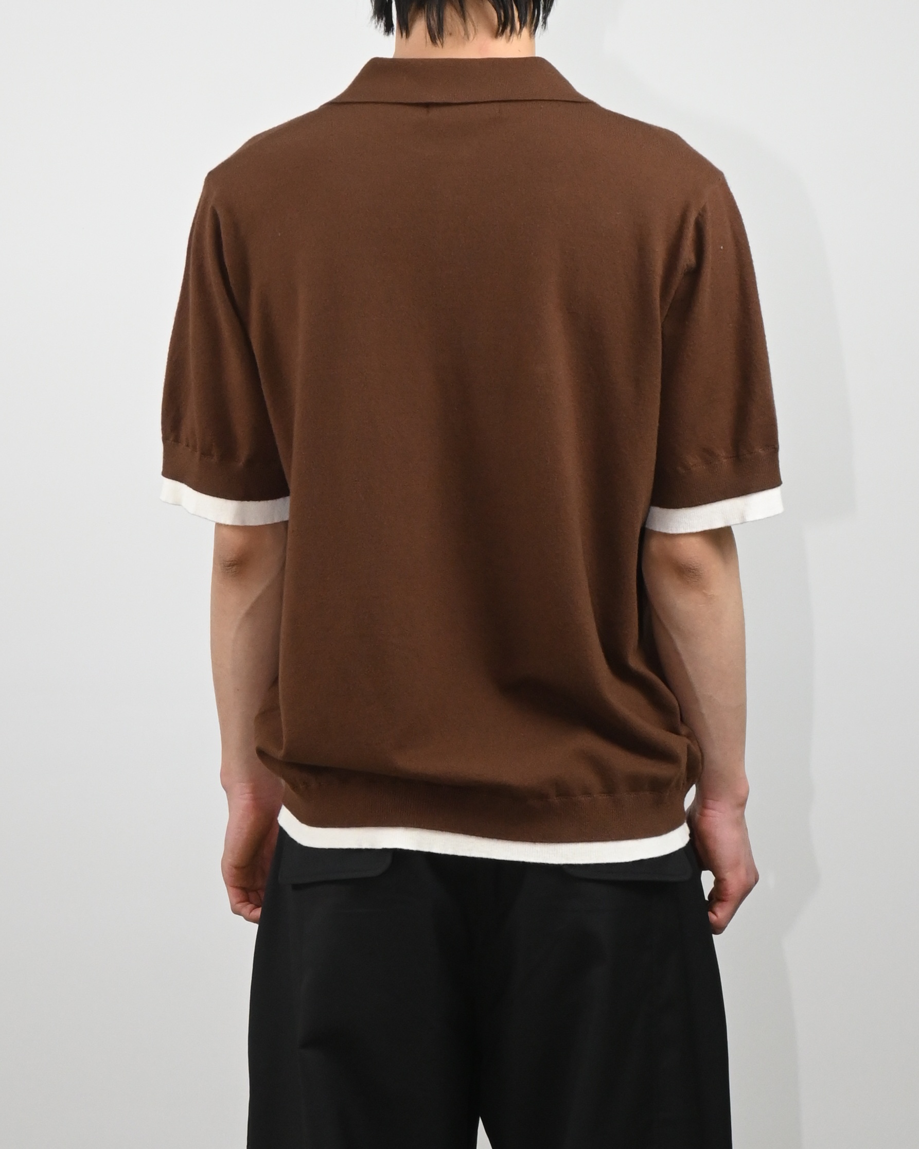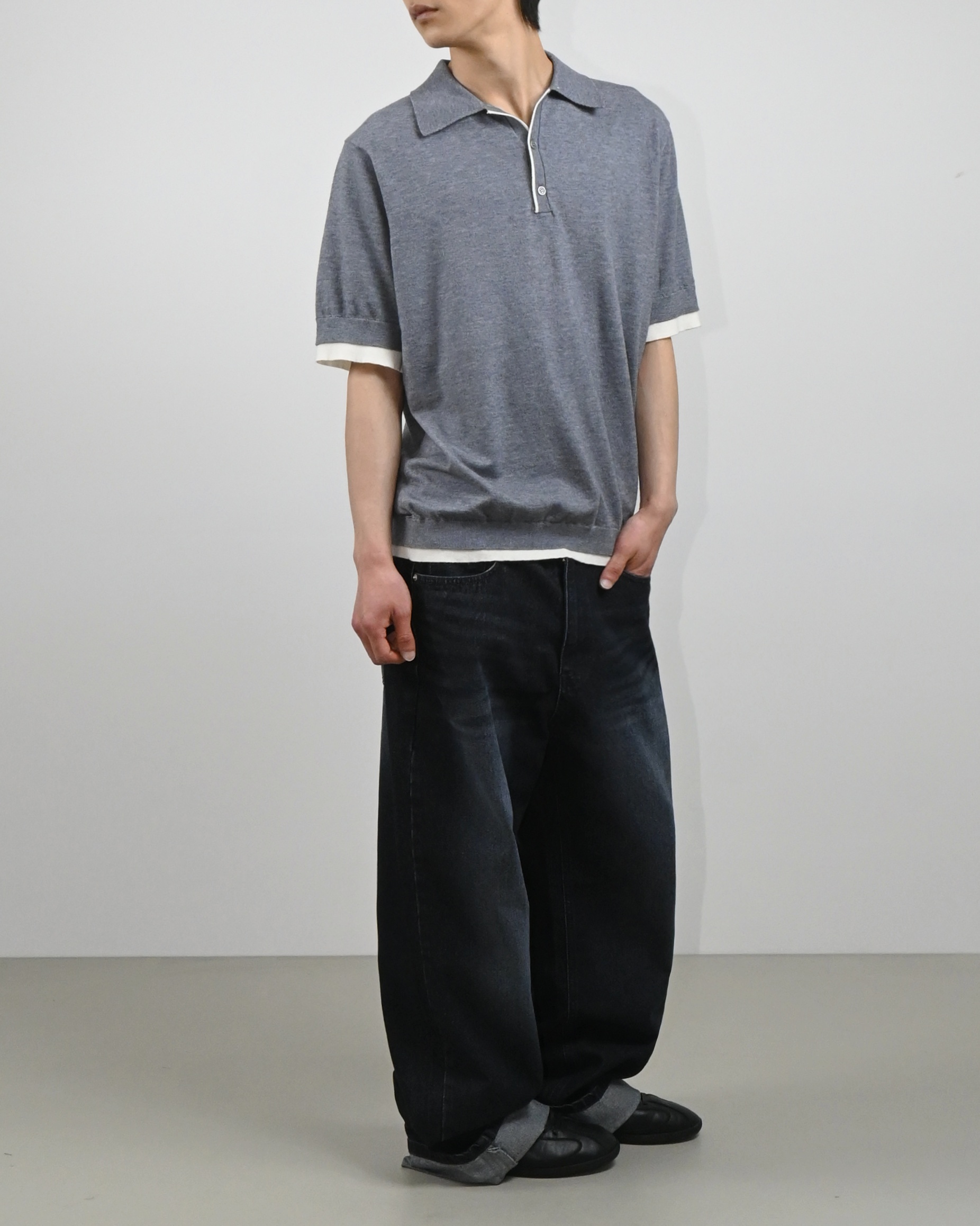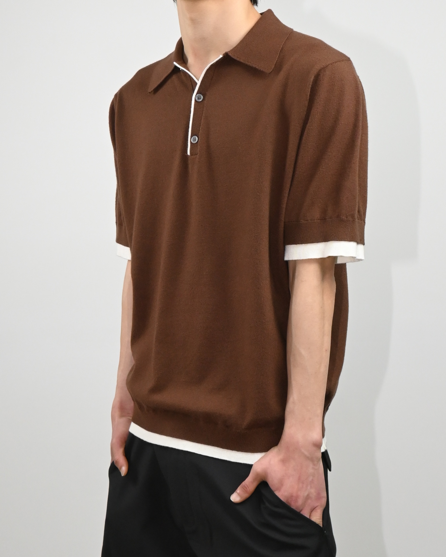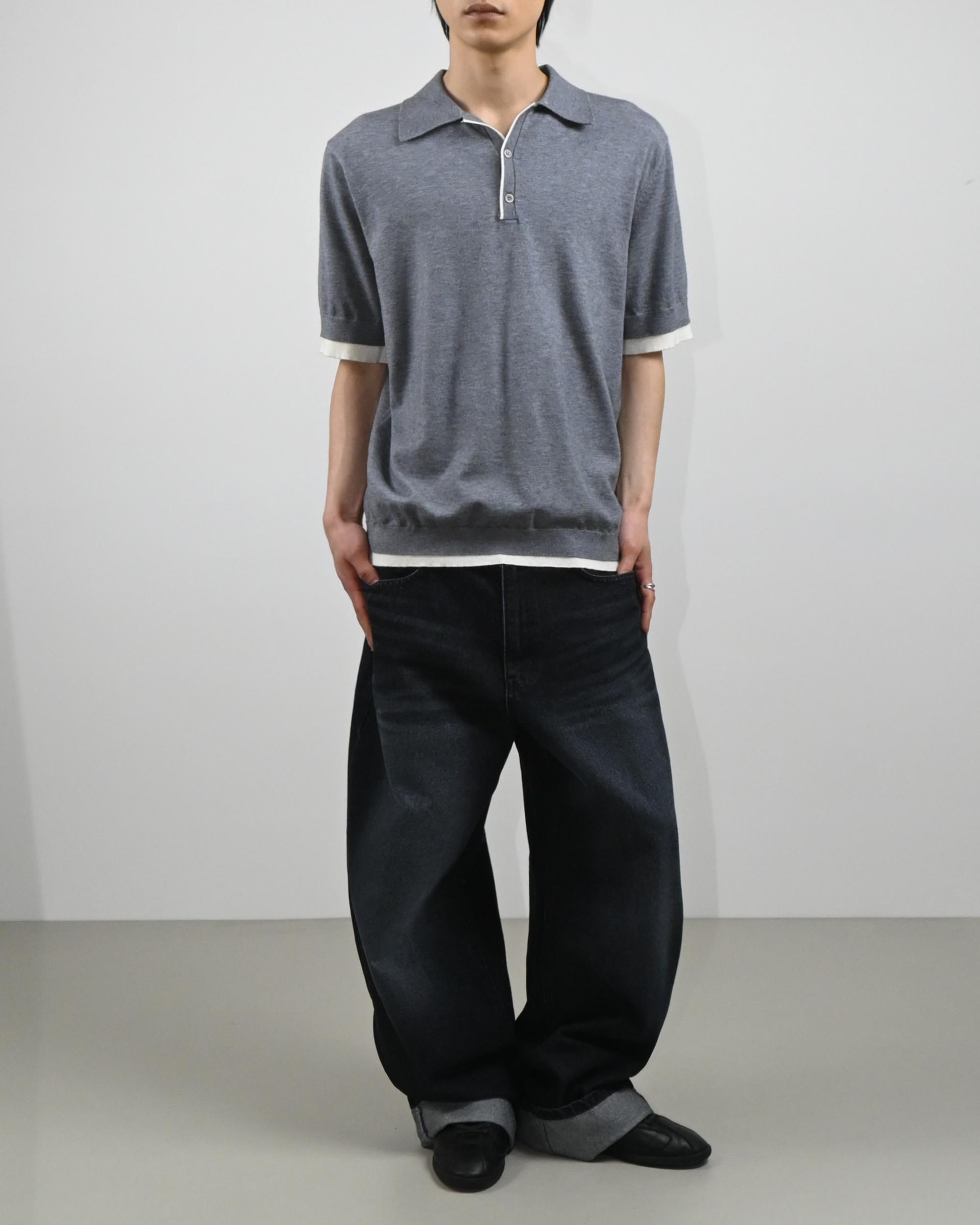 레이어드한 듯한 디자인이 돋보이는 반팔 니트