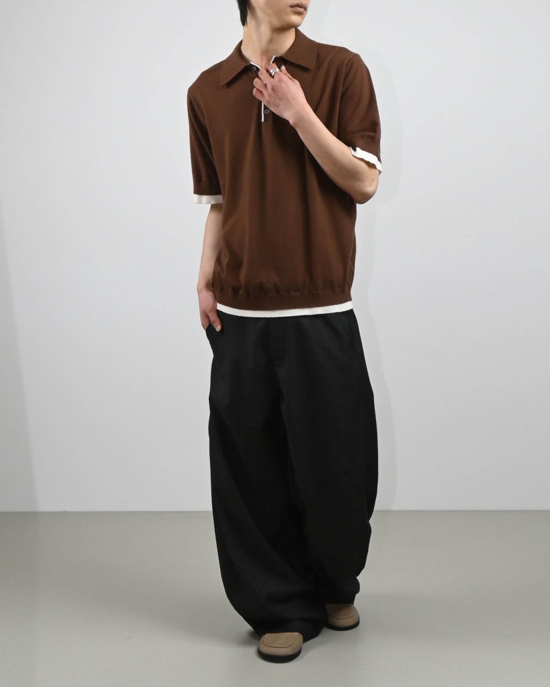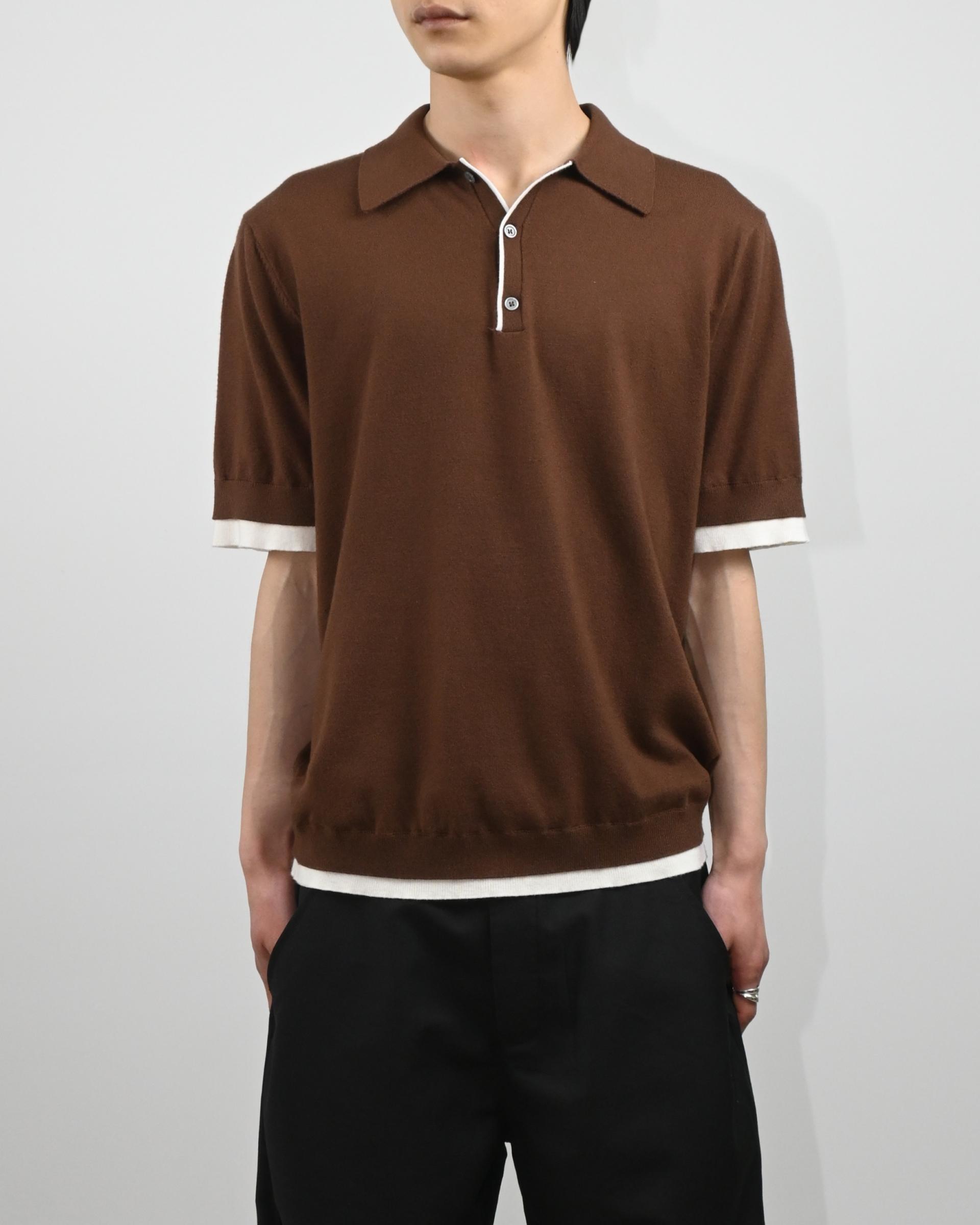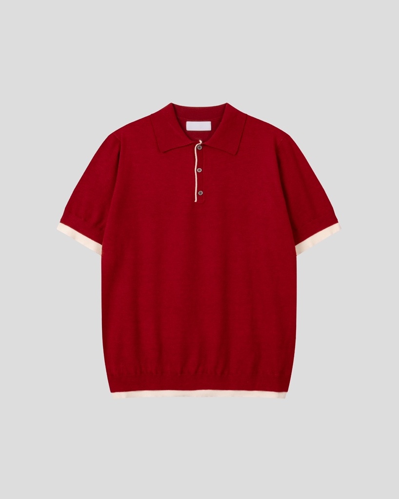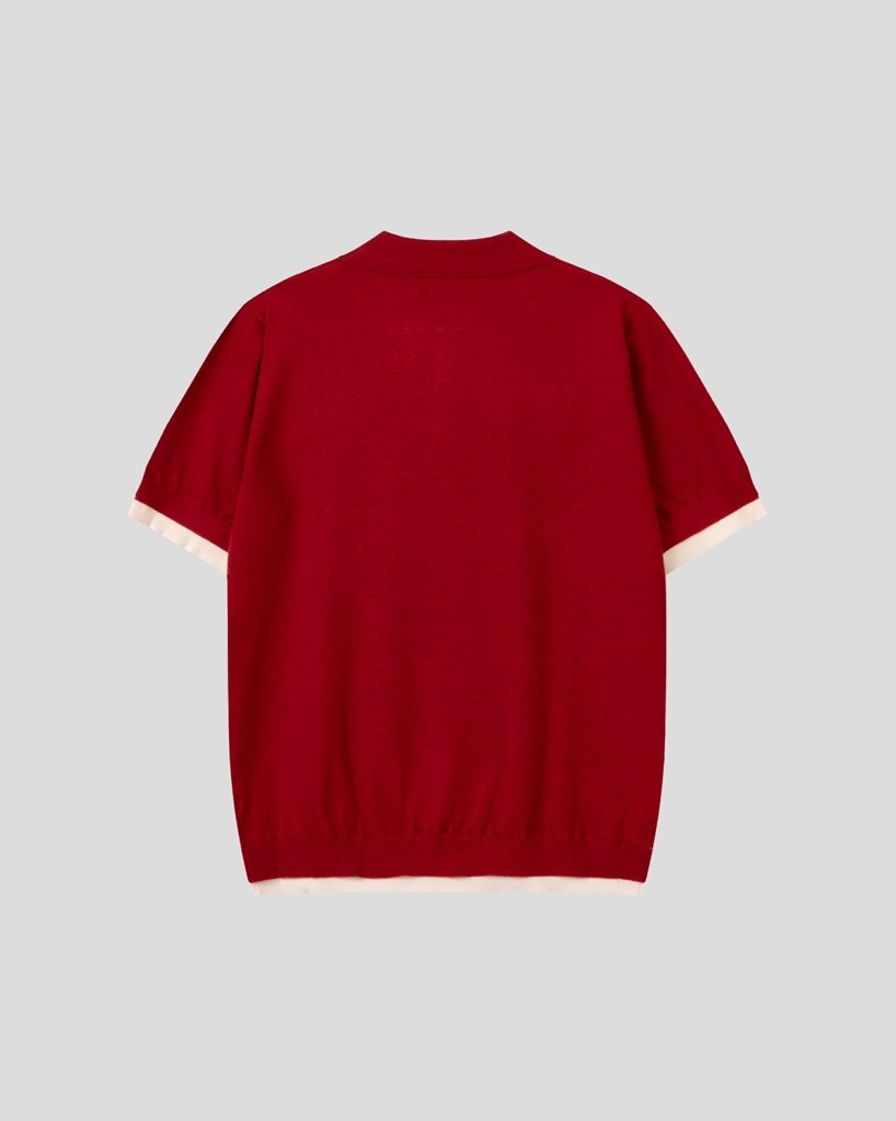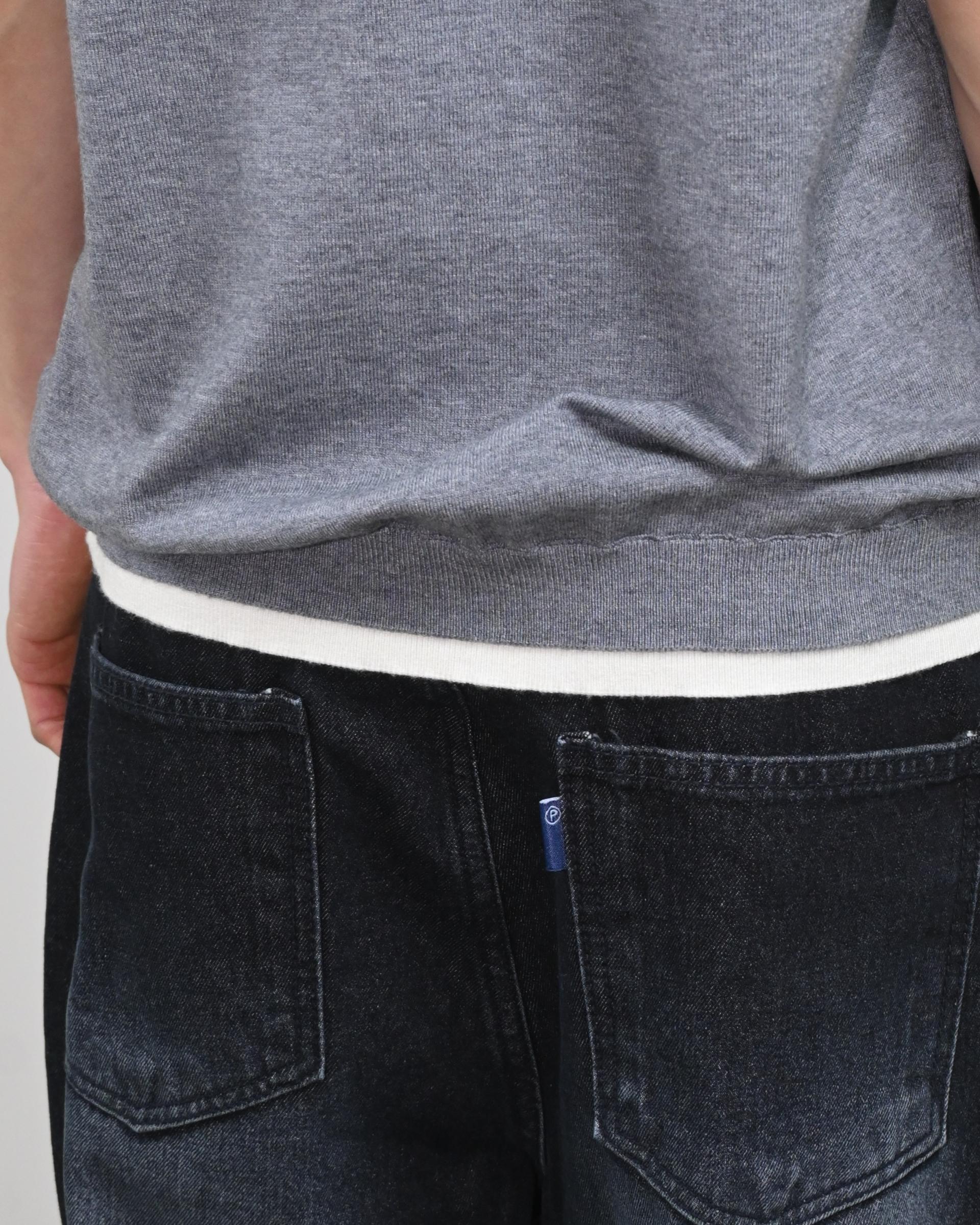 레이어드한 듯한 디자인이 돋보이는 반팔 니트