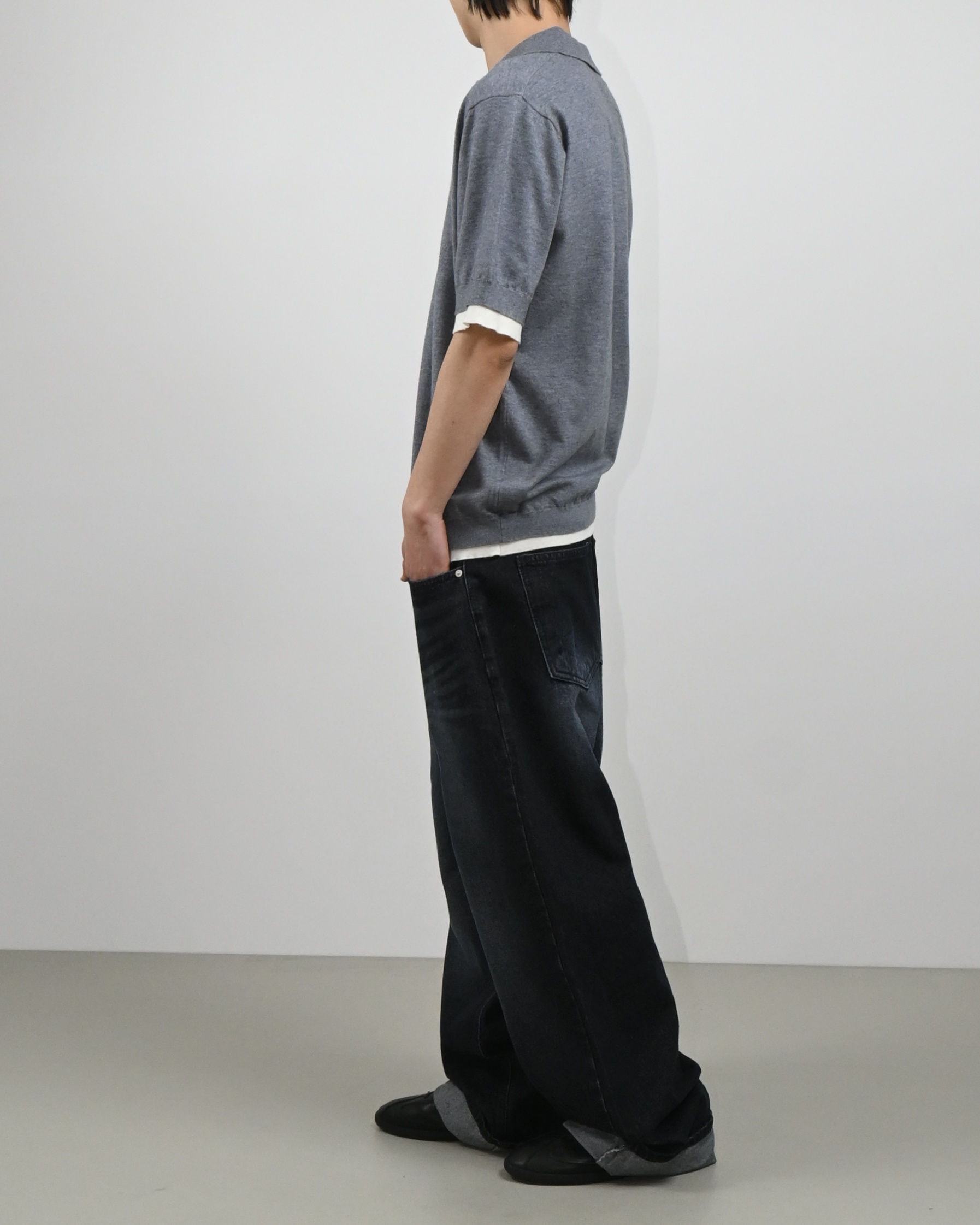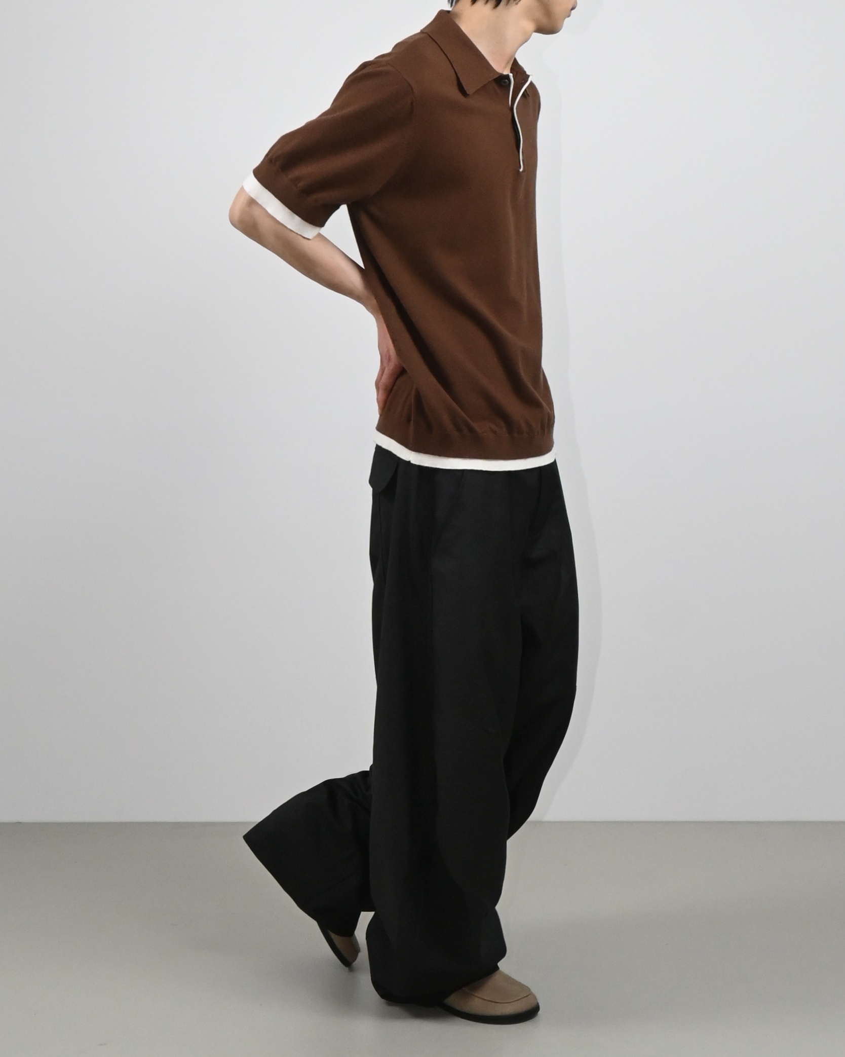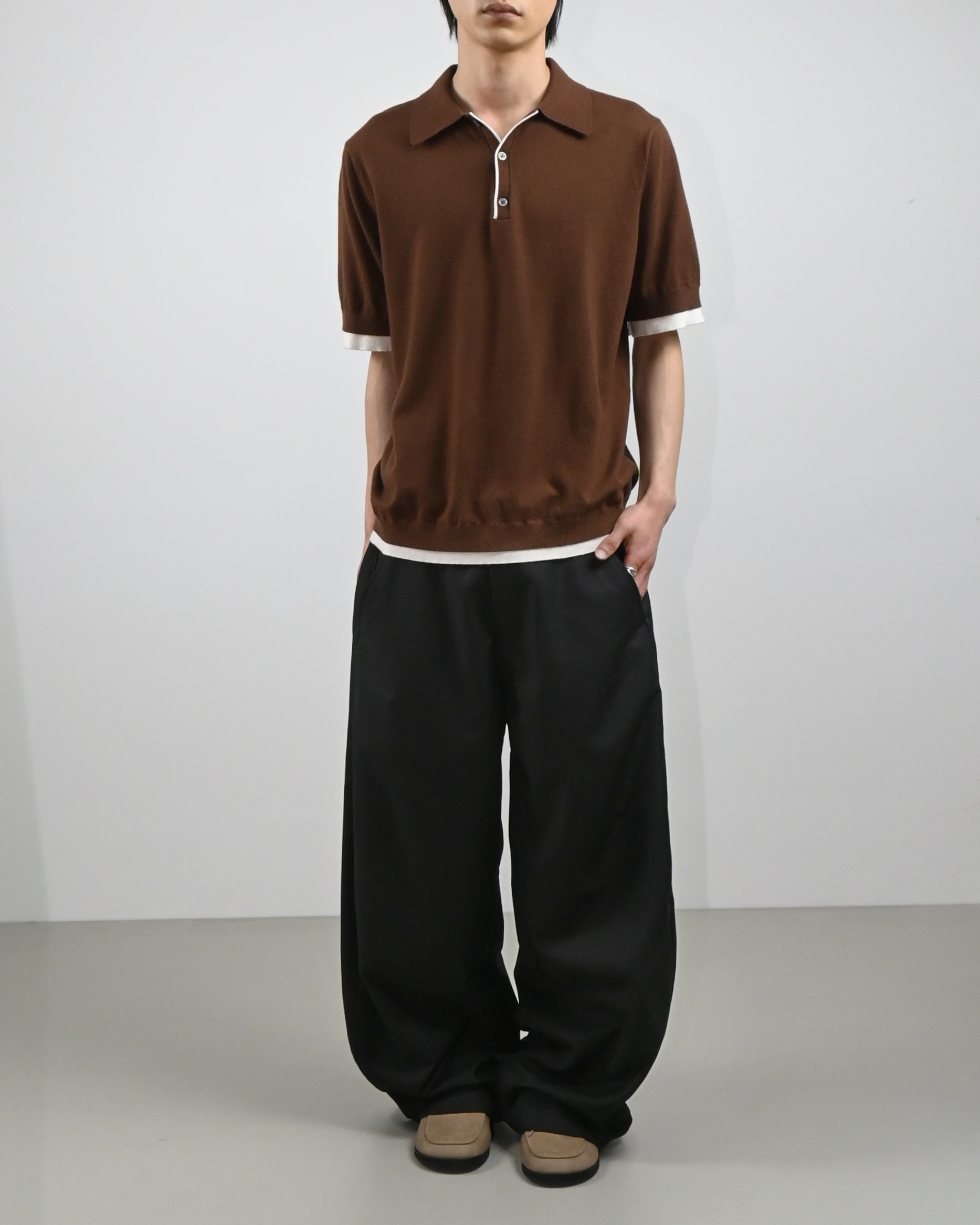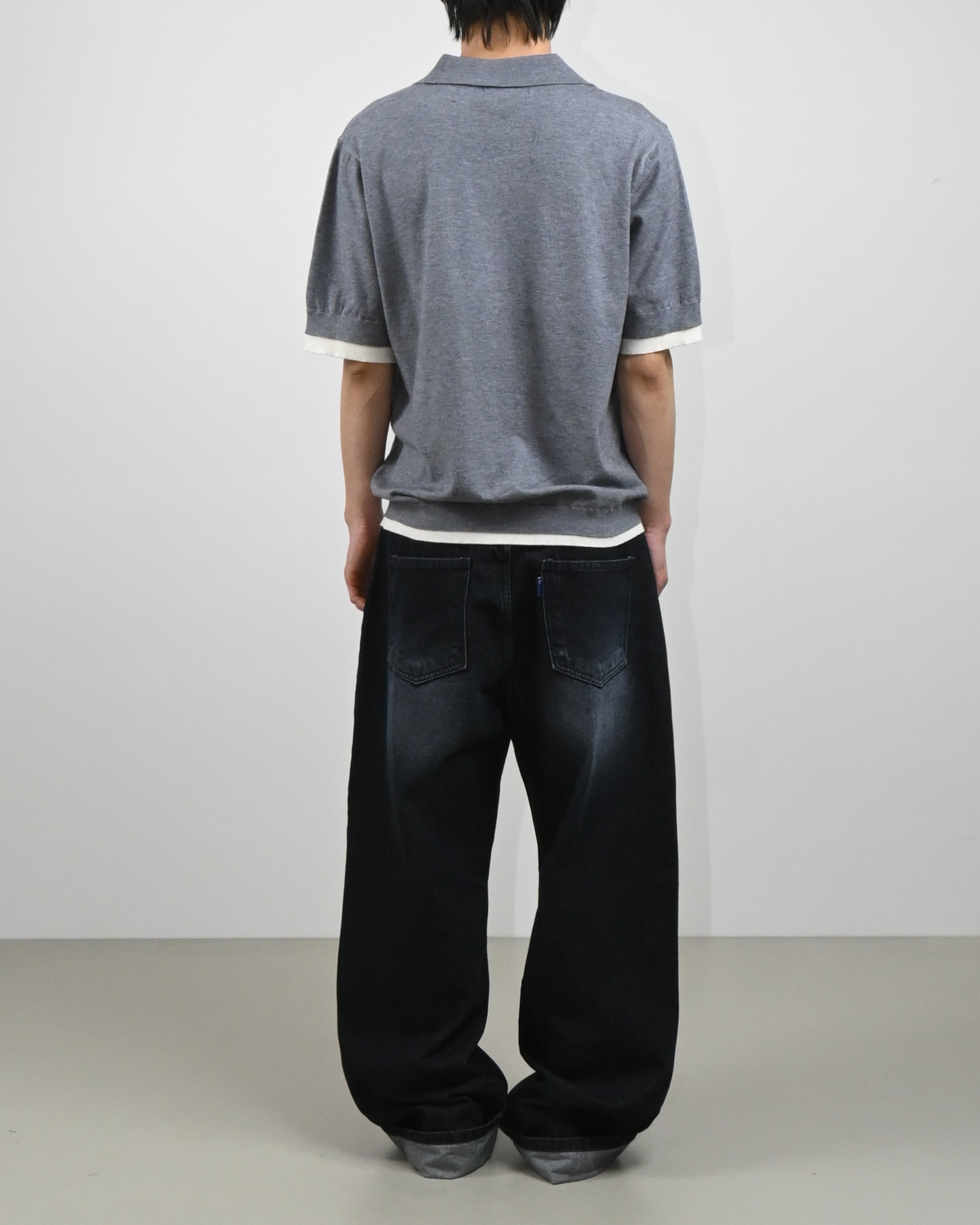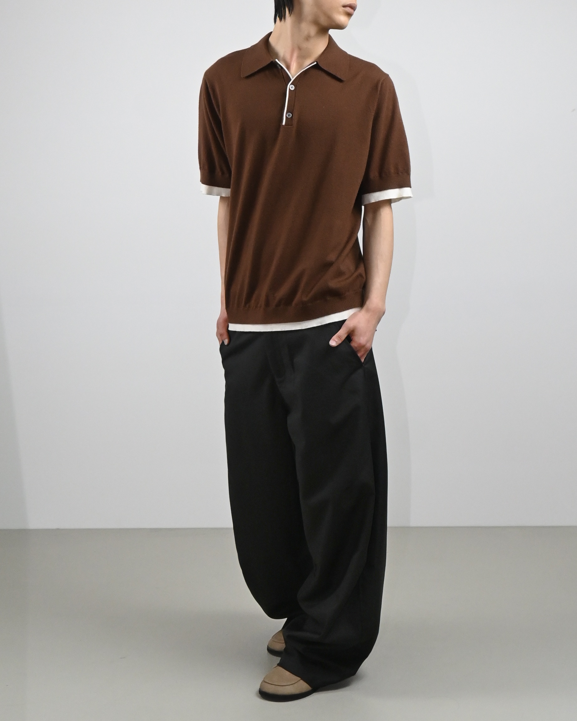 레이어드한 듯한 디자인이 돋보이는 반팔 니트