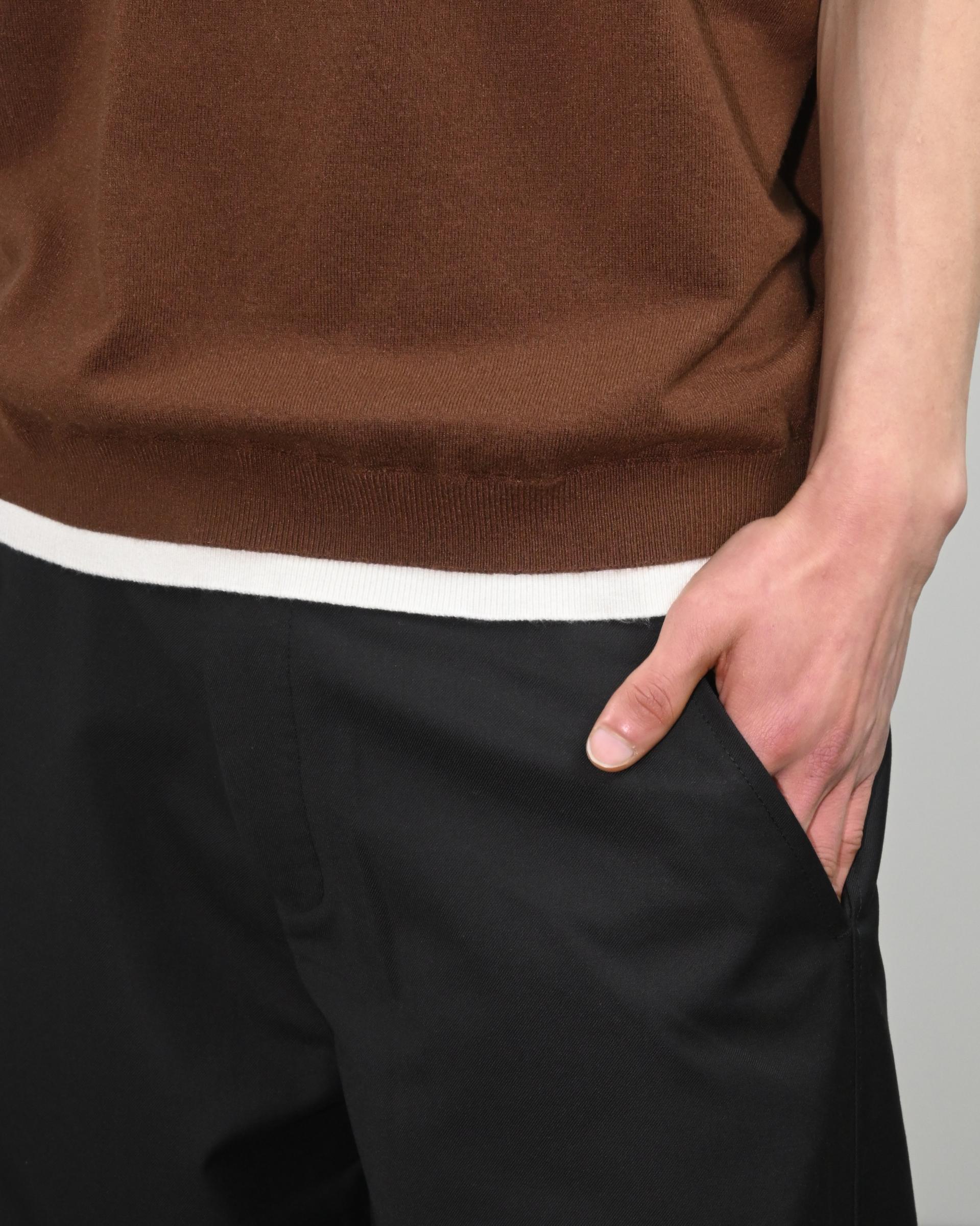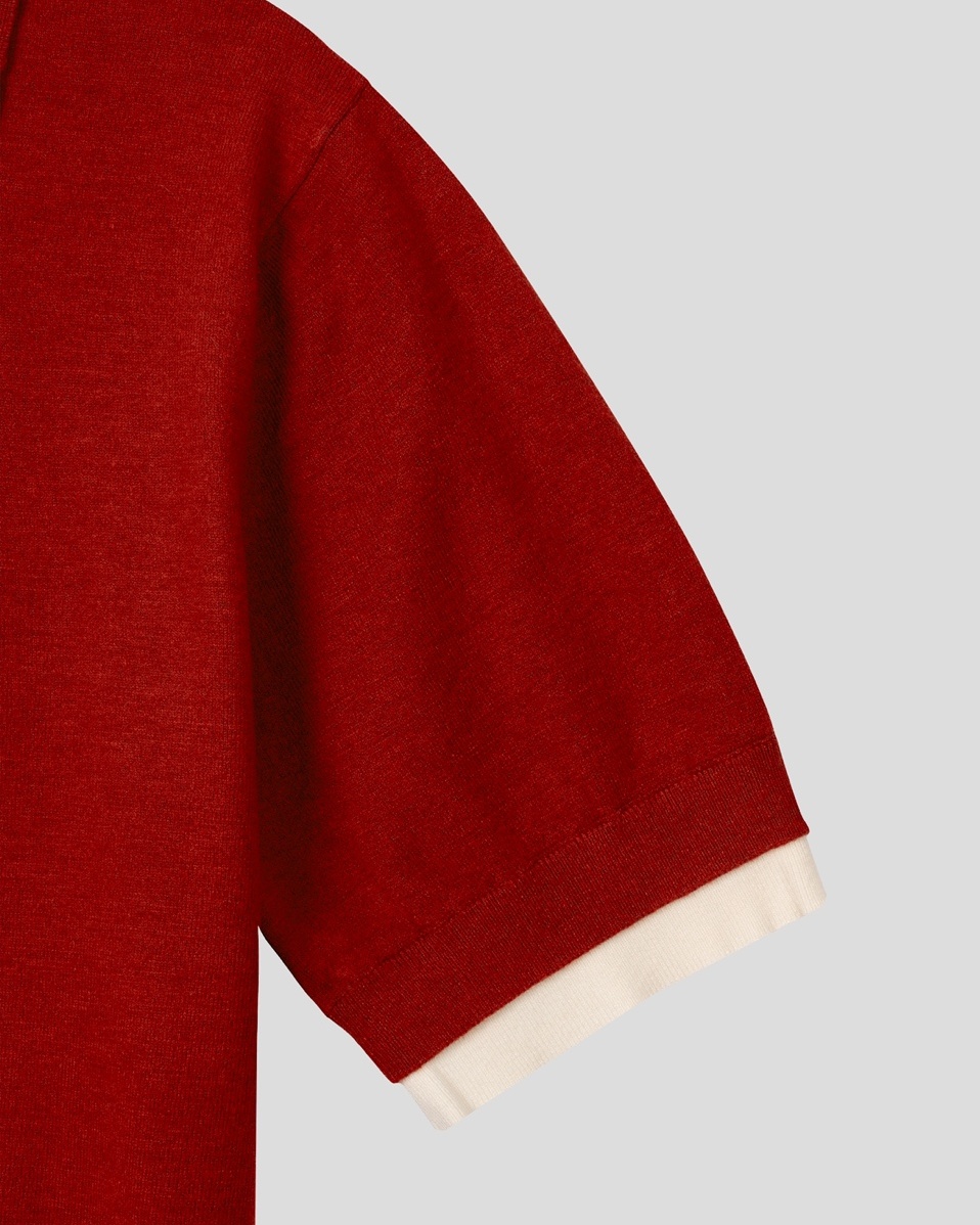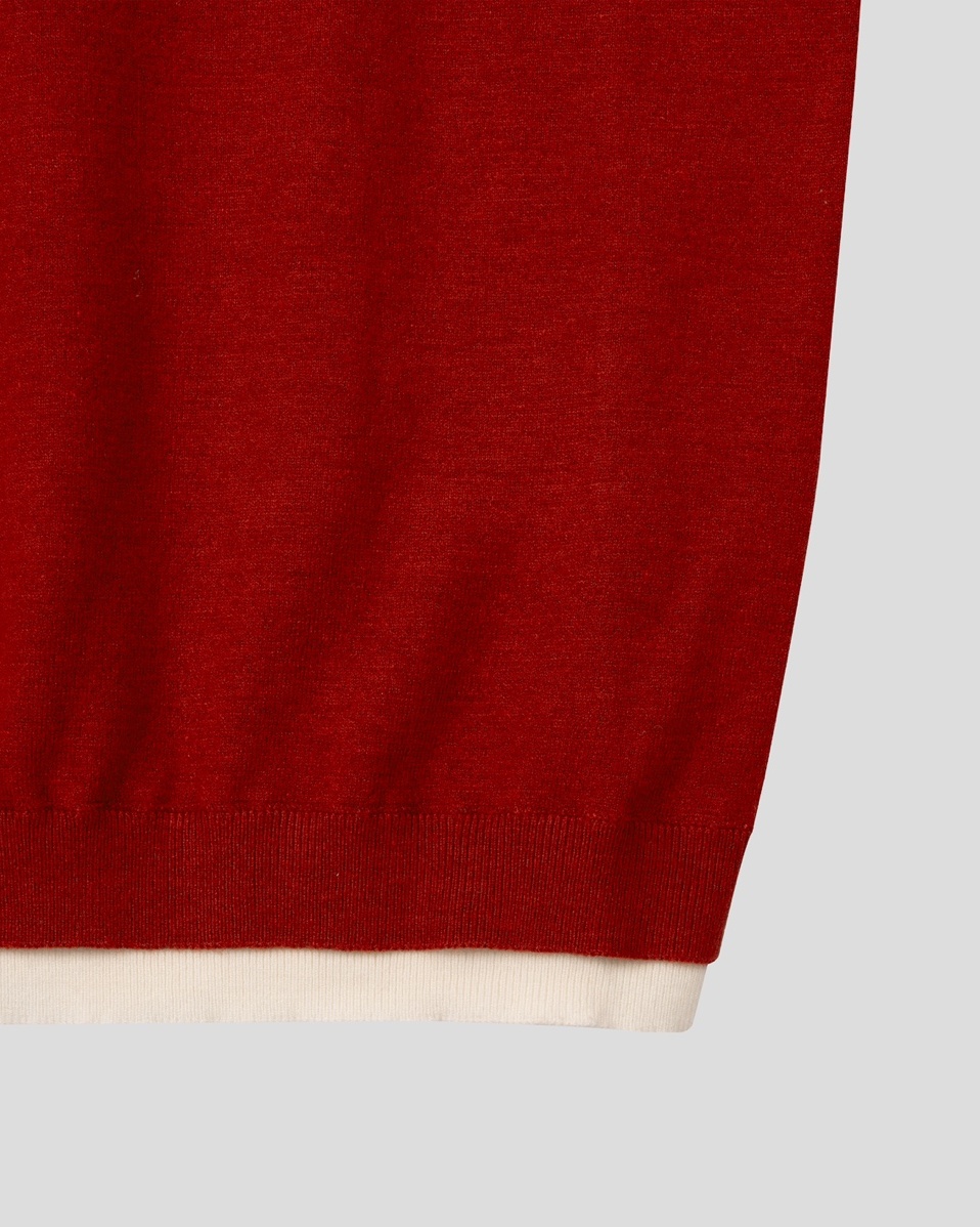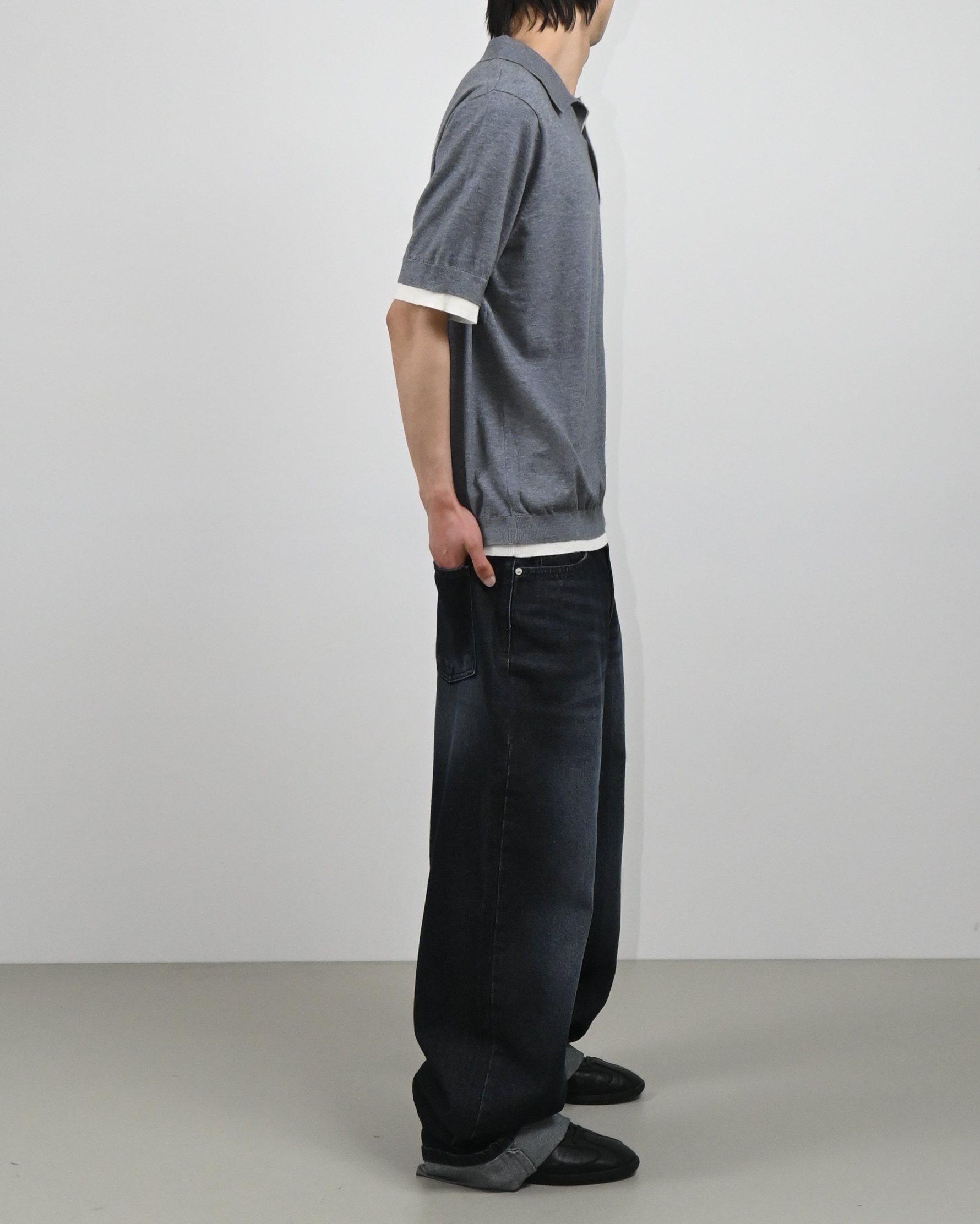 레이어드한 듯한 디자인이 돋보이는 반팔 니트