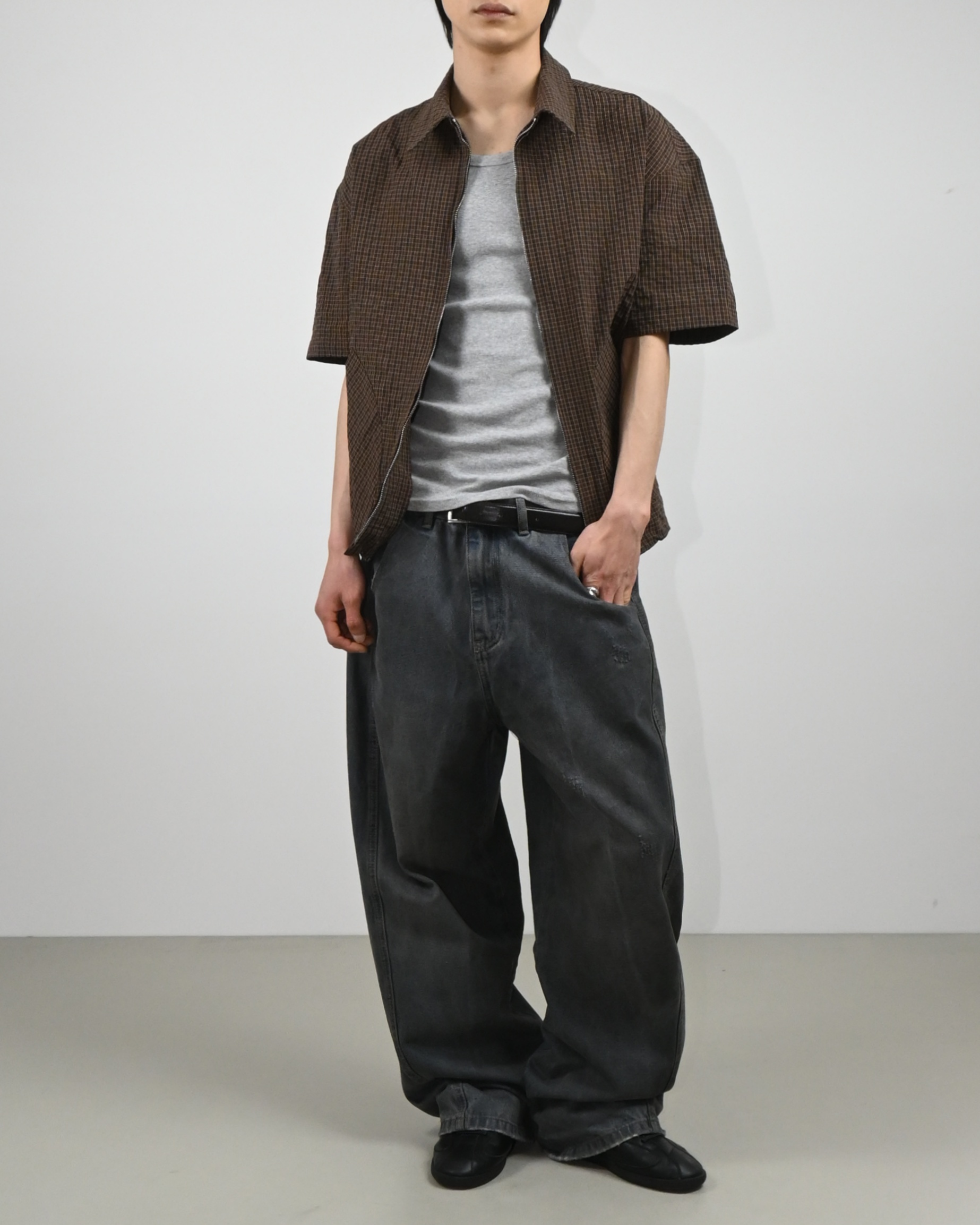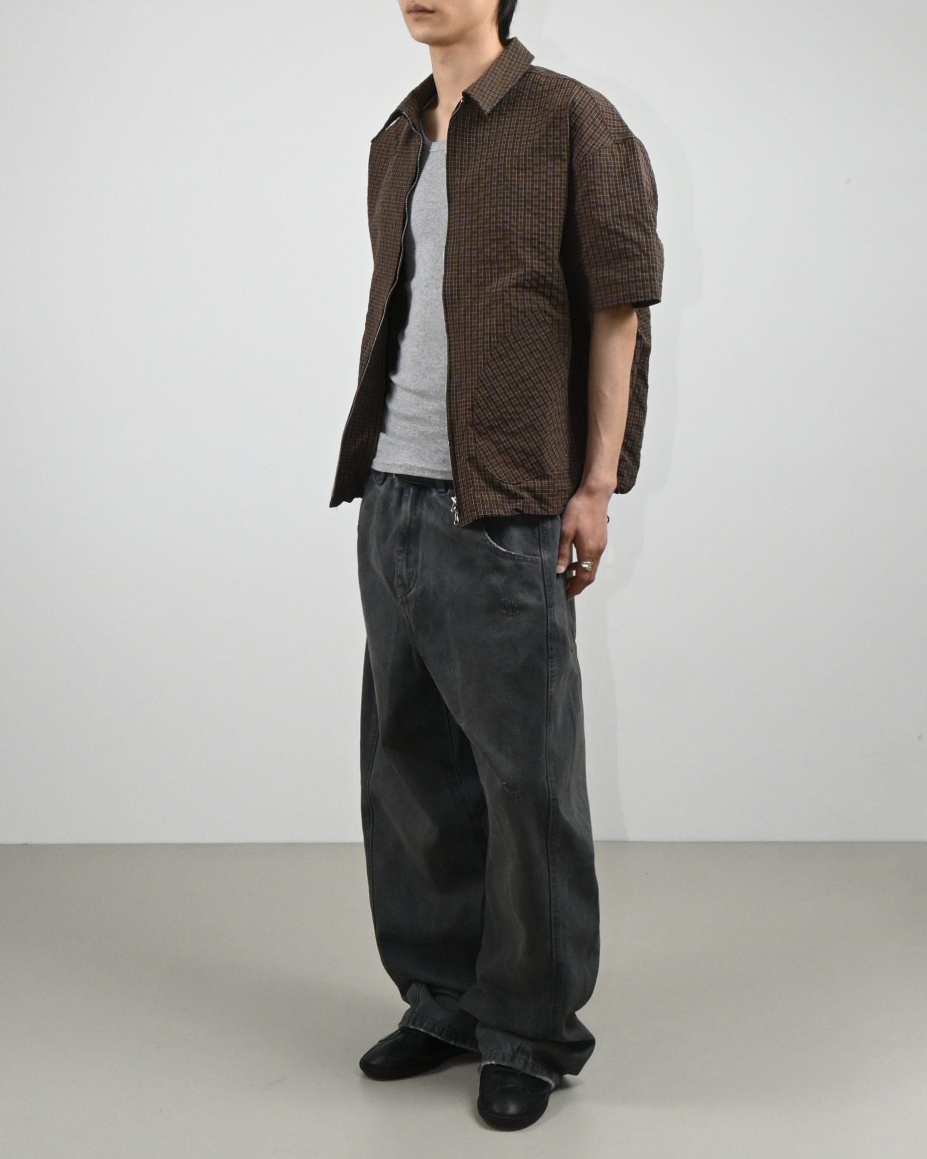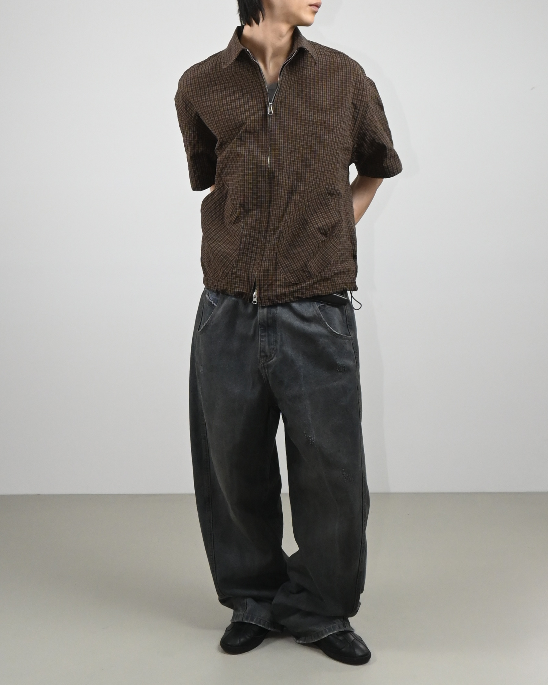 체크 패턴과 톤다운된 컬러감으로 구성되어
