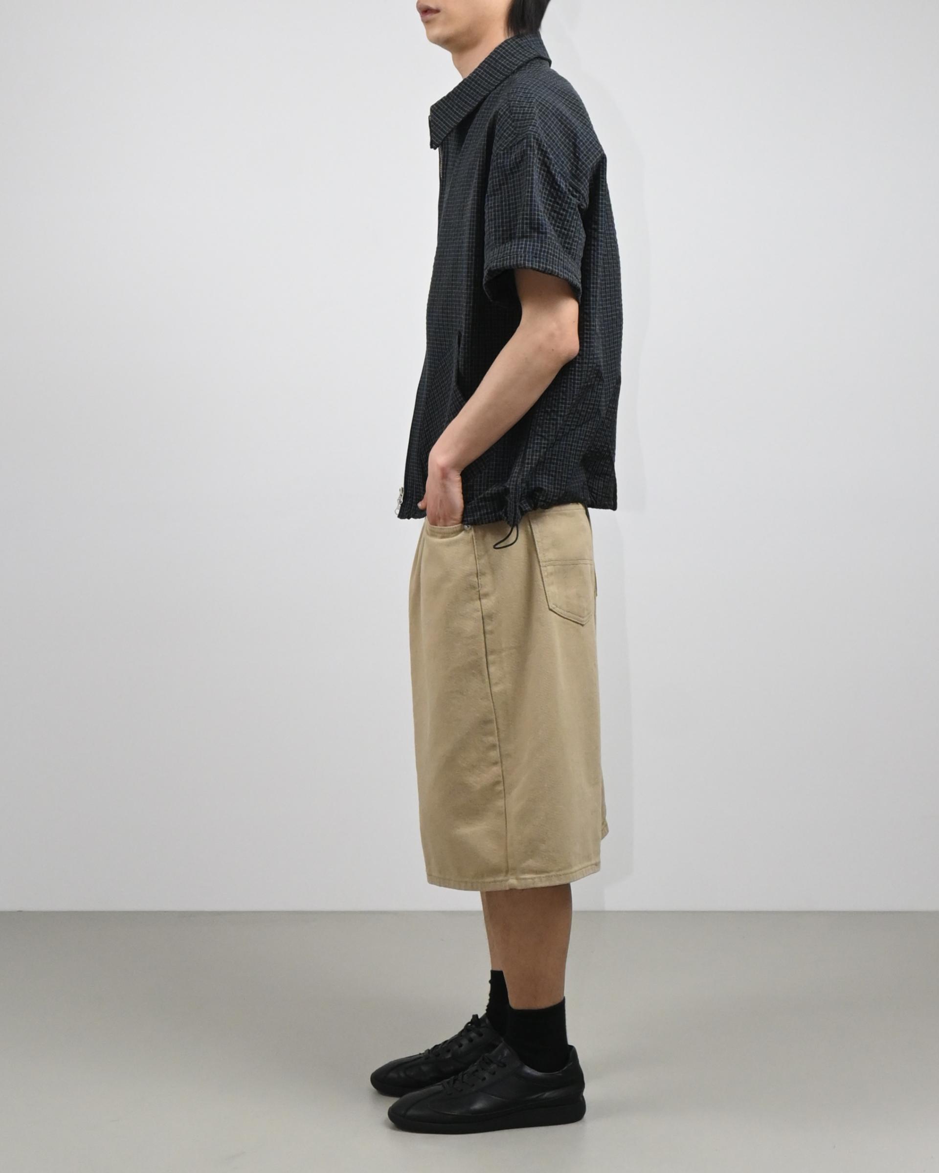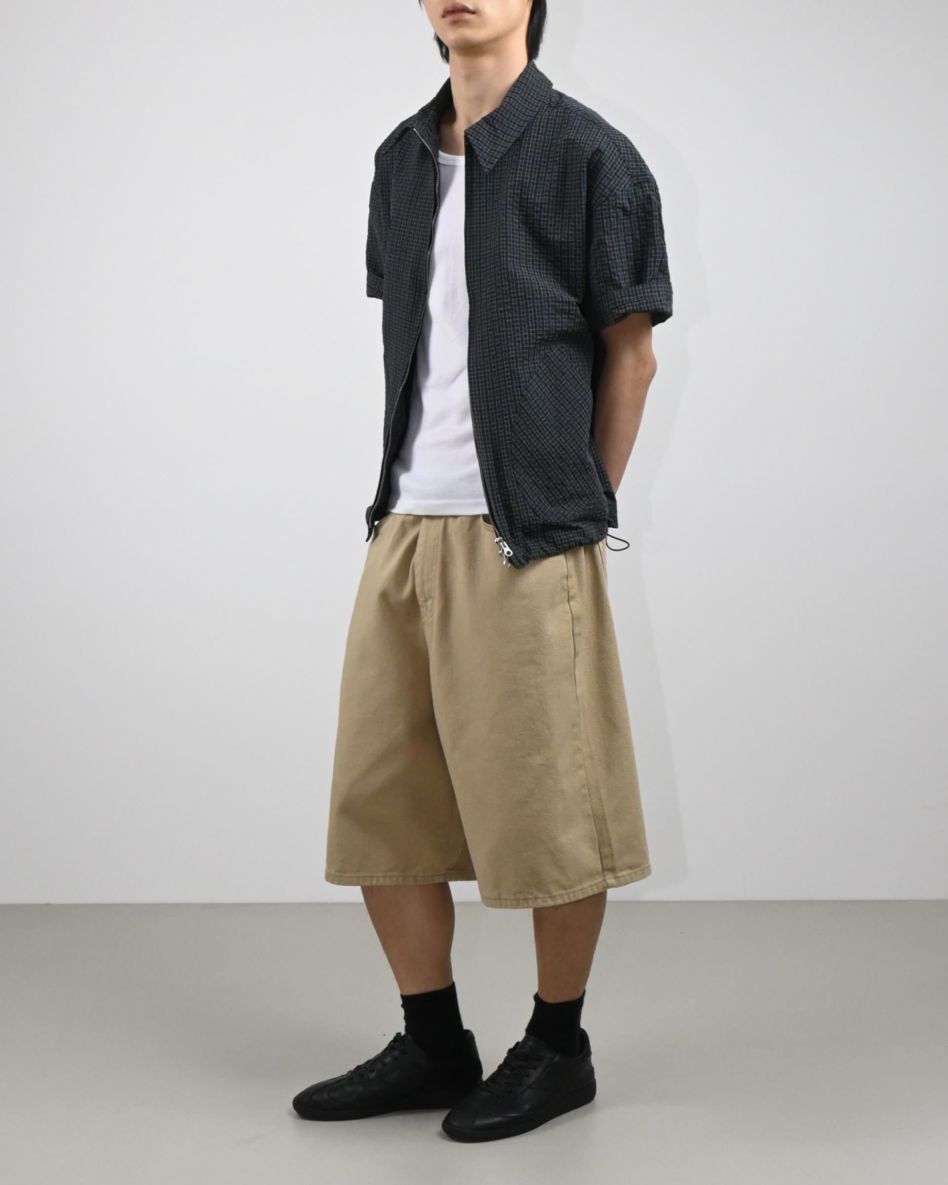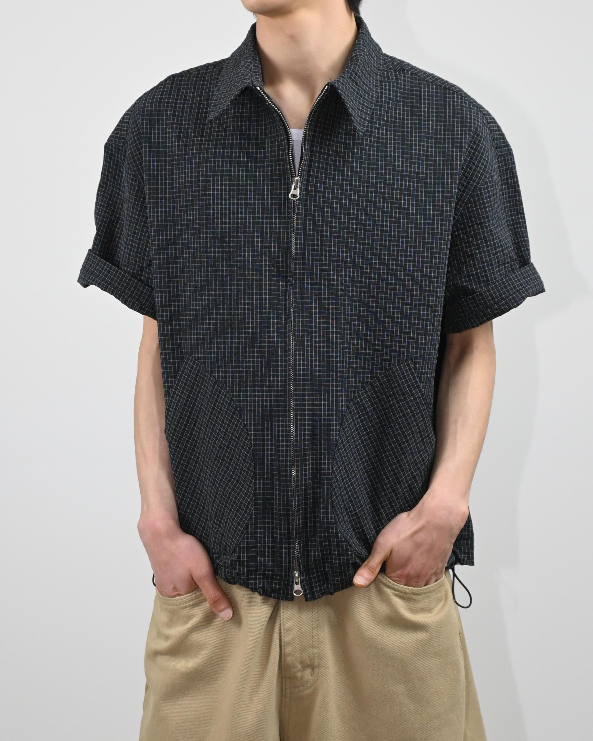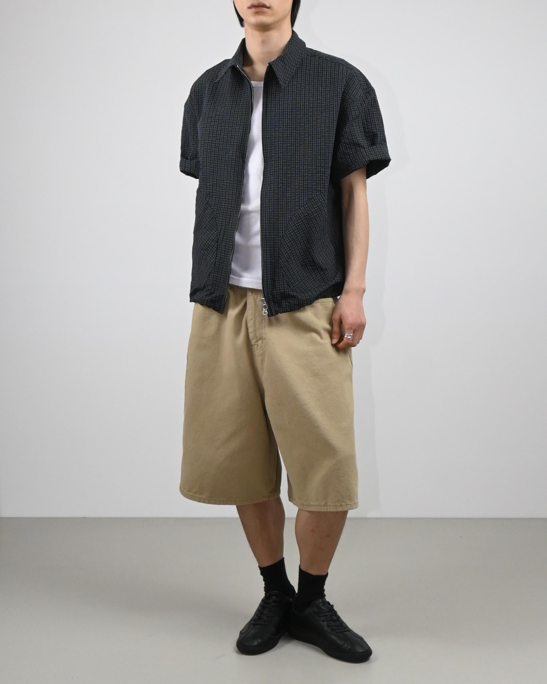 원단으로 제작된 반팔 셔츠 자켓입니다.