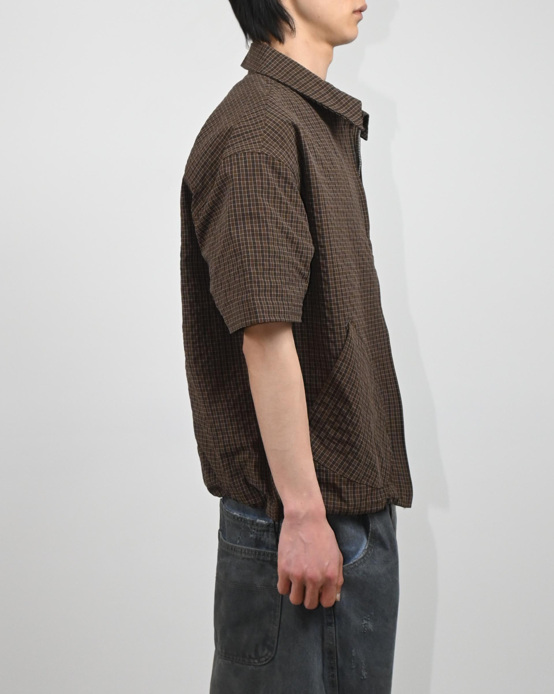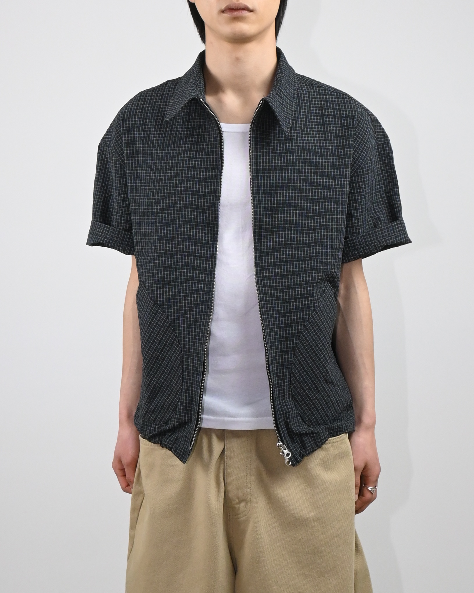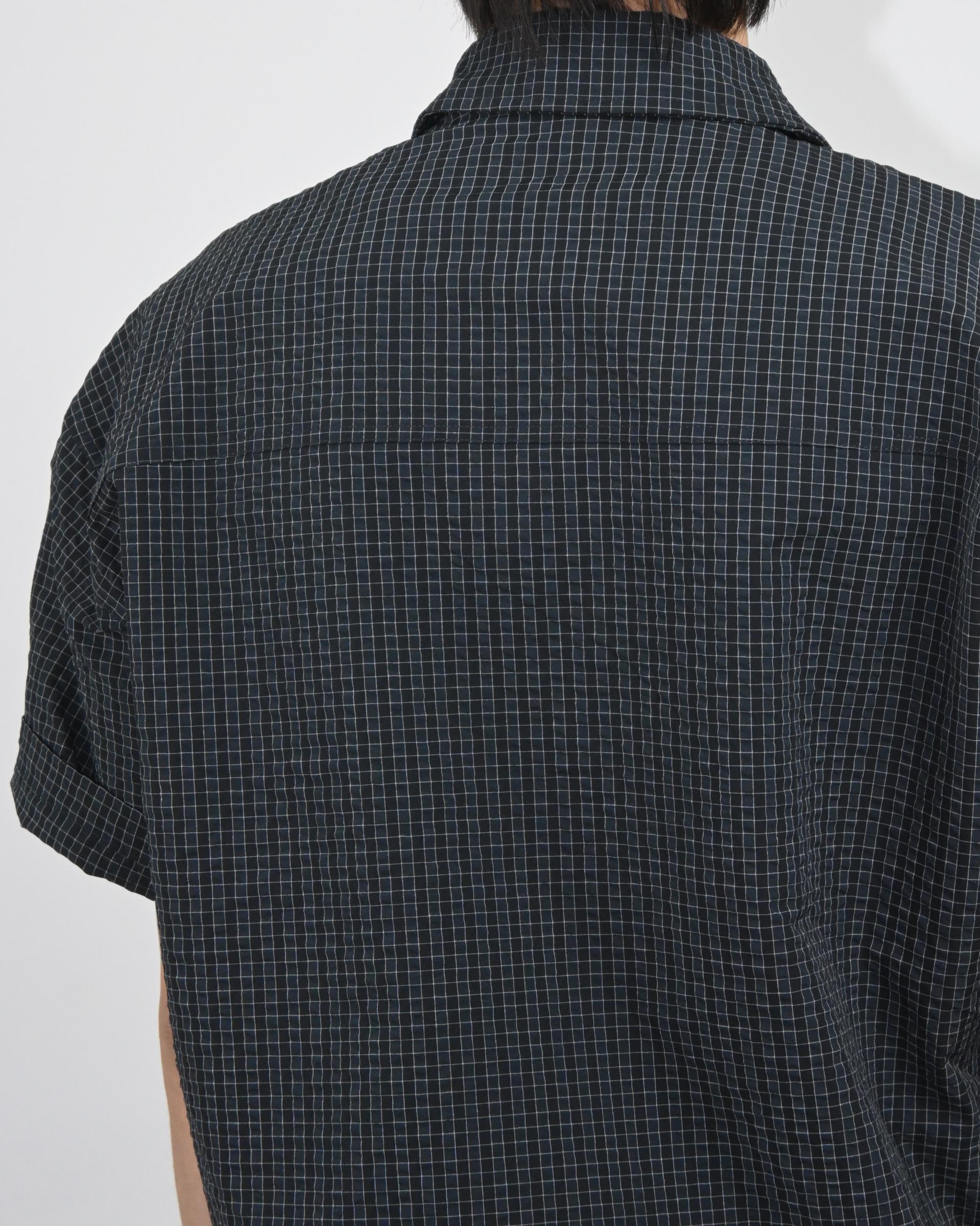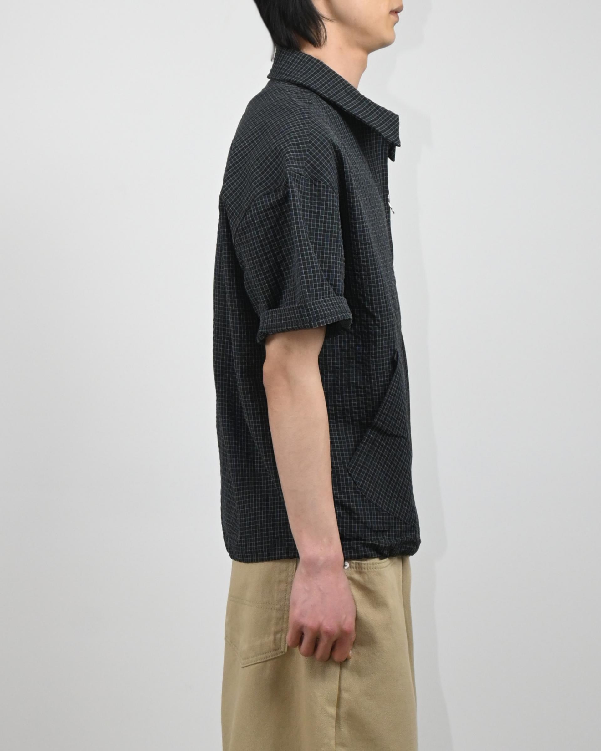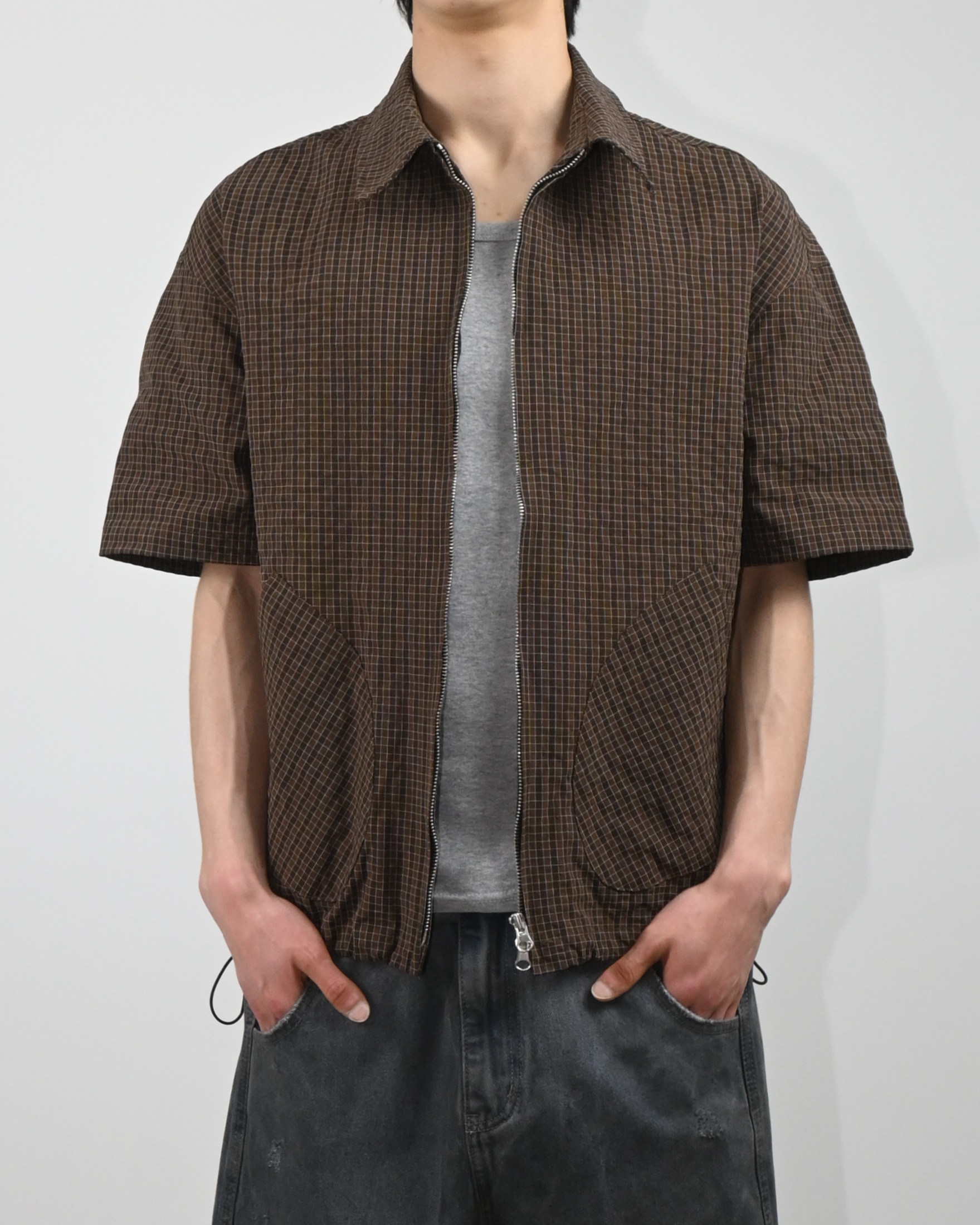 원단으로 제작된 반팔 셔츠 자켓입니다.