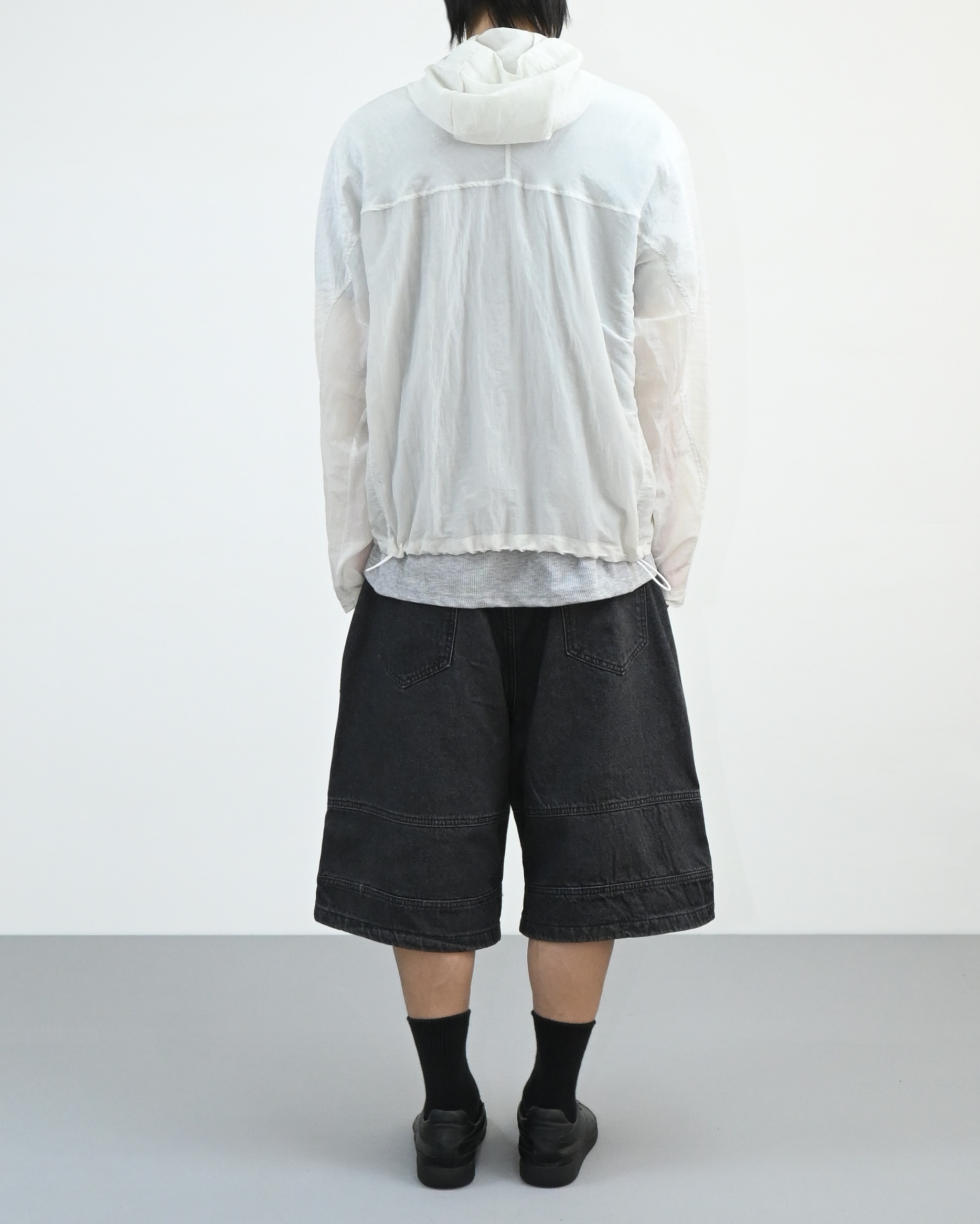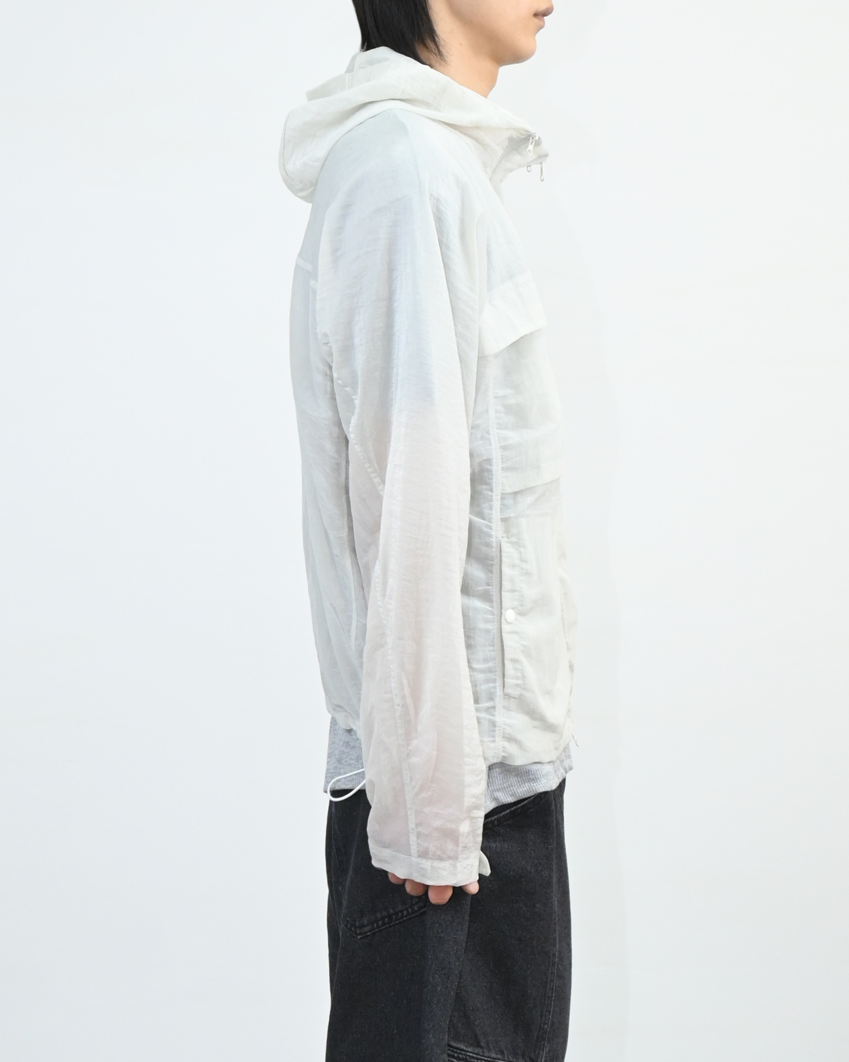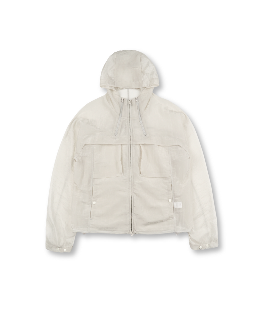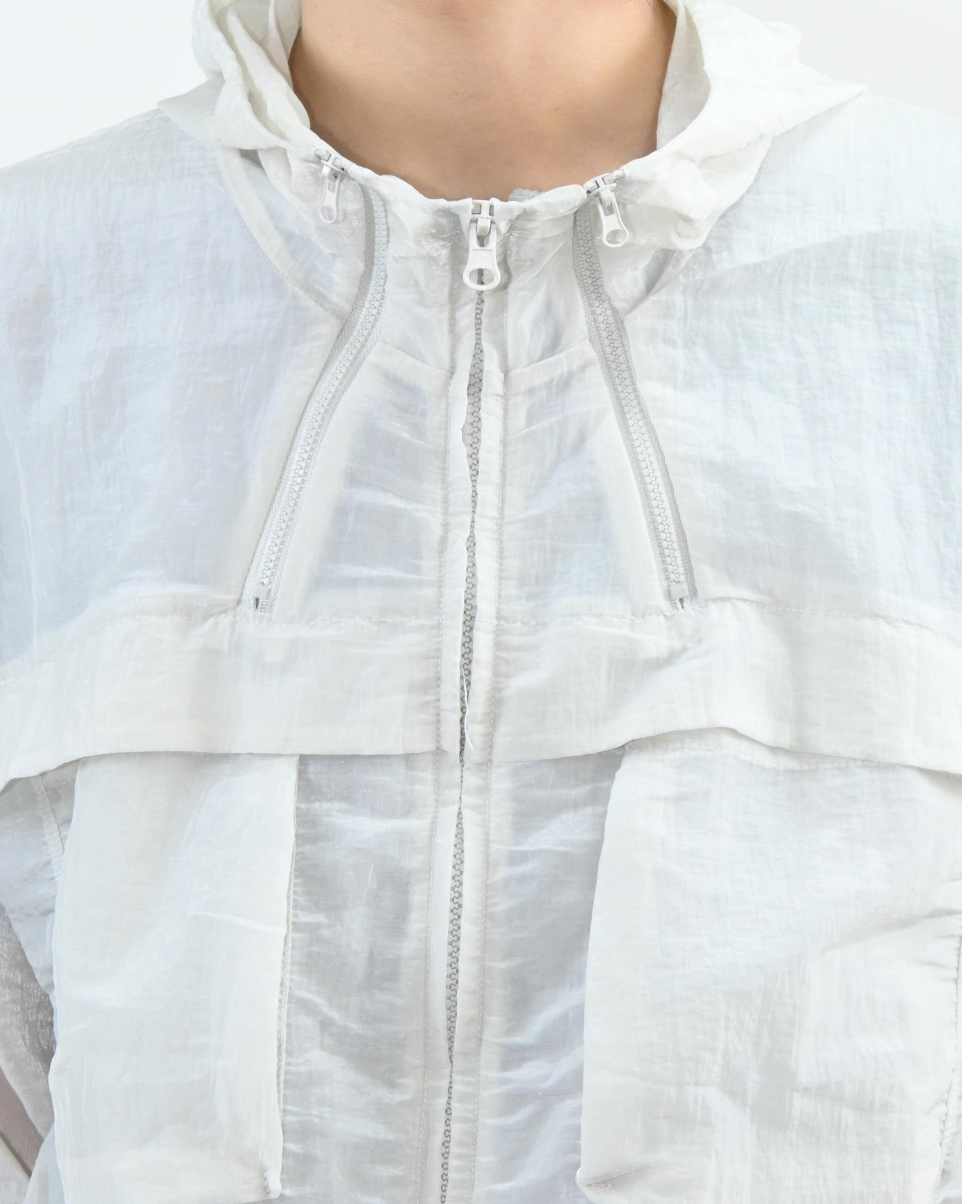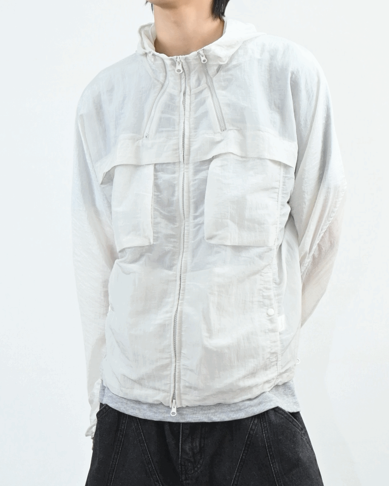 후드와 밑단 스트링으로 실루엣 조절이 가능해
