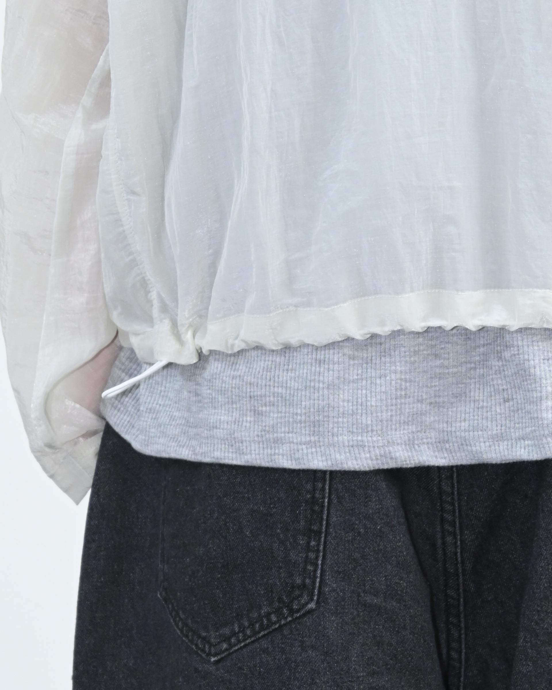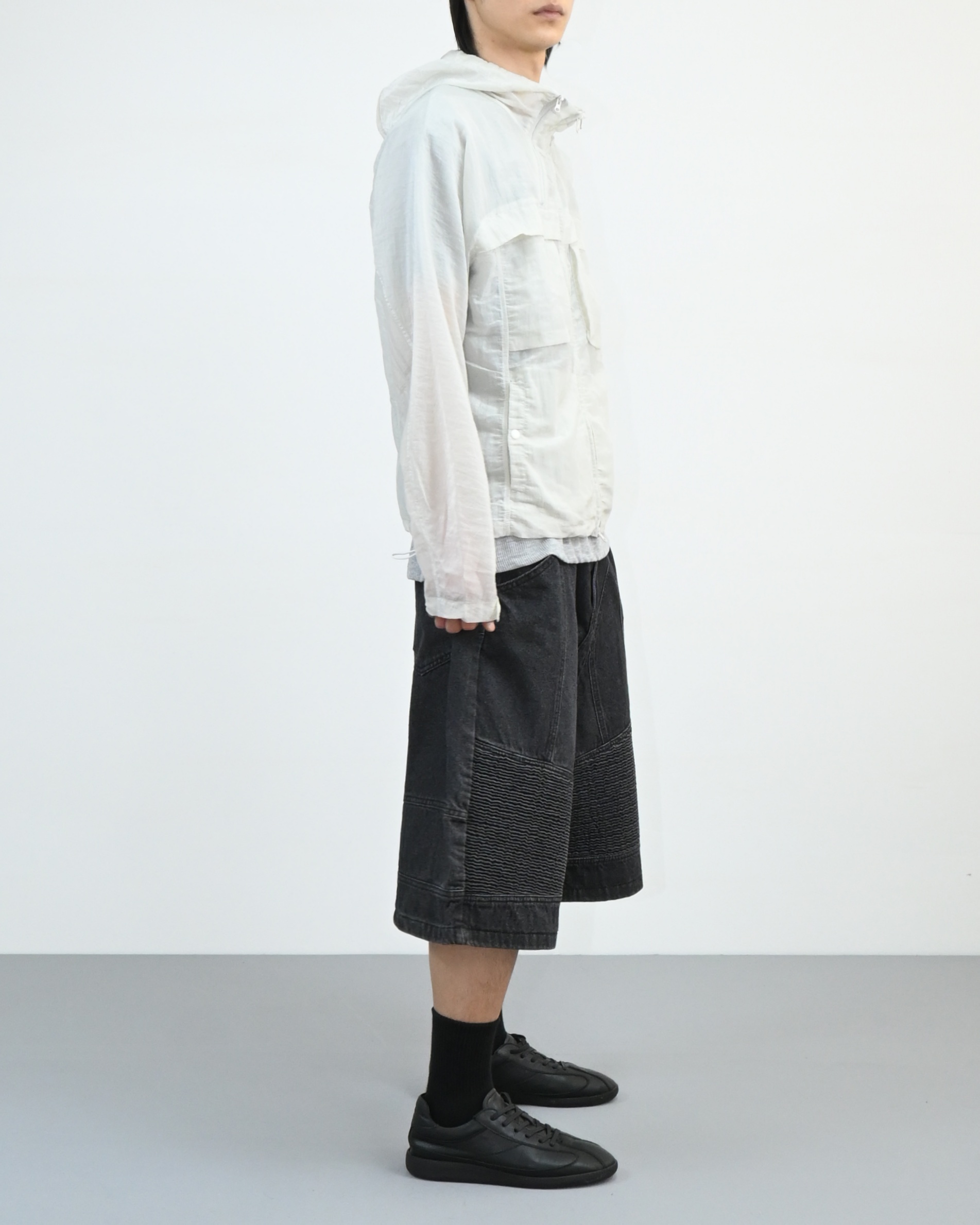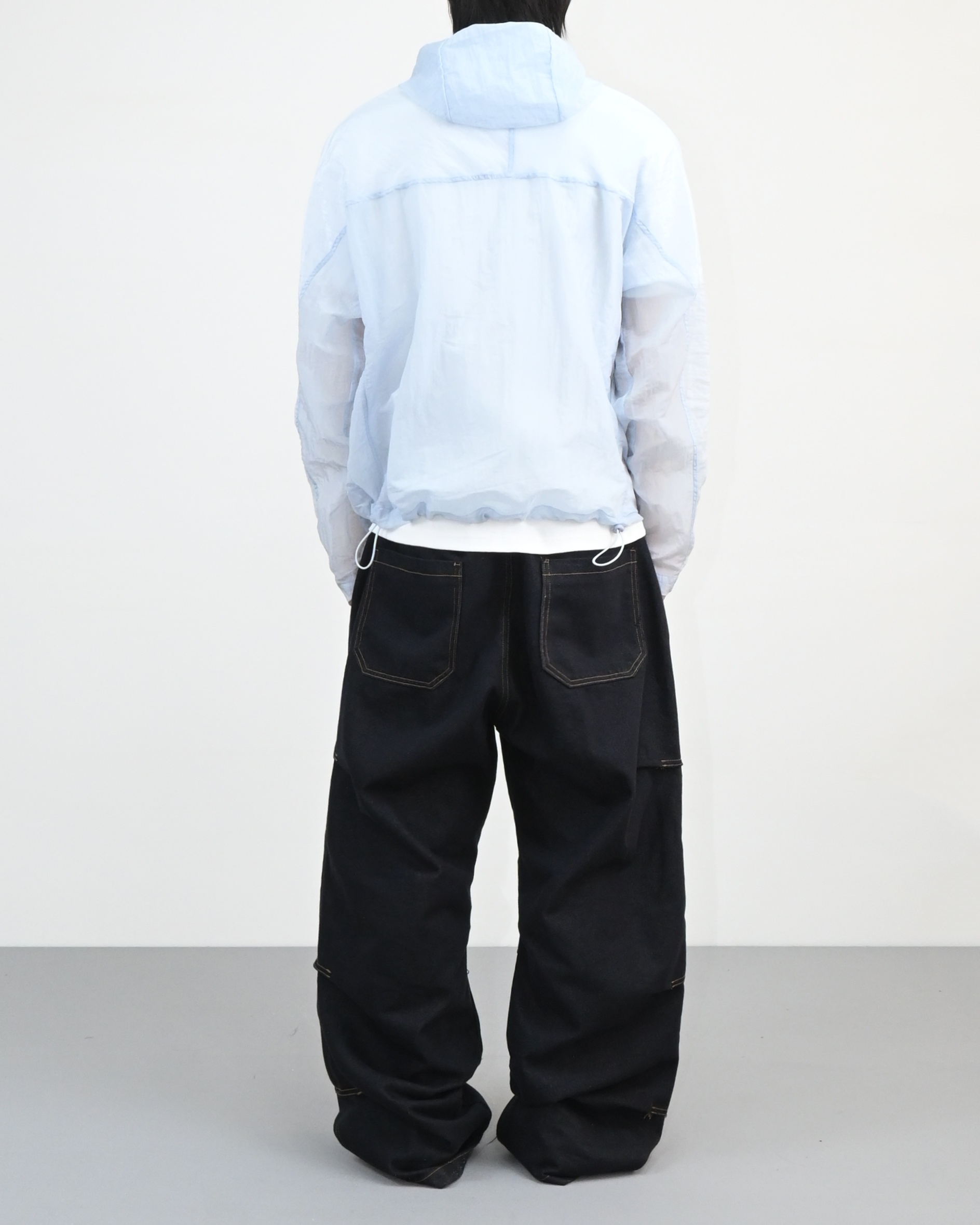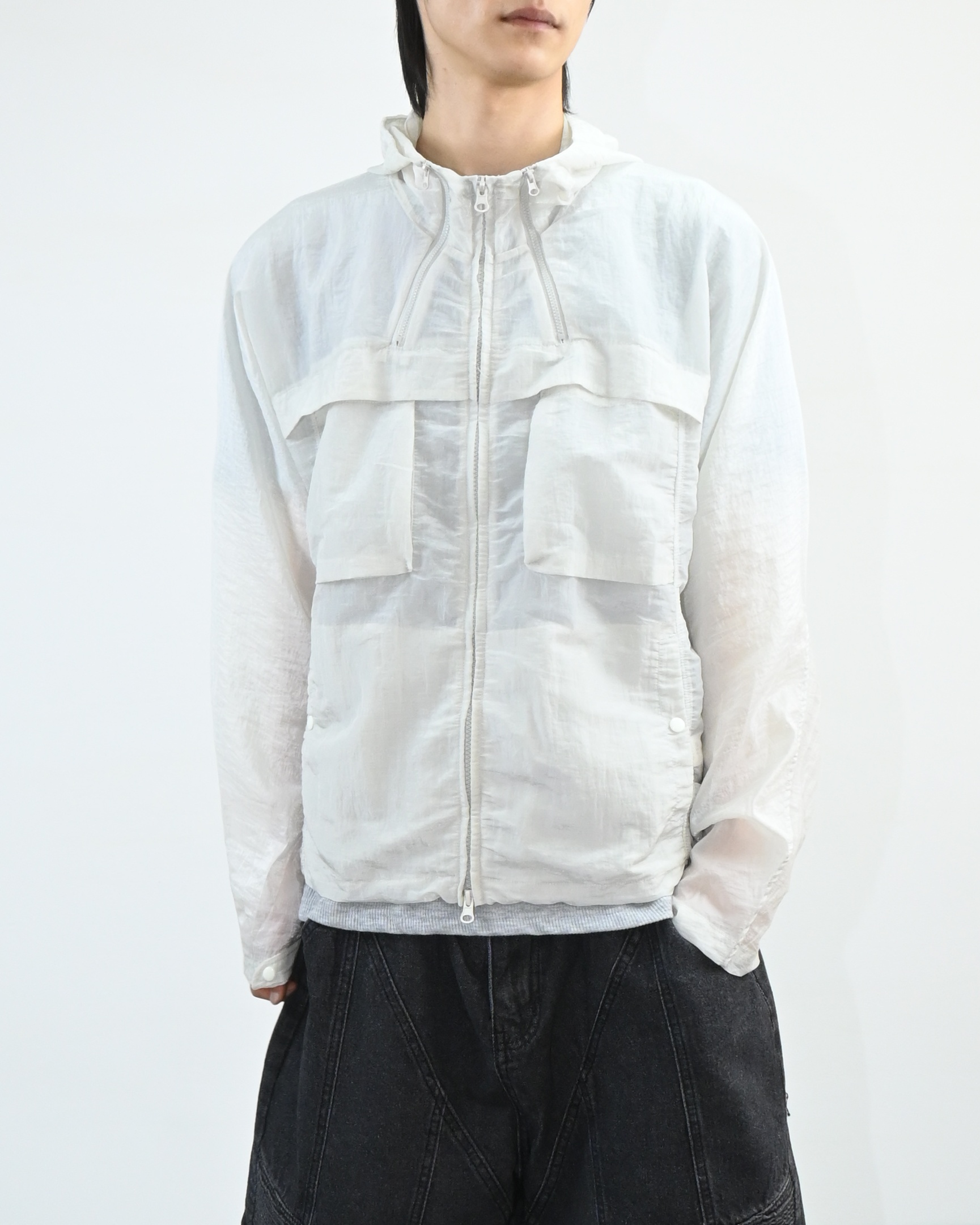 후드와 밑단 스트링으로 실루엣 조절이 가능해