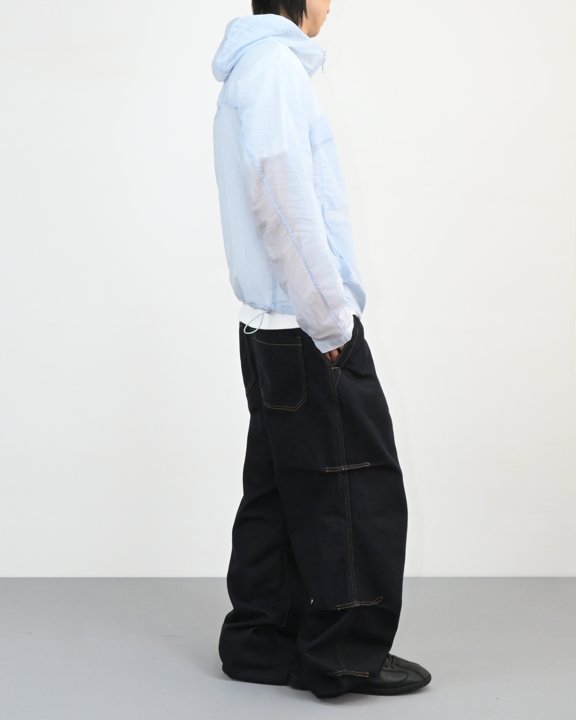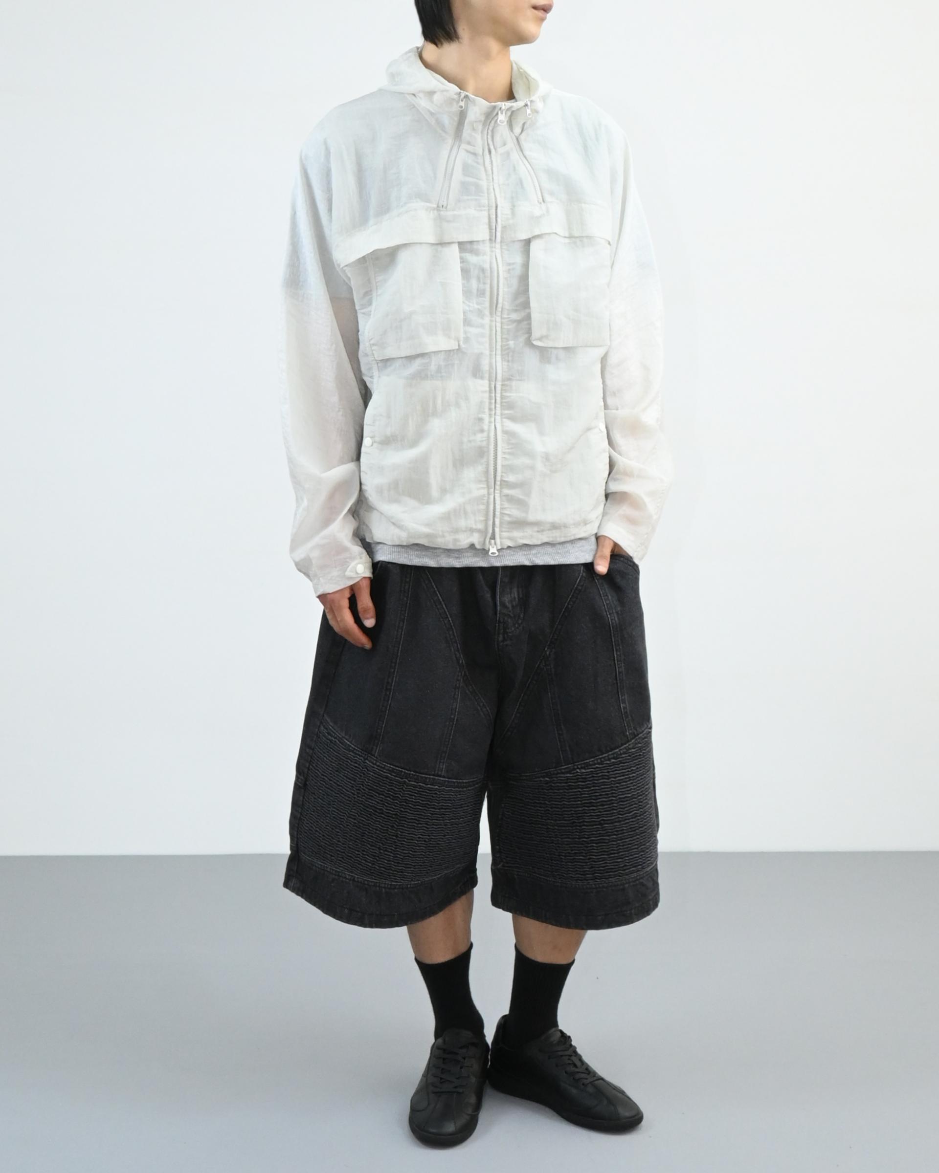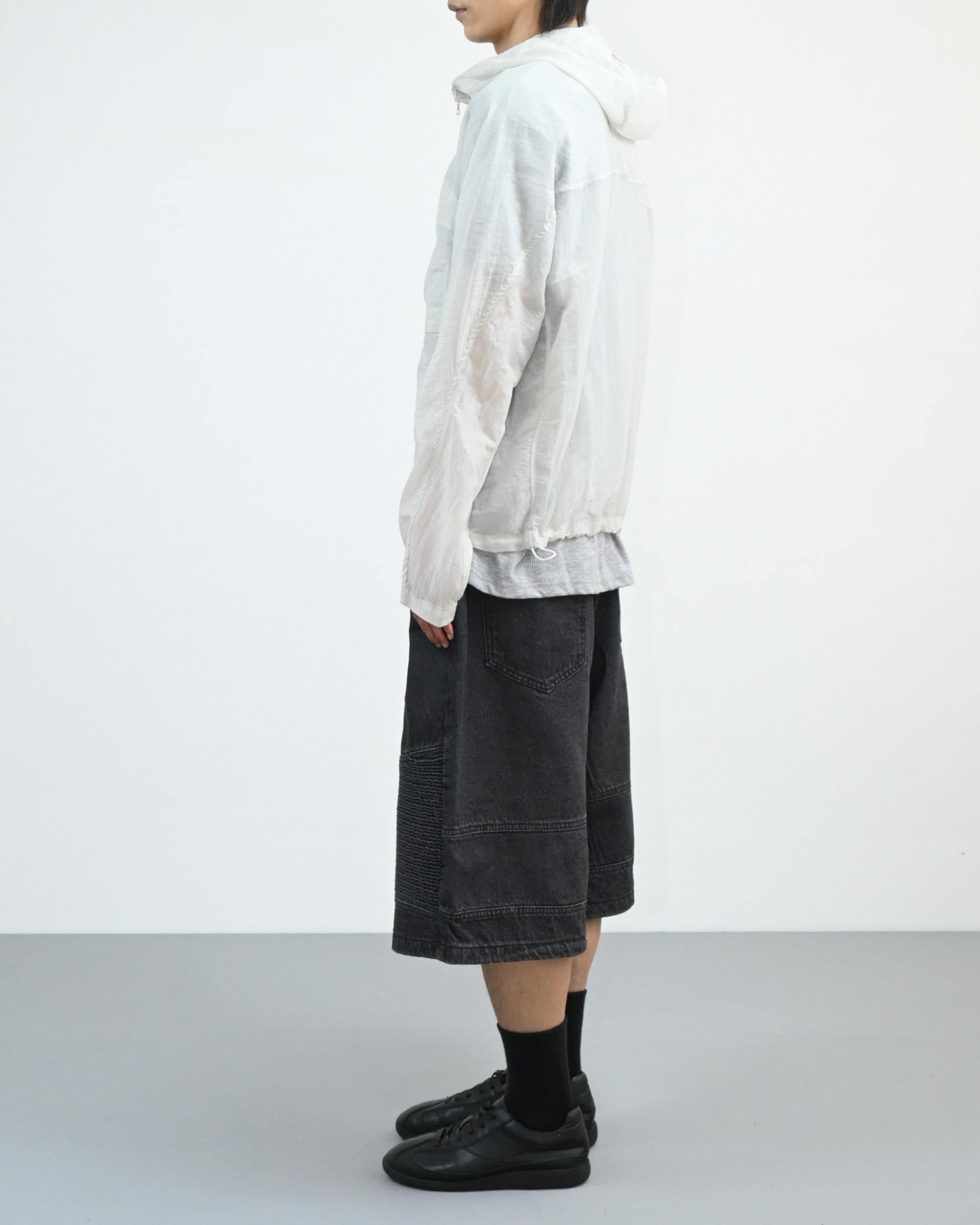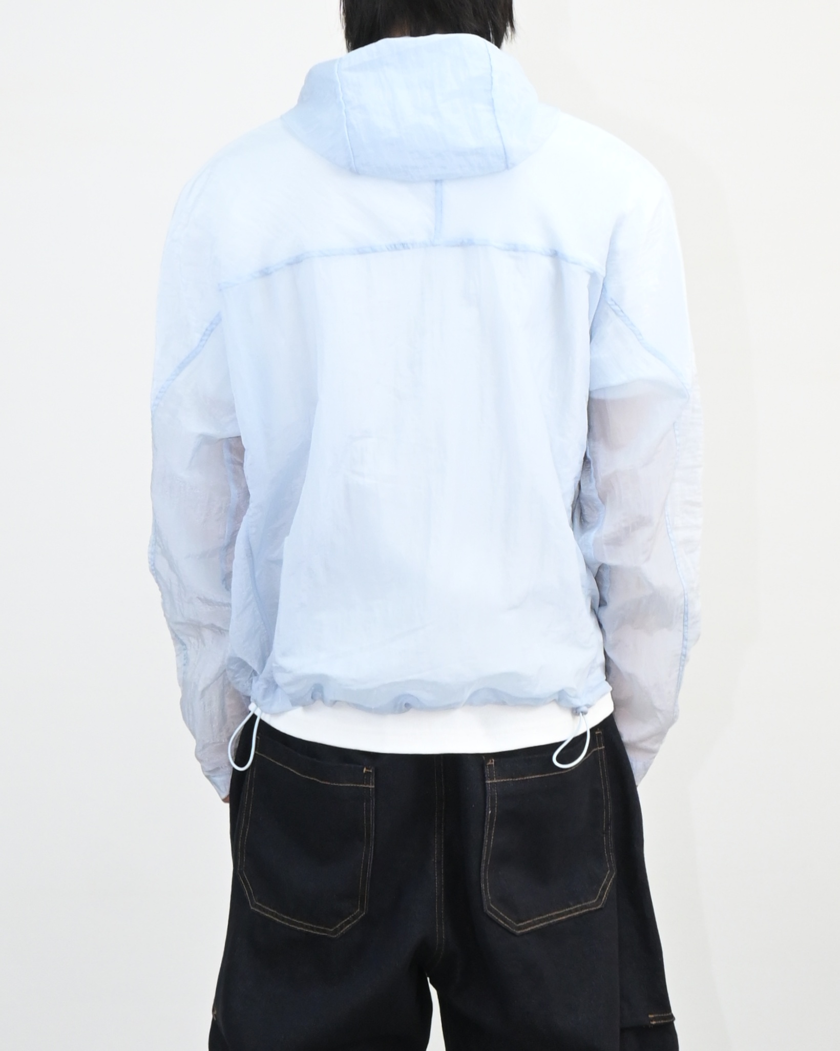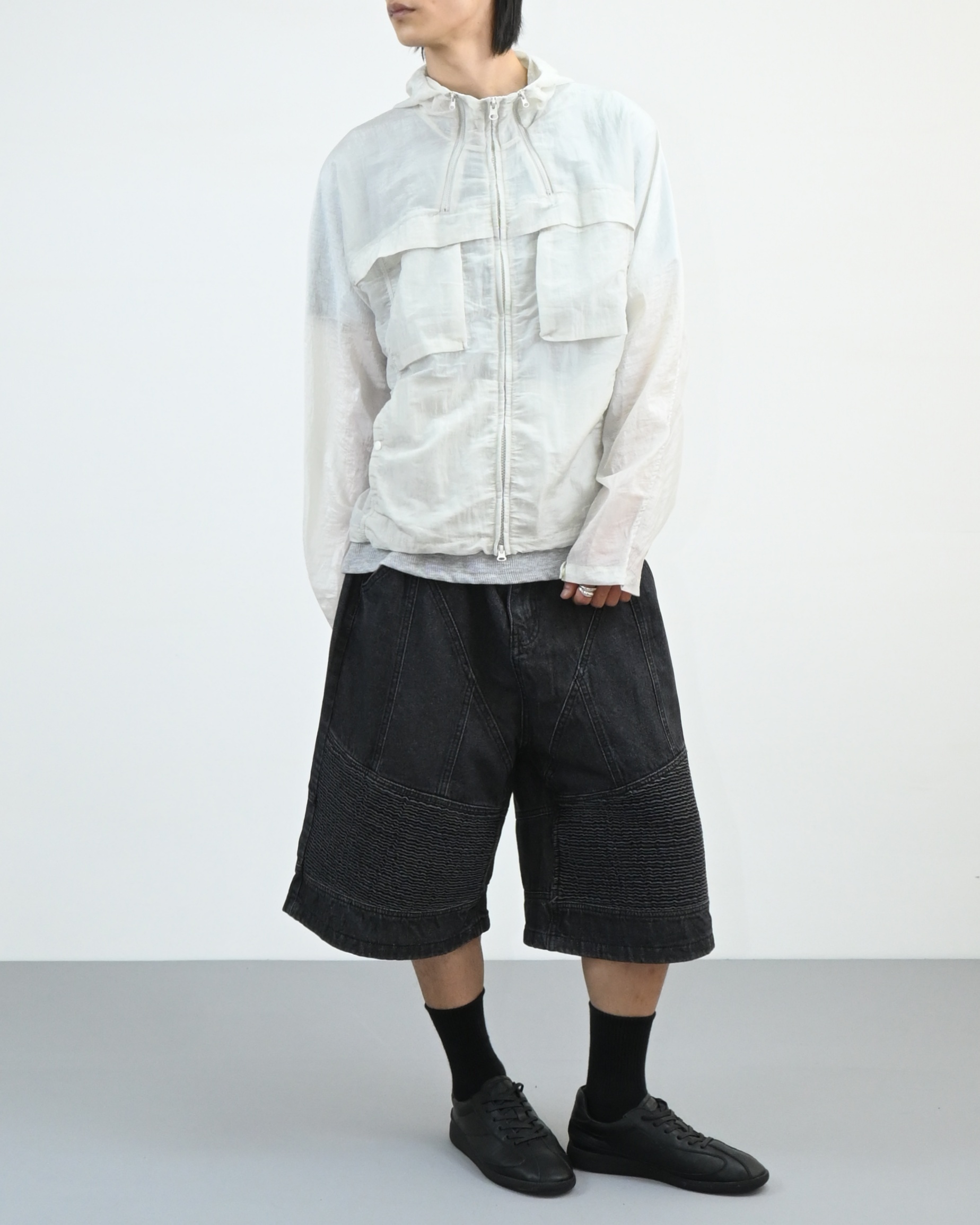 후드와 밑단 스트링으로 실루엣 조절이 가능해