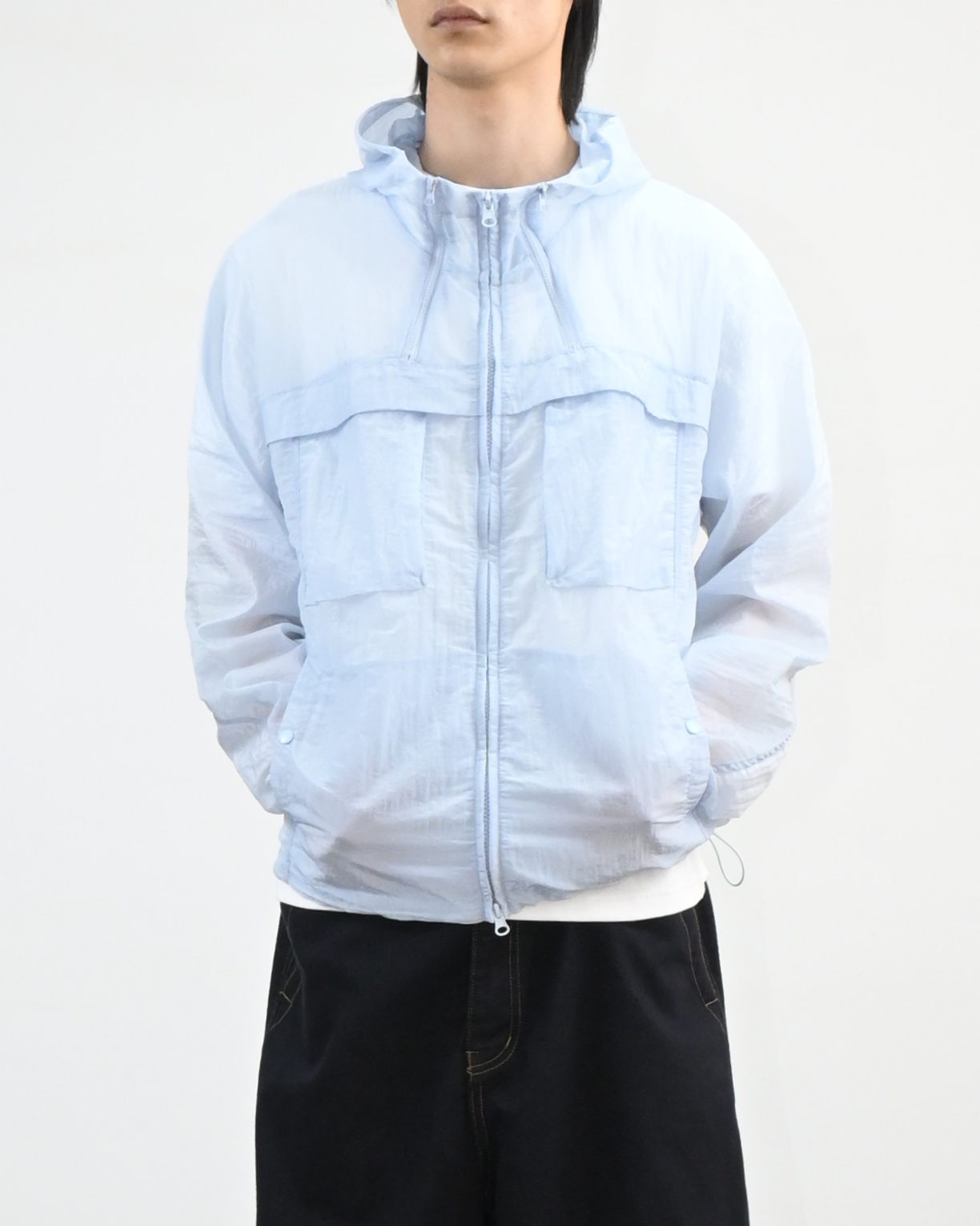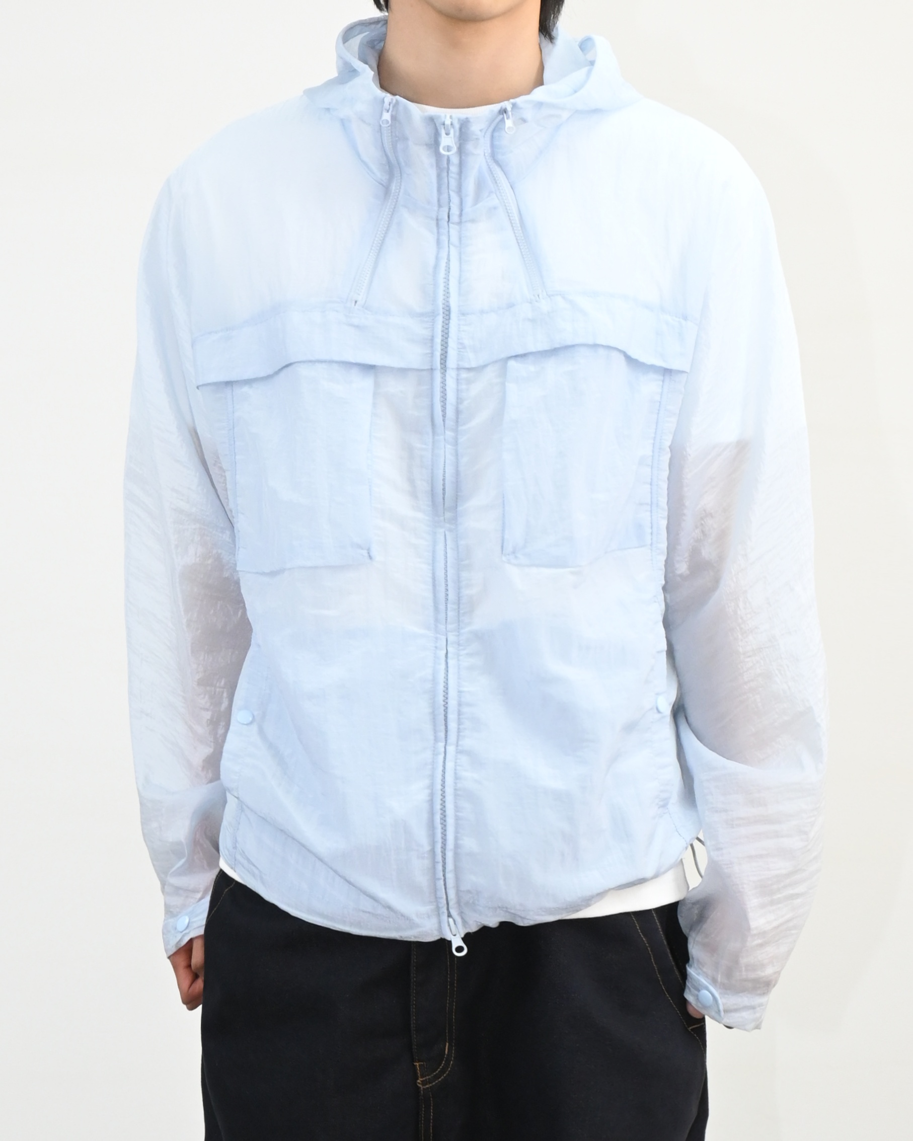 나일론 혼방 원단으로 제작된 바람막이입니다.
