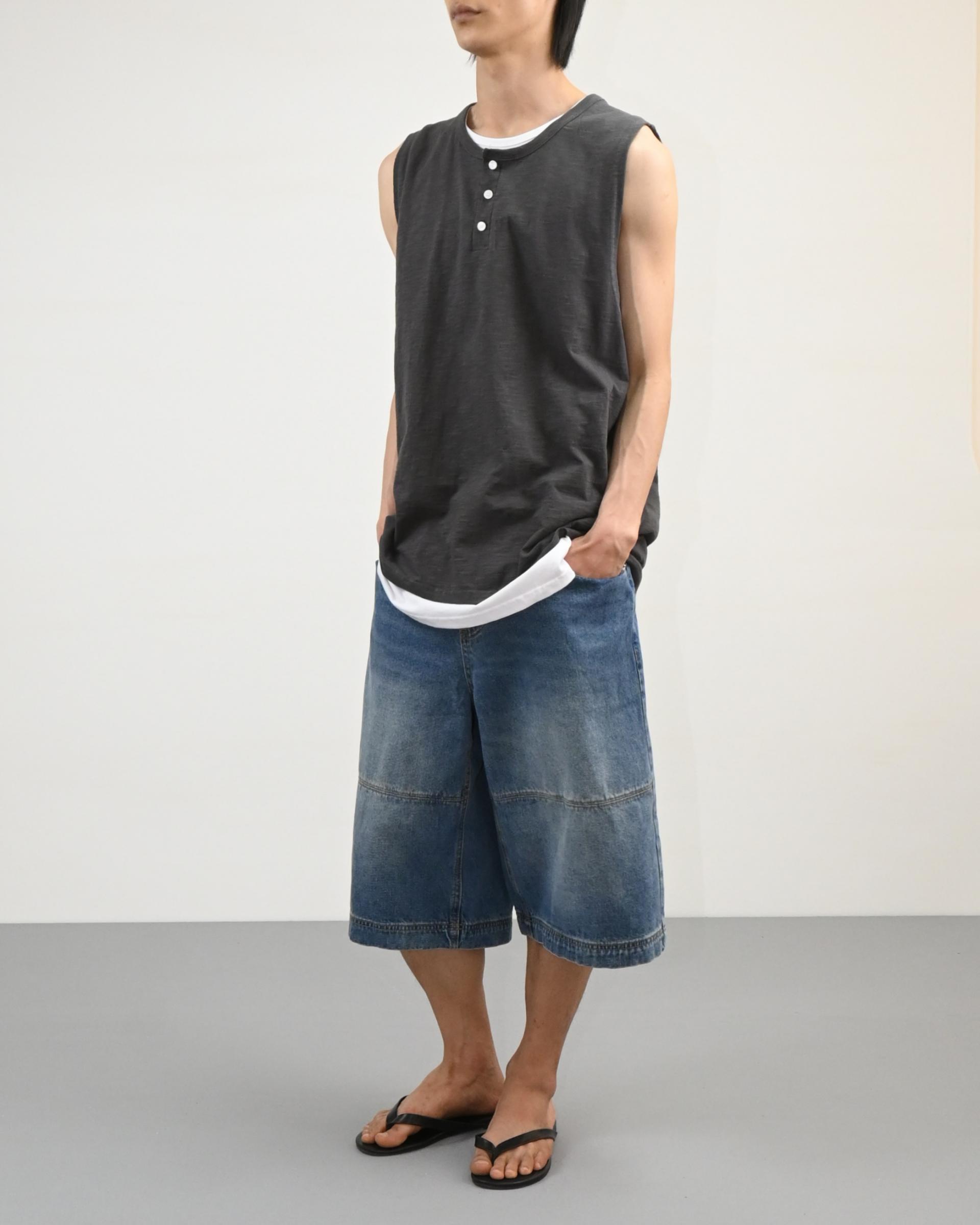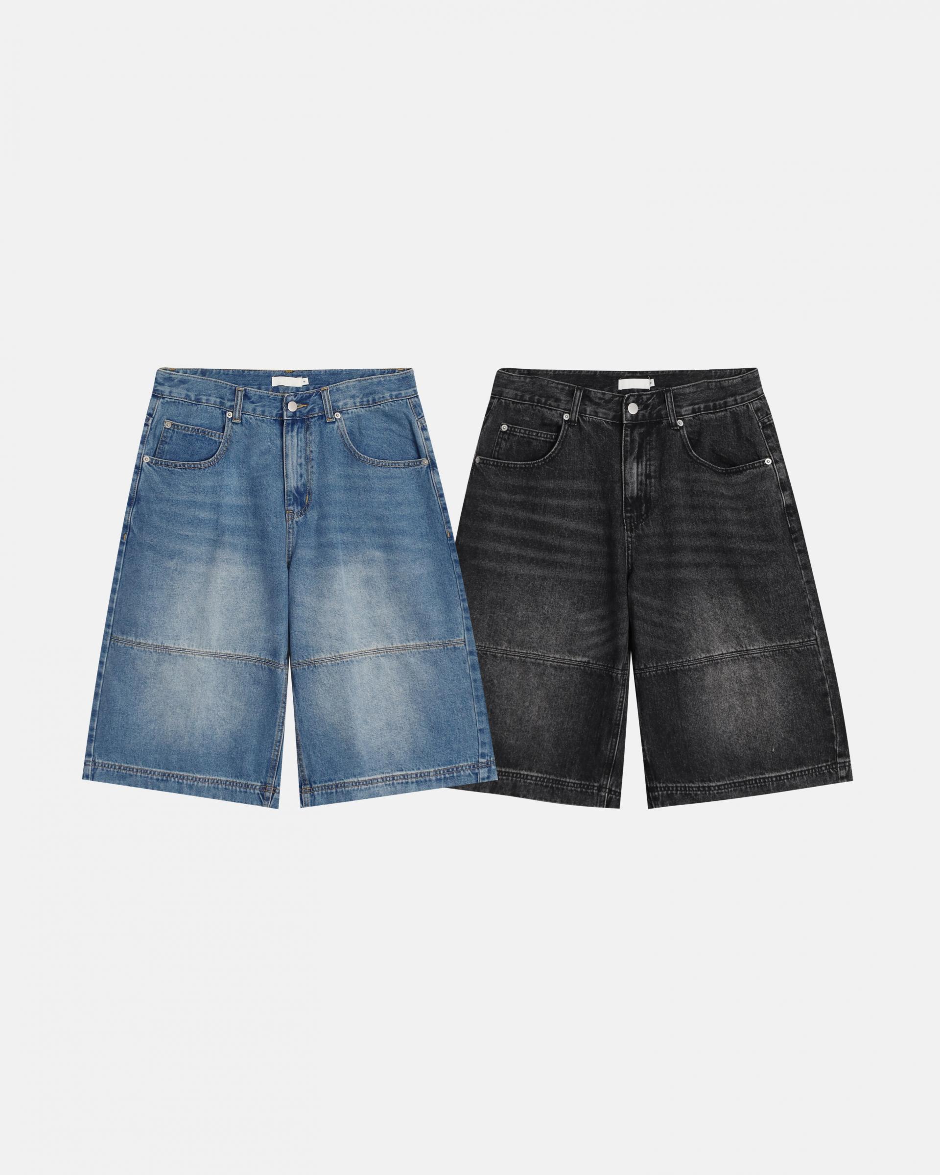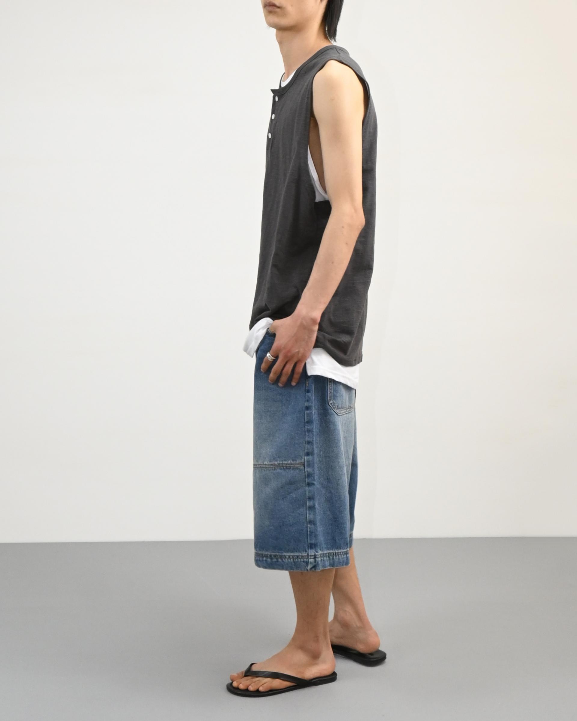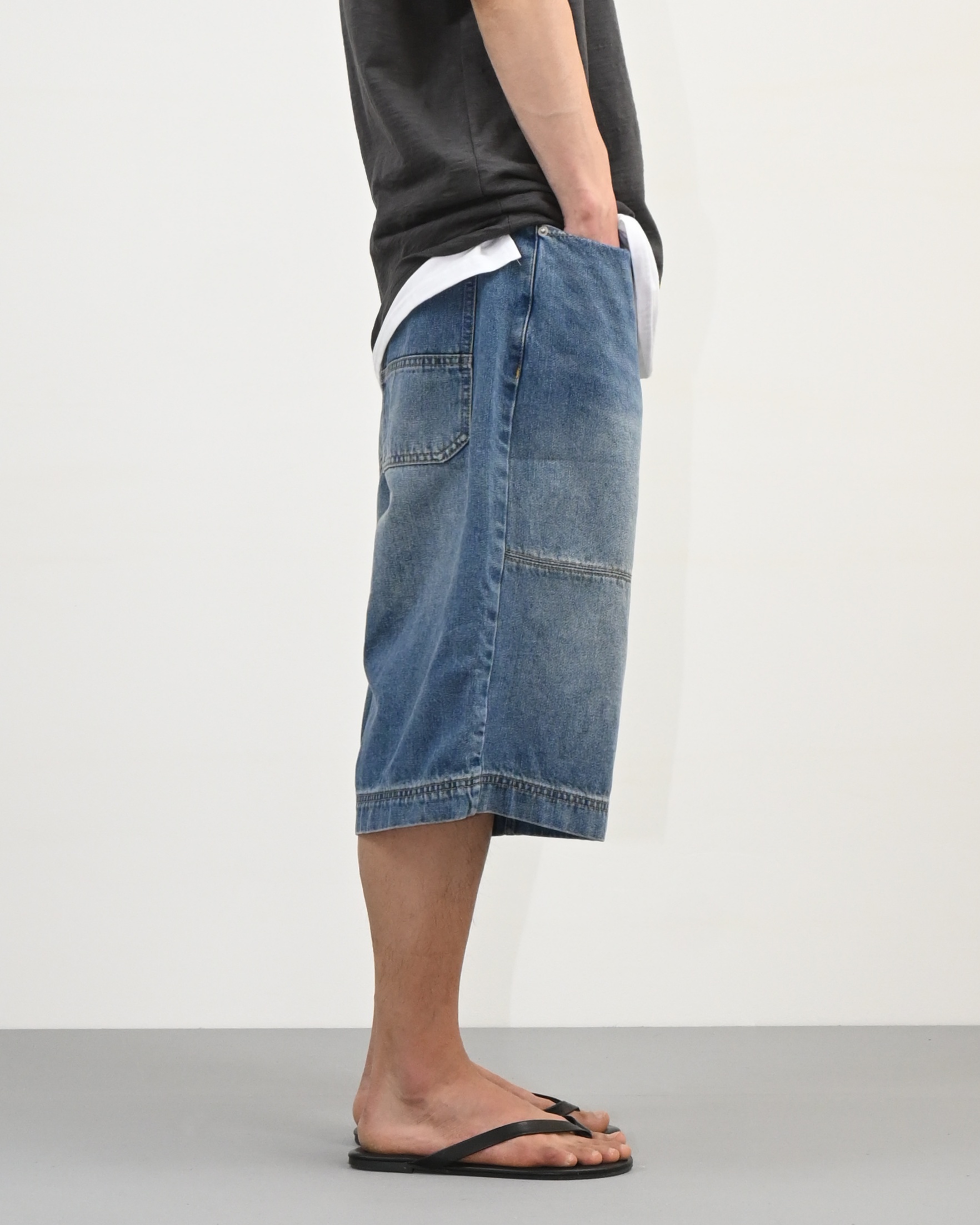 절개라인이 돋보이는 버뮤다 데님 팬츠입니다.