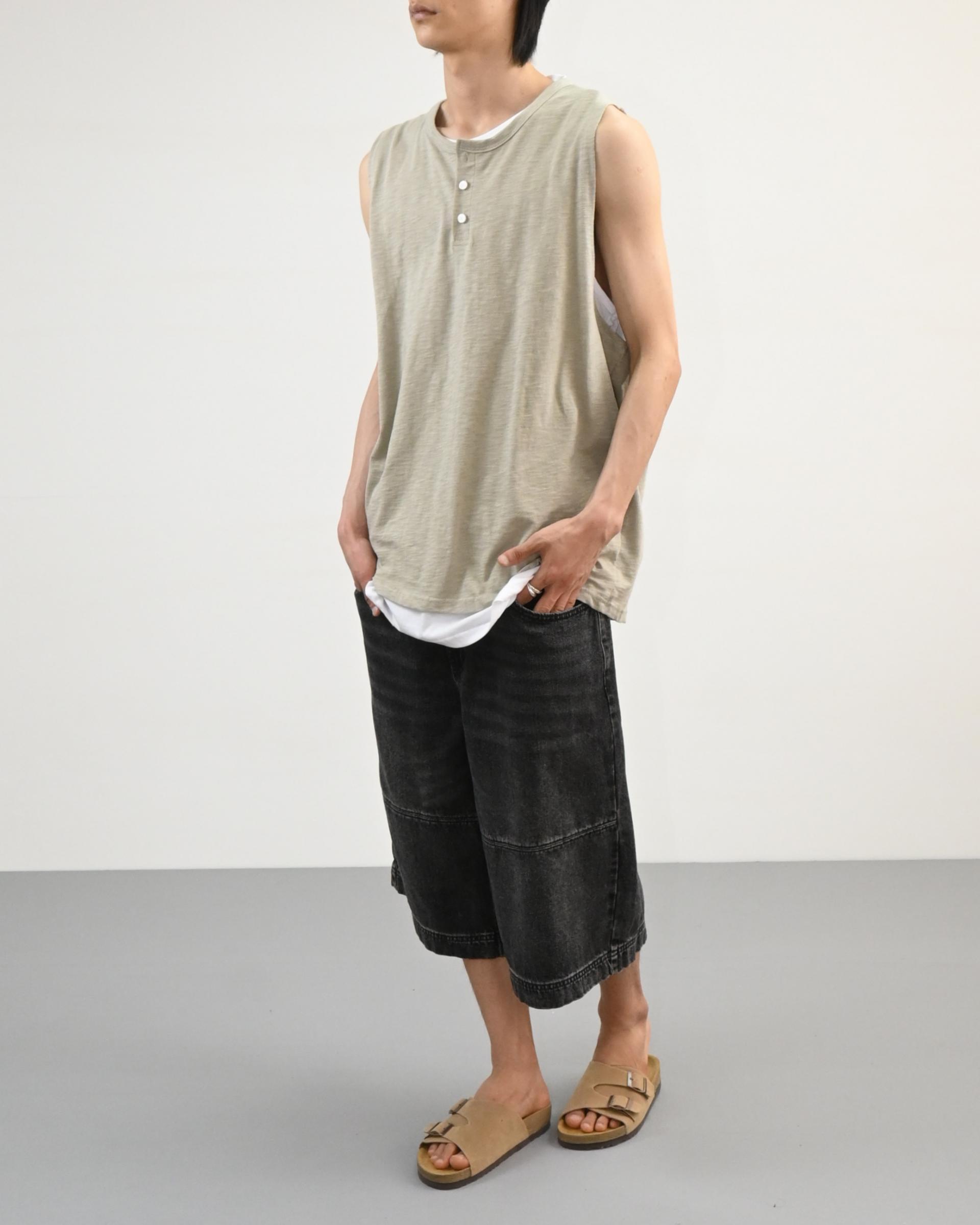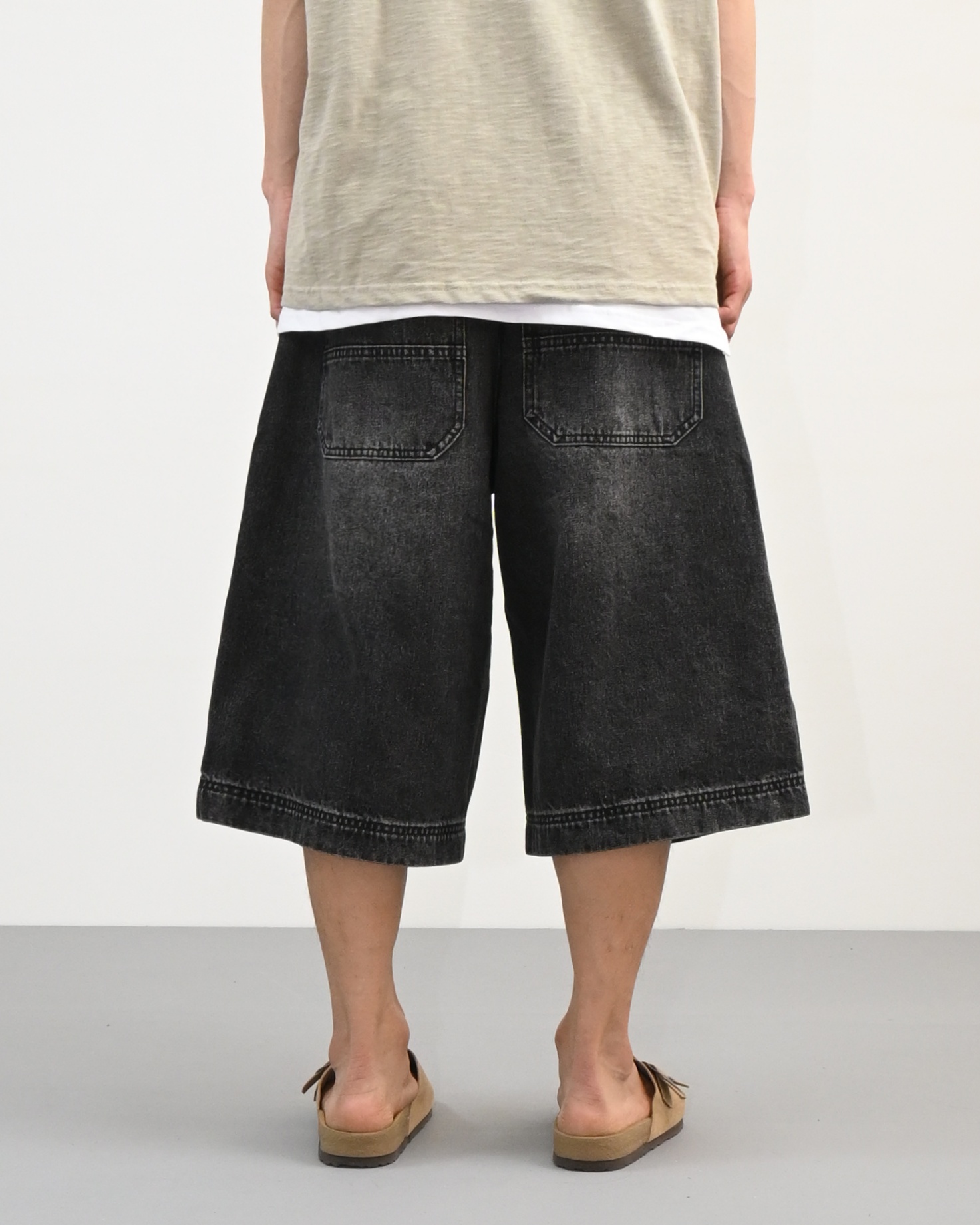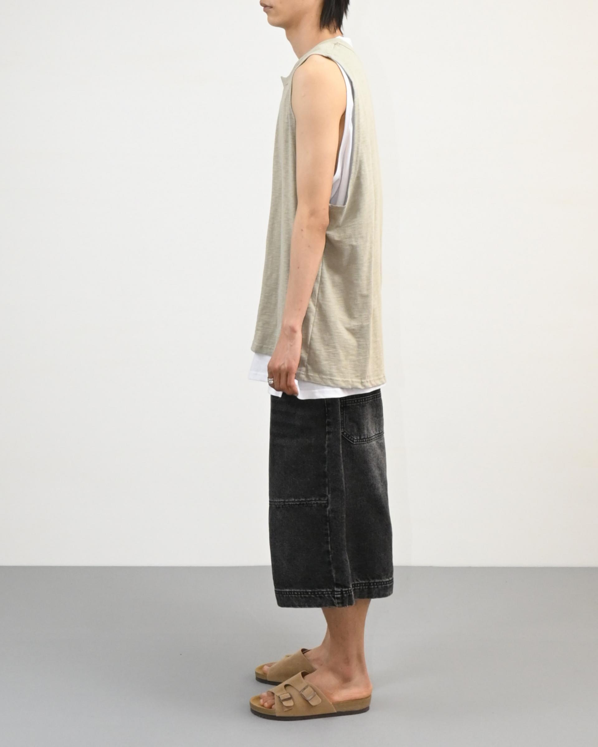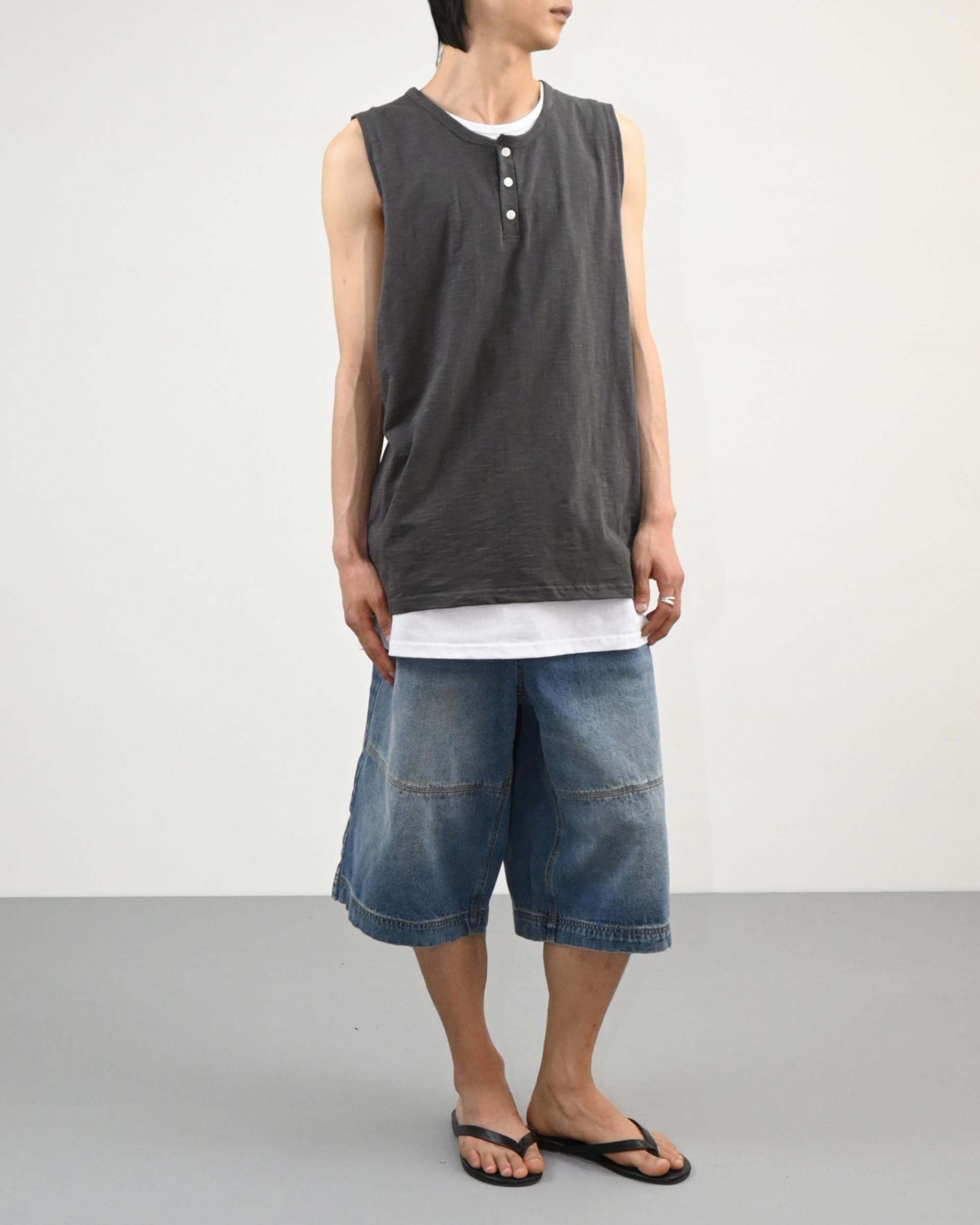 절개라인이 돋보이는 버뮤다 데님 팬츠입니다.