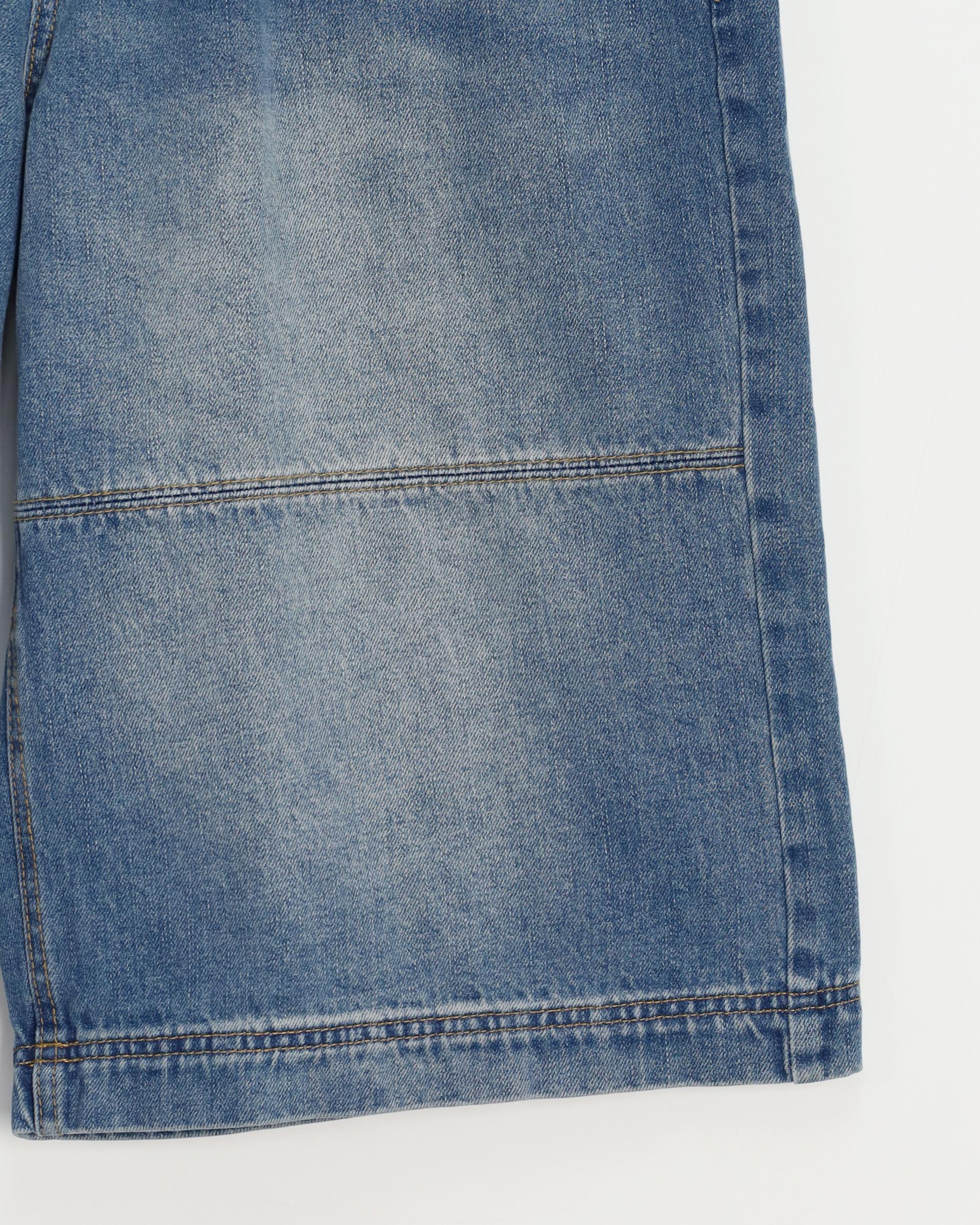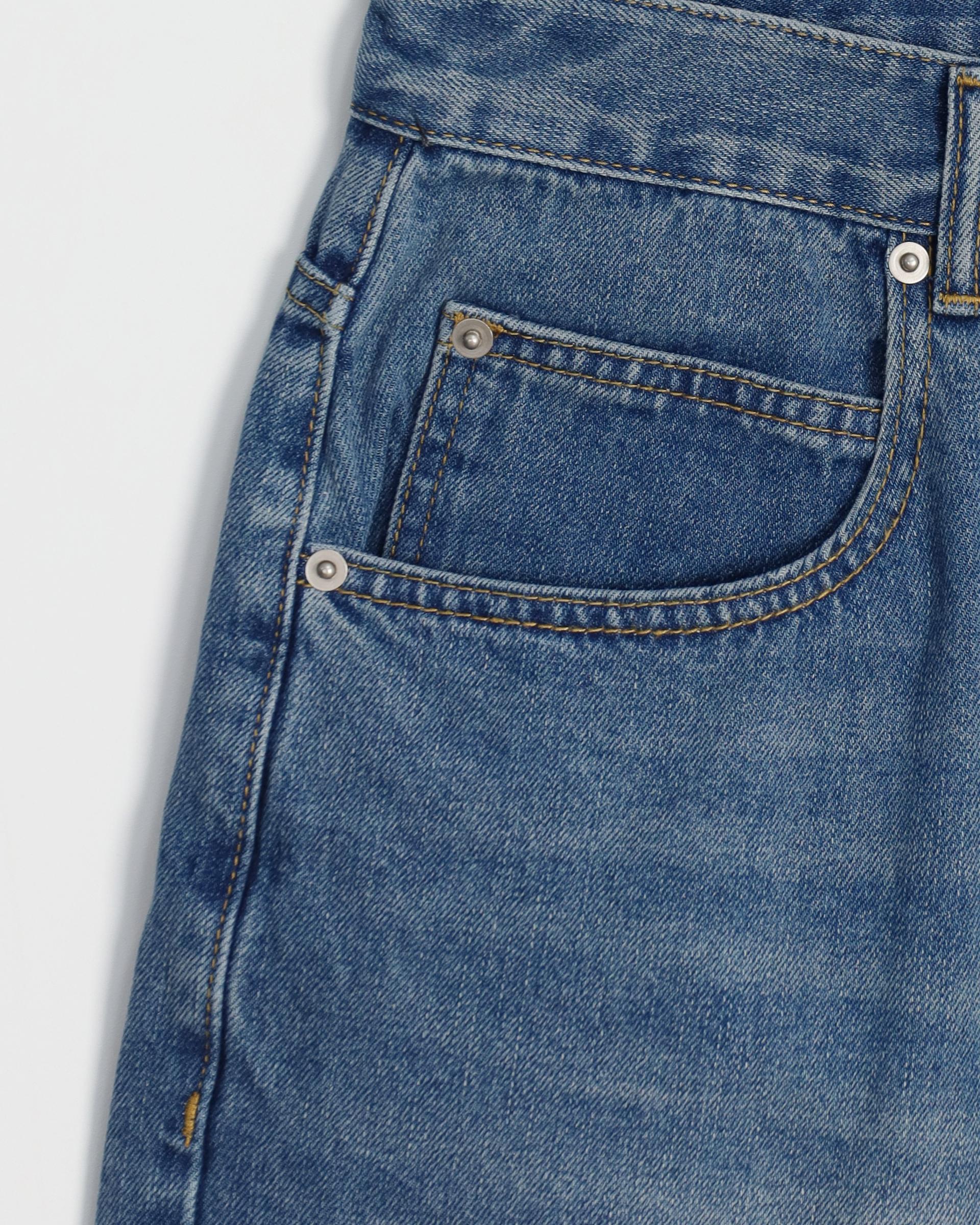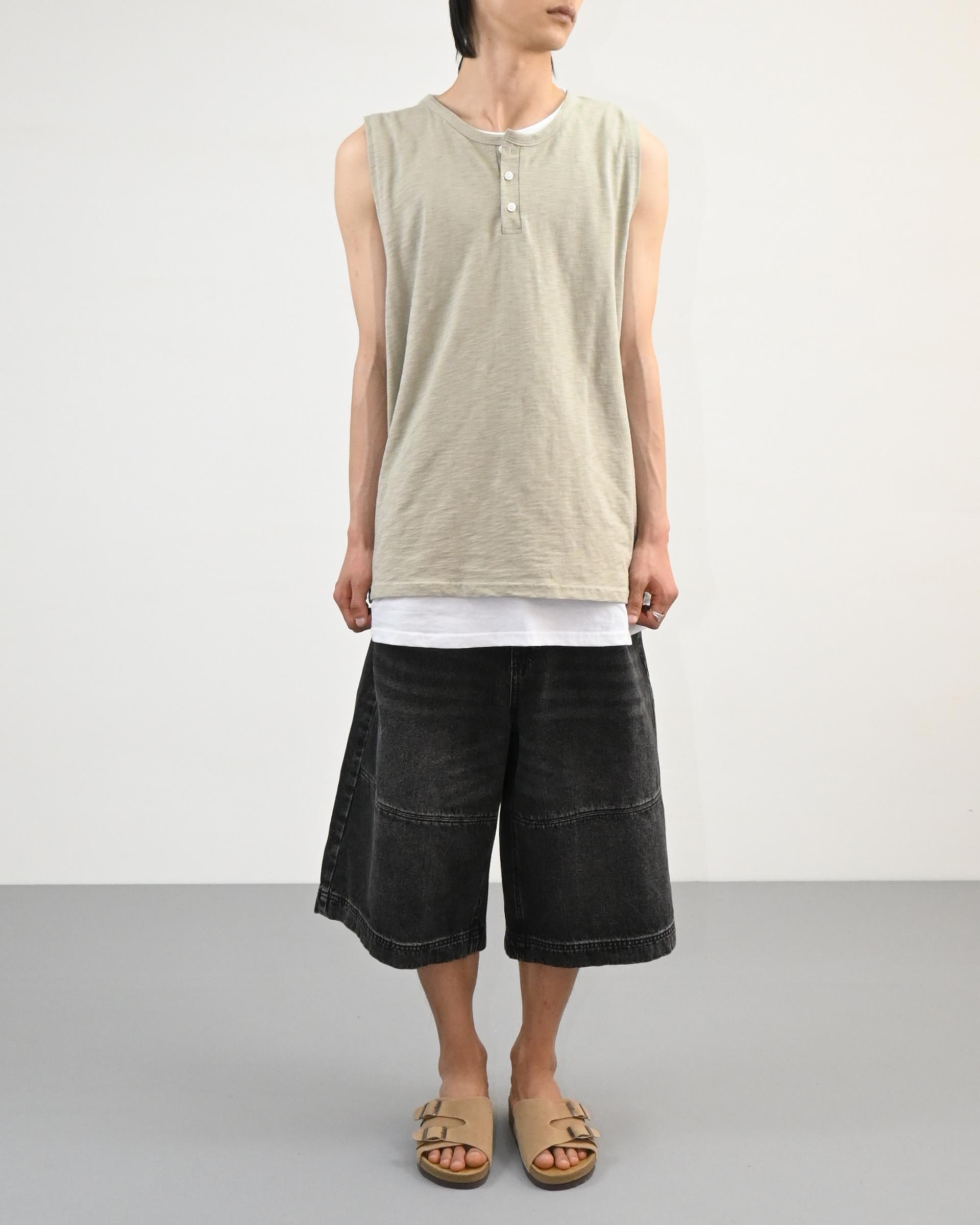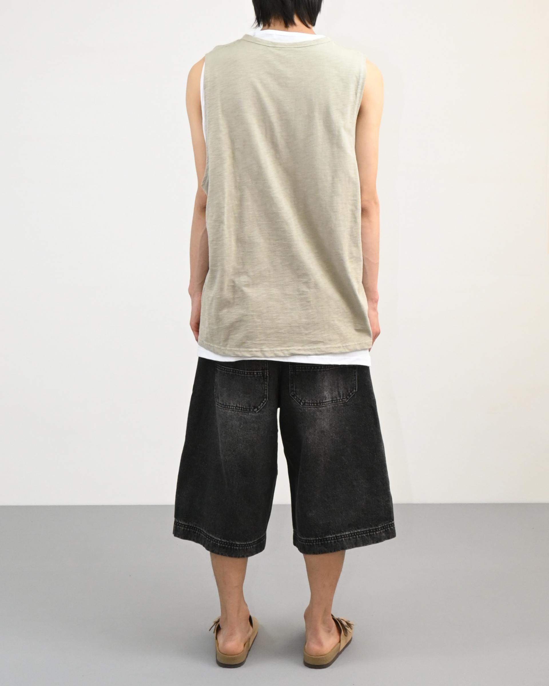 절개라인이 돋보이는 버뮤다 데님 팬츠입니다.