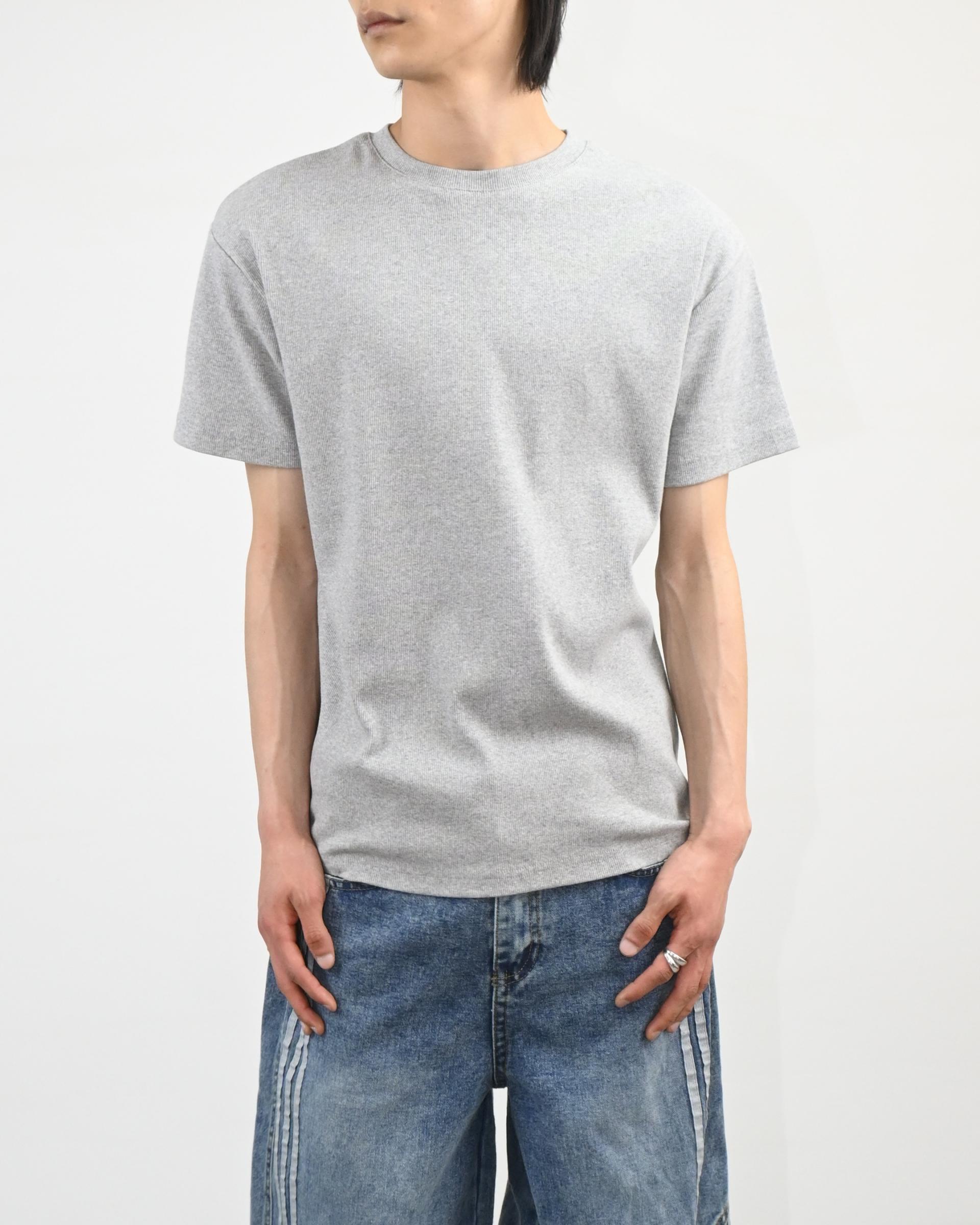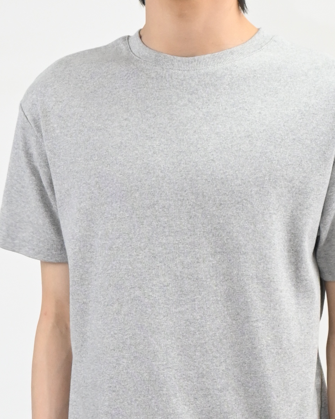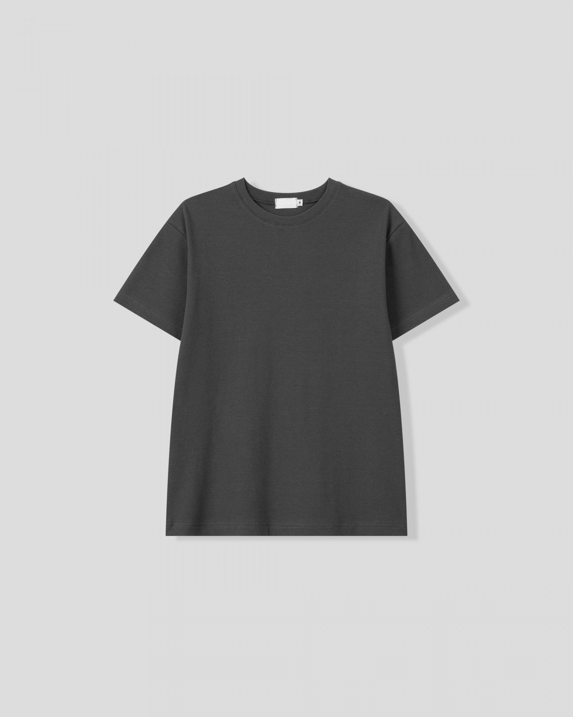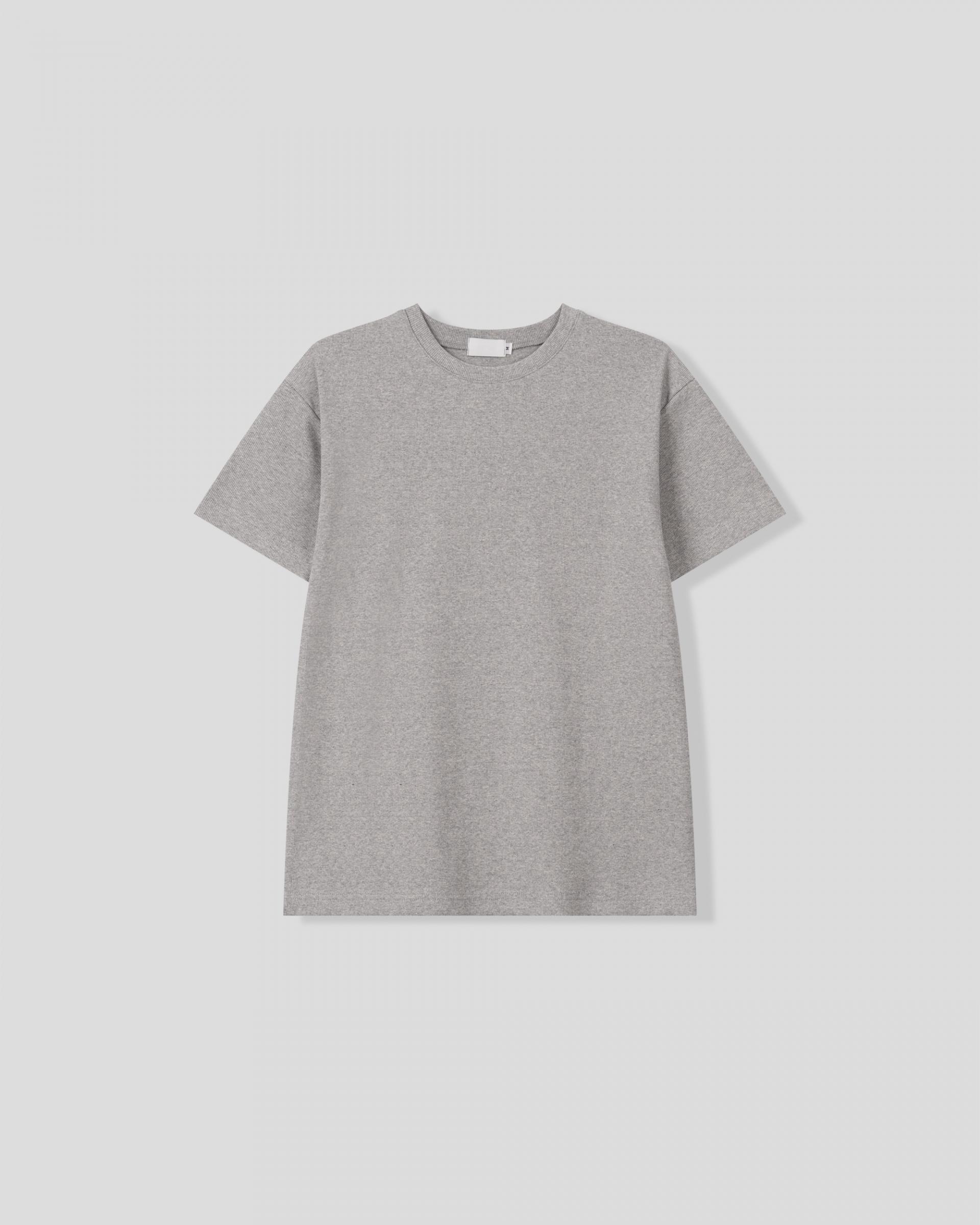 크롭 기장으로 떨어지는 골지 반팔 티셔츠입니다.