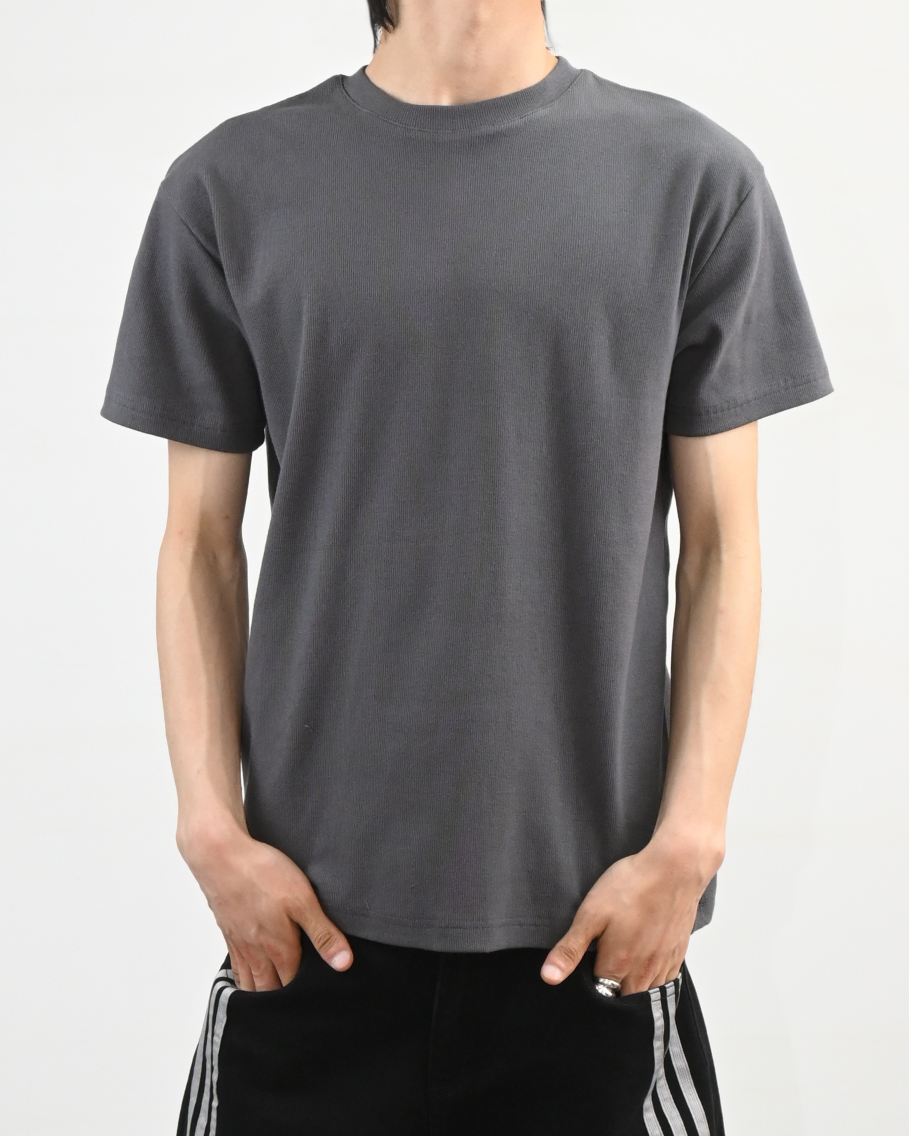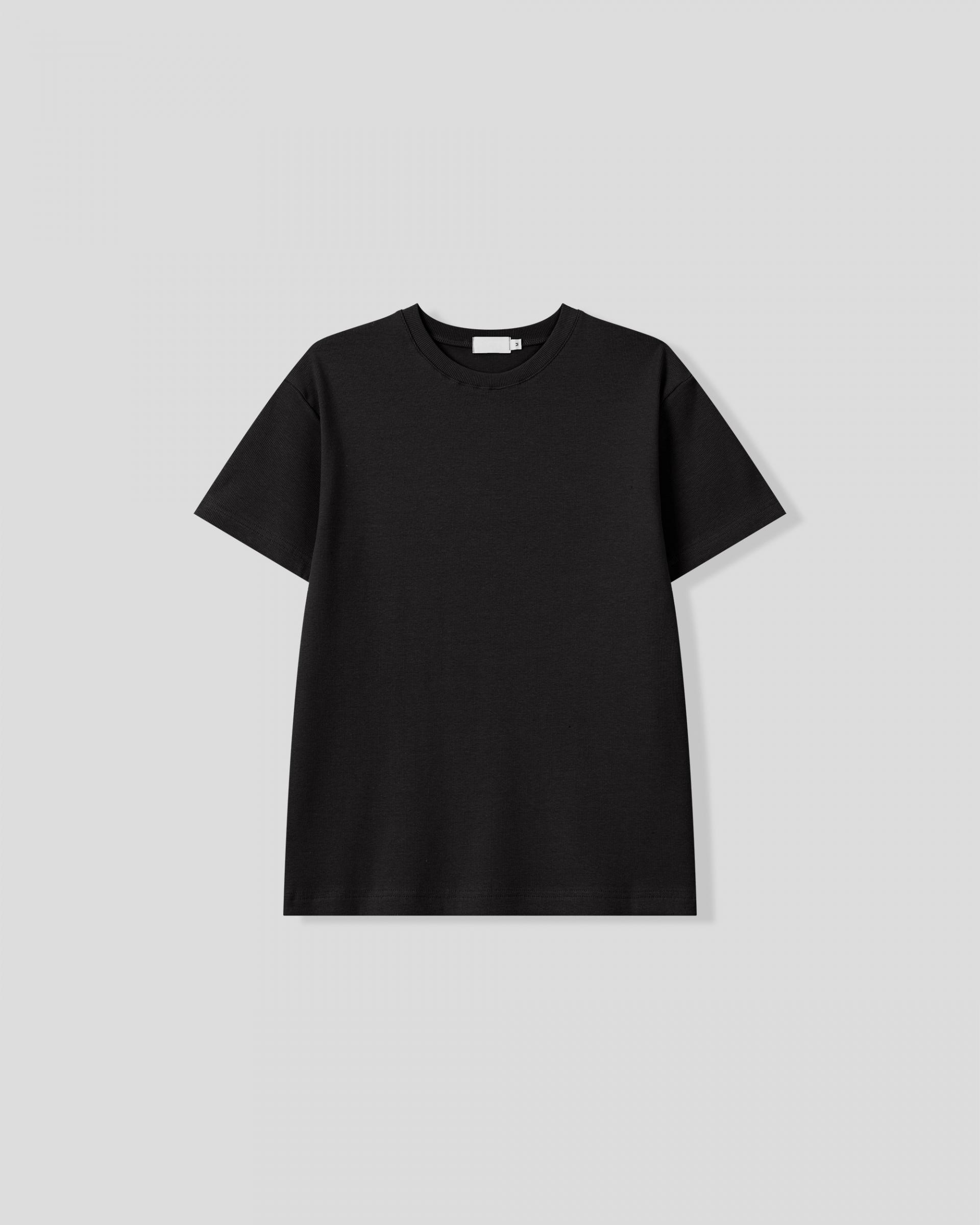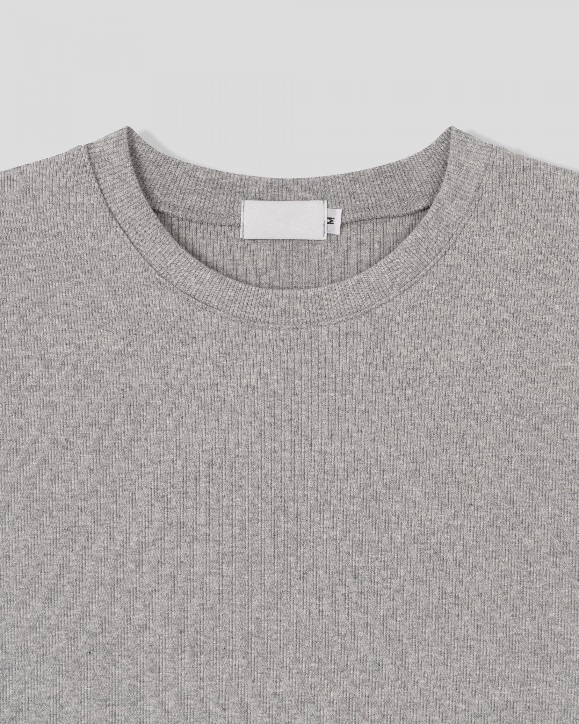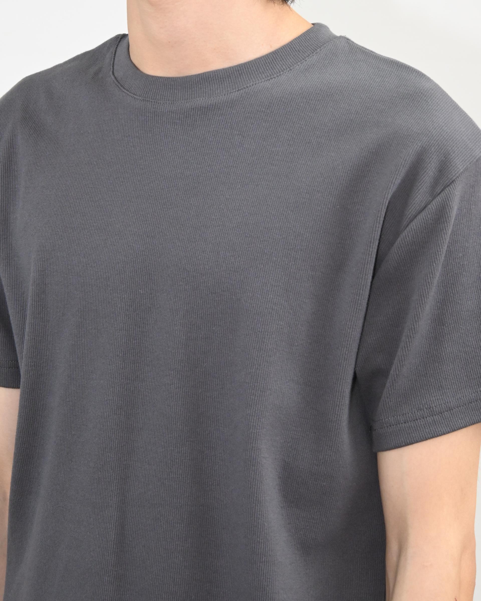 크롭 기장으로 떨어지는 골지 반팔 티셔츠입니다.