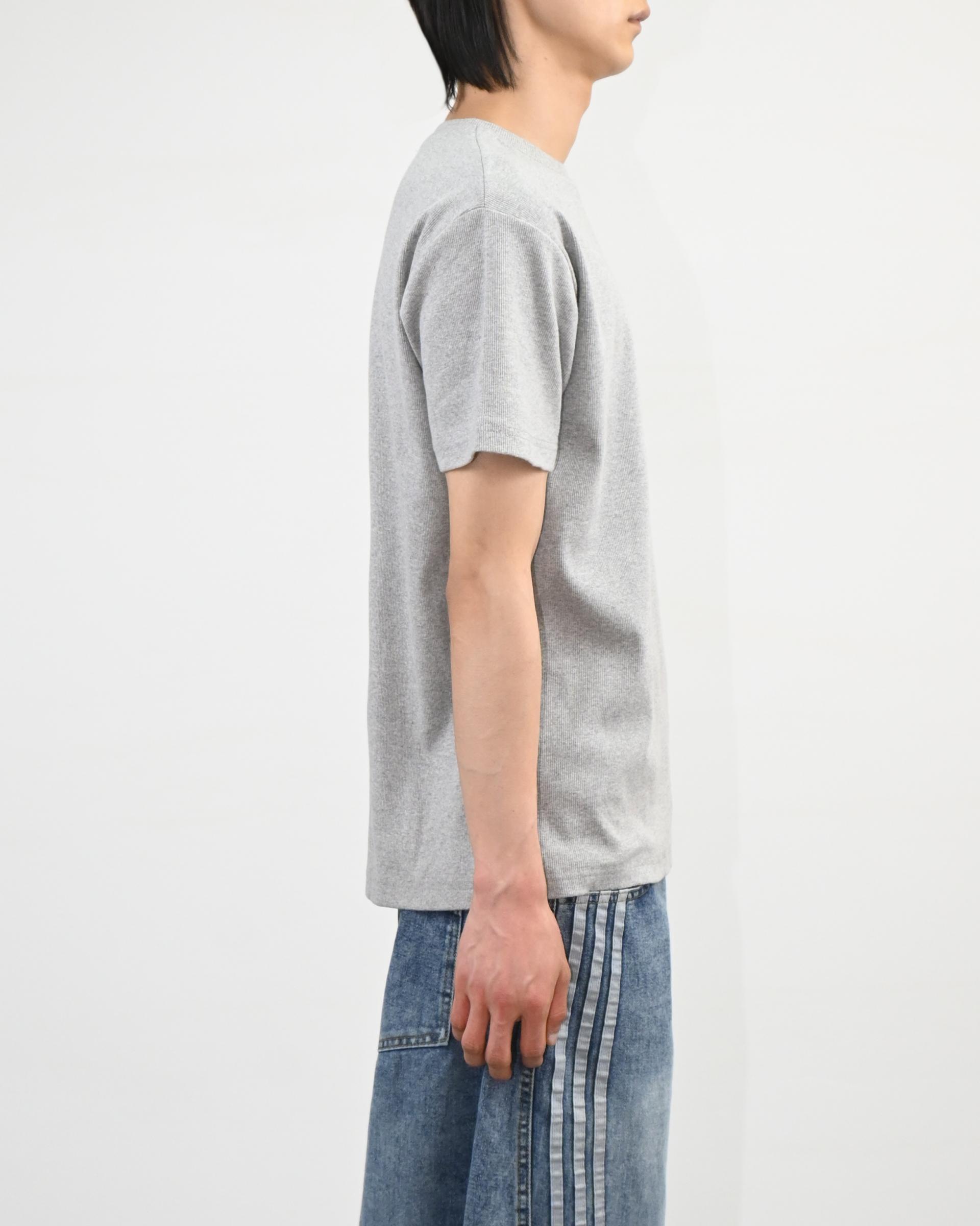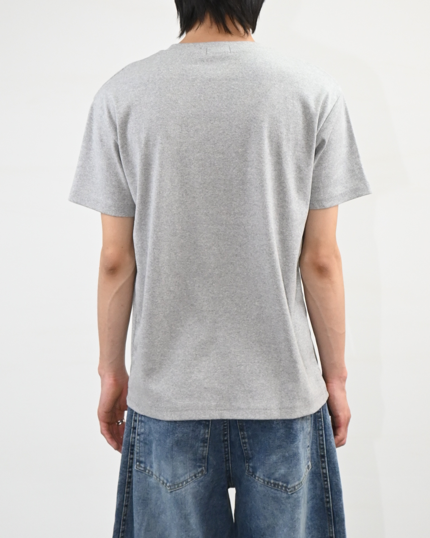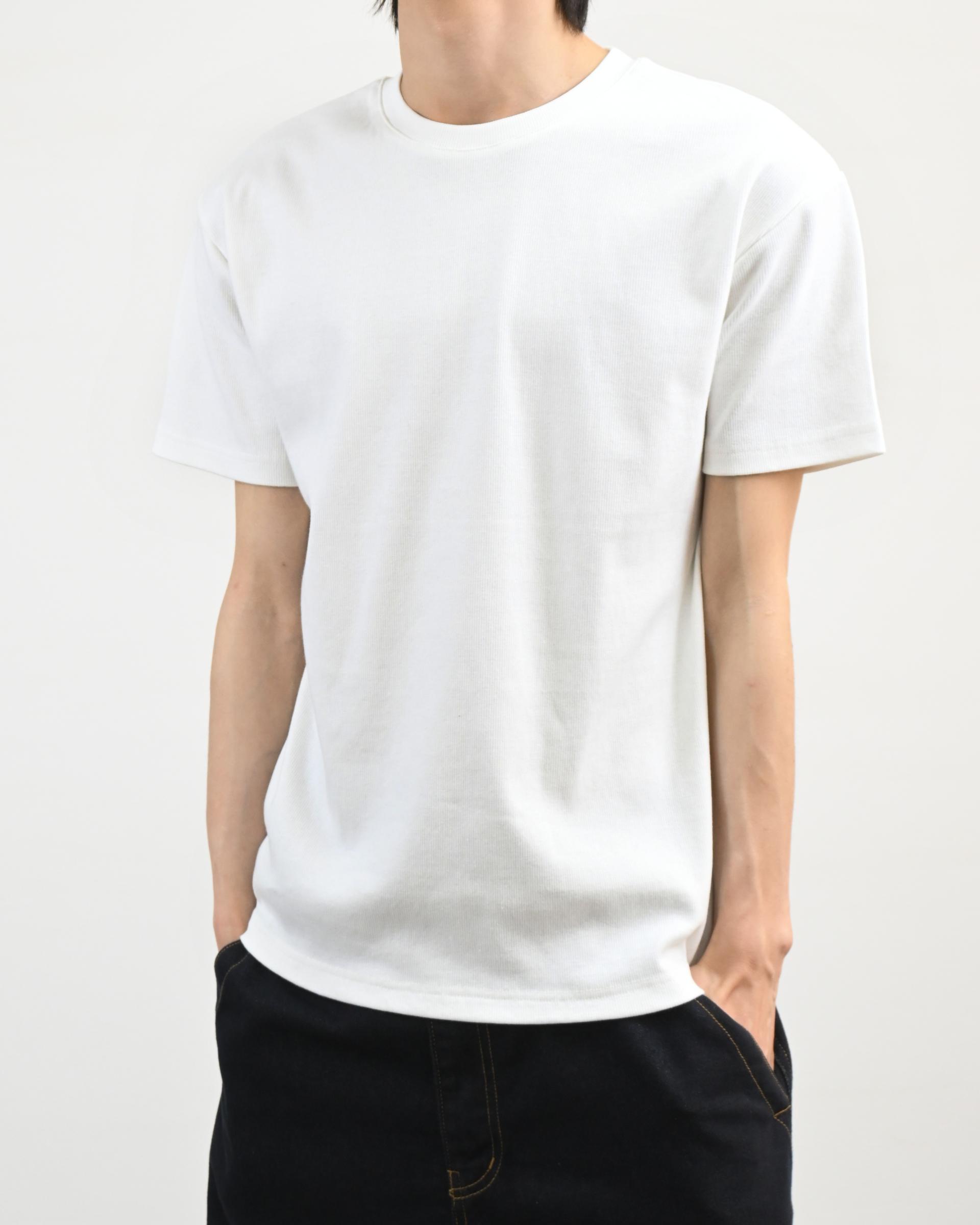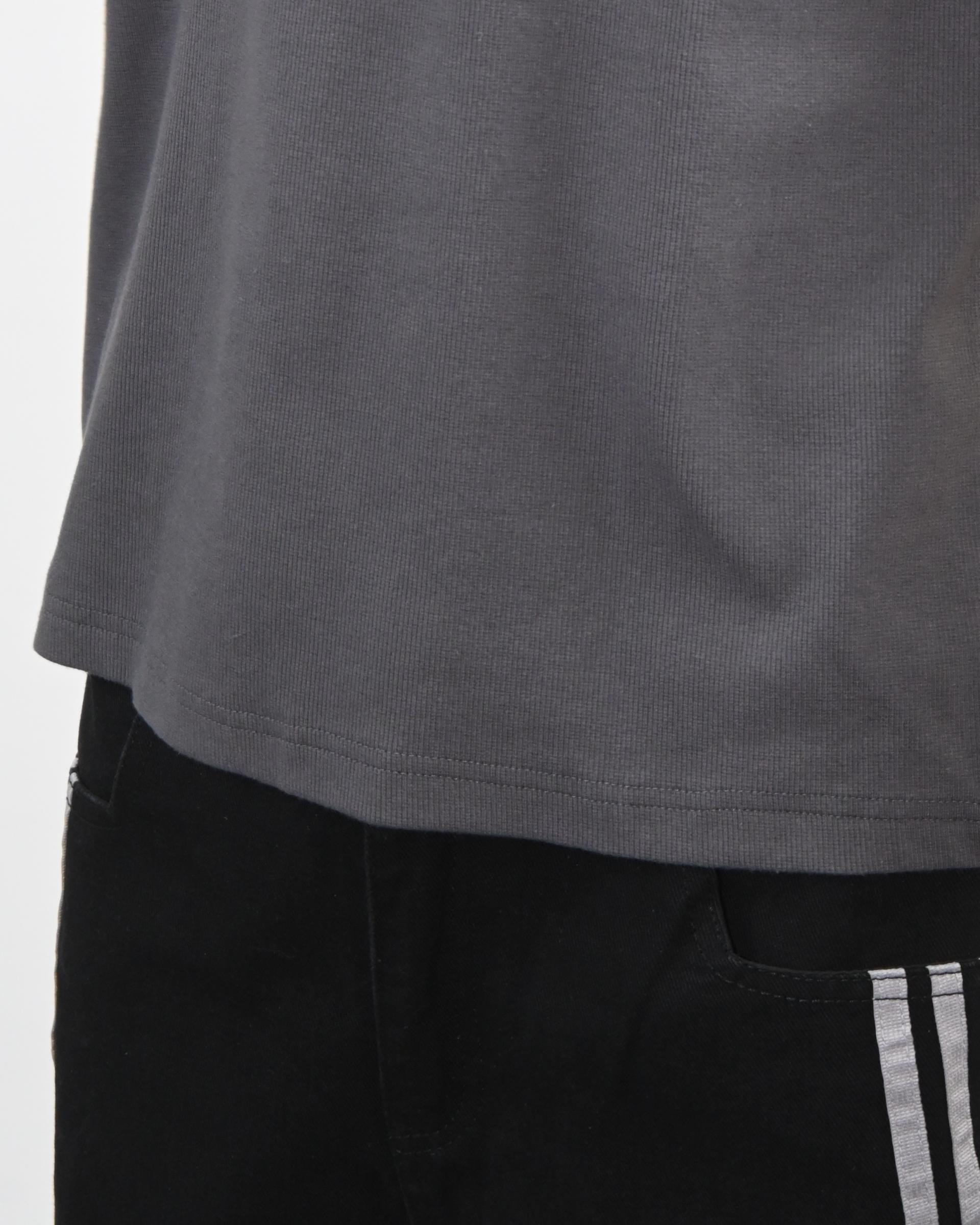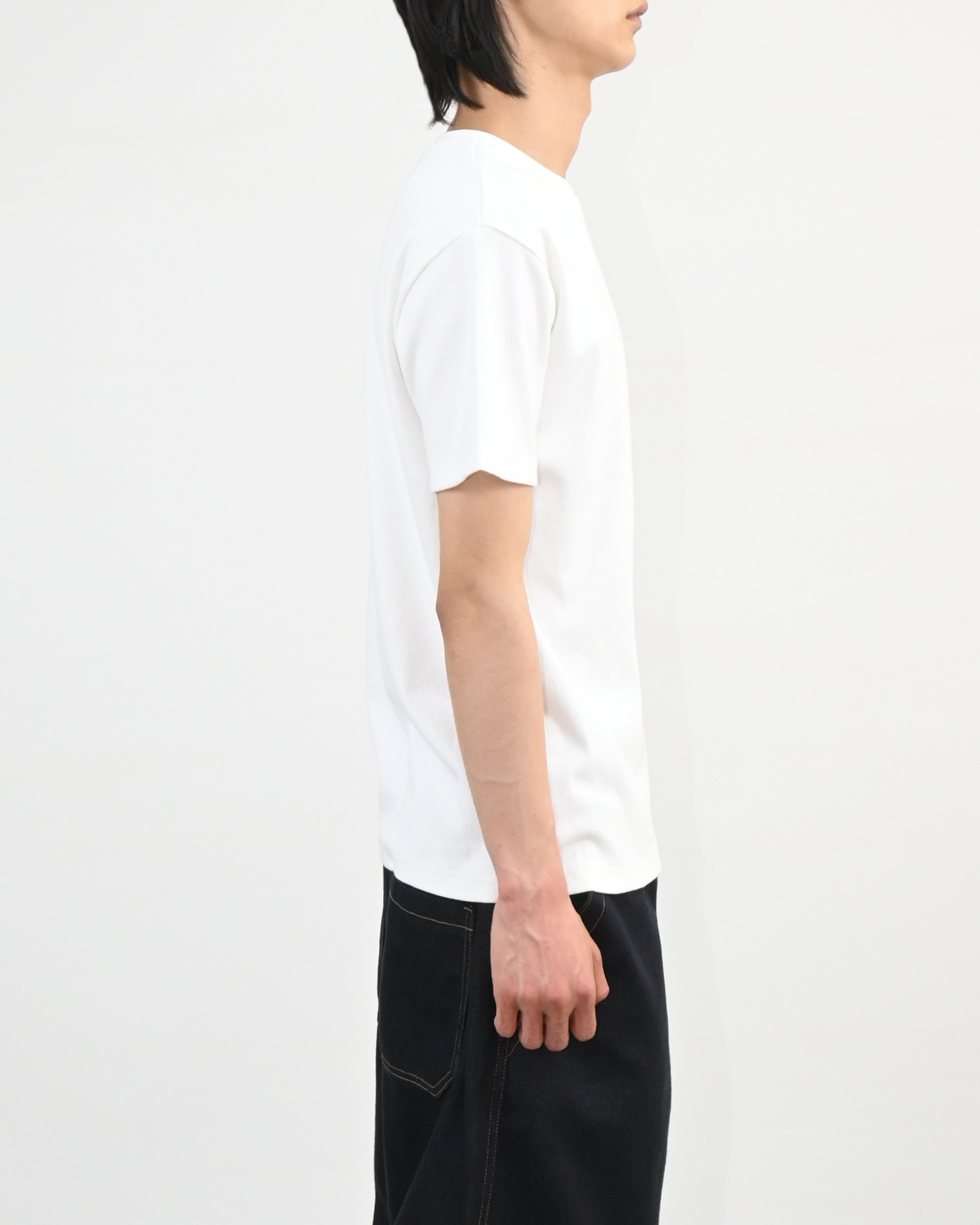 크롭 기장으로 떨어지는 골지 반팔 티셔츠입니다.