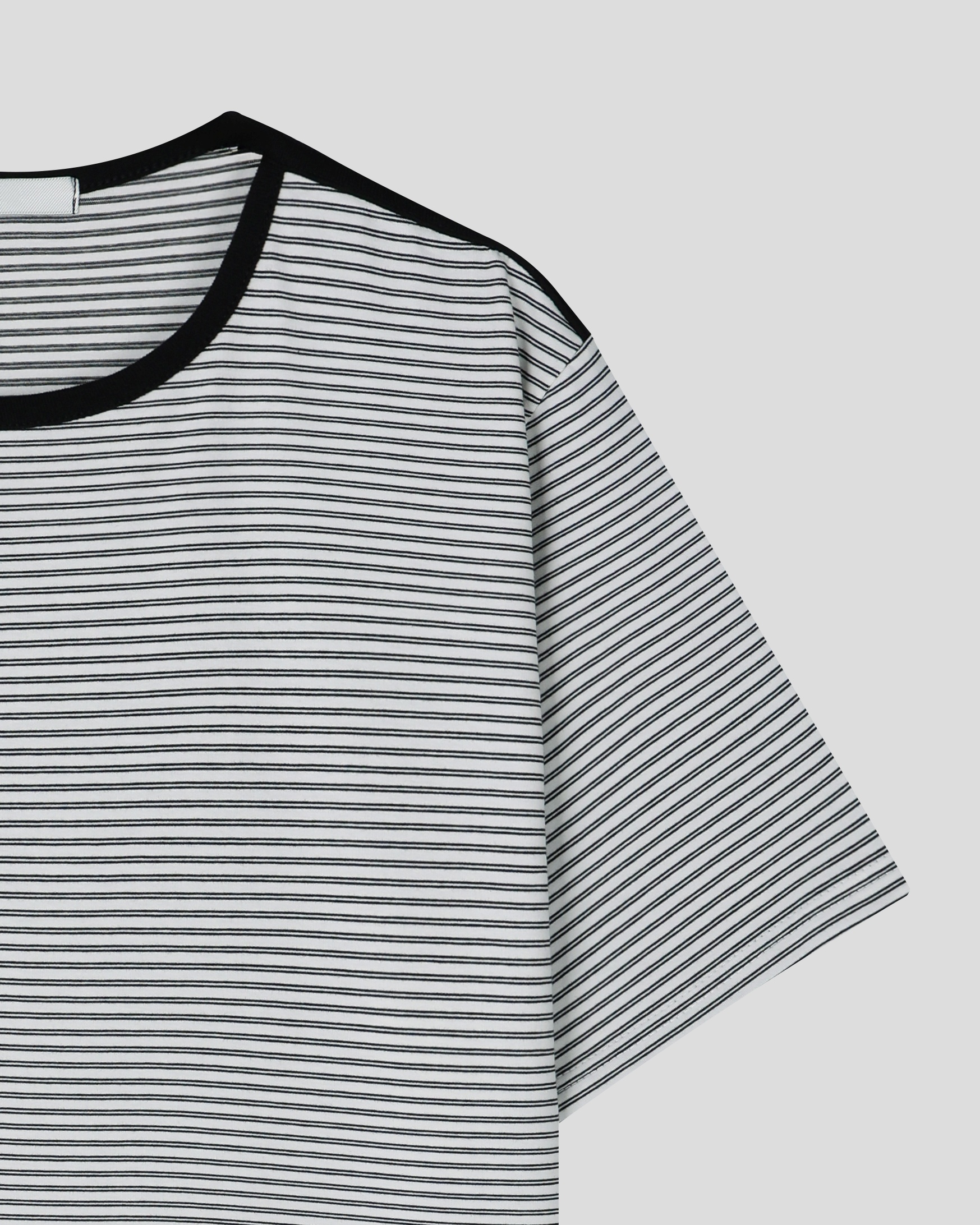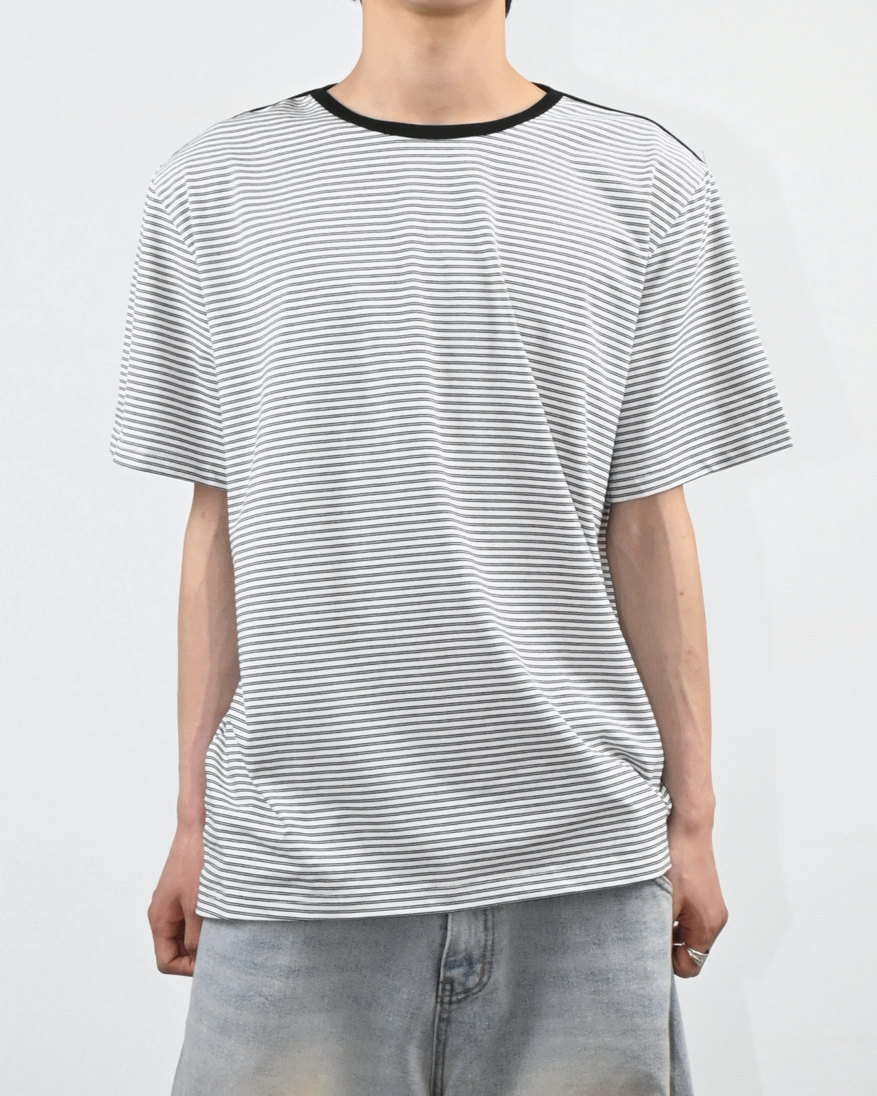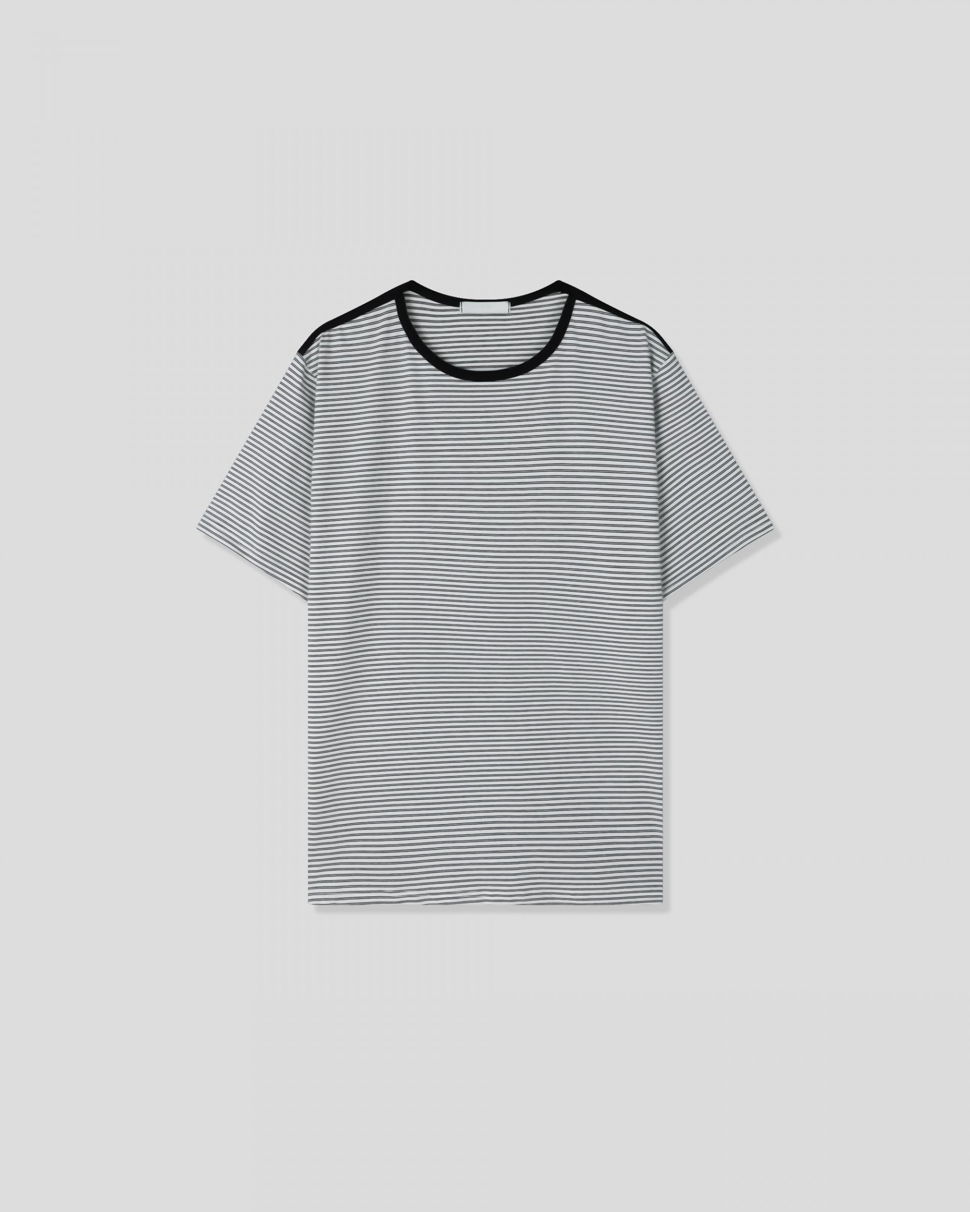 립 넥 포인트를 더한 반팔 티셔츠입니다.