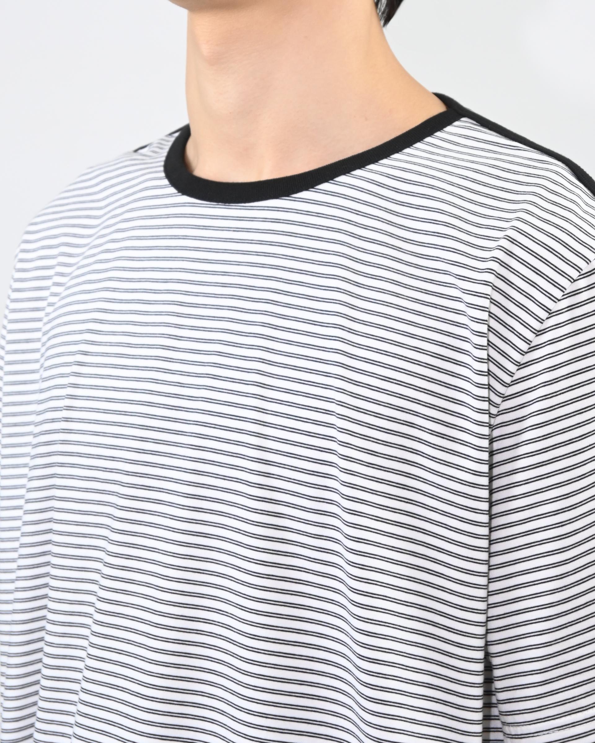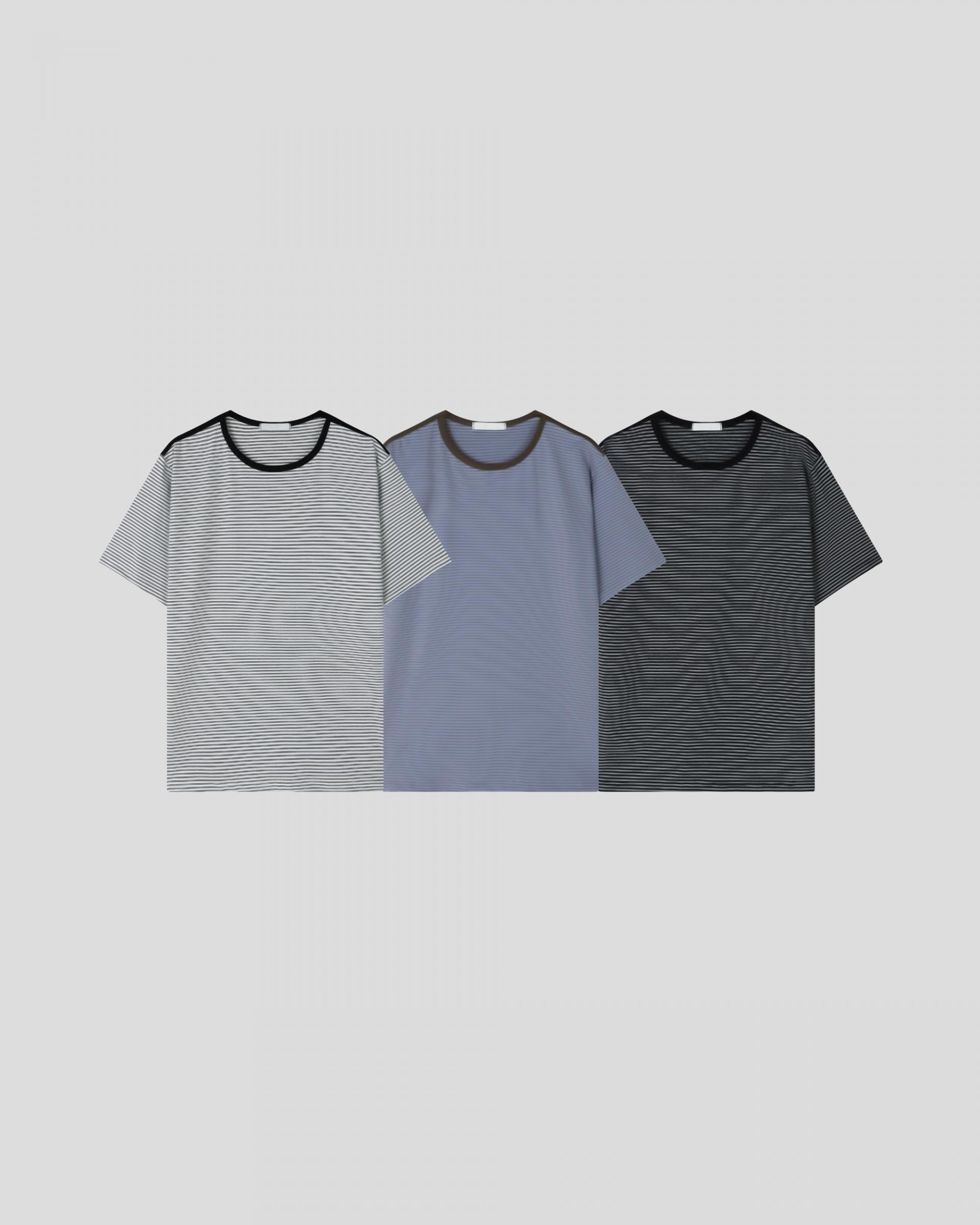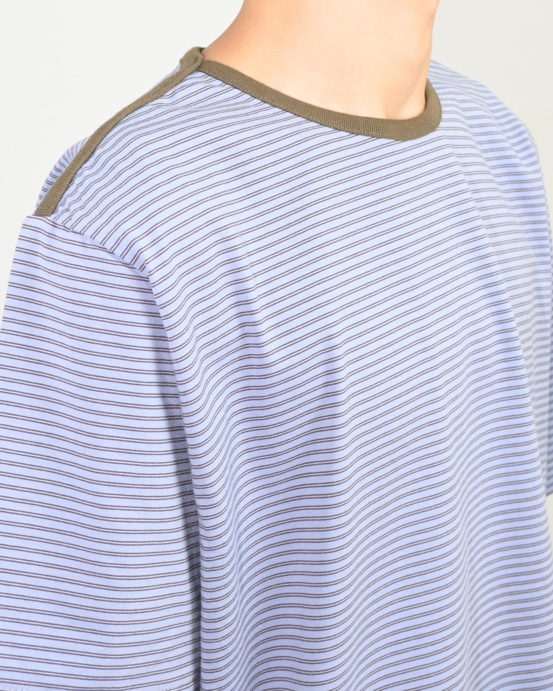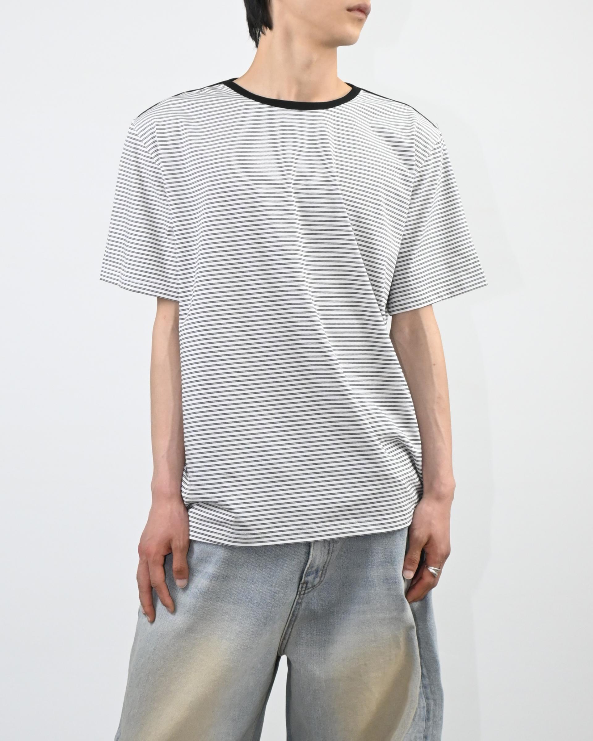 립 넥 포인트를 더한 반팔 티셔츠입니다.