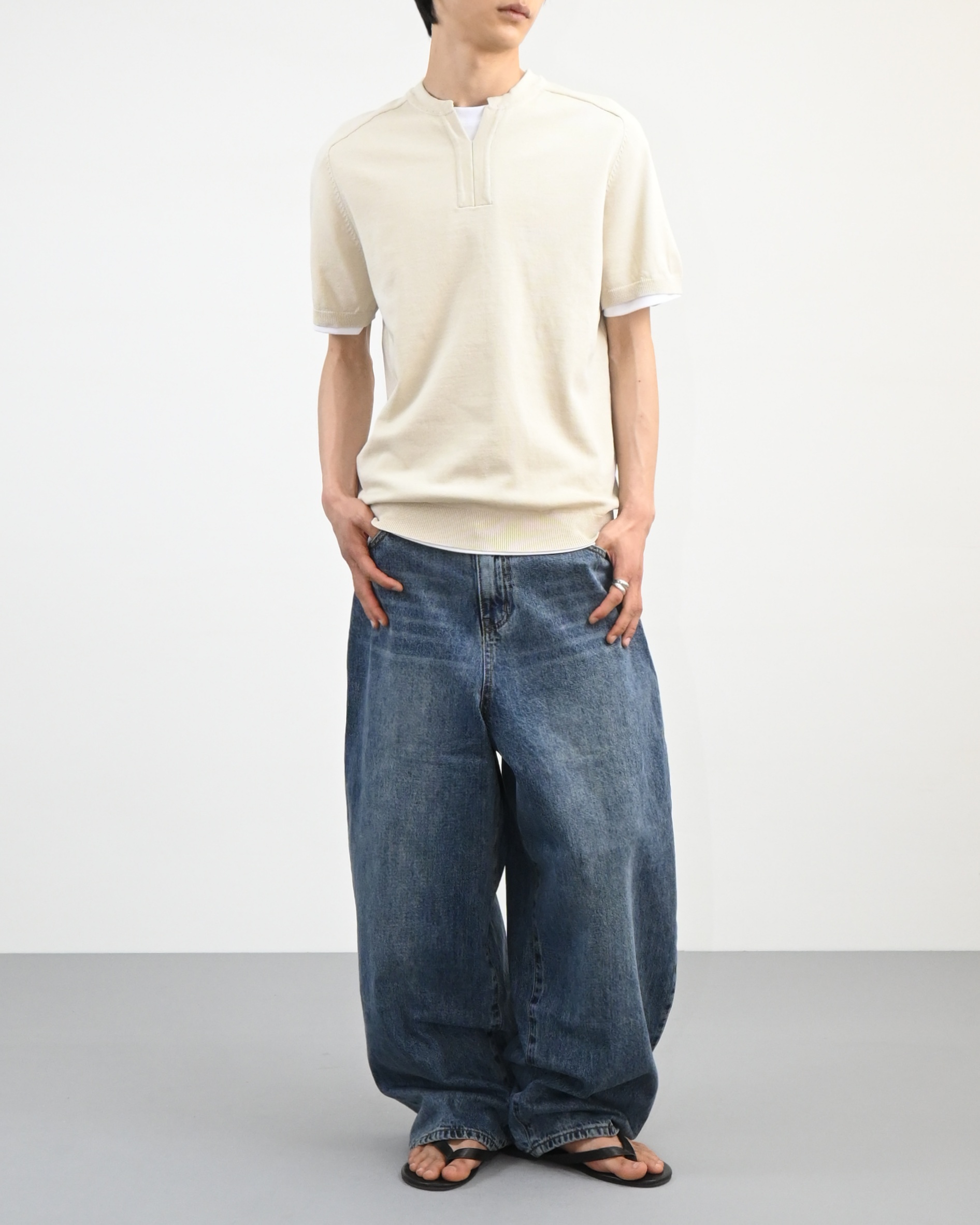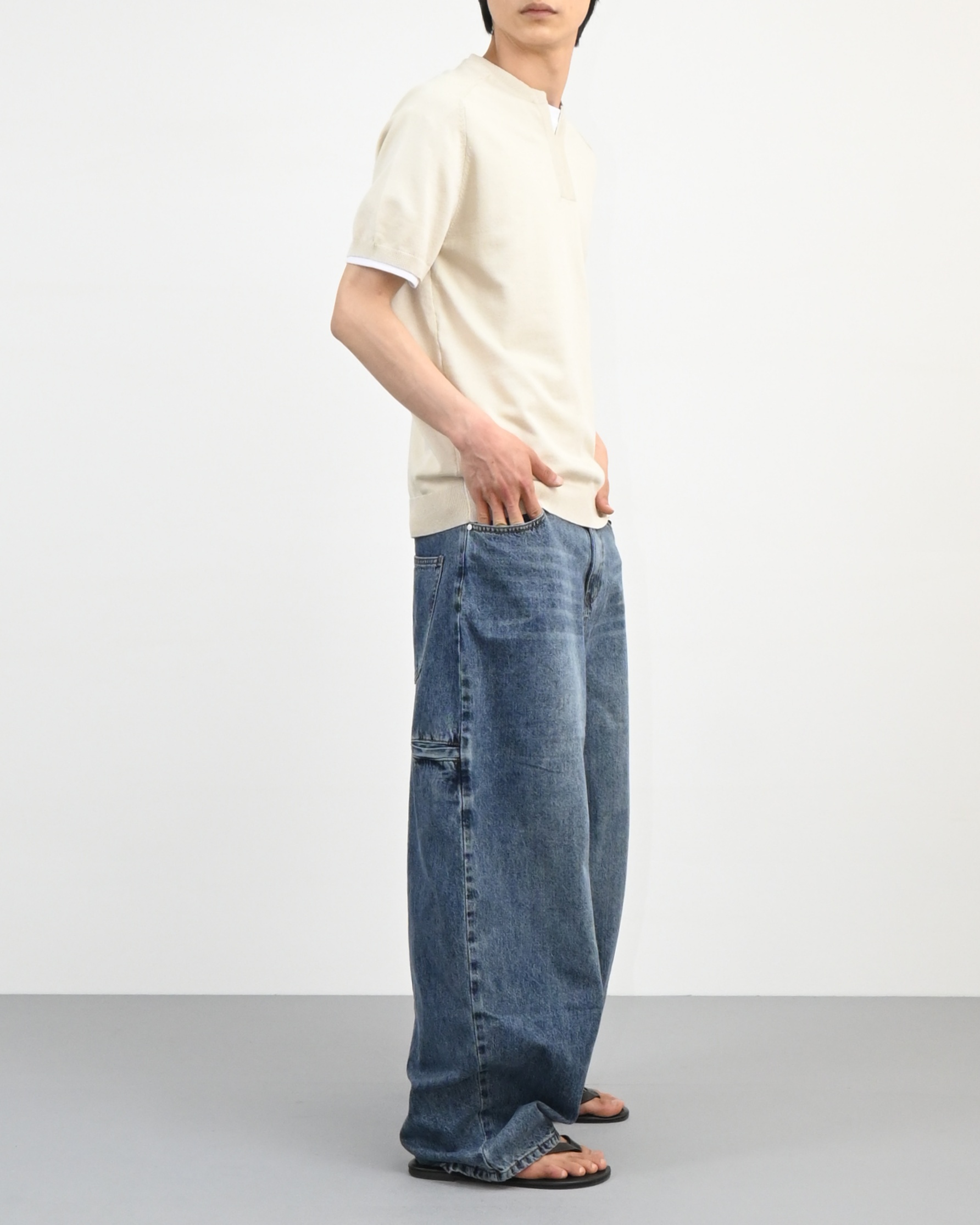 오른쪽 사이드에 절개와 워싱 디테일로