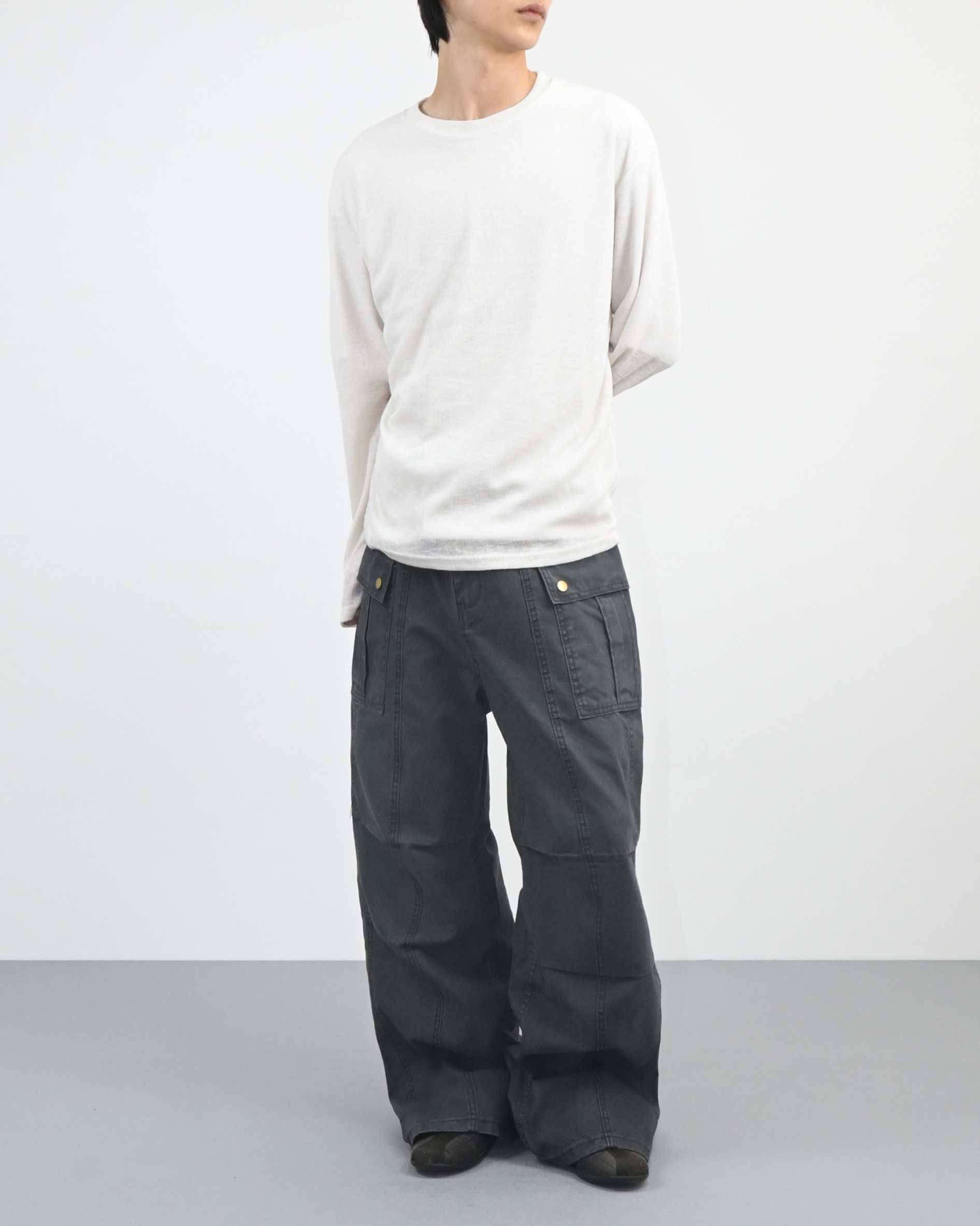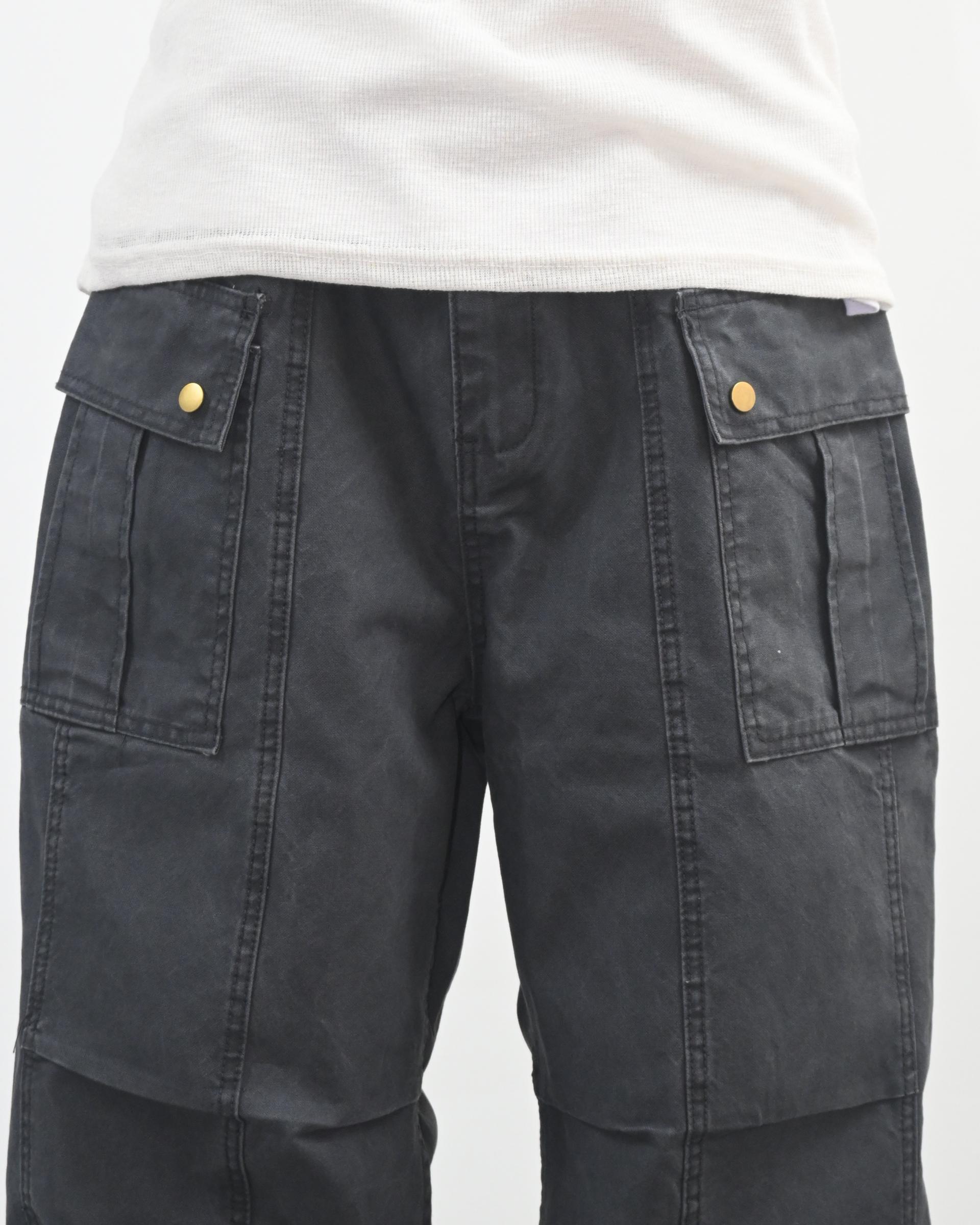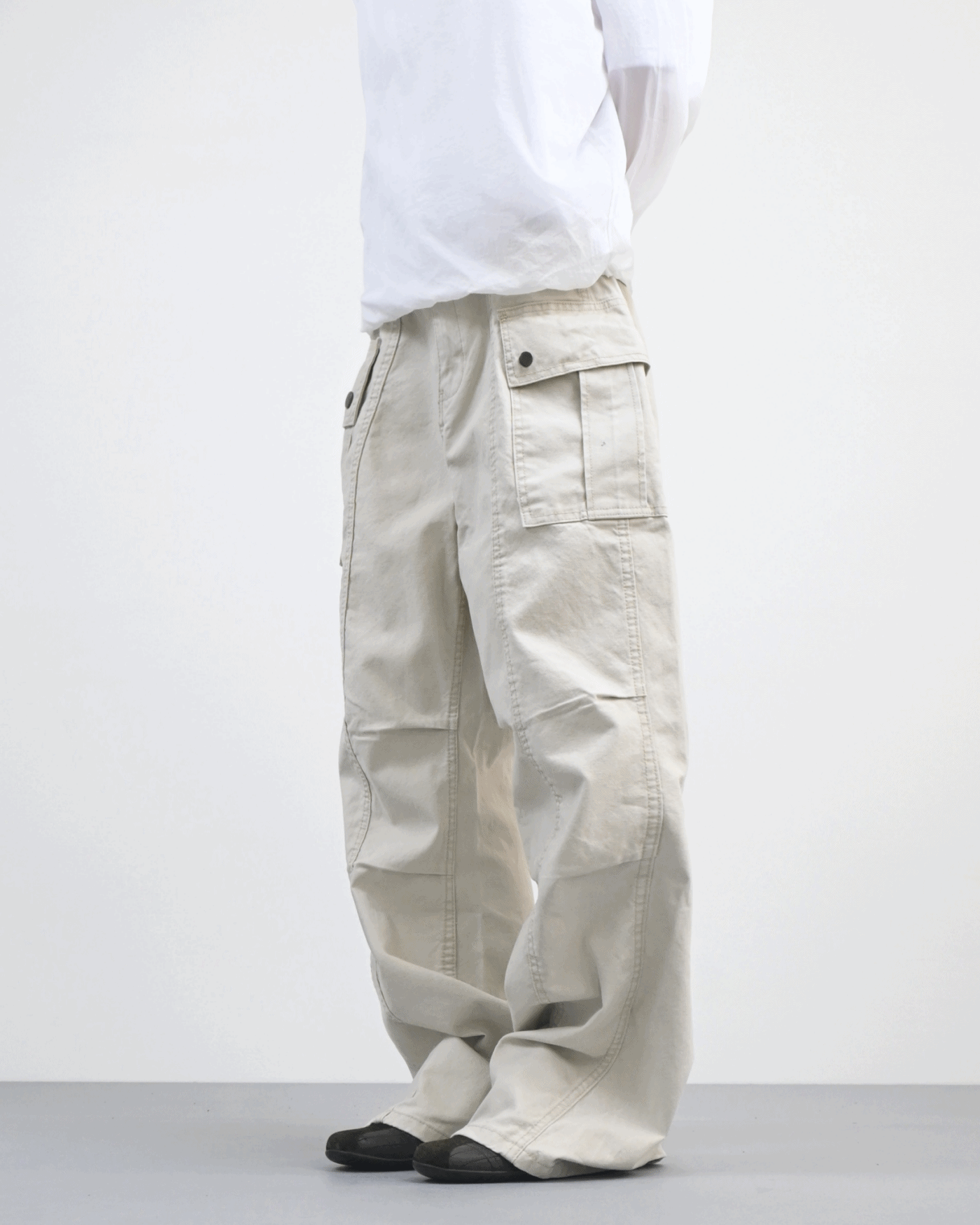 입체적인 절개 라인이 특징인 카고 팬츠입니다.