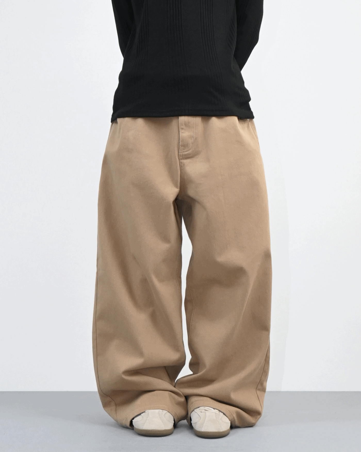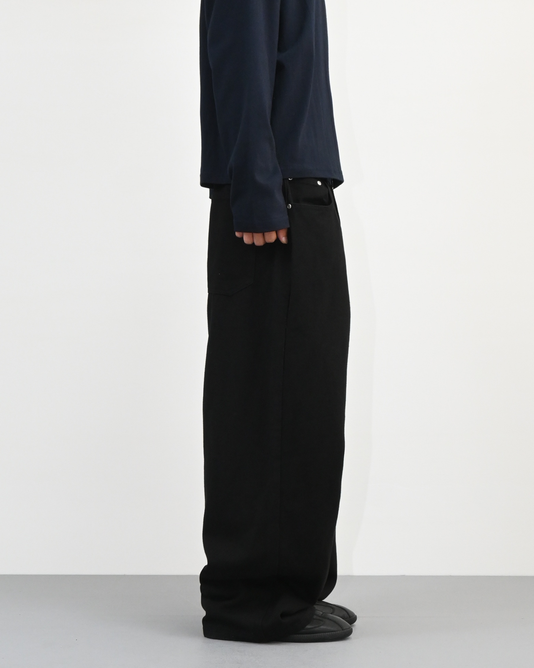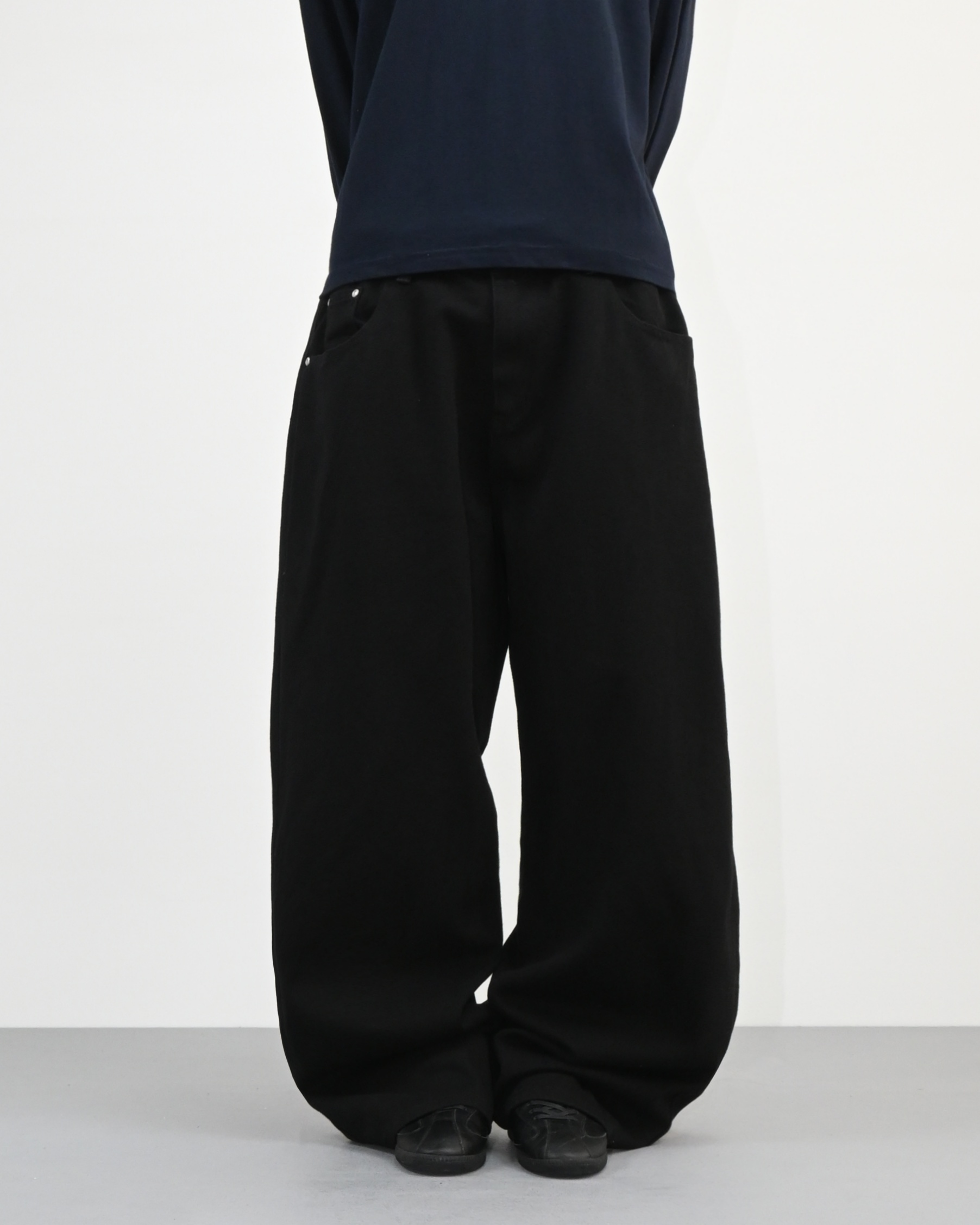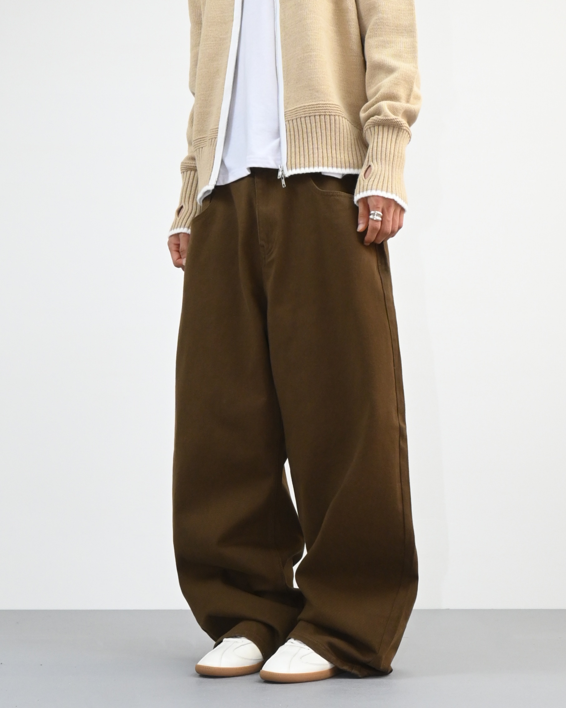 허리에서 곧게 떨어지는 와이드핏으로