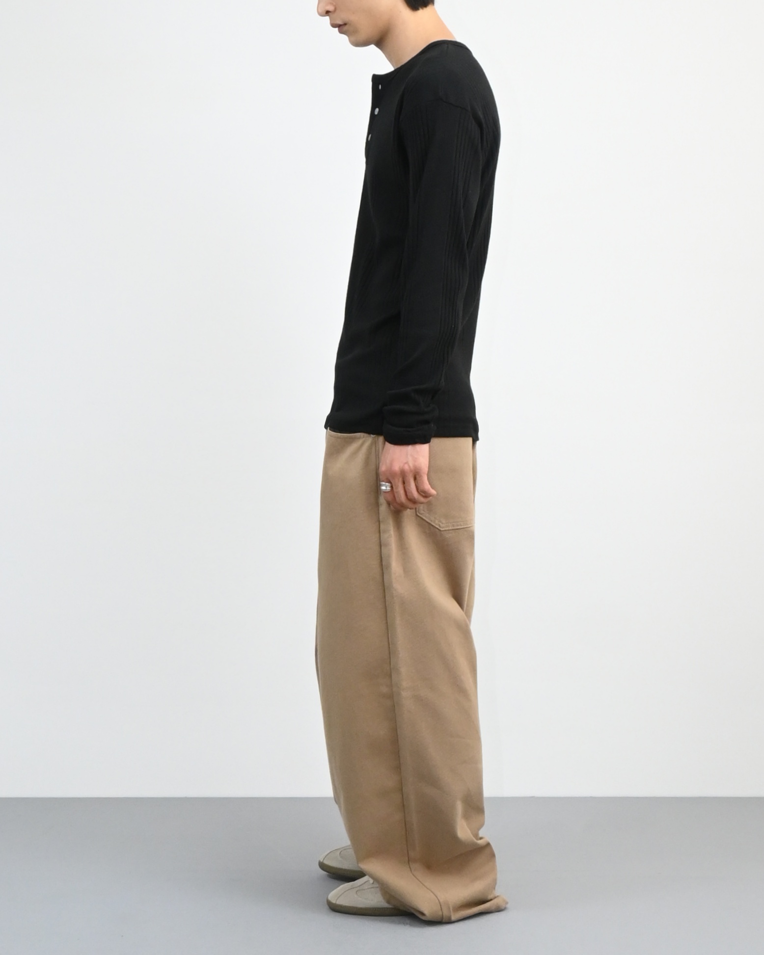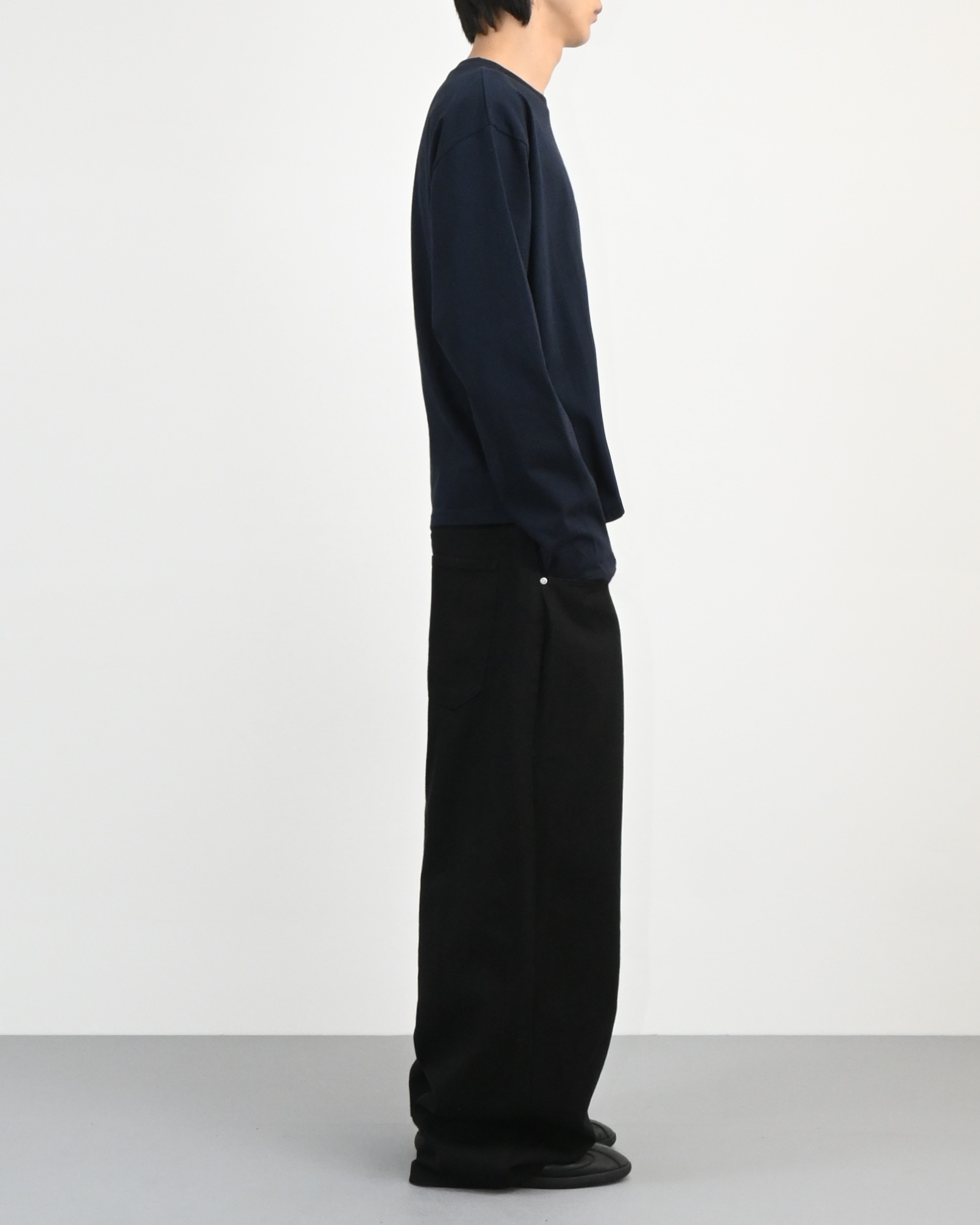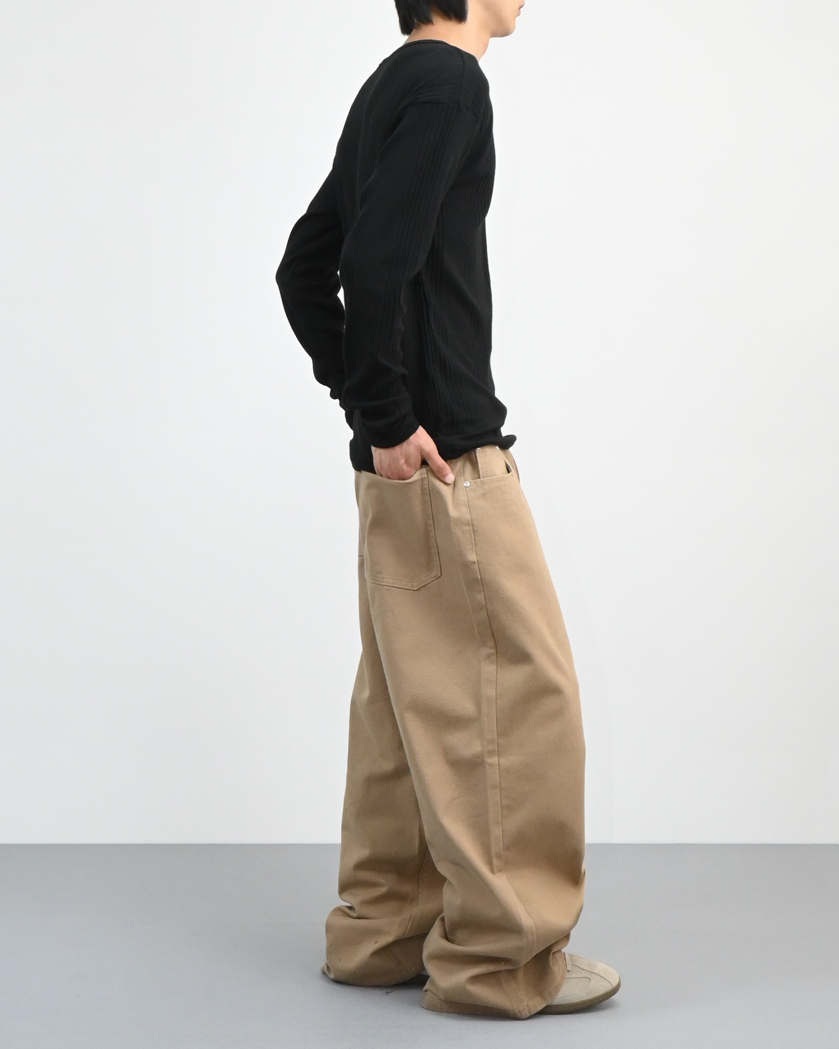 허리에서 곧게 떨어지는 와이드핏으로