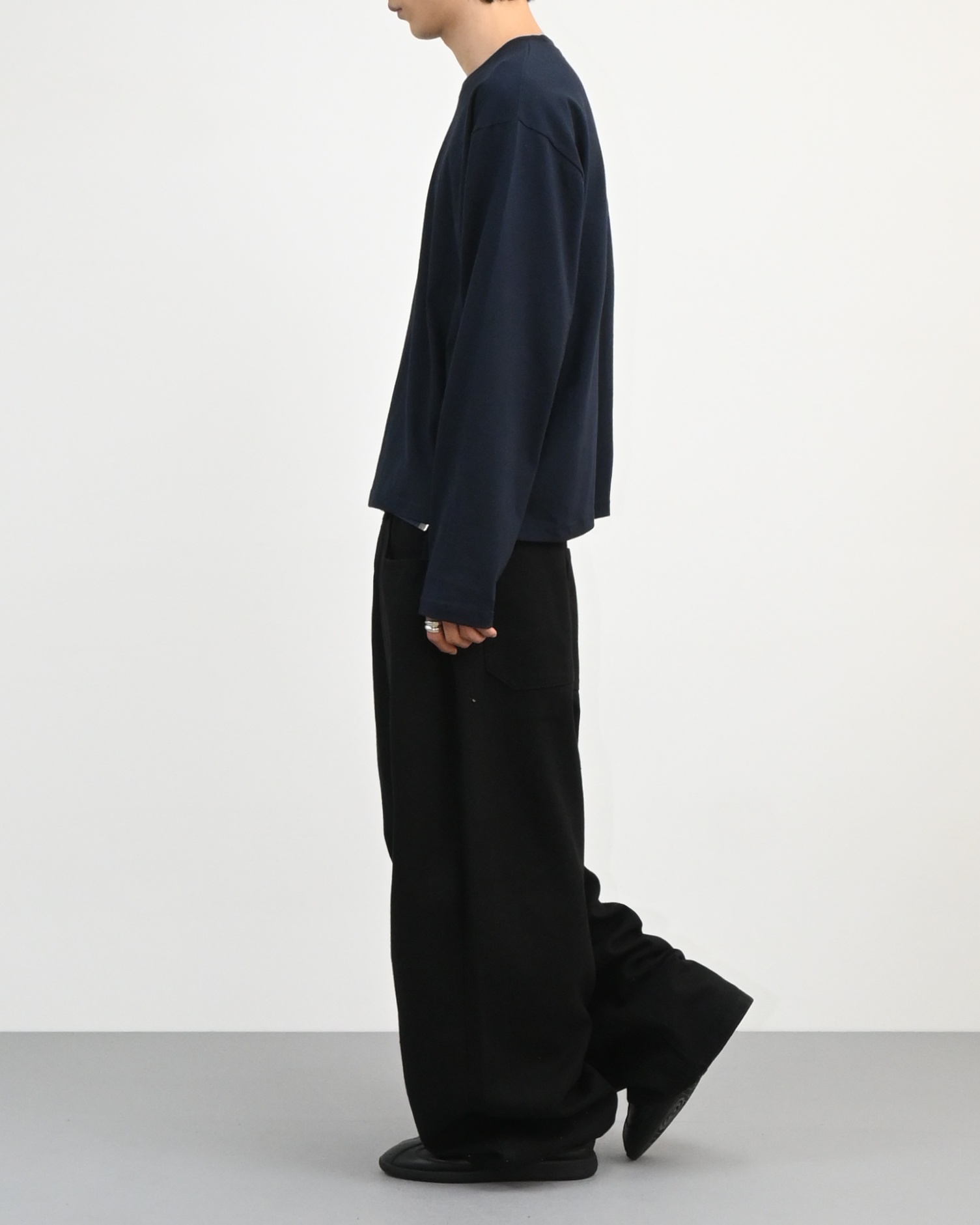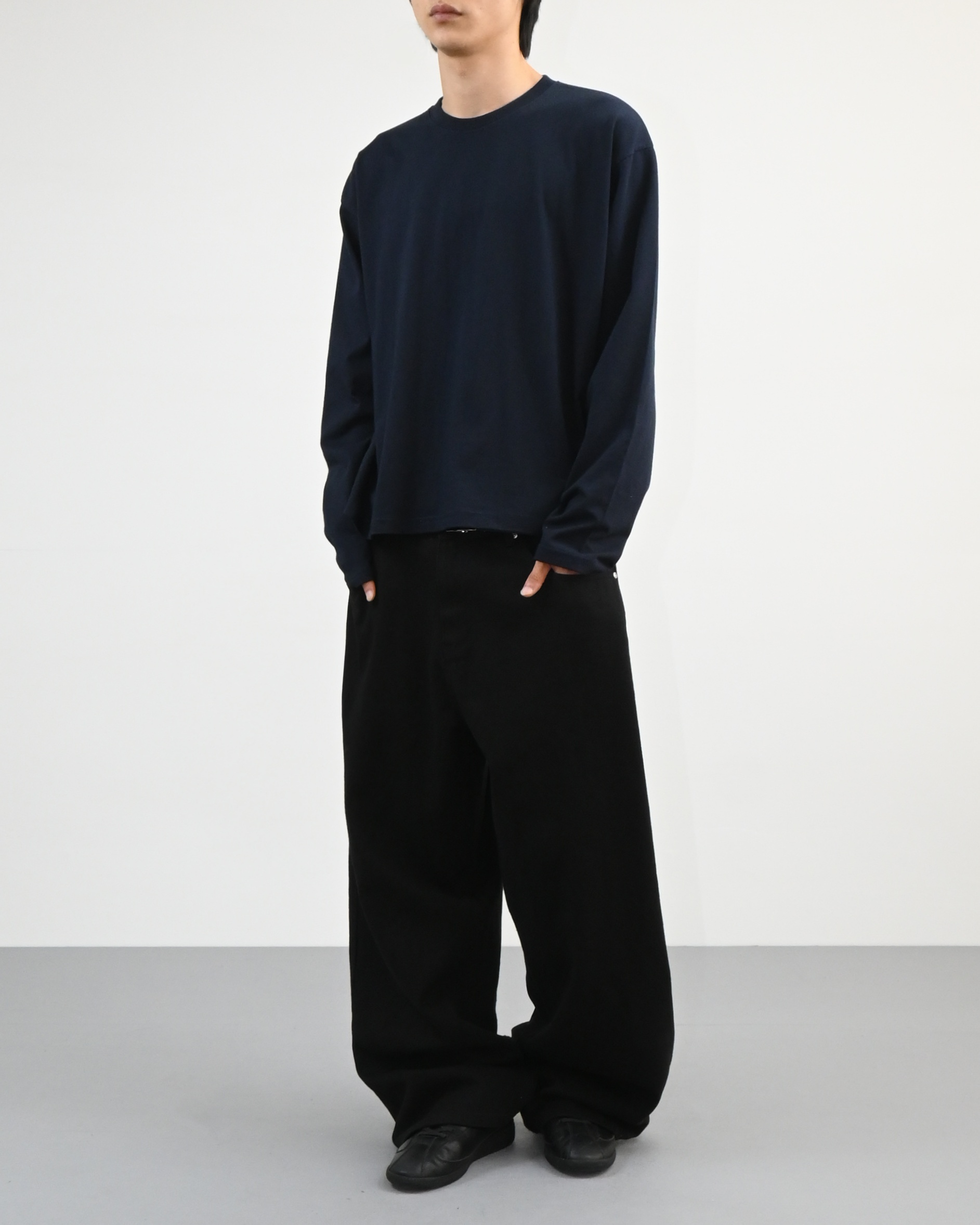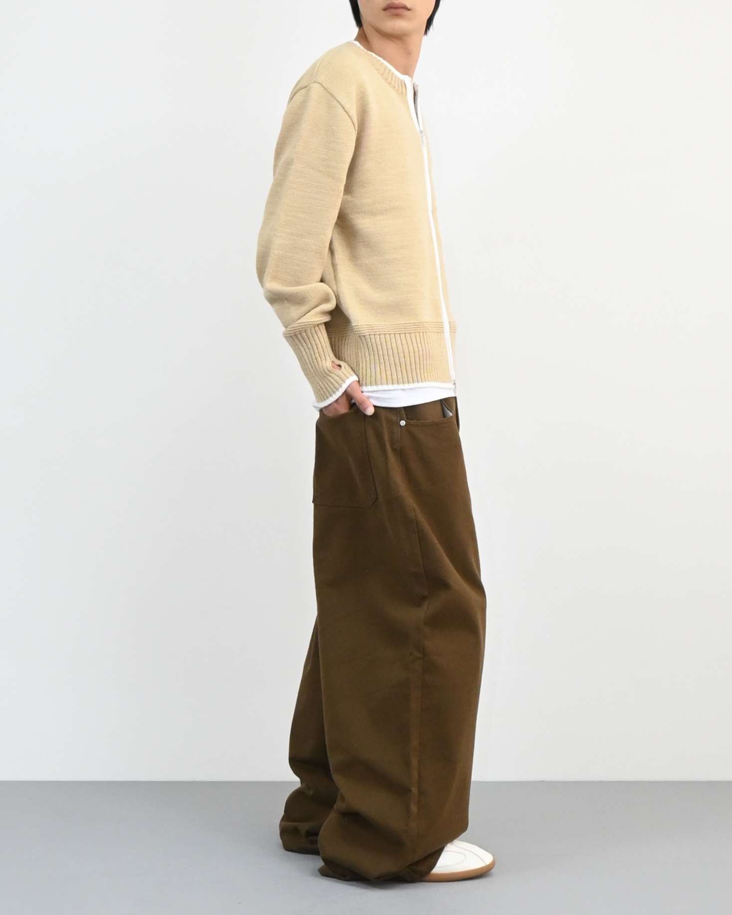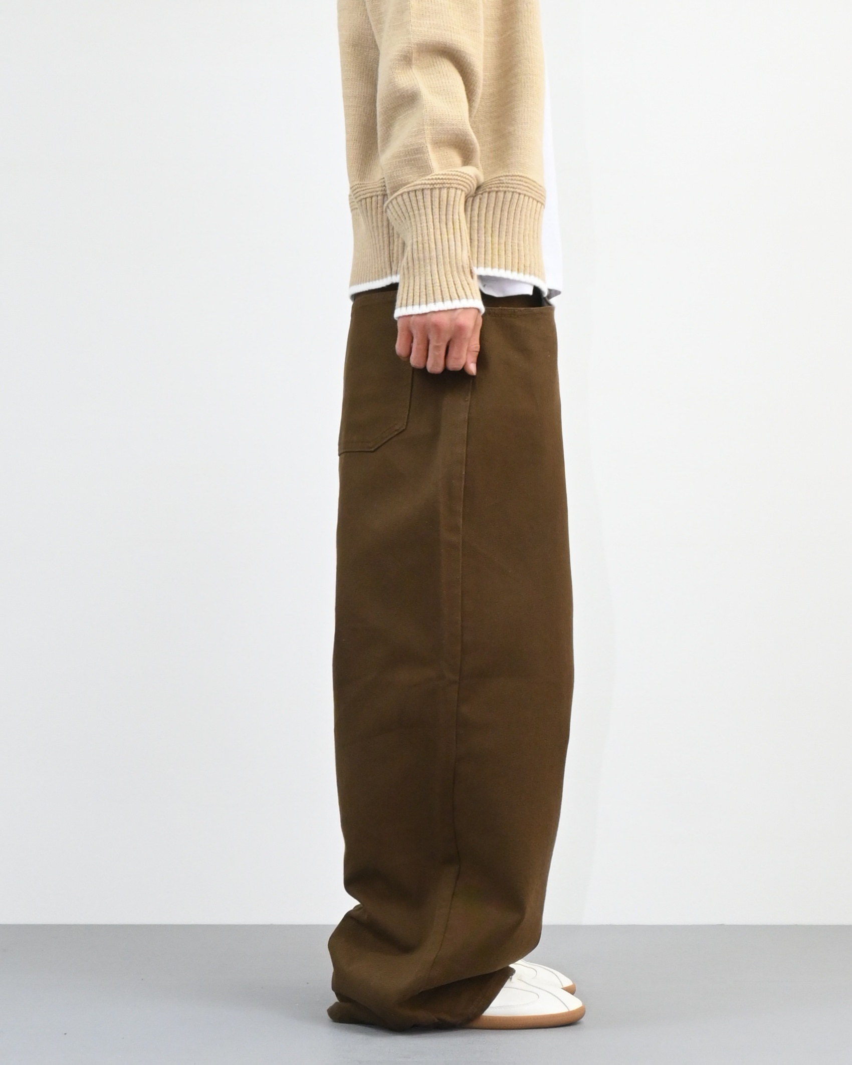 허리에서 곧게 떨어지는 와이드핏으로