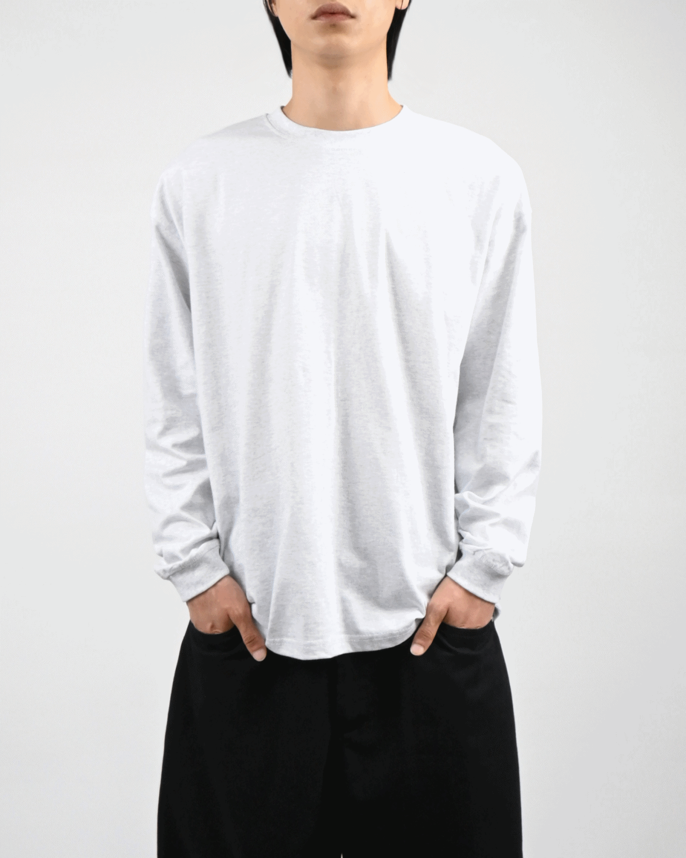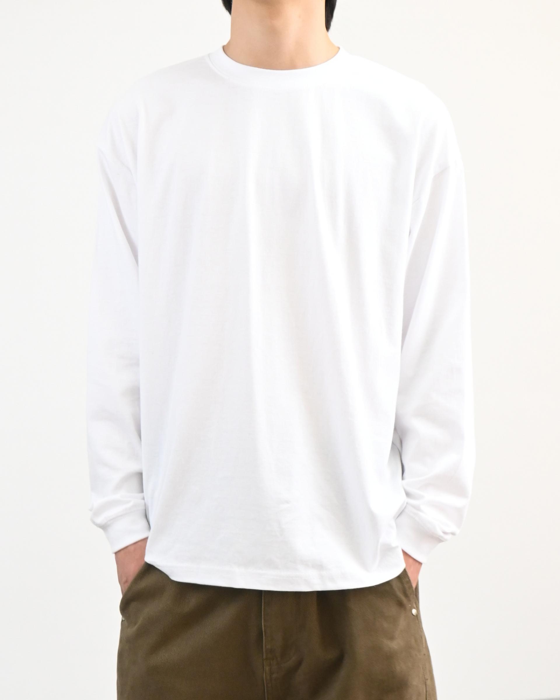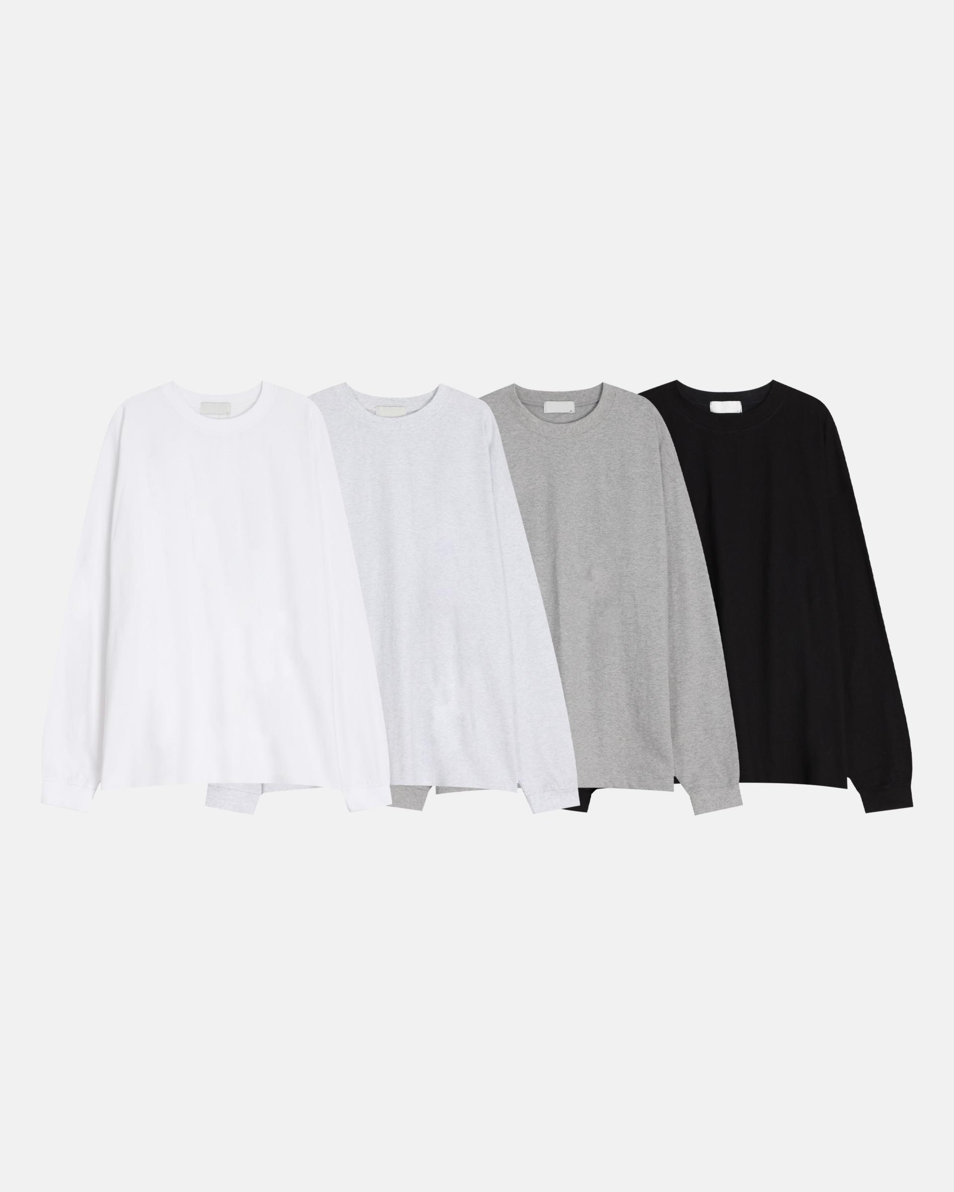 탄탄한 코튼 원단으로 제작된 기본 긴팔 티셔츠.