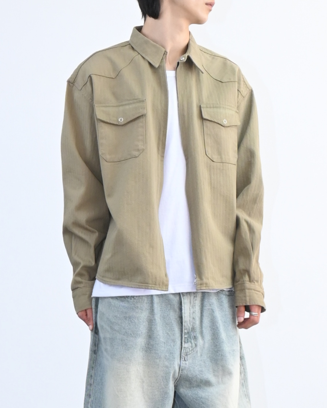 전면에 투 포켓과 카라 스냅으로