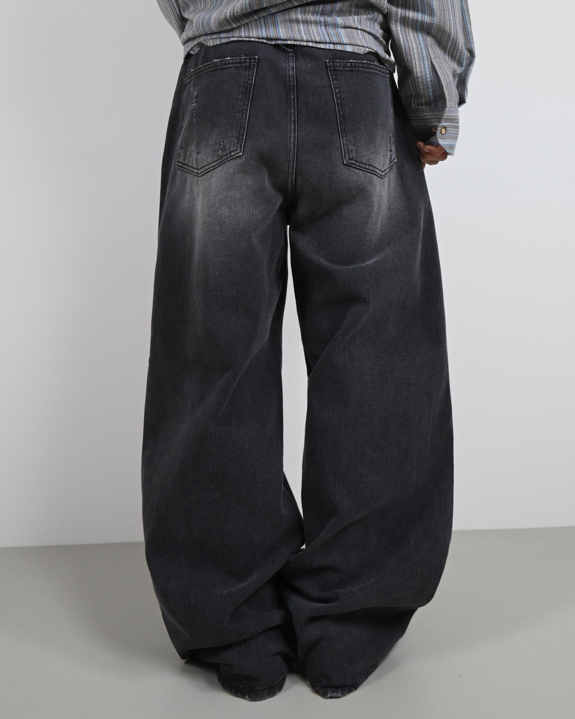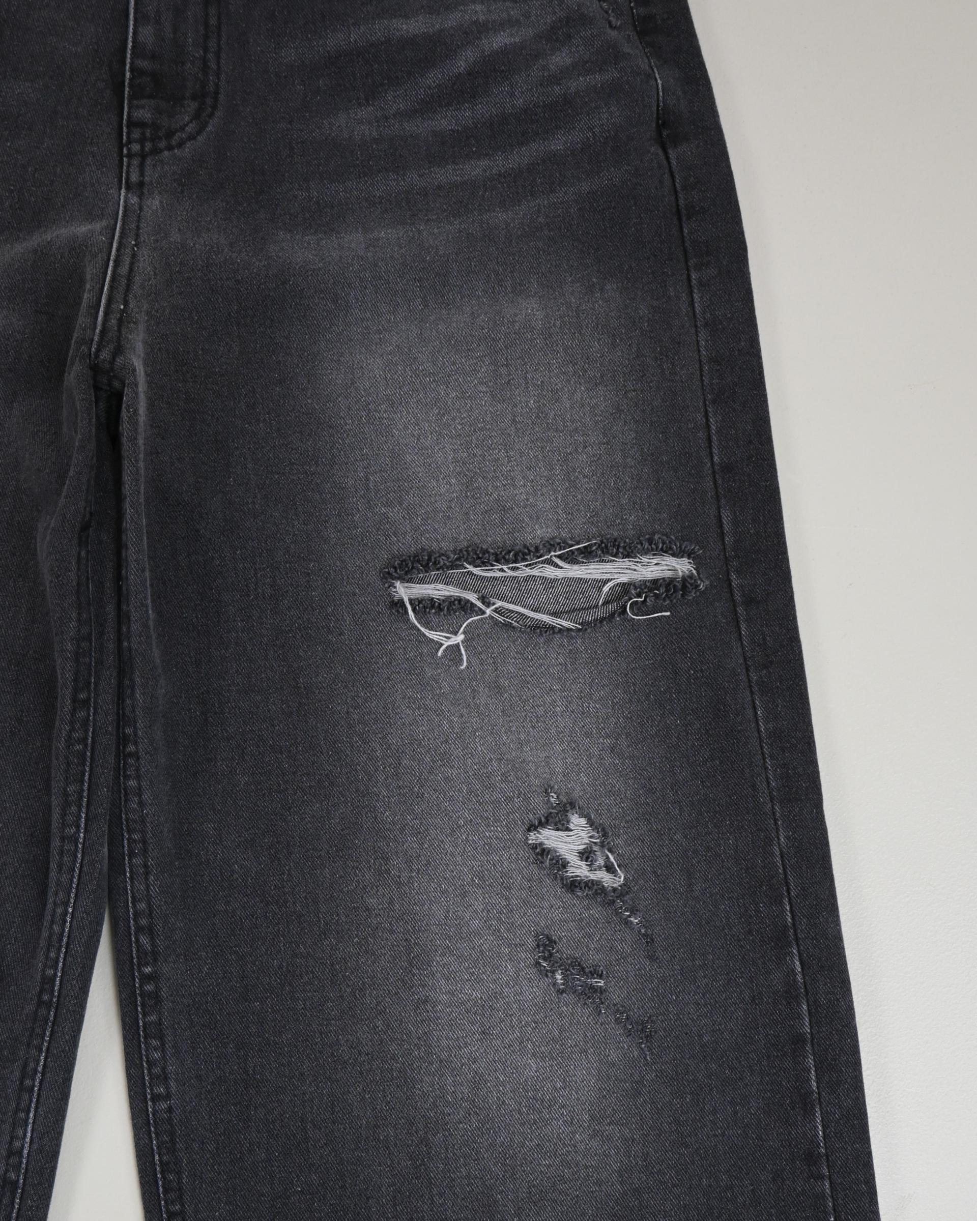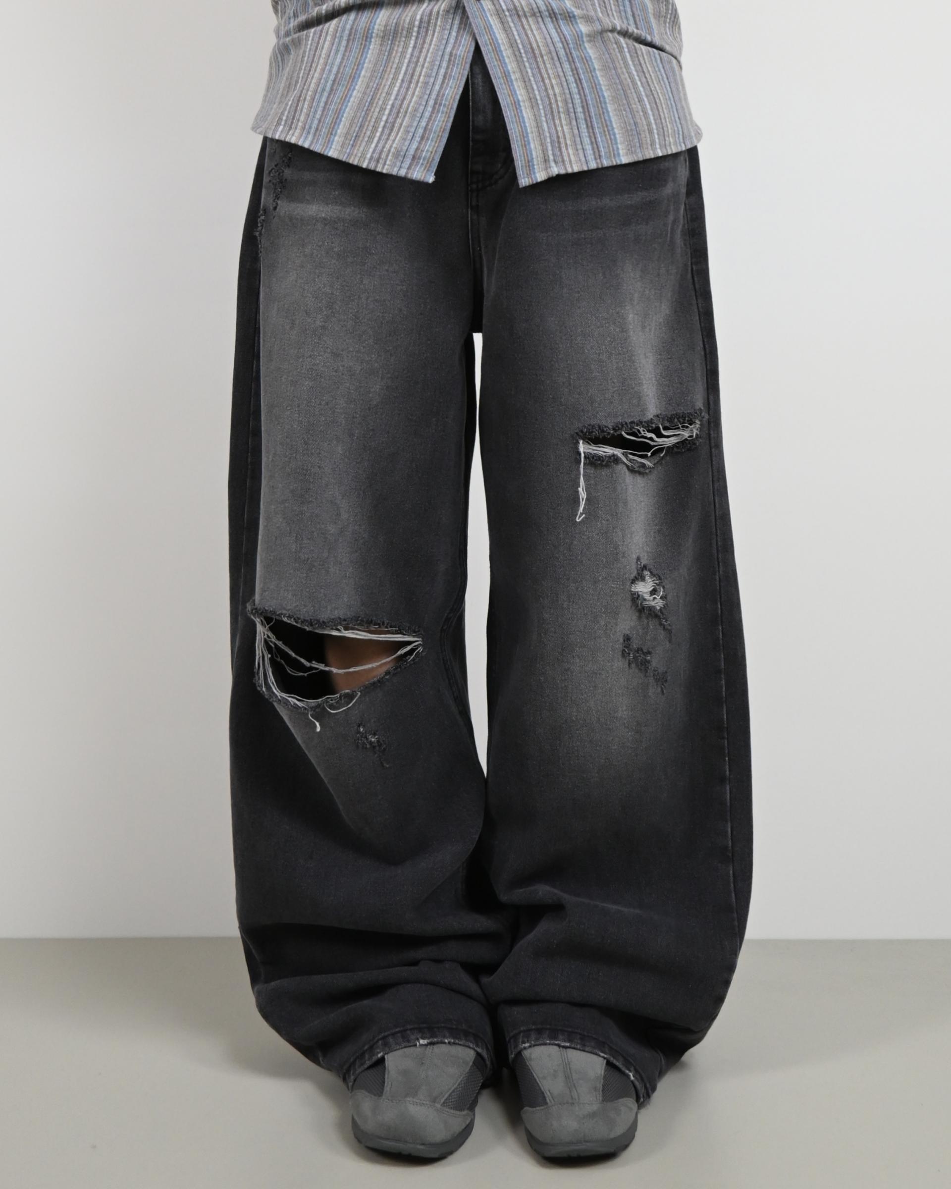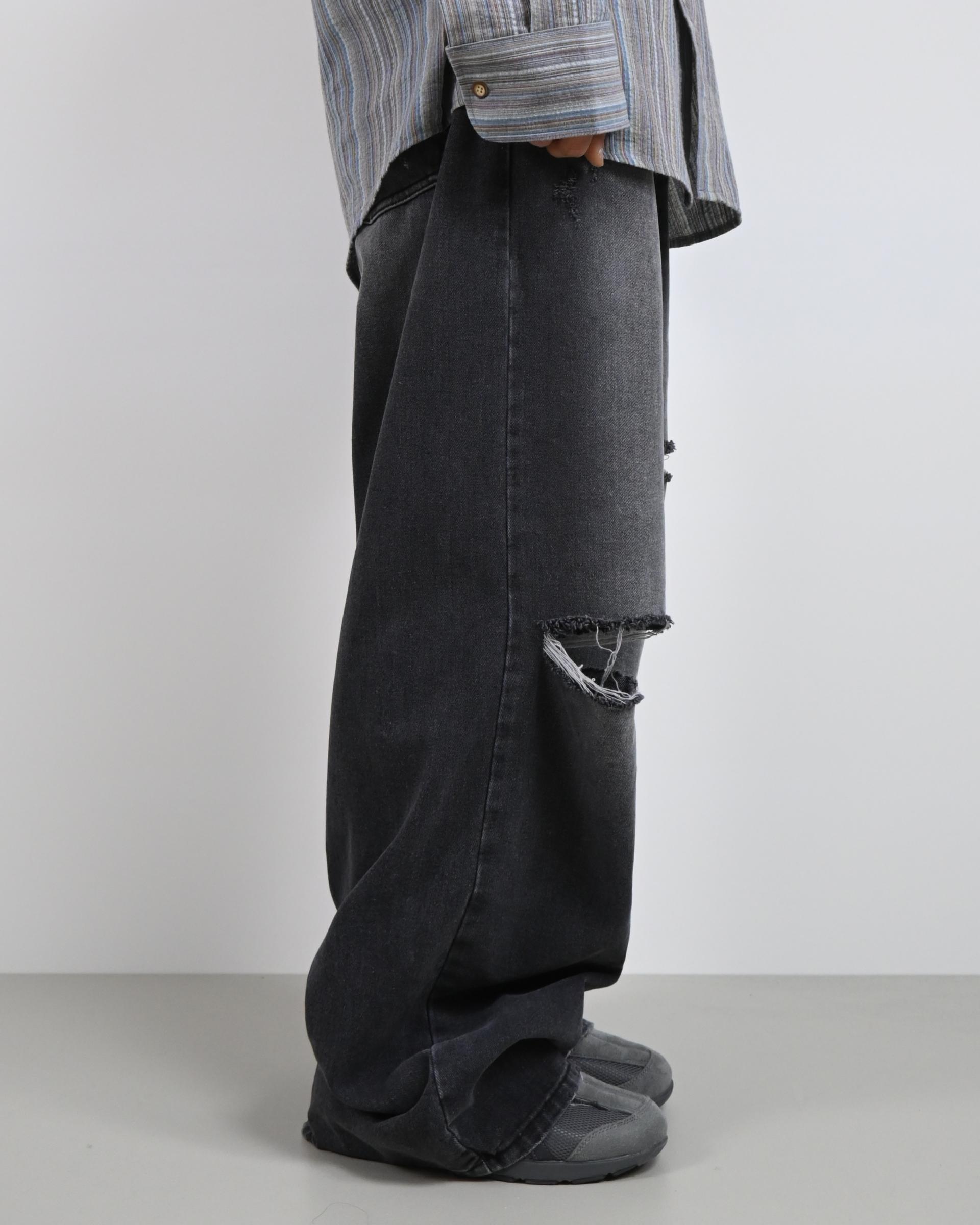 데미지 디테일이 돋보이는 데님 팬츠입니다.