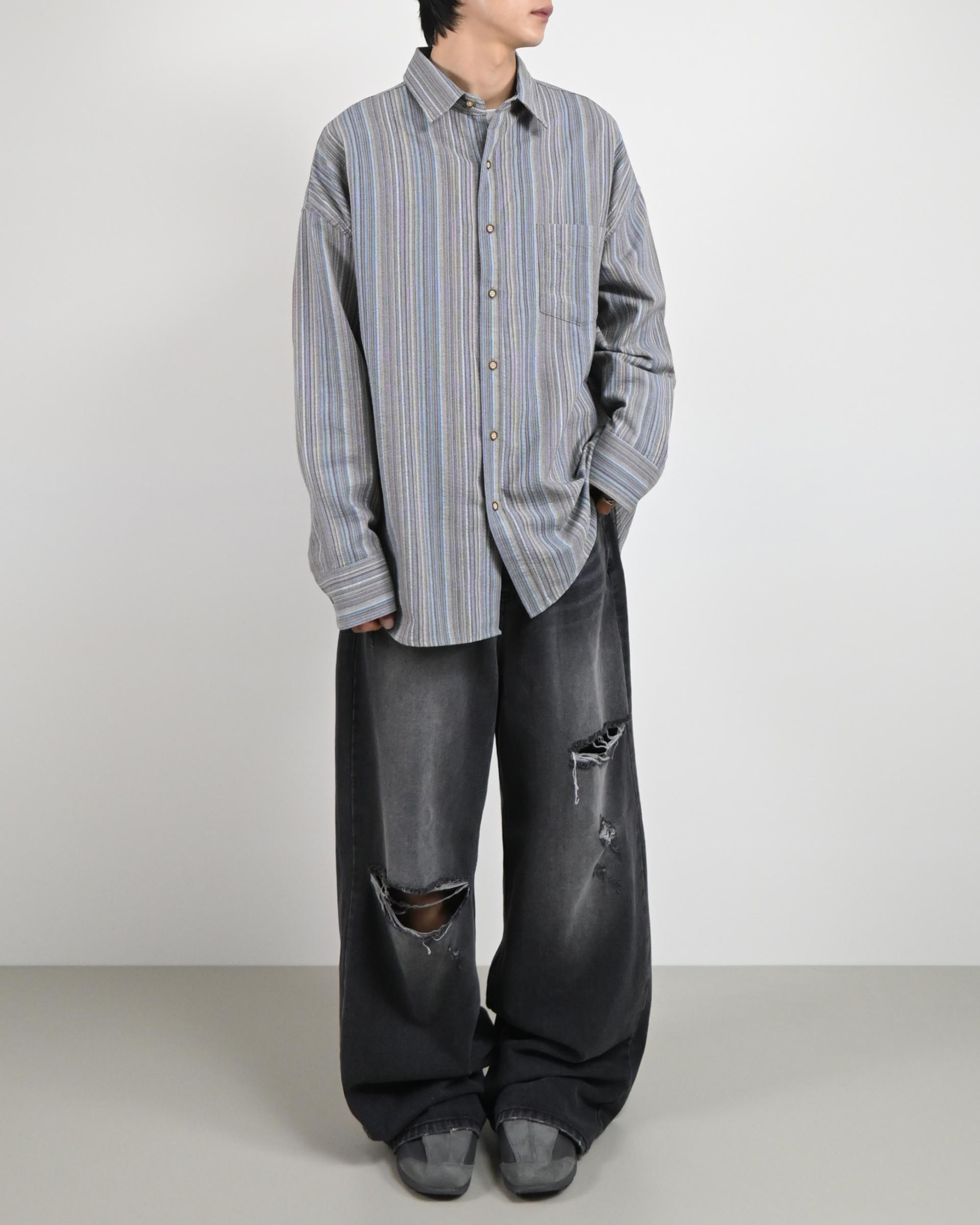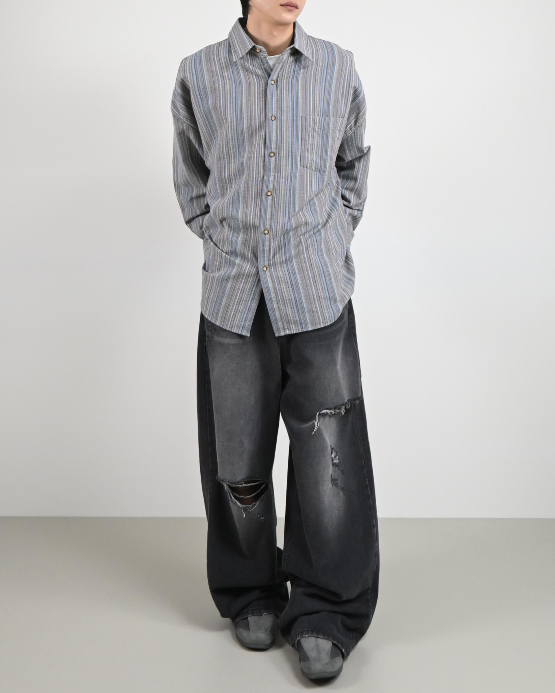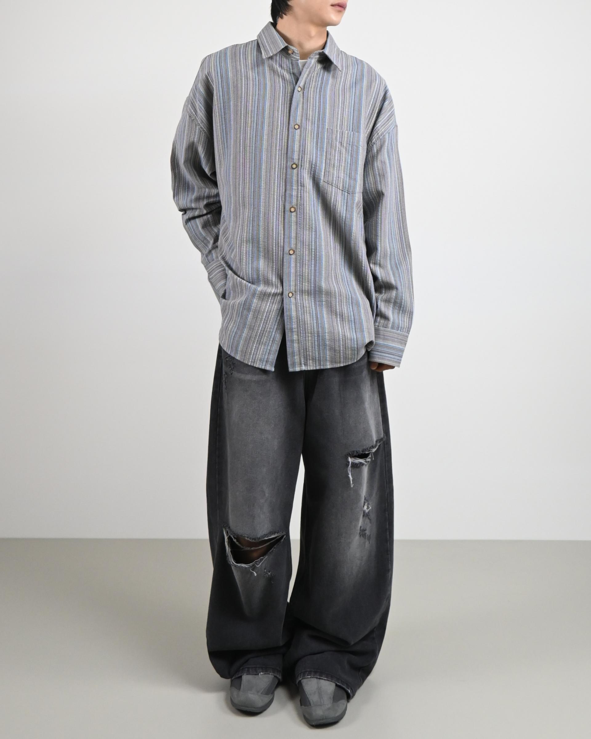 데미지 디테일이 돋보이는 데님 팬츠입니다.