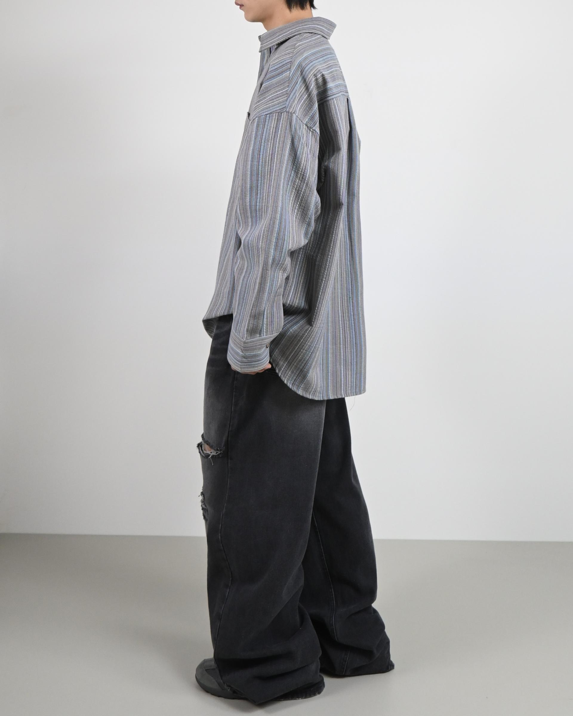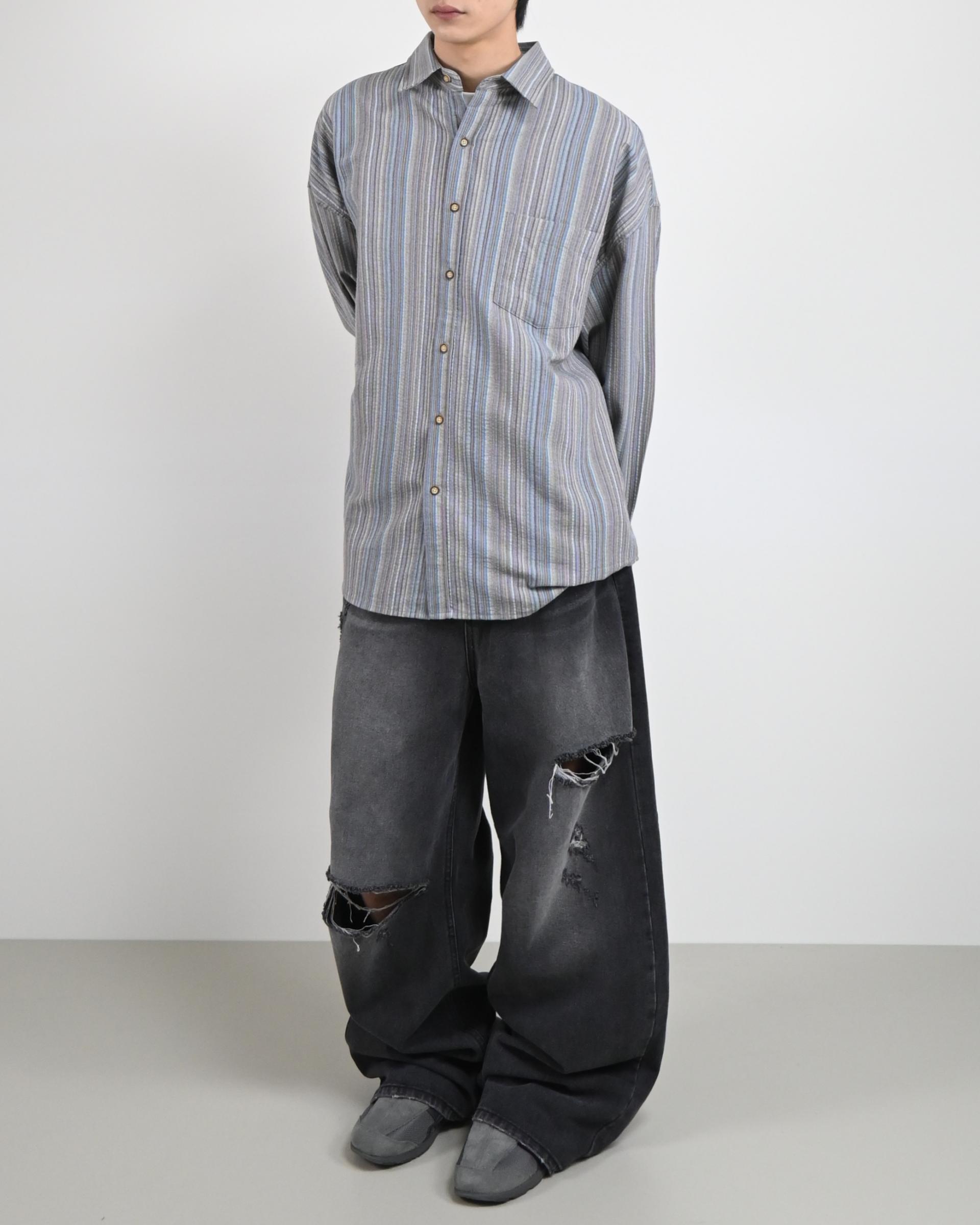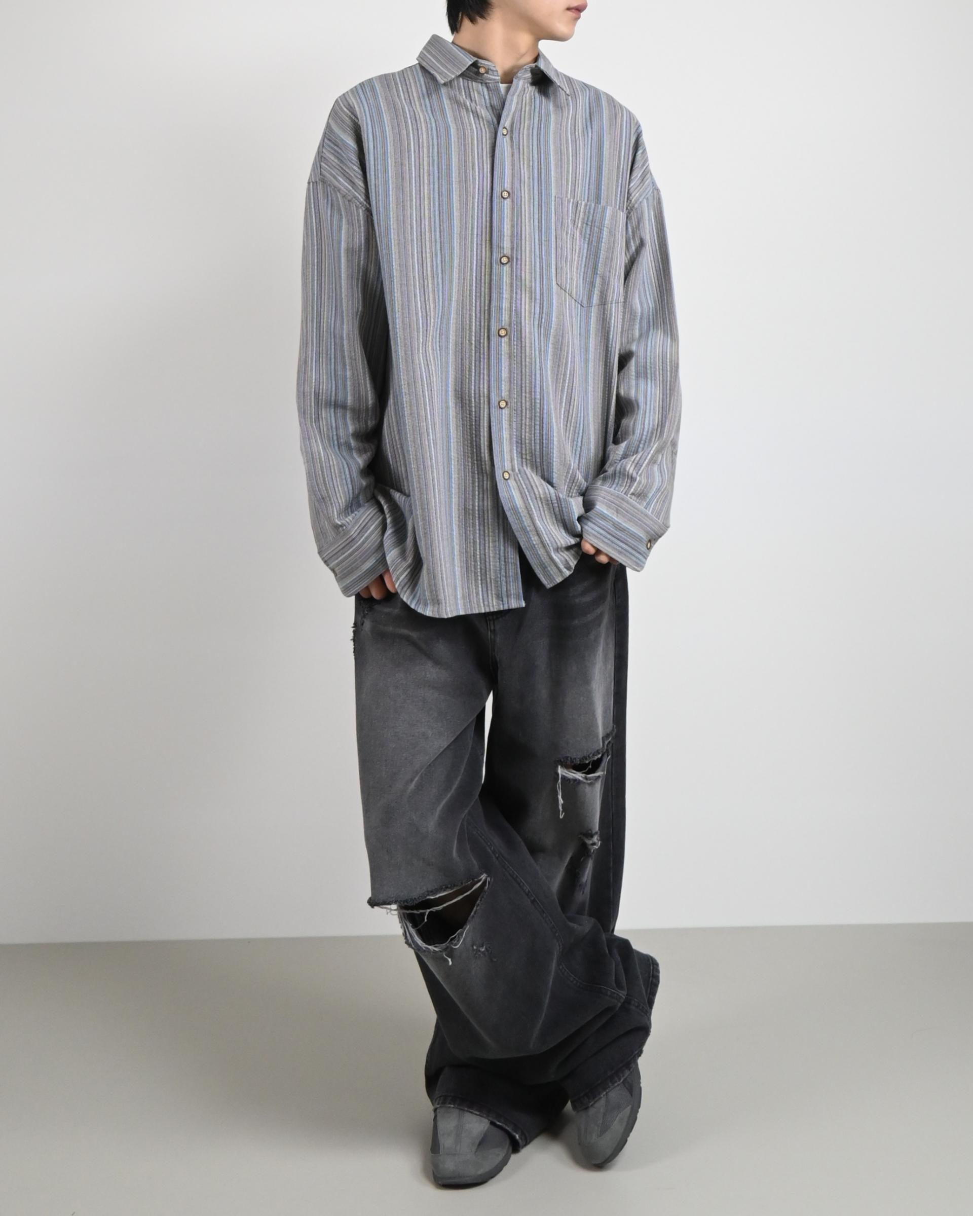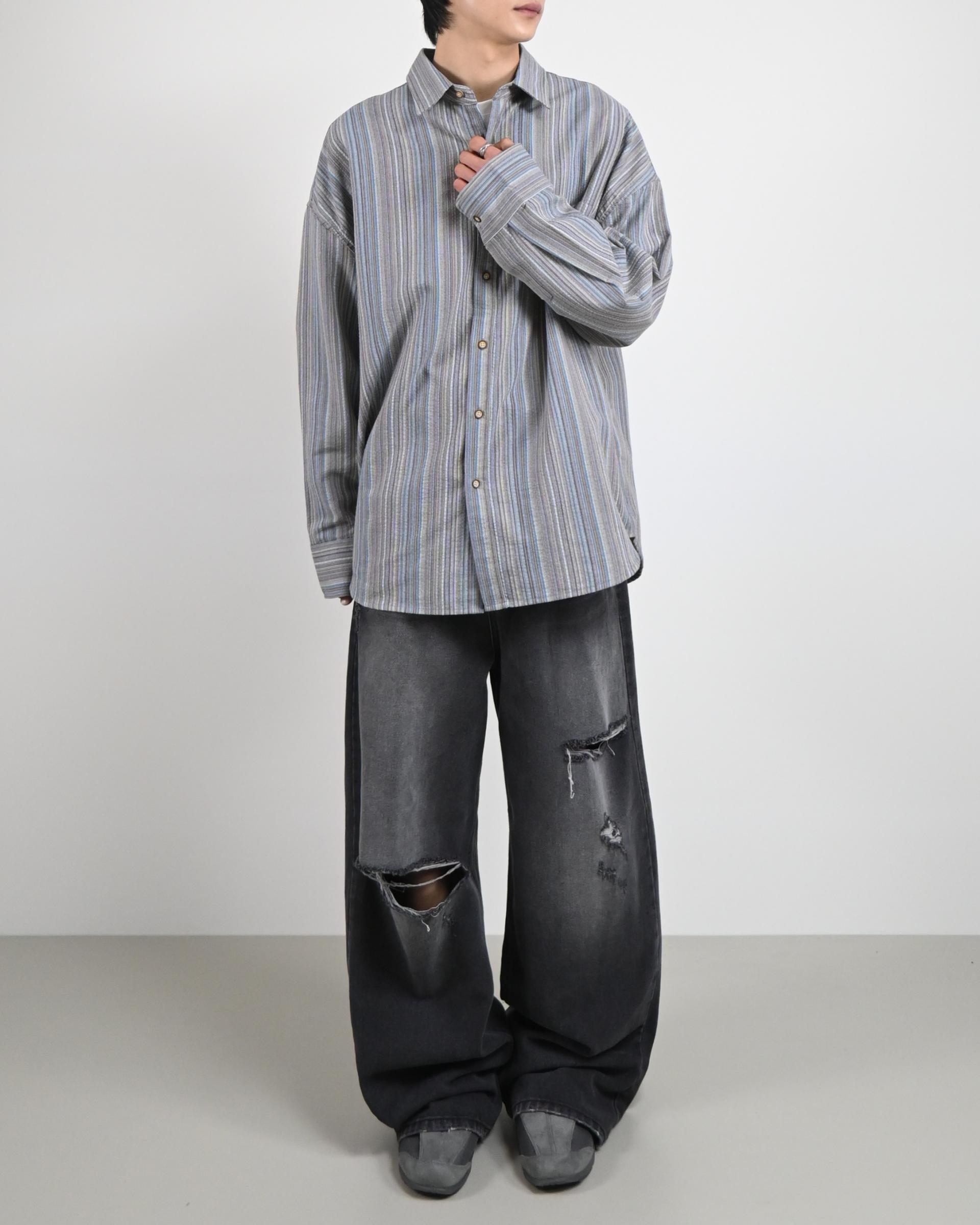 데미지 디테일이 돋보이는 데님 팬츠입니다.