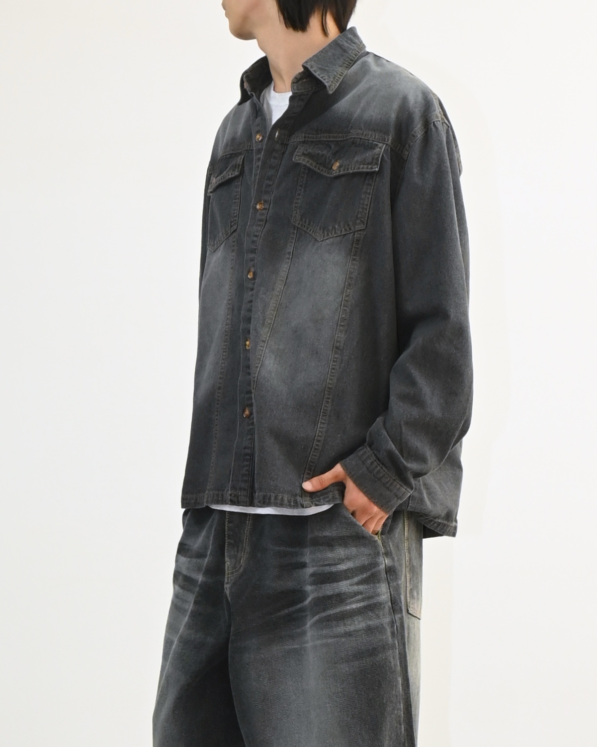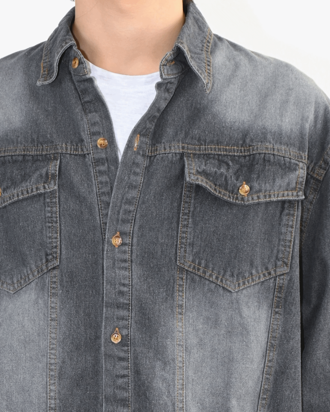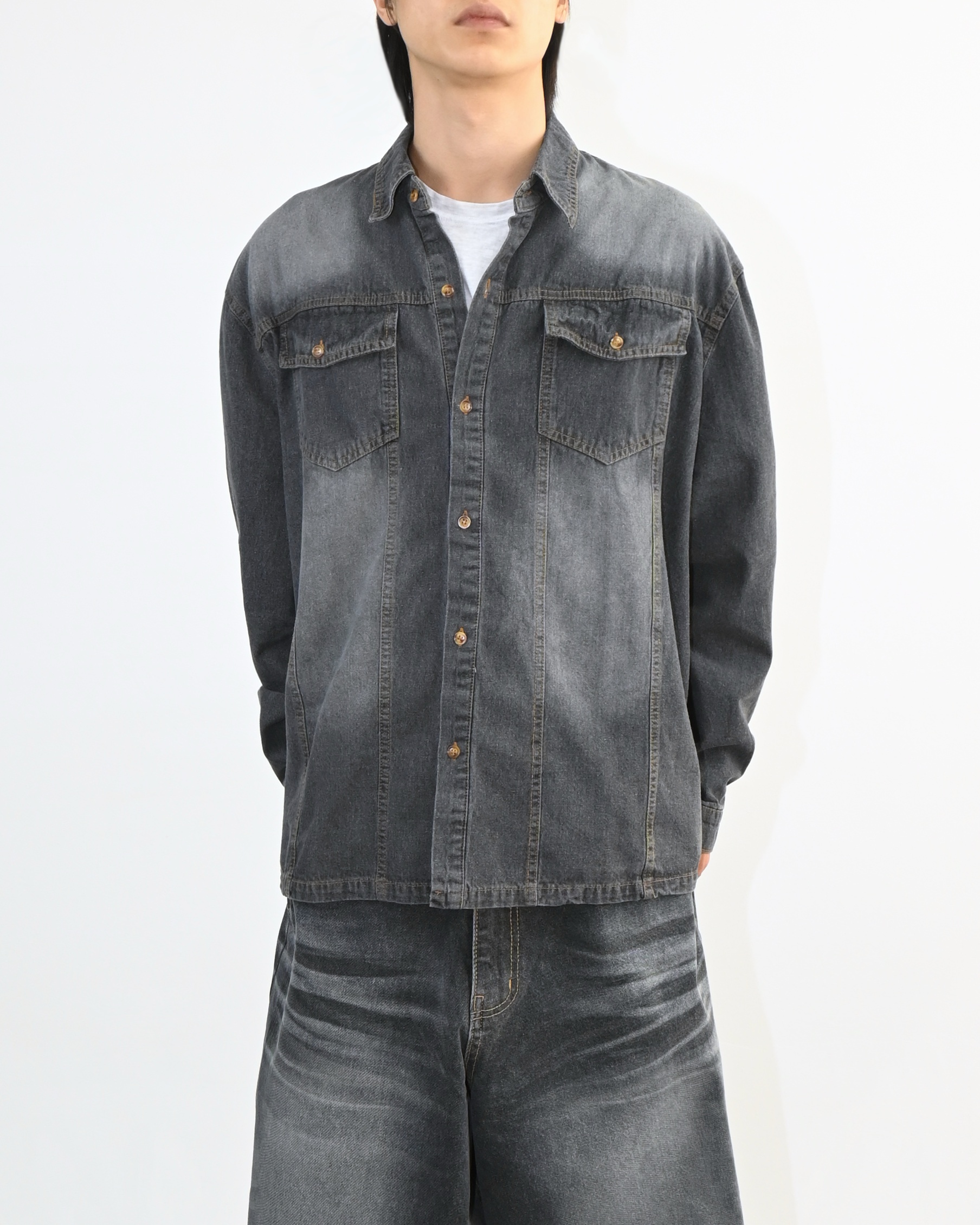 워싱이 돋보이는 데님 셔츠입니다.