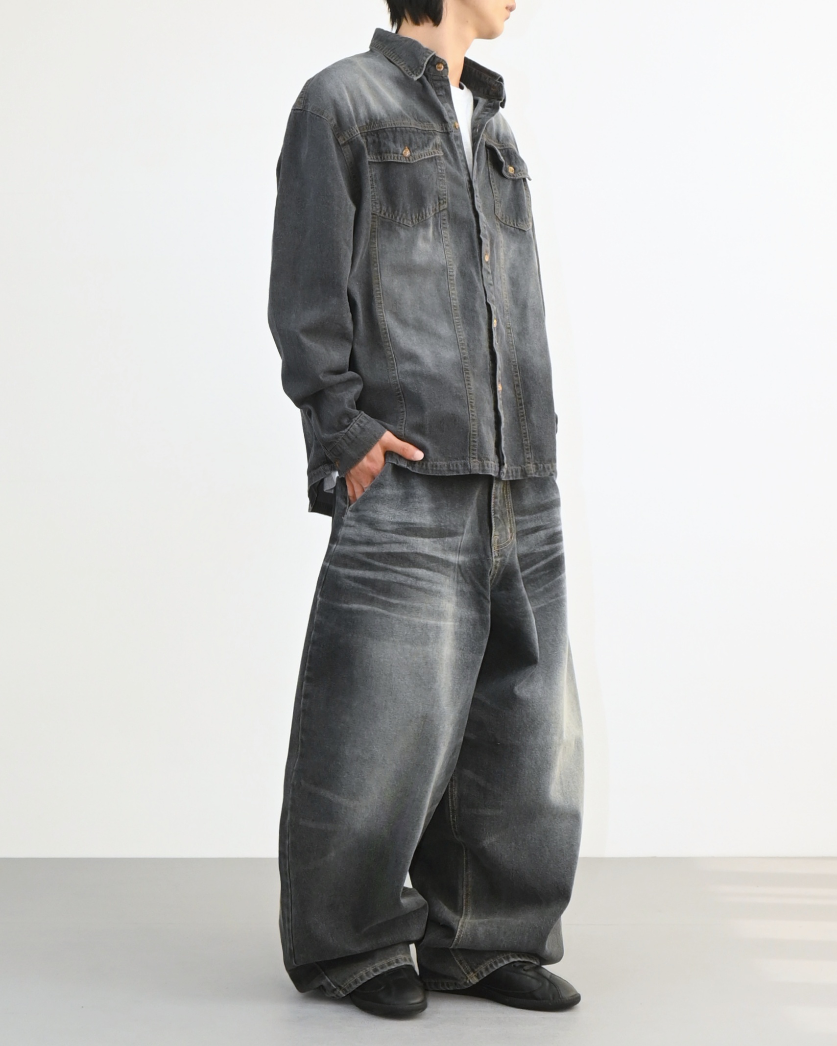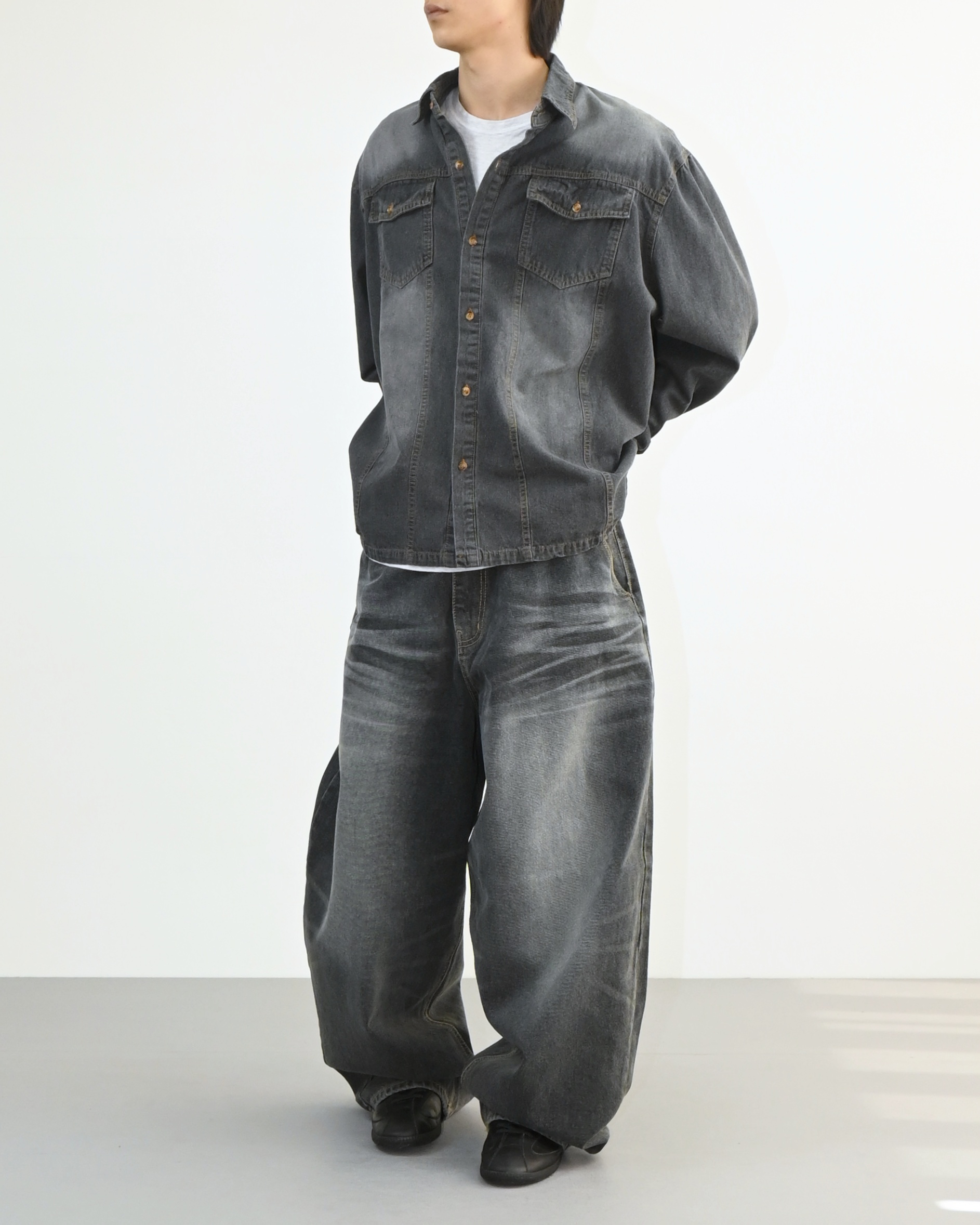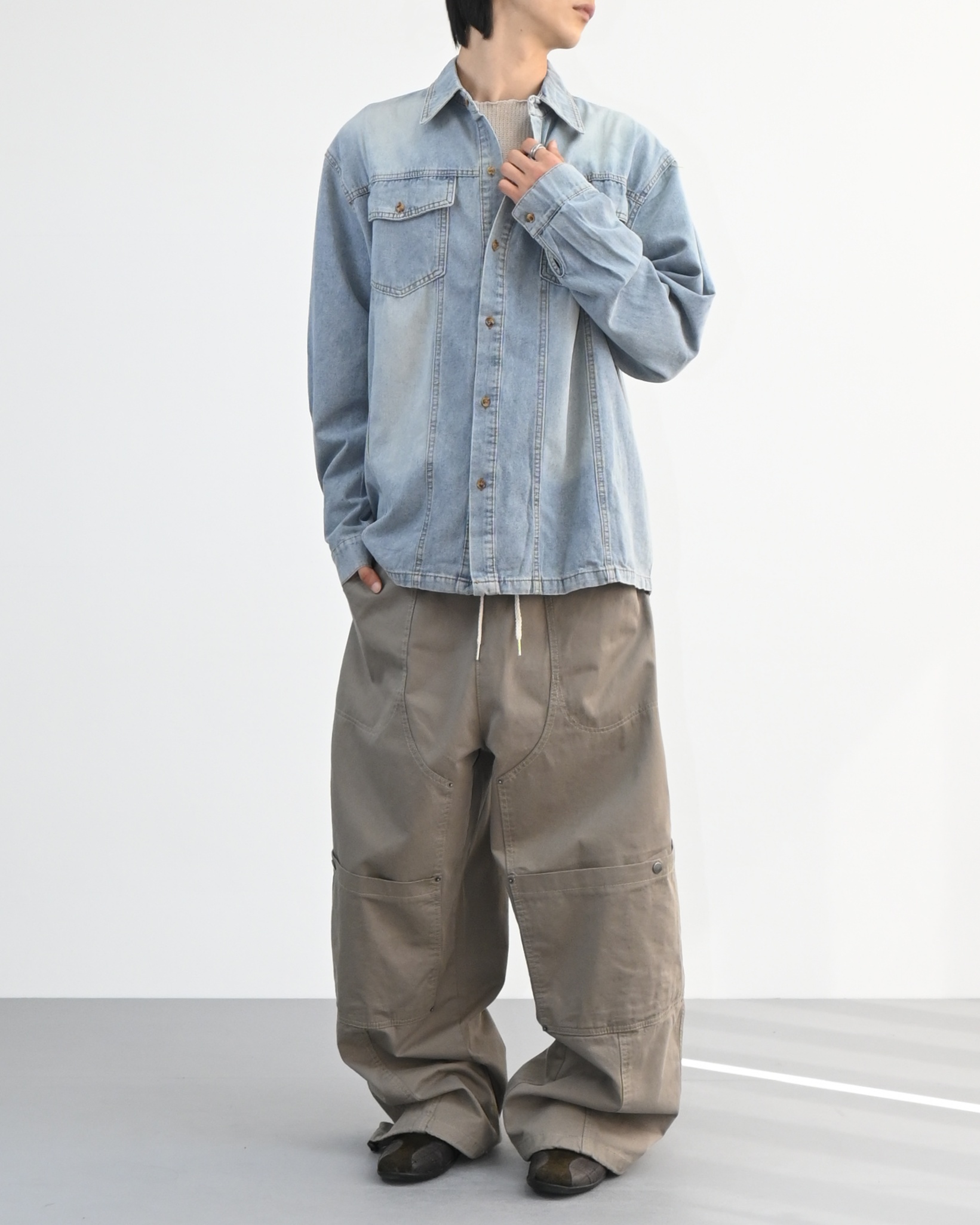 워싱이 돋보이는 데님 셔츠입니다.