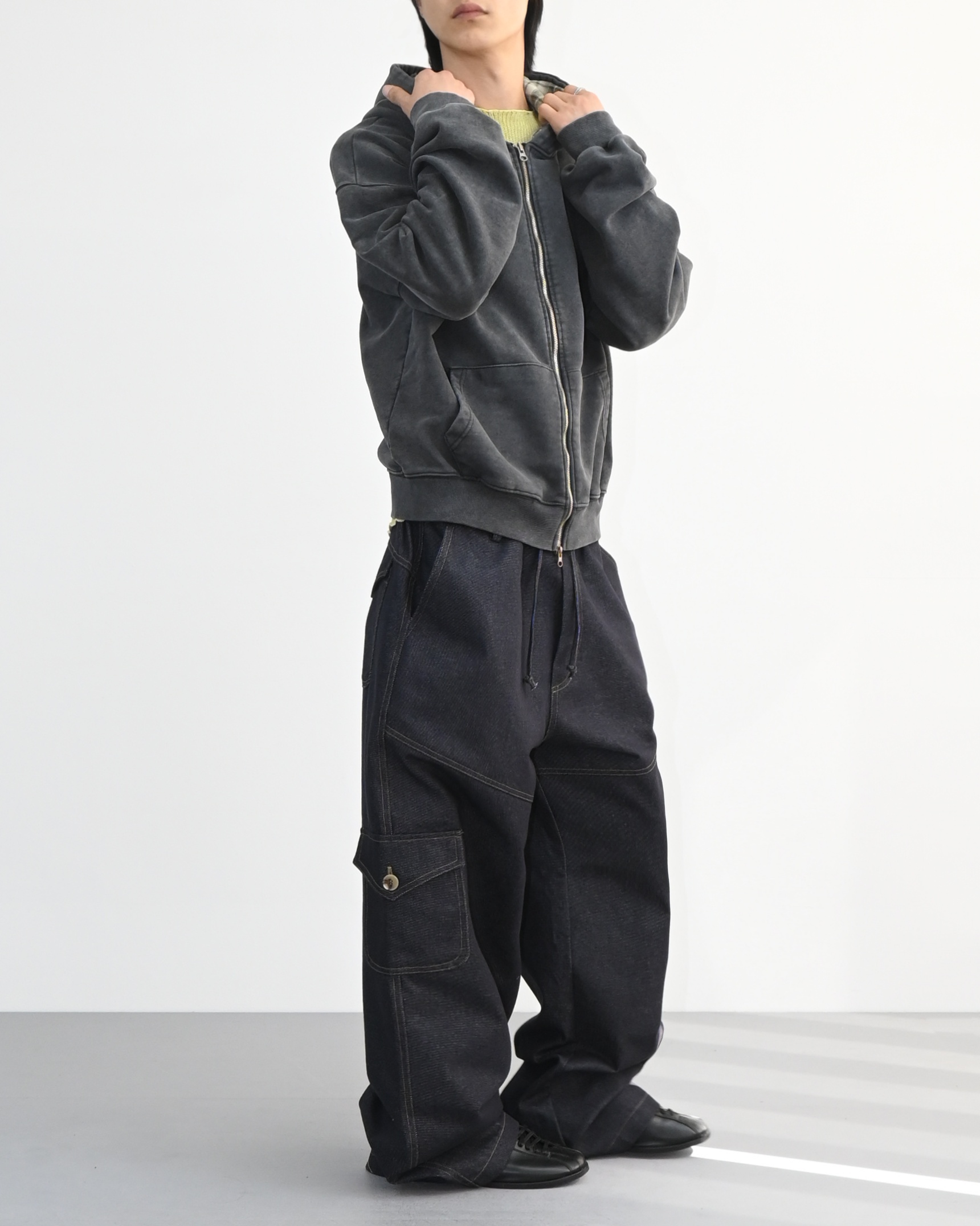 빈티지한 지퍼 부자재로 무드를 맞췄습니다.