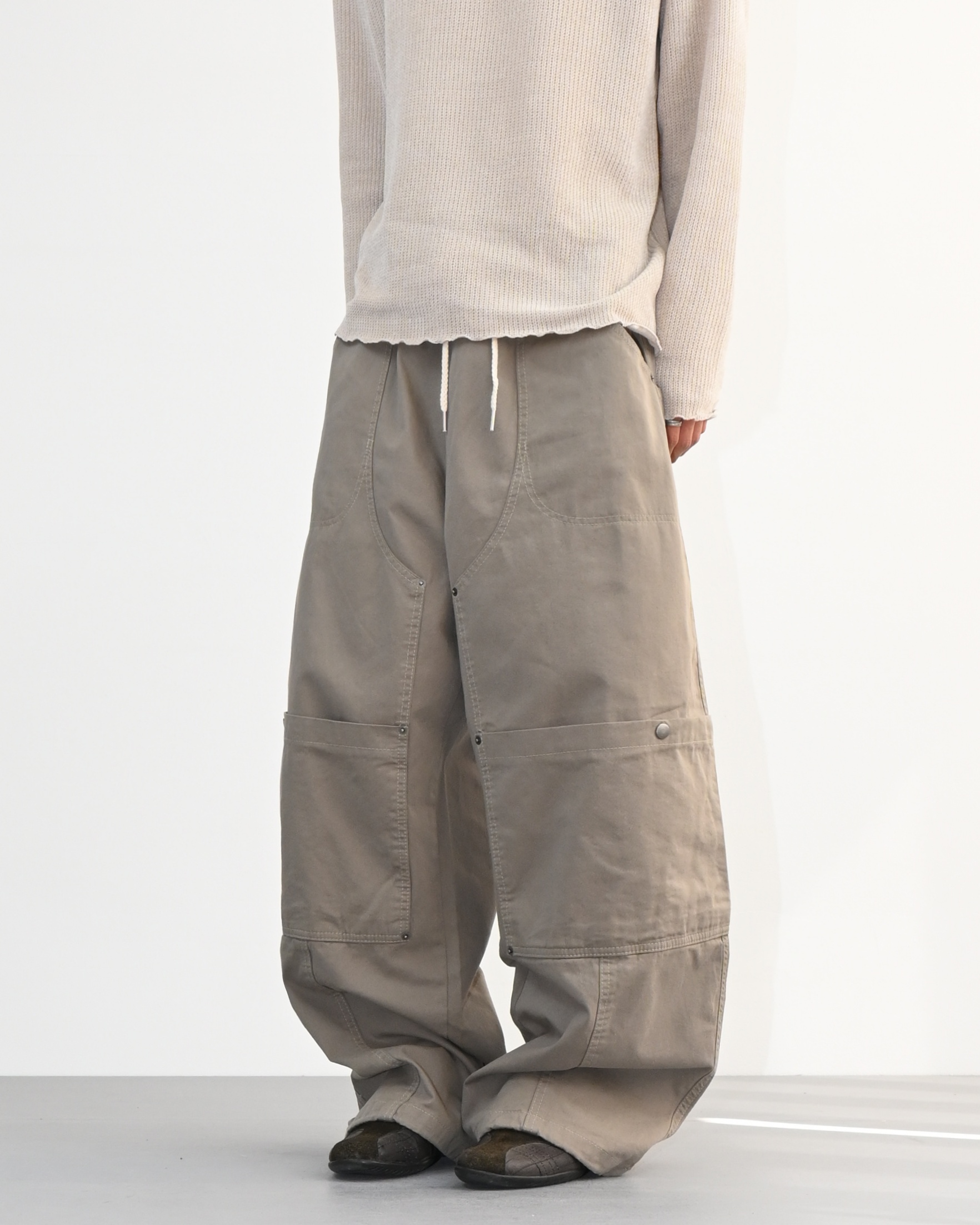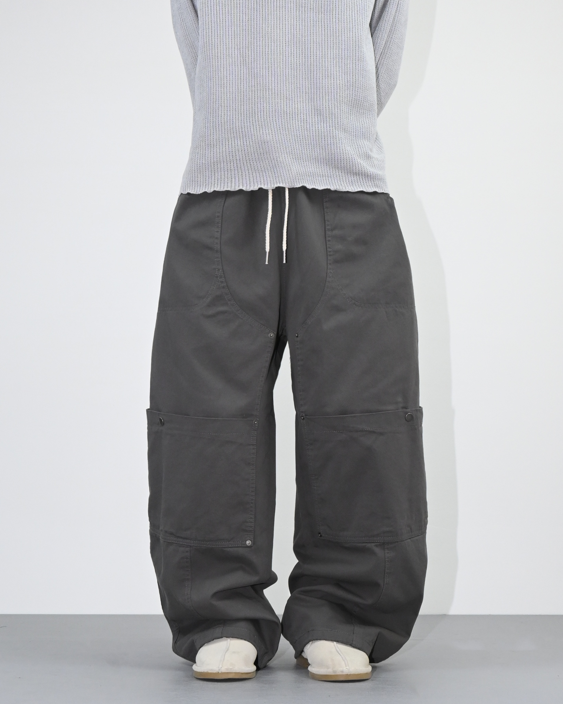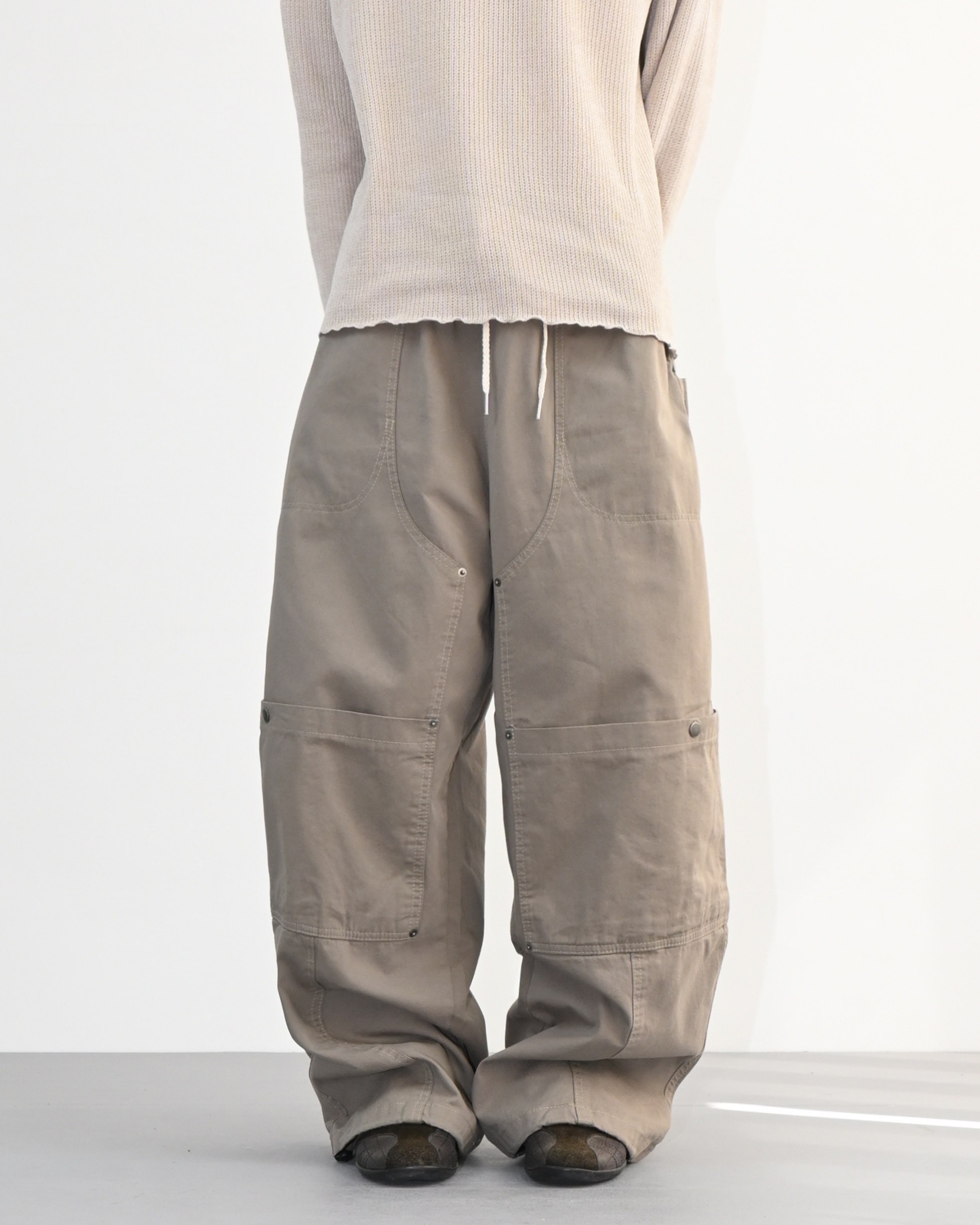 전면에 더블니 디테일과 스냅으로
